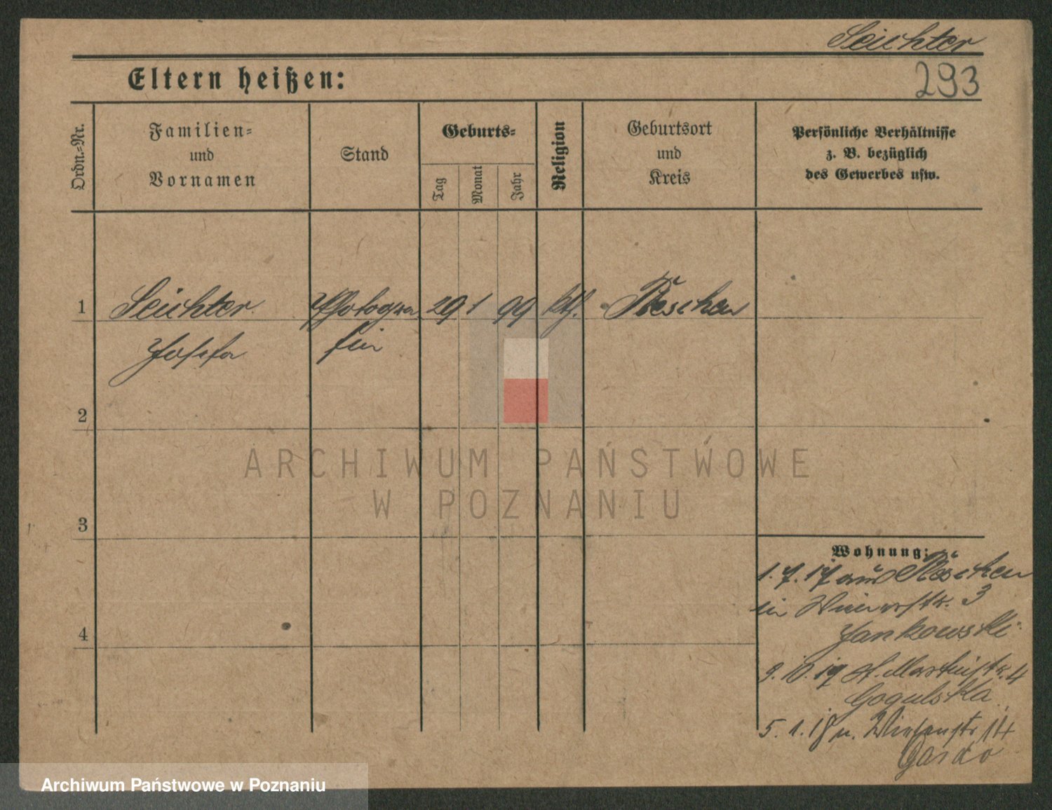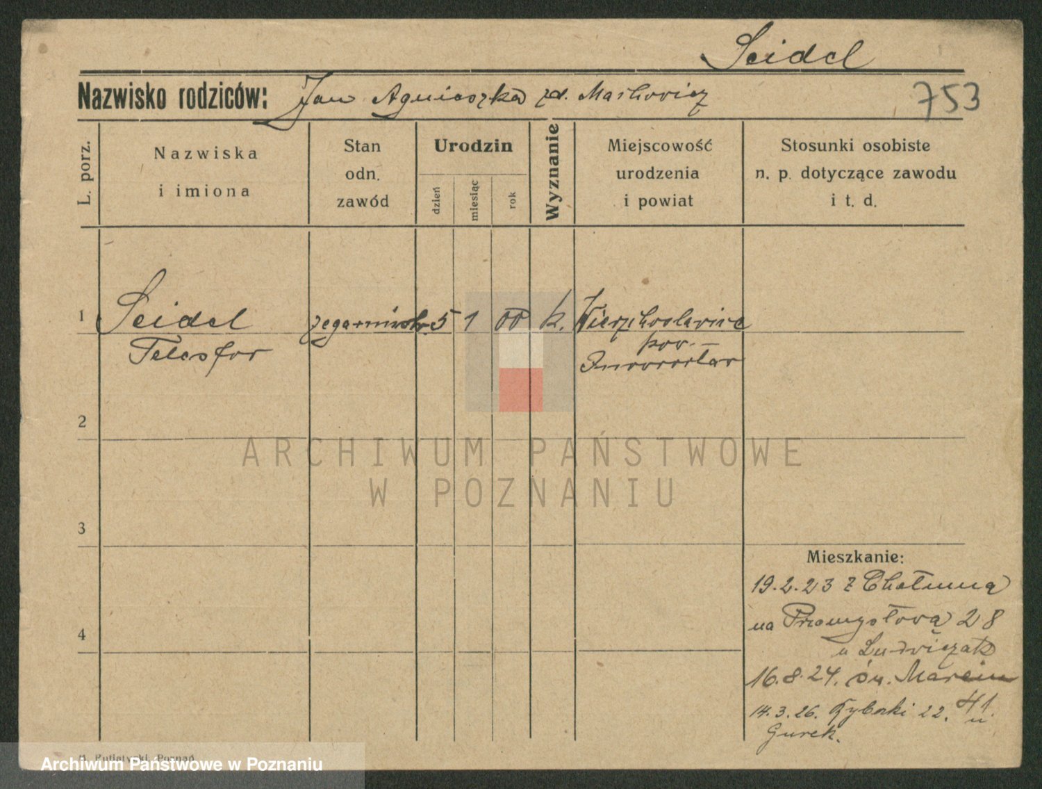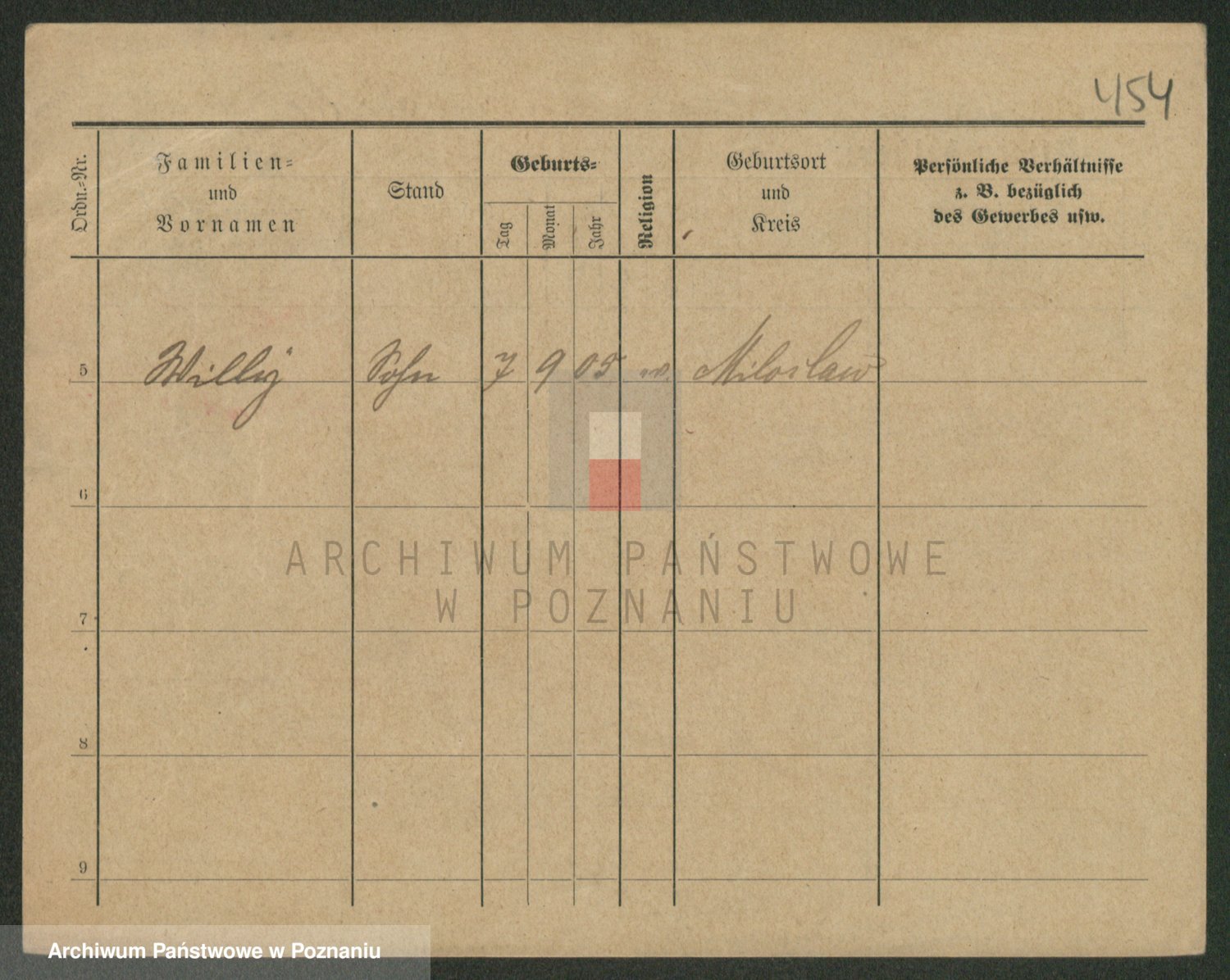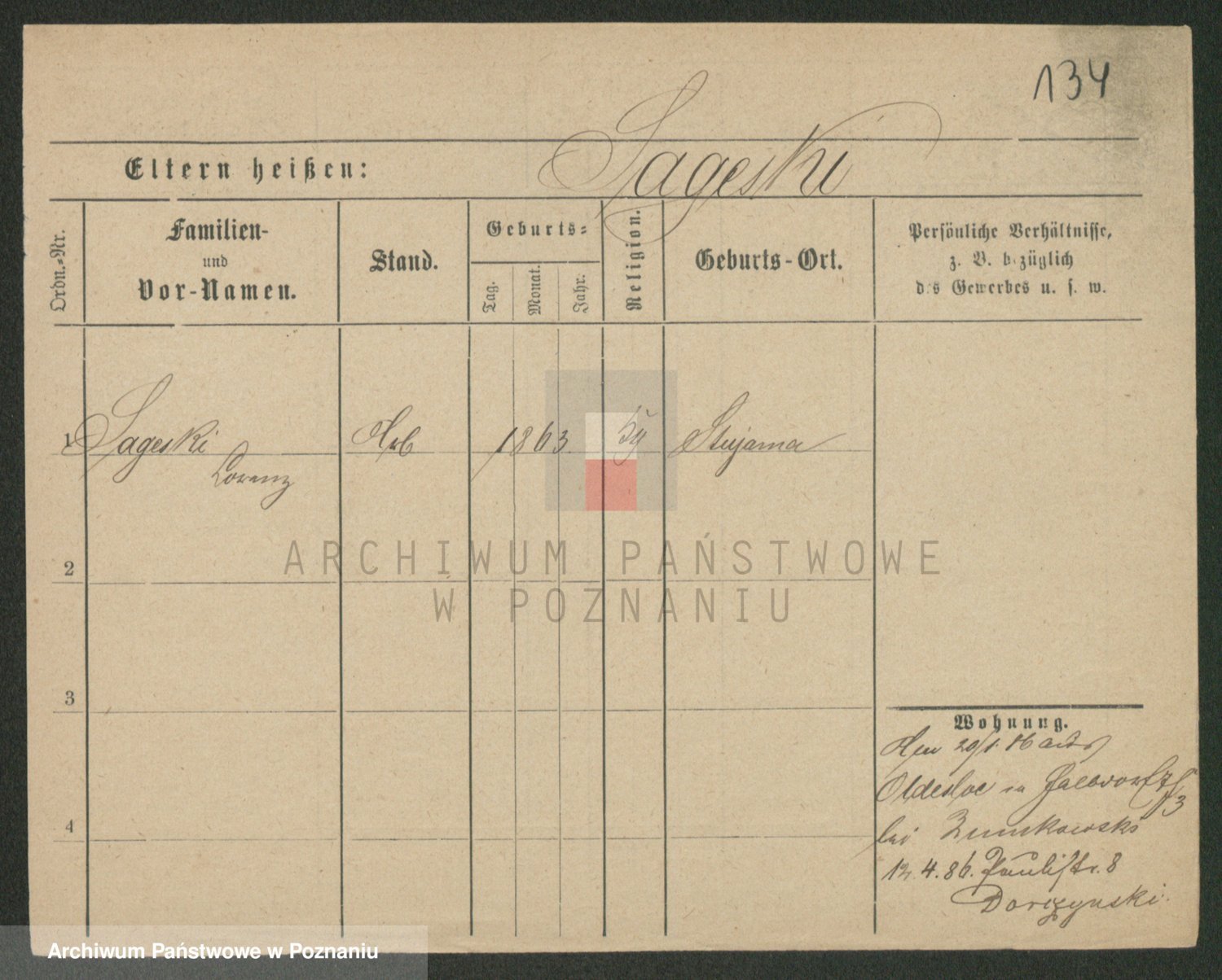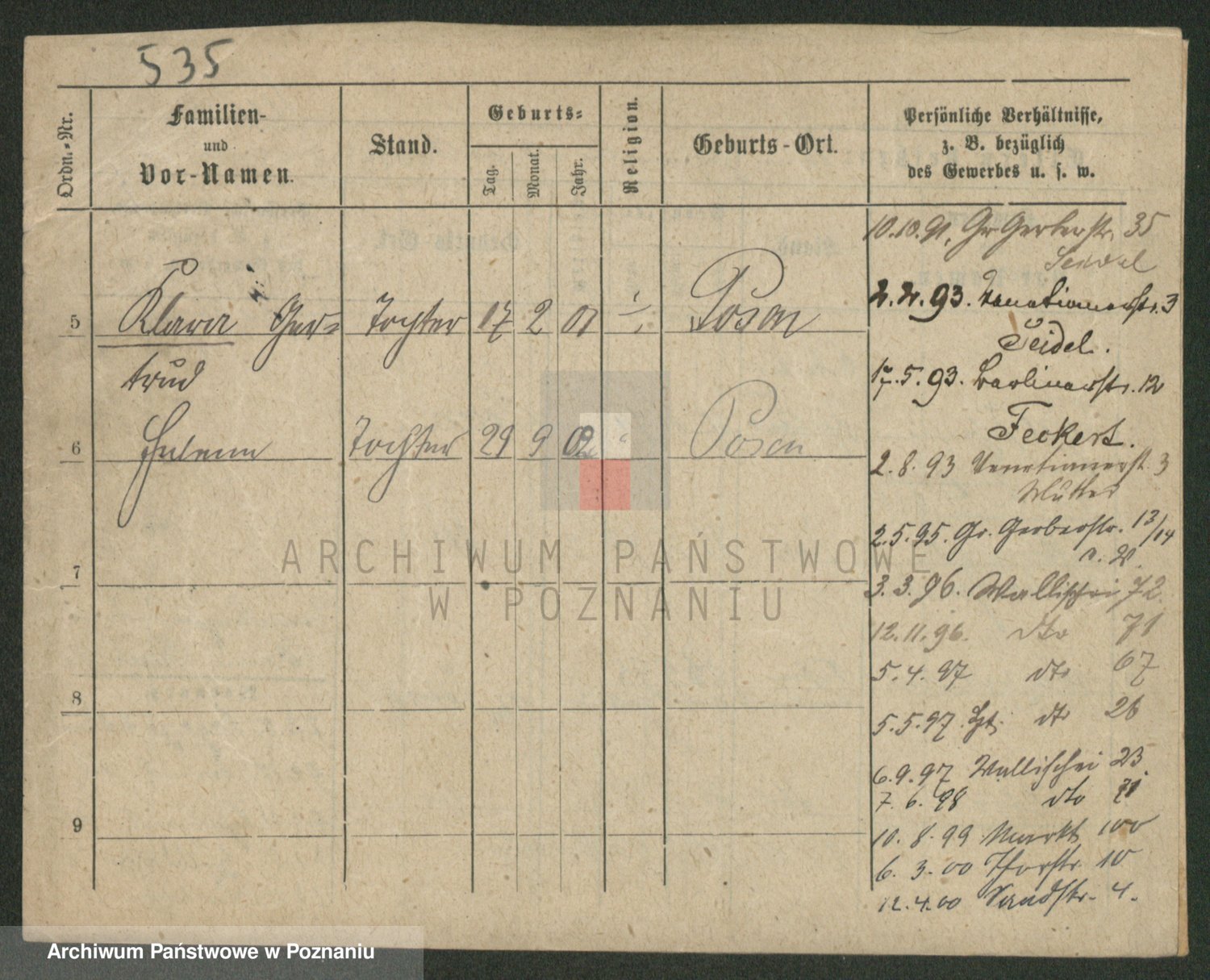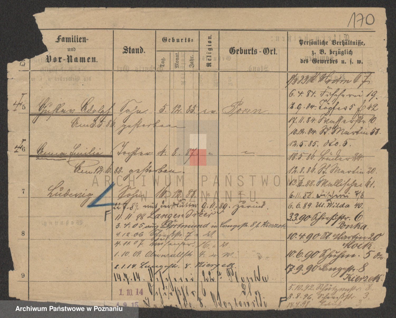Podgląd karty osobowej dostępny jest po kliknięciu na nazwisko lub ikonkę karty. Można dokonywać powiększenia (ikony na górze) lub przechodzić między kolejnymi skanami (strzałki po bokach).