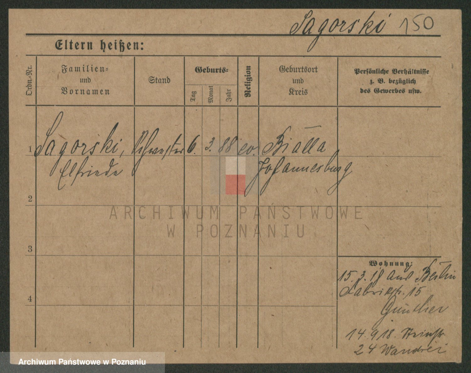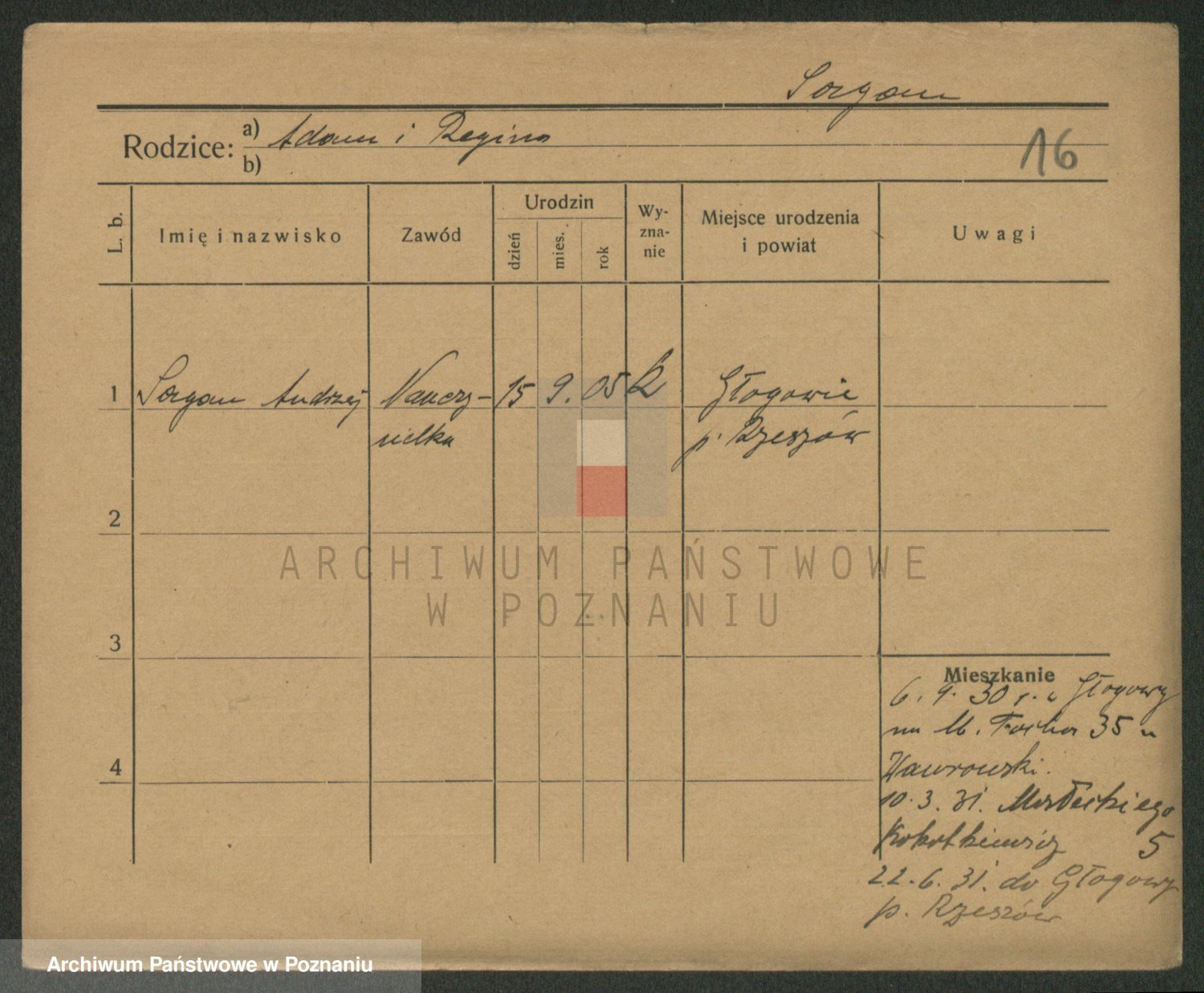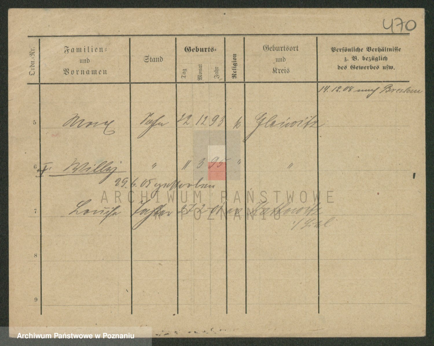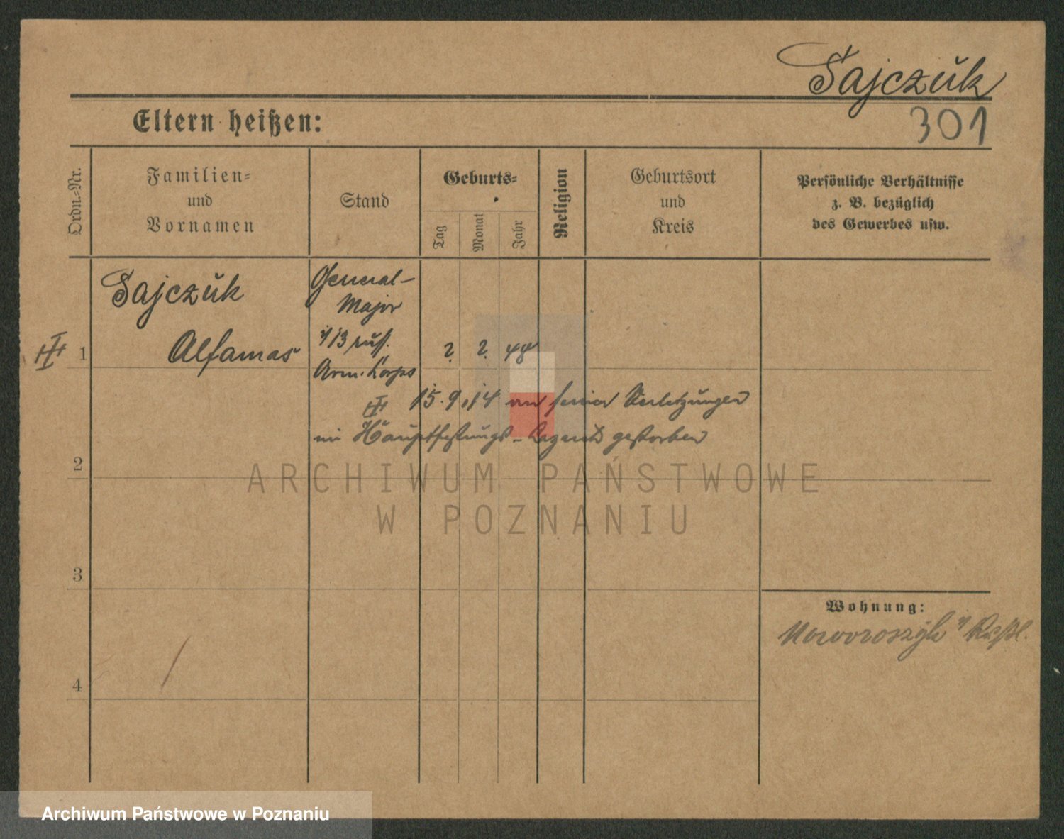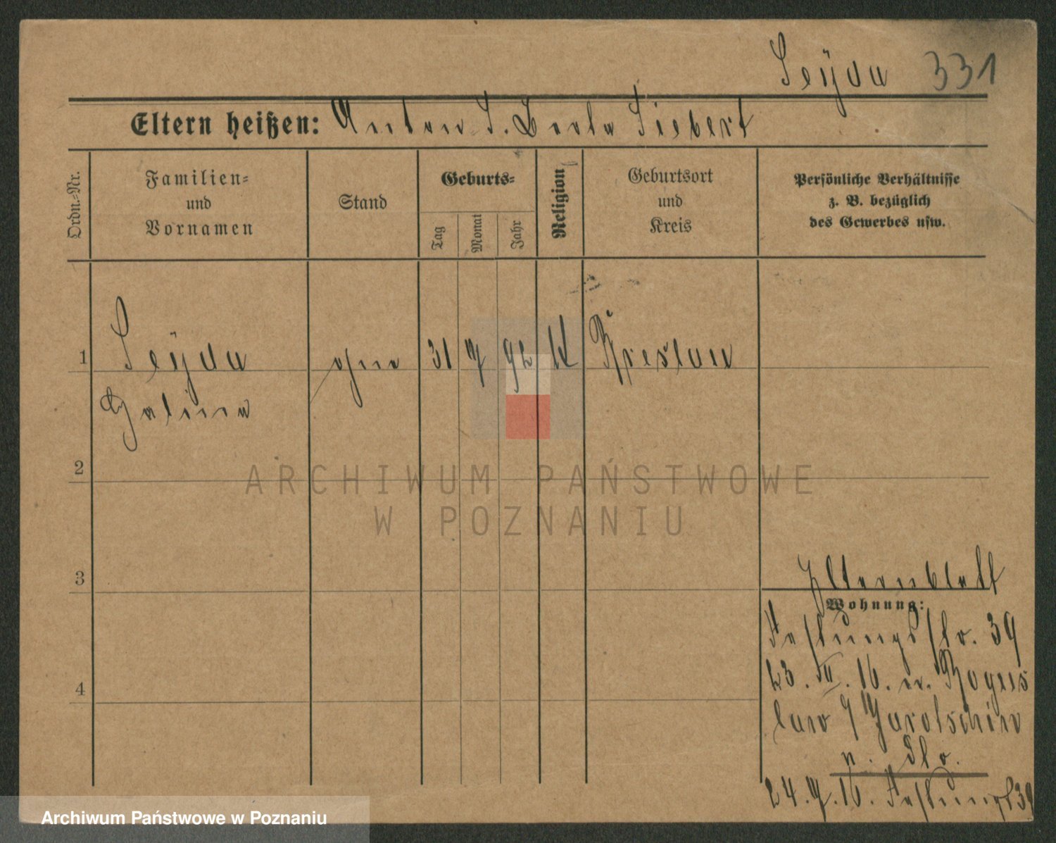Podgląd karty osobowej dostępny jest po kliknięciu na nazwisko lub ikonkę karty. Można dokonywać powiększenia (ikony na górze) lub przechodzić między kolejnymi skanami (strzałki po bokach).