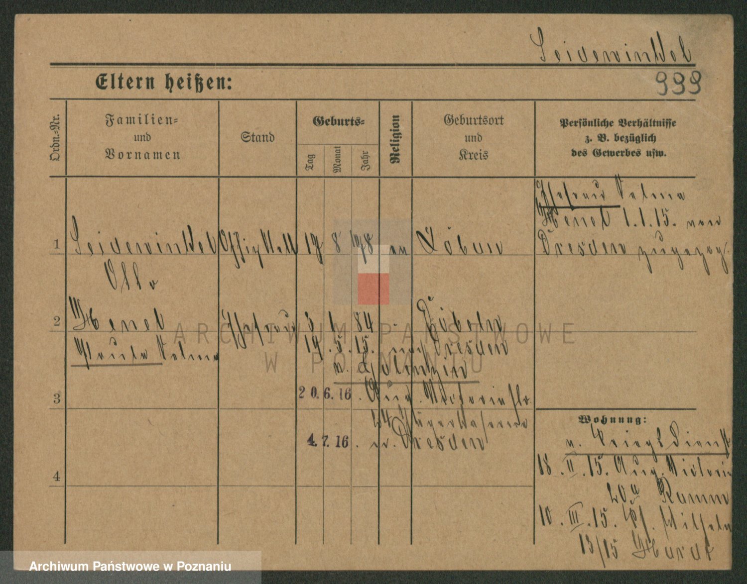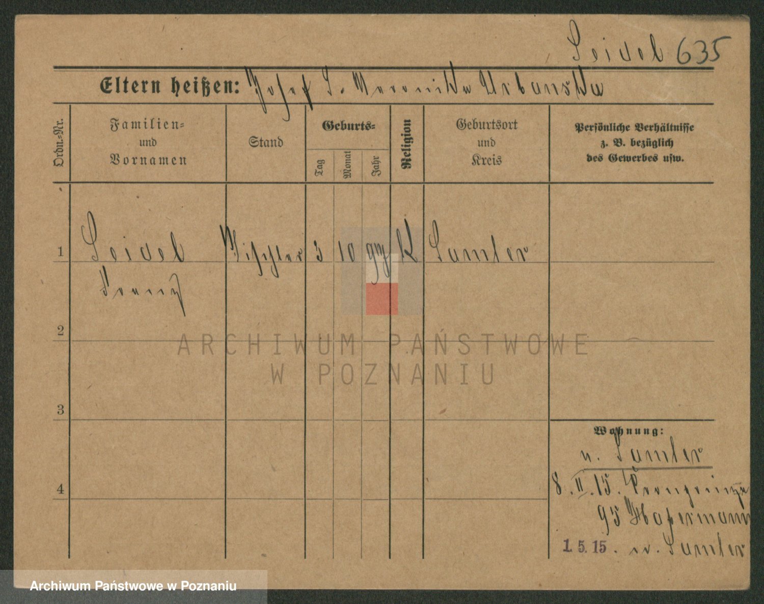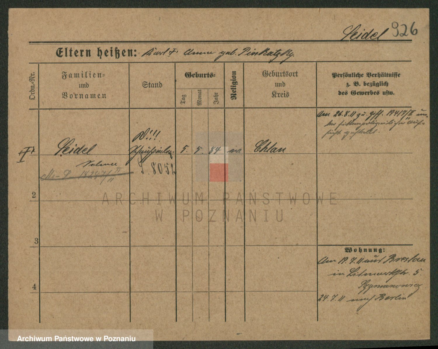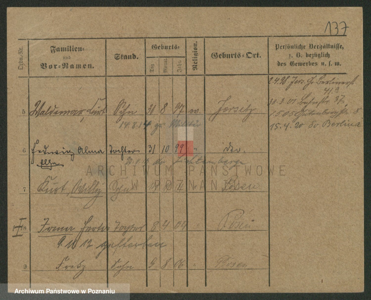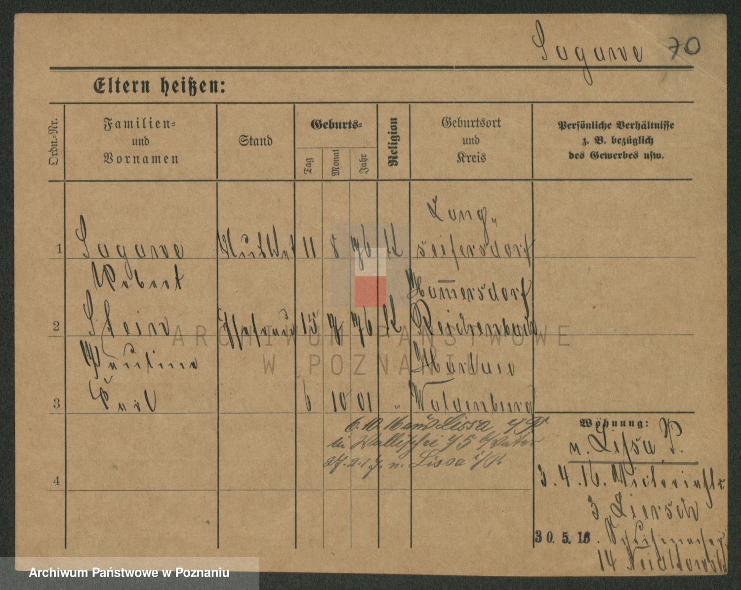 Podgląd karty osobowej dostępny jest po kliknięciu na nazwisko lub ikonkę karty. Można dokonywać powiększenia (ikony na górze) lub przechodzić między kolejnymi skanami (strzałki po bokach).
