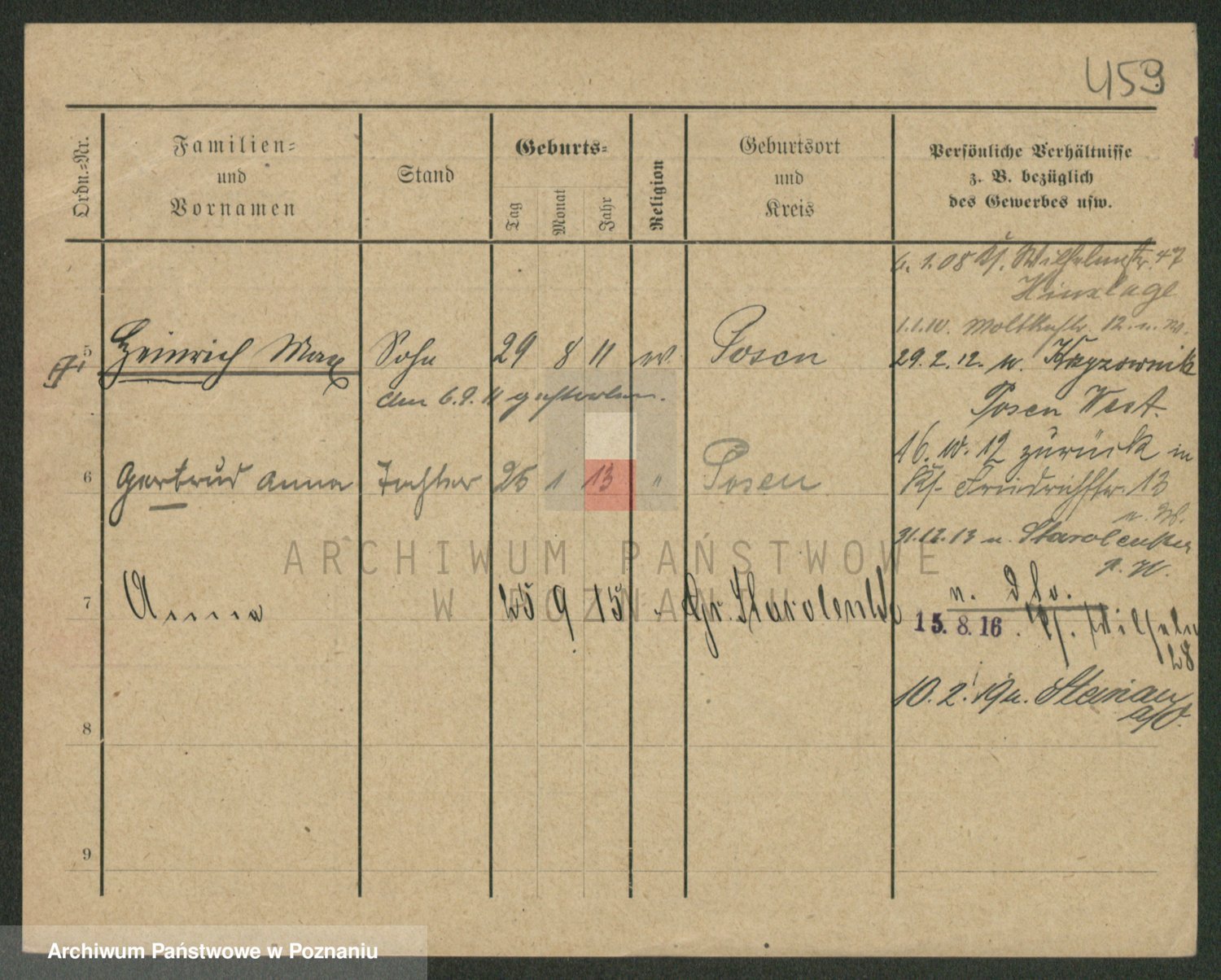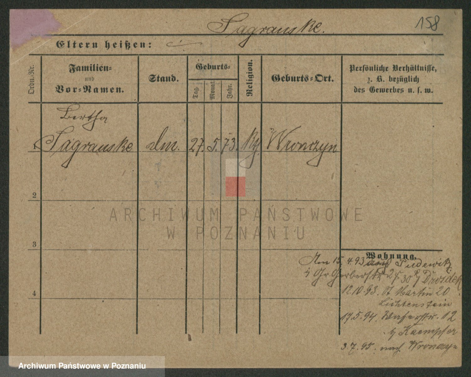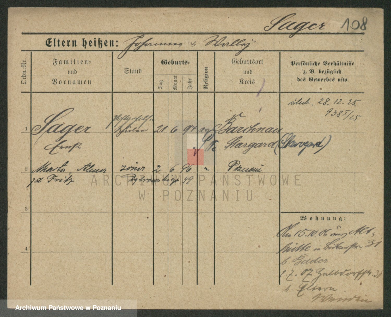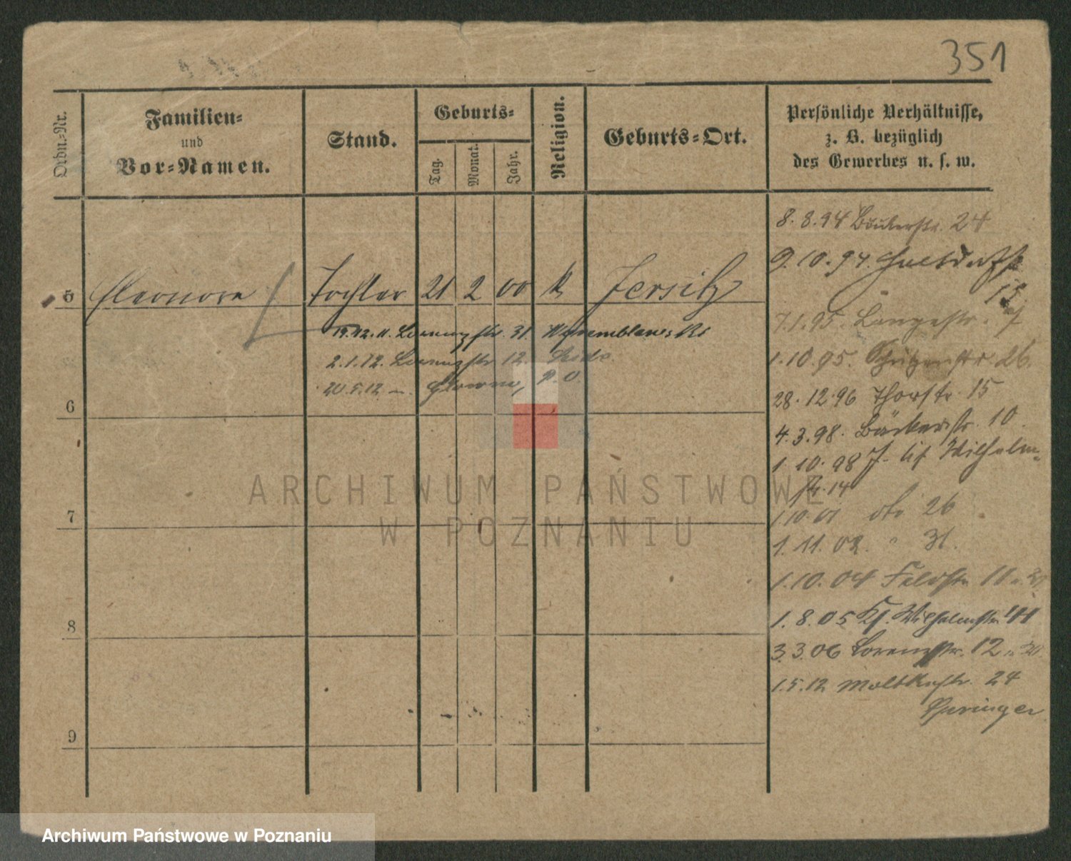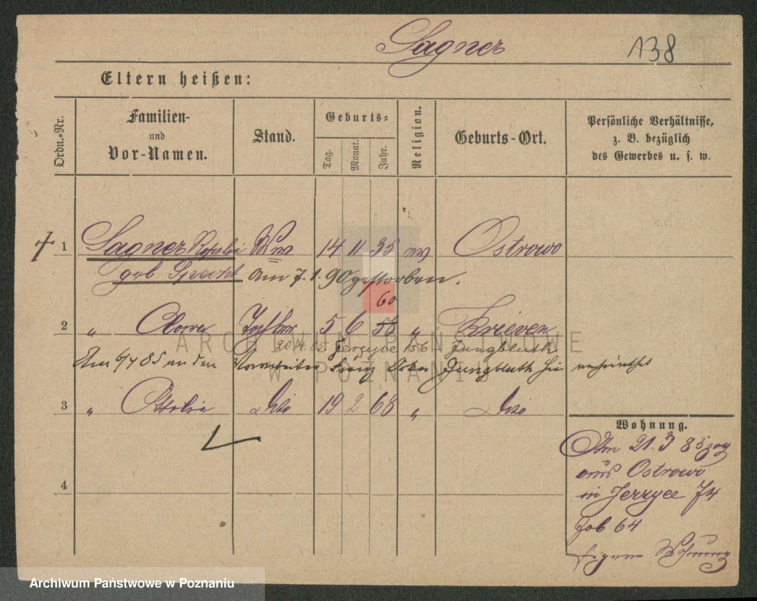 Podgląd karty osobowej dostępny jest po kliknięciu na nazwisko lub ikonkę karty. Można dokonywać powiększenia (ikony na górze) lub przechodzić między kolejnymi skanami (strzałki po bokach).