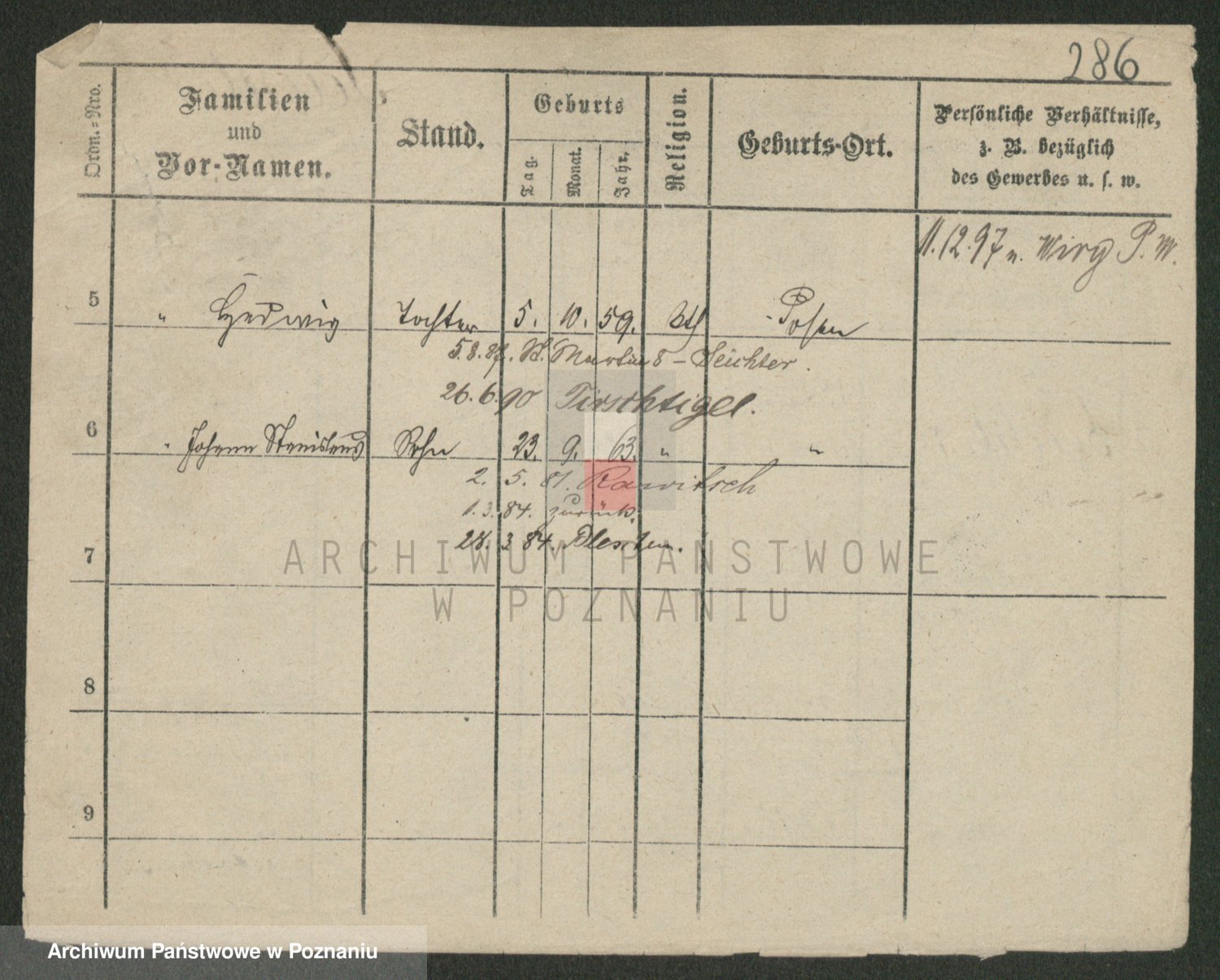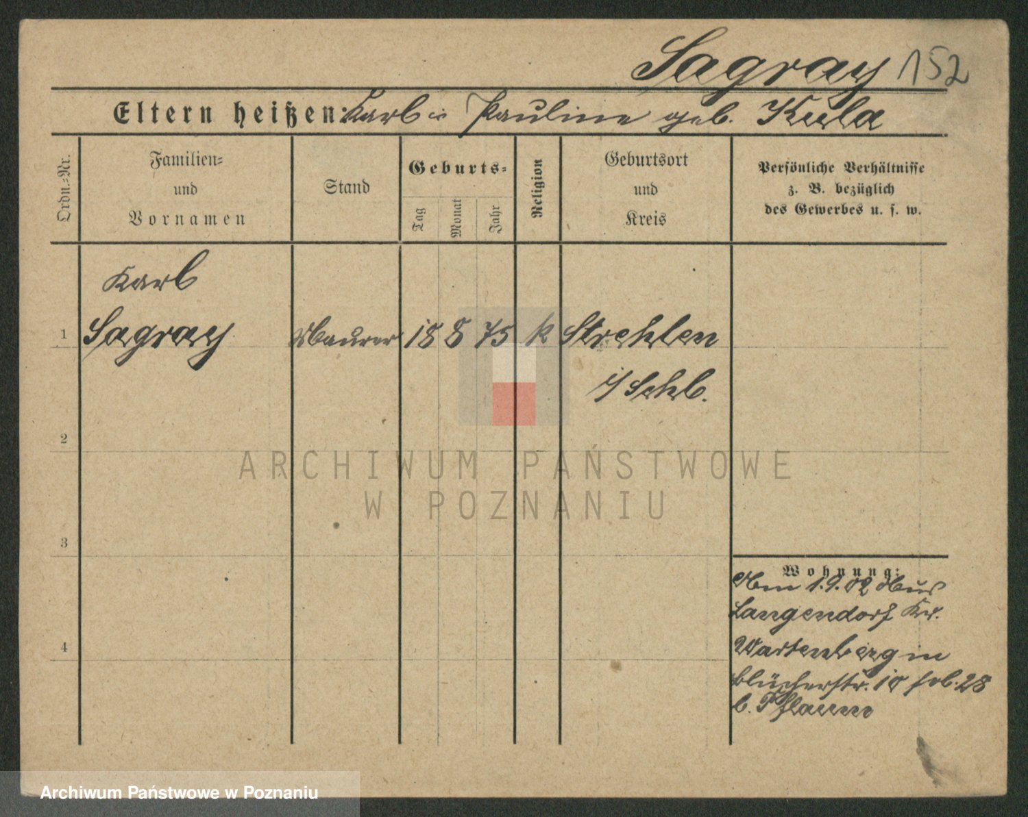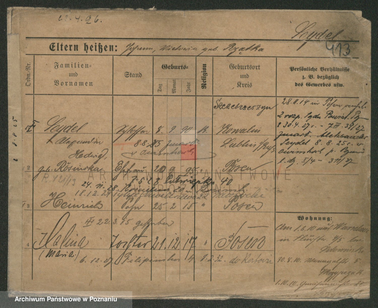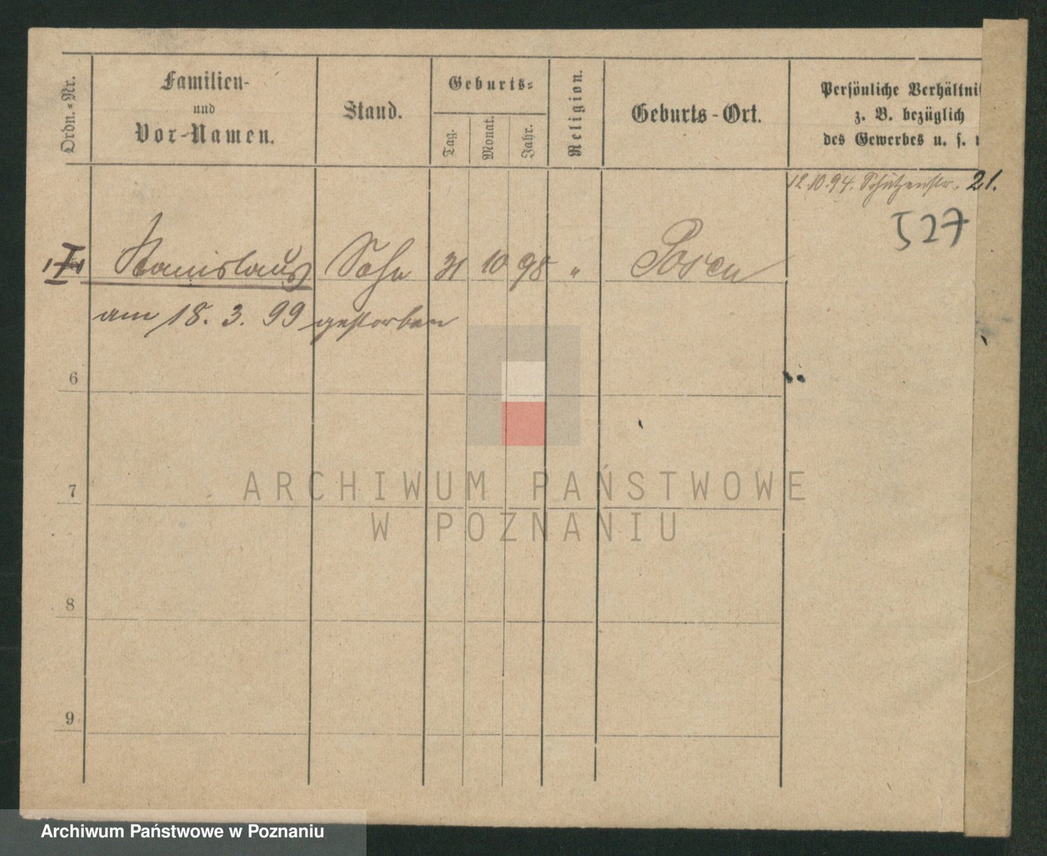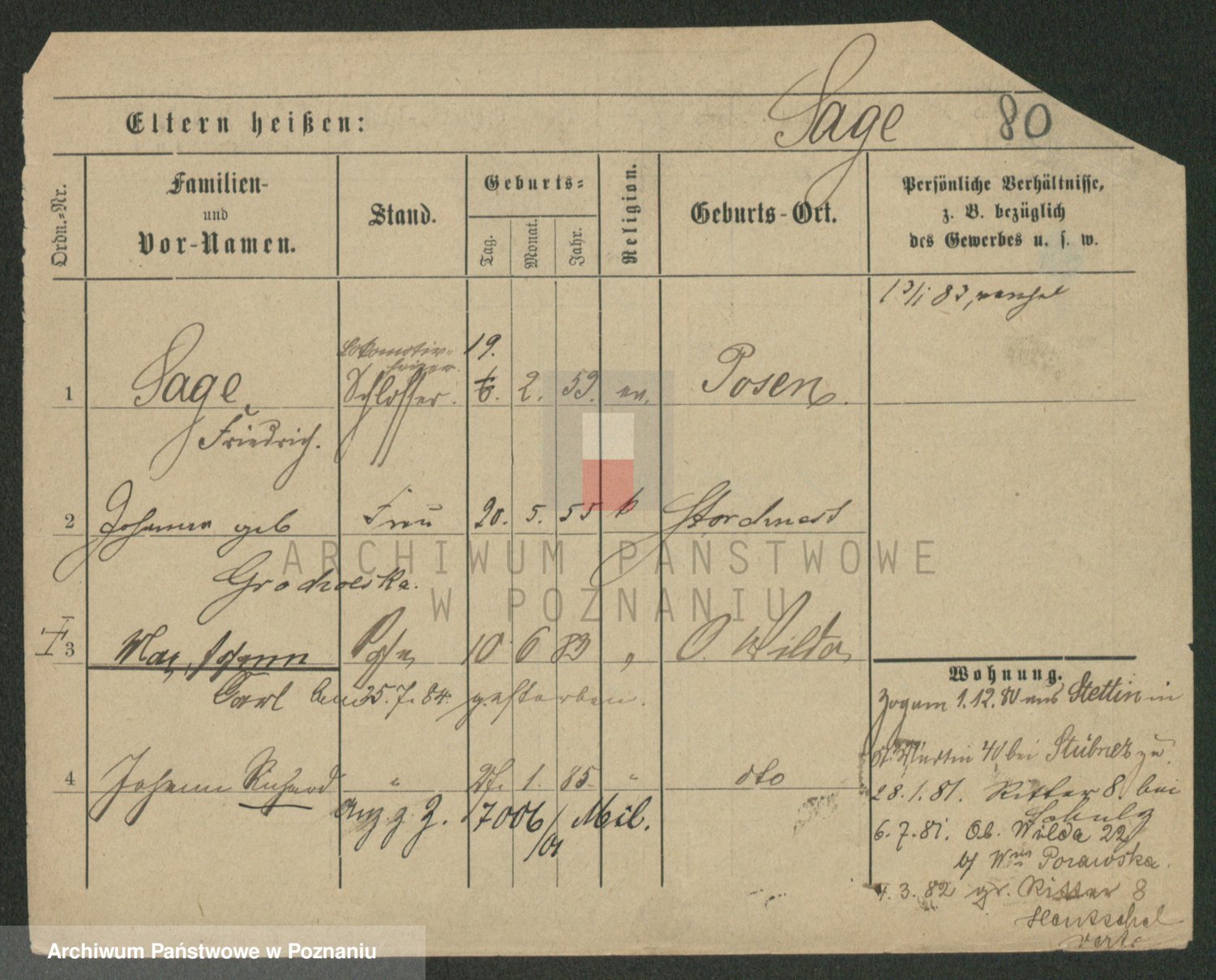Podgląd karty osobowej dostępny jest po kliknięciu na nazwisko lub ikonkę karty. Można dokonywać powiększenia (ikony na górze) lub przechodzić między kolejnymi skanami (strzałki po bokach).