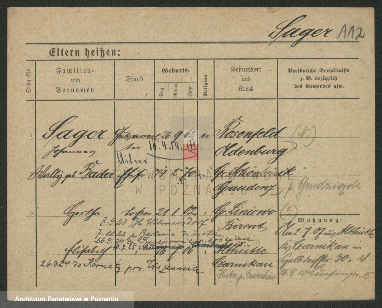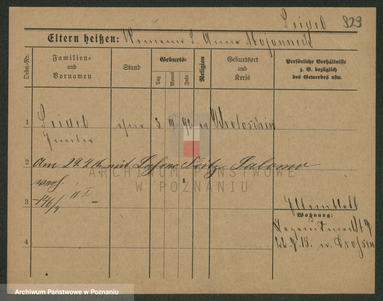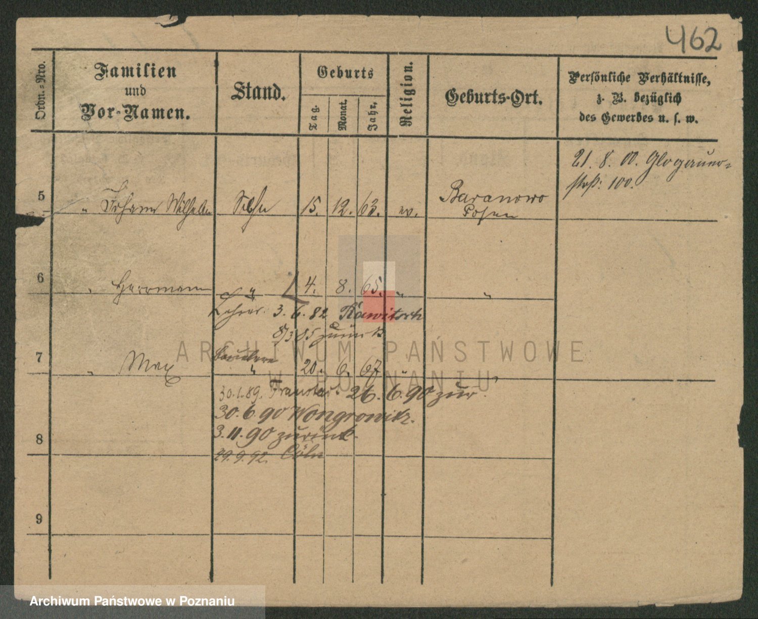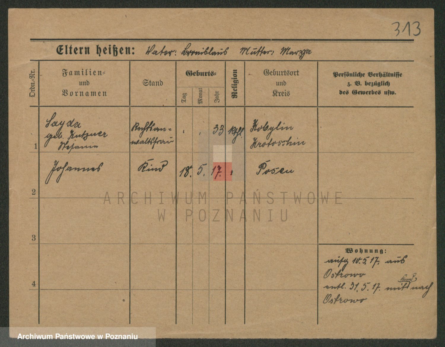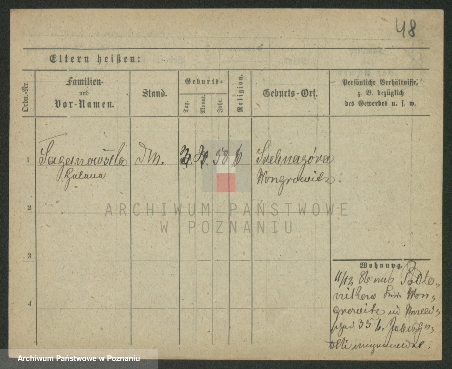 Podgląd karty osobowej dostępny jest po kliknięciu na nazwisko lub ikonkę karty. Można dokonywać powiększenia (ikony na górze) lub przechodzić między kolejnymi skanami (strzałki po bokach).
