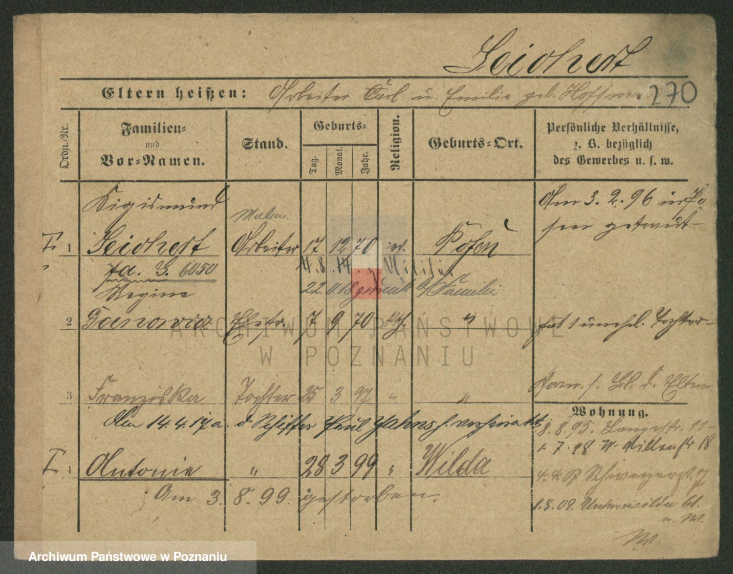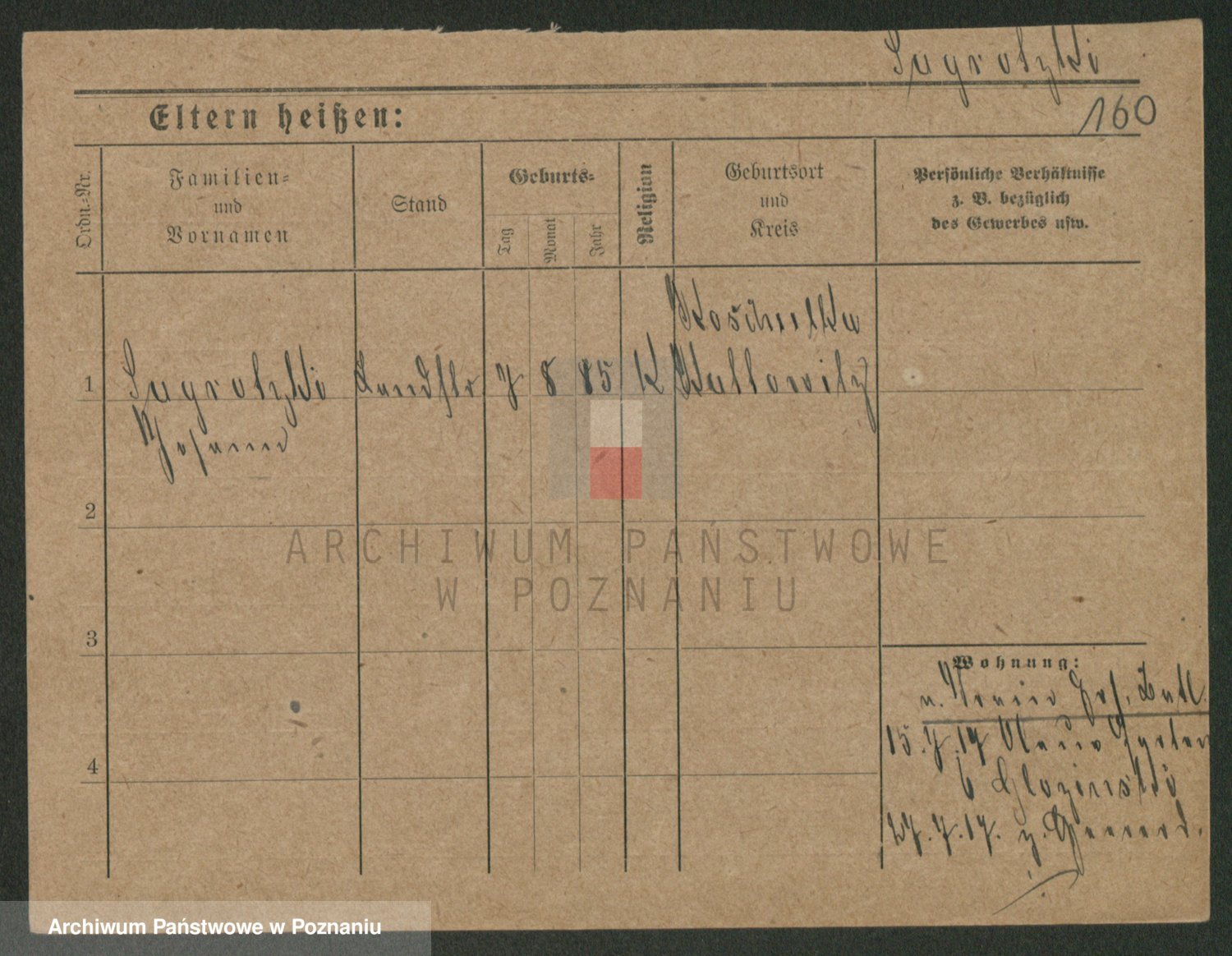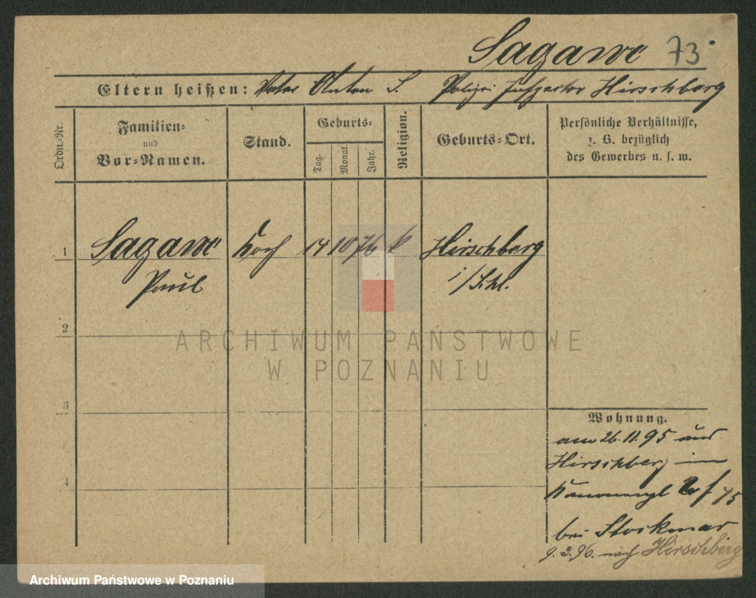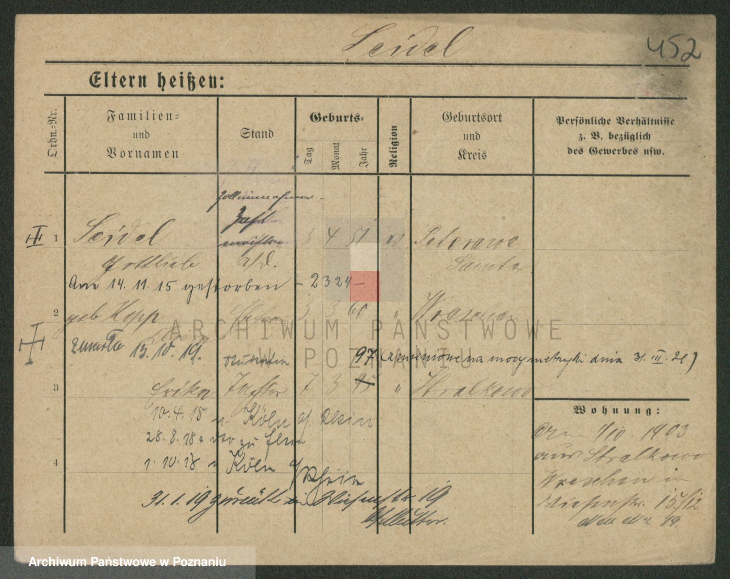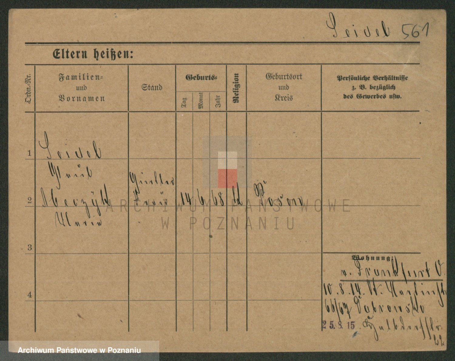 Podgląd karty osobowej dostępny jest po kliknięciu na nazwisko lub ikonkę karty. Można dokonywać powiększenia (ikony na górze) lub przechodzić między kolejnymi skanami (strzałki po bokach).