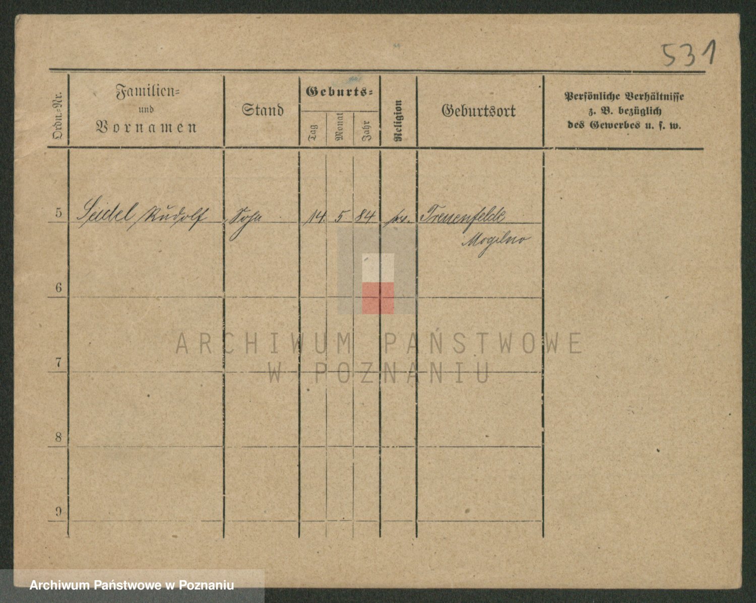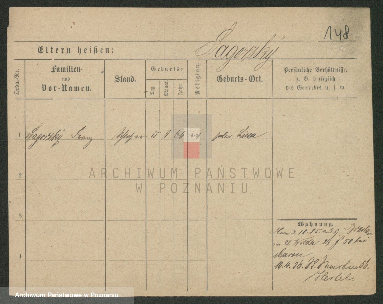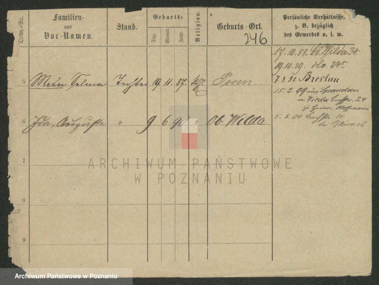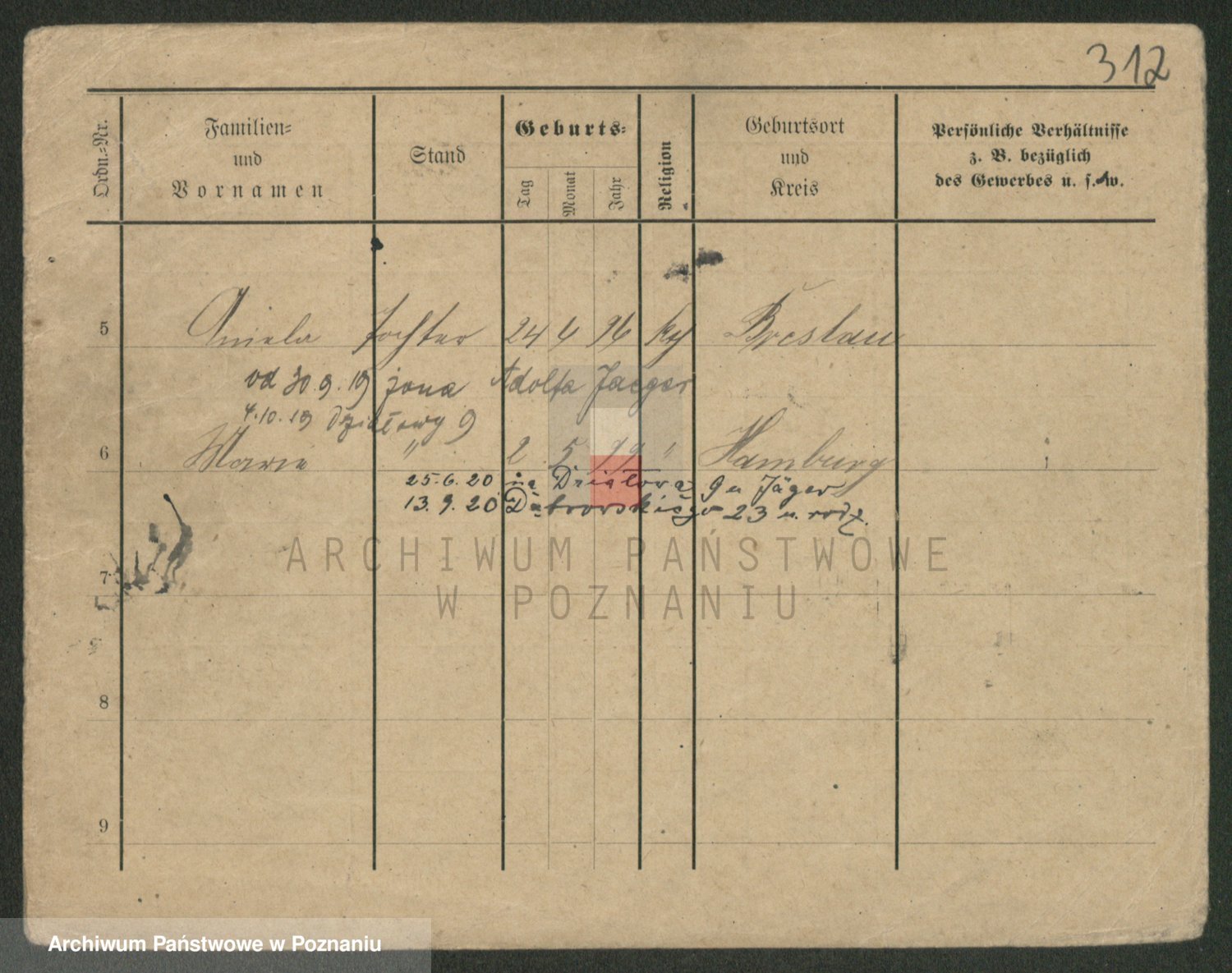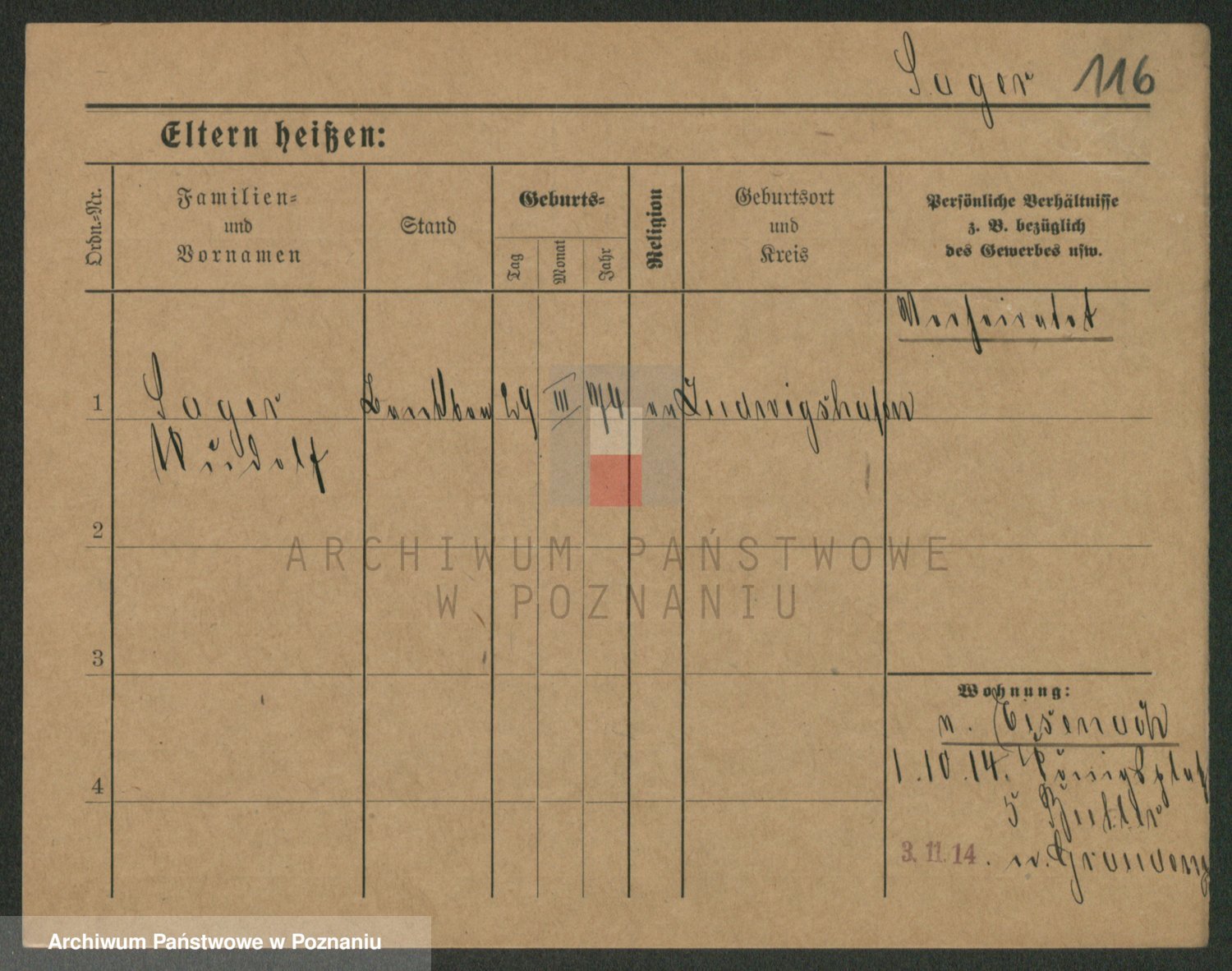 Podgląd karty osobowej dostępny jest po kliknięciu na nazwisko lub ikonkę karty. Można dokonywać powiększenia (ikony na górze) lub przechodzić między kolejnymi skanami (strzałki po bokach).