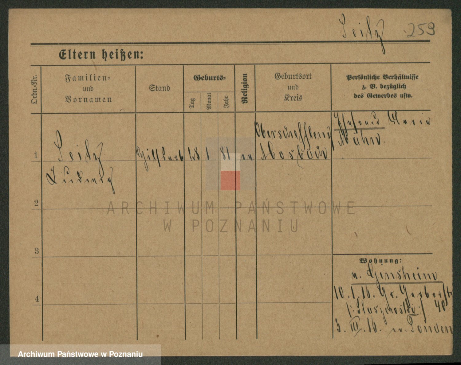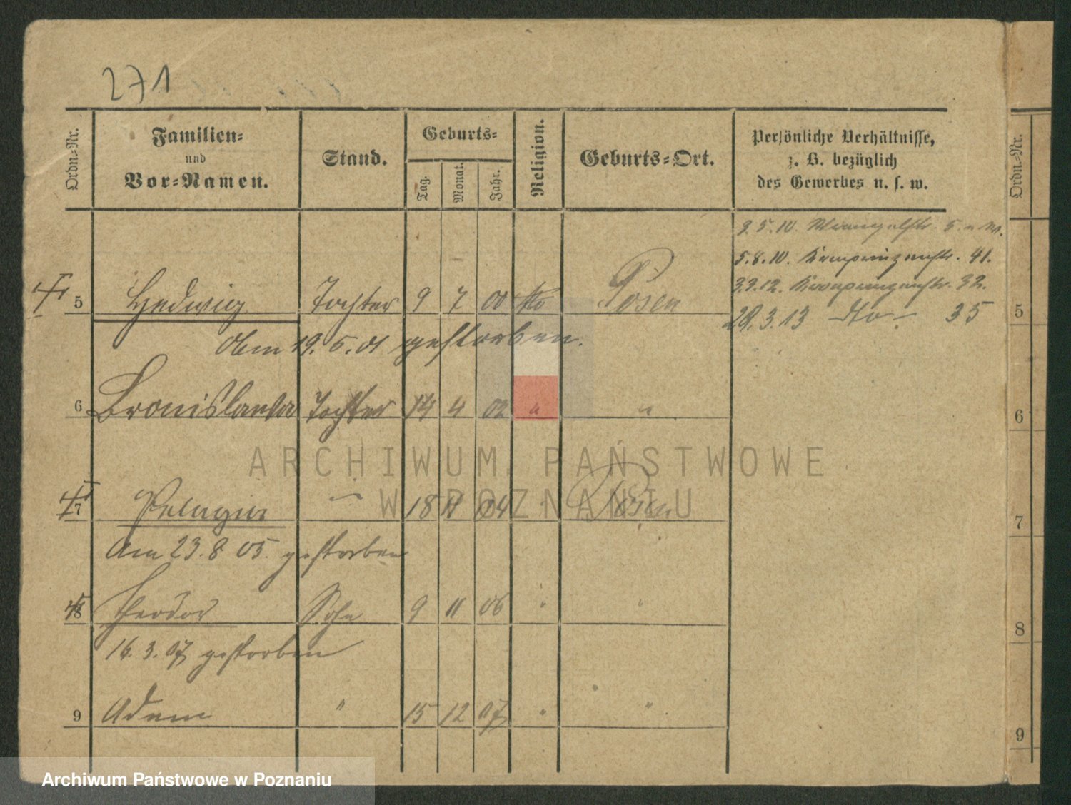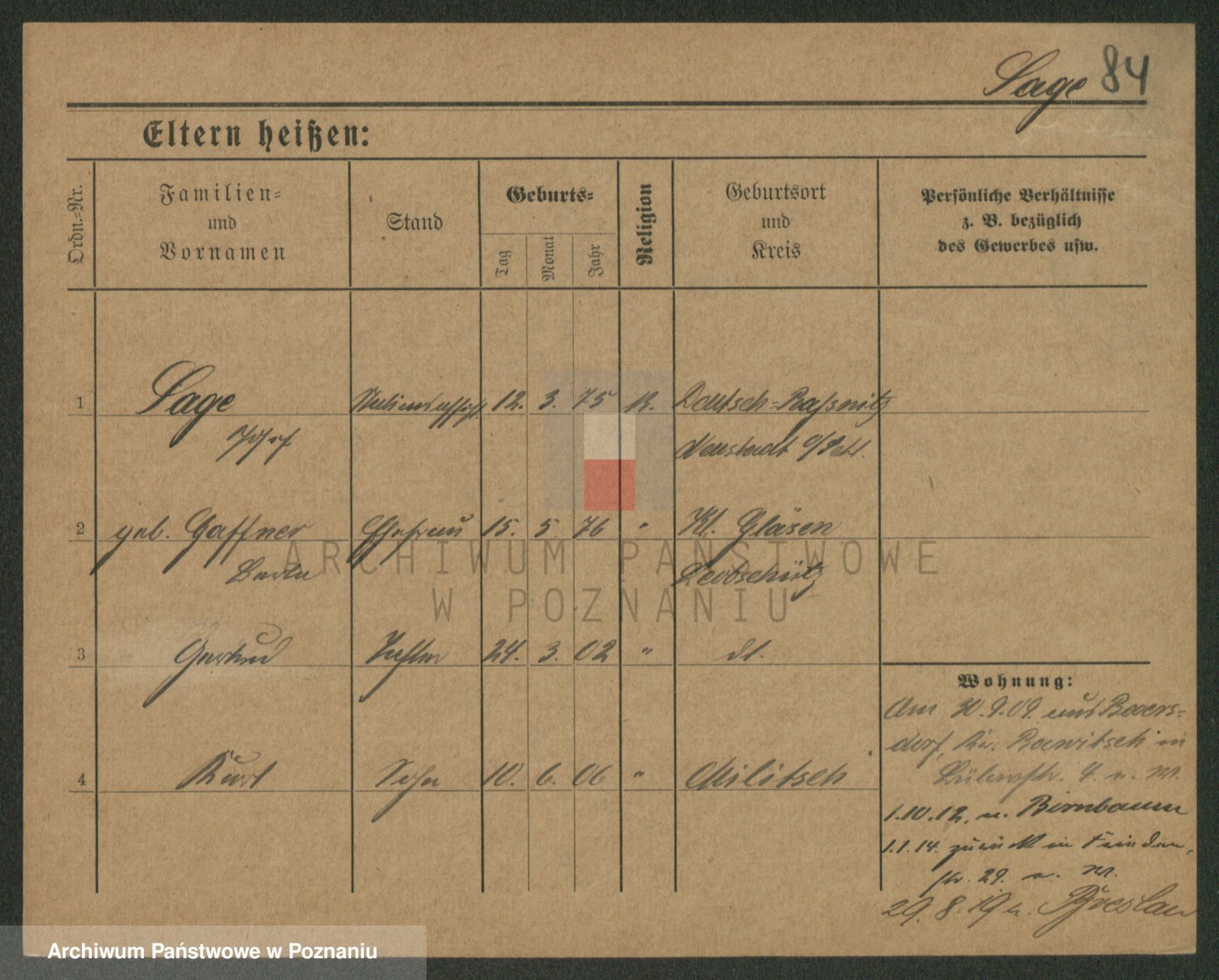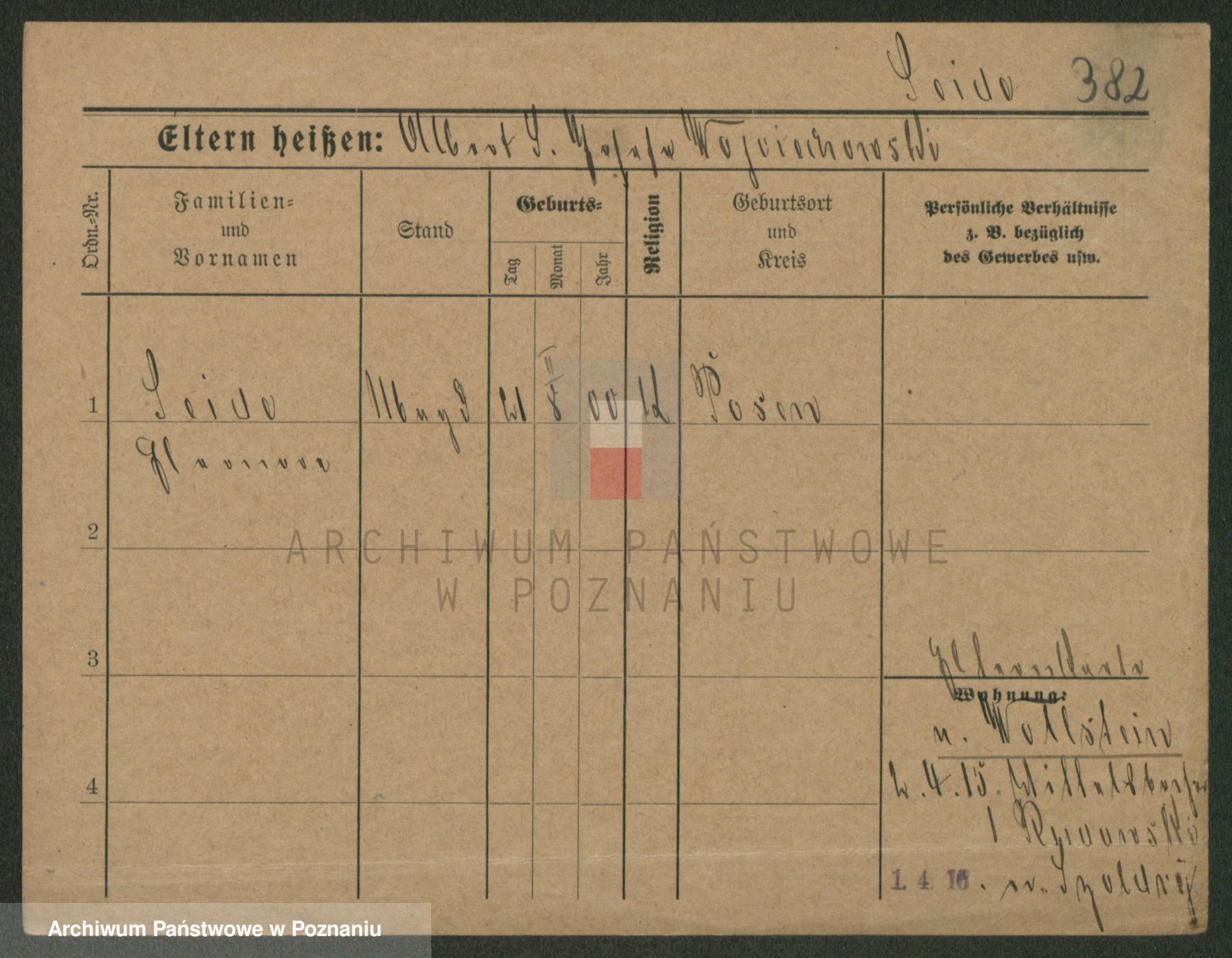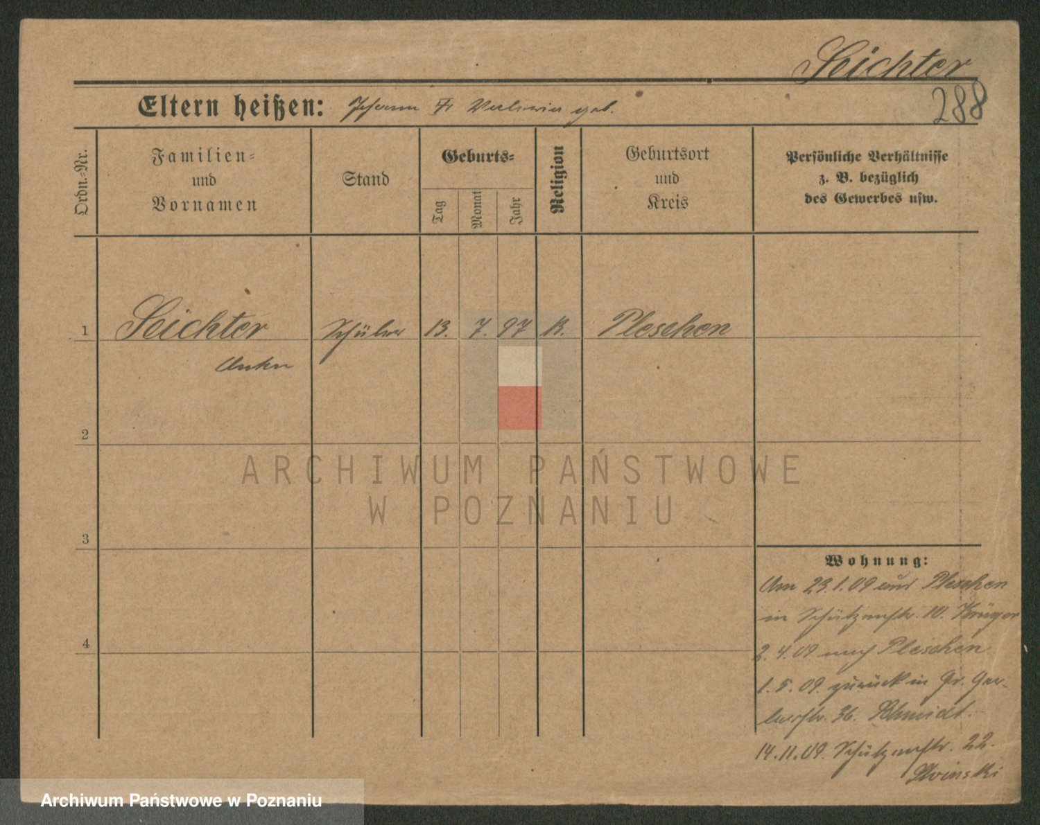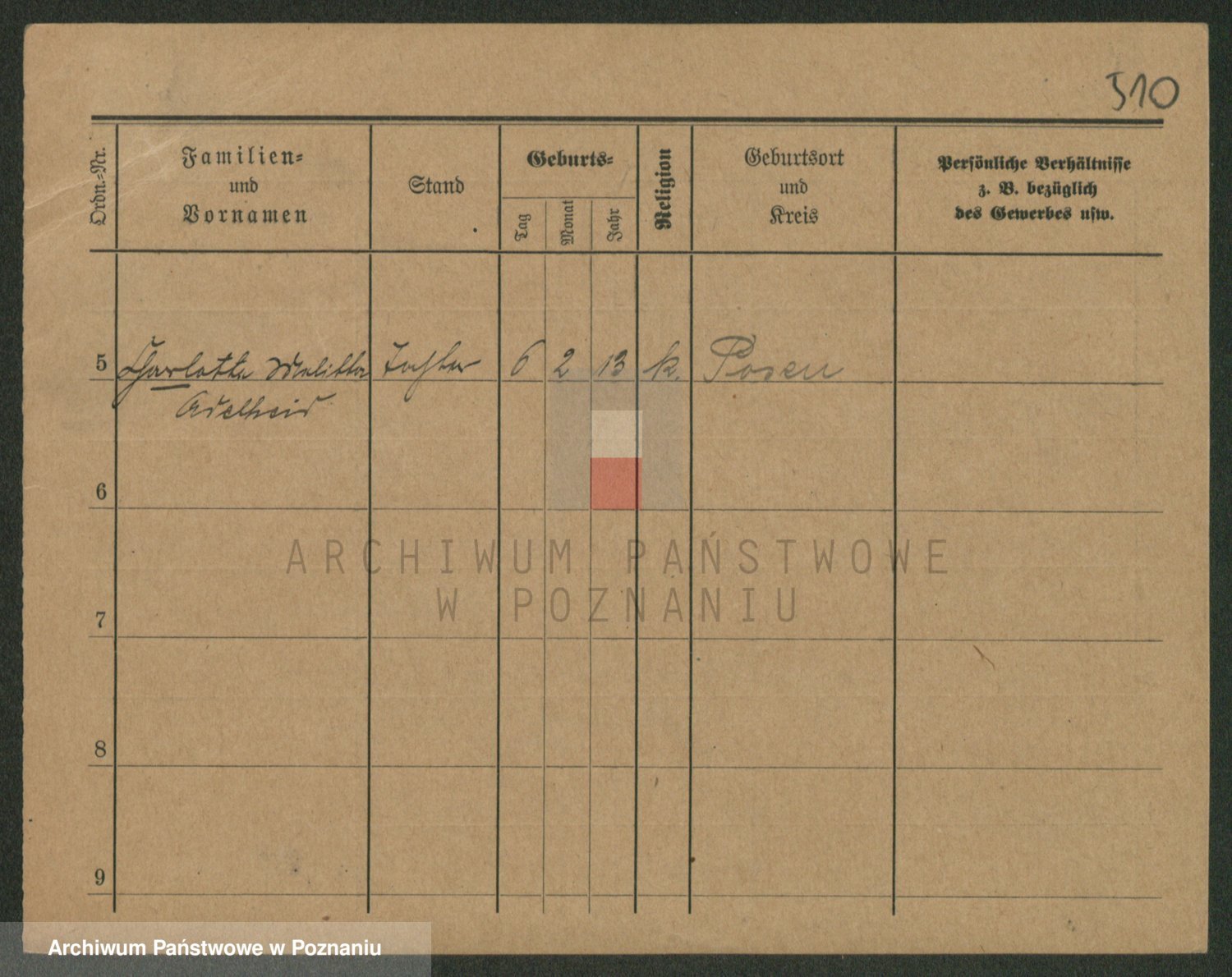 Podgląd karty osobowej dostępny jest po kliknięciu na nazwisko lub ikonkę karty. Można dokonywać powiększenia (ikony na górze) lub przechodzić między kolejnymi skanami (strzałki po bokach).