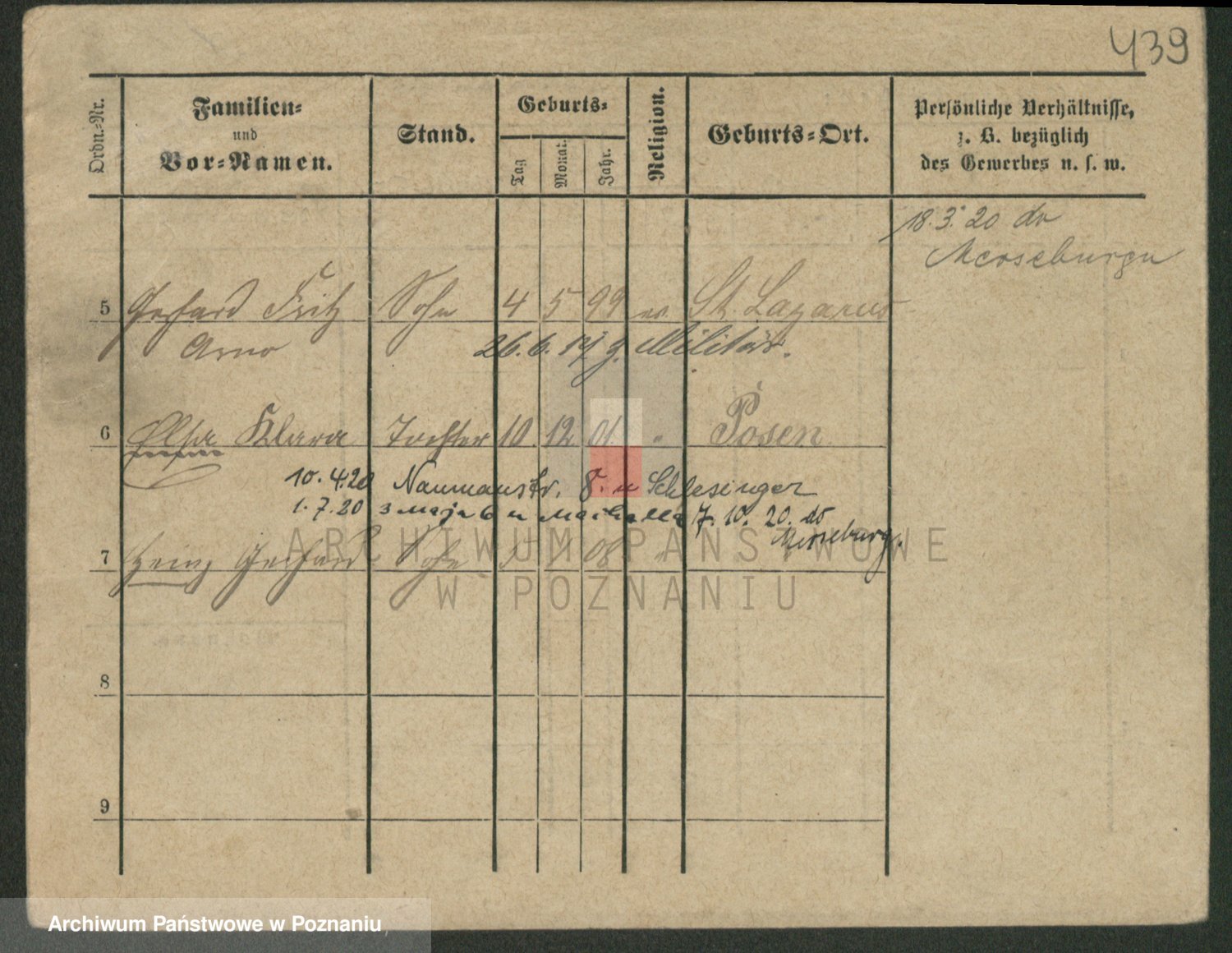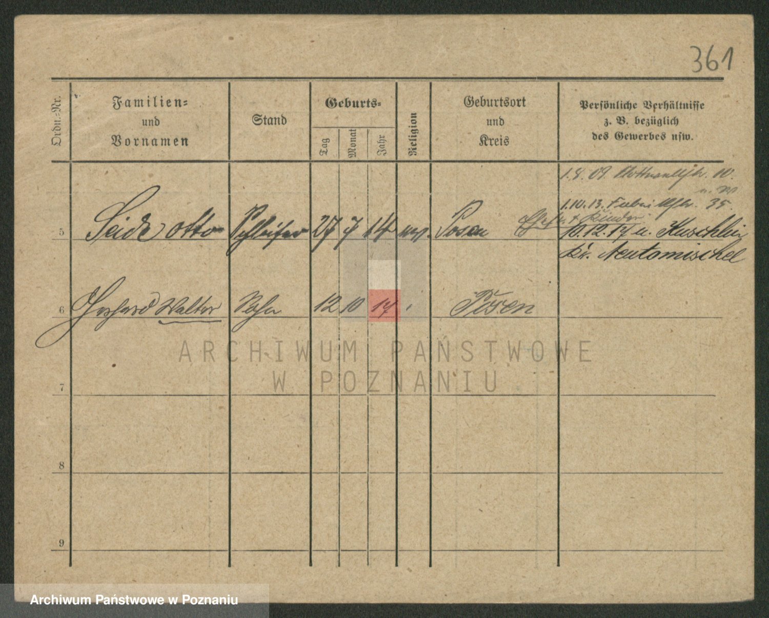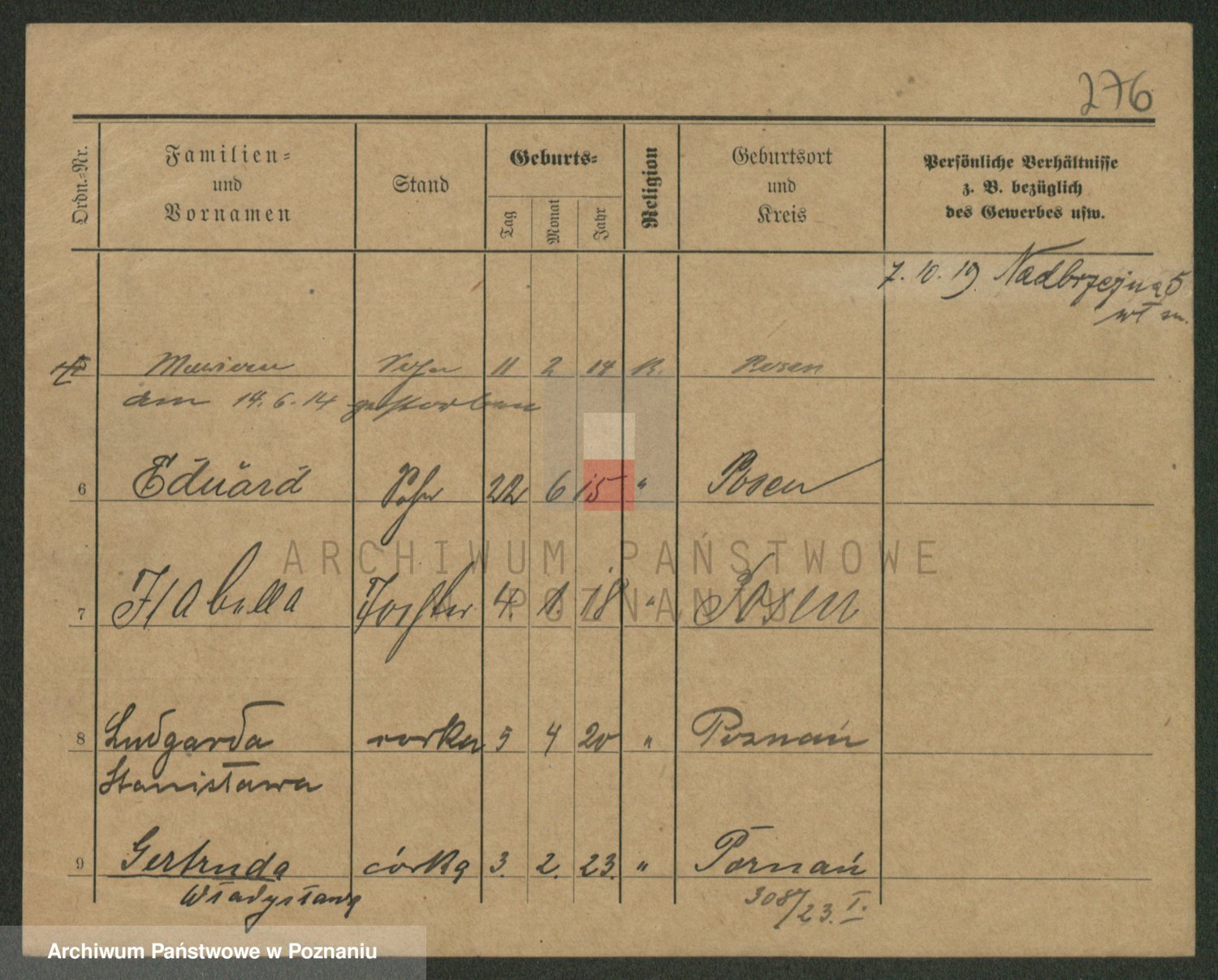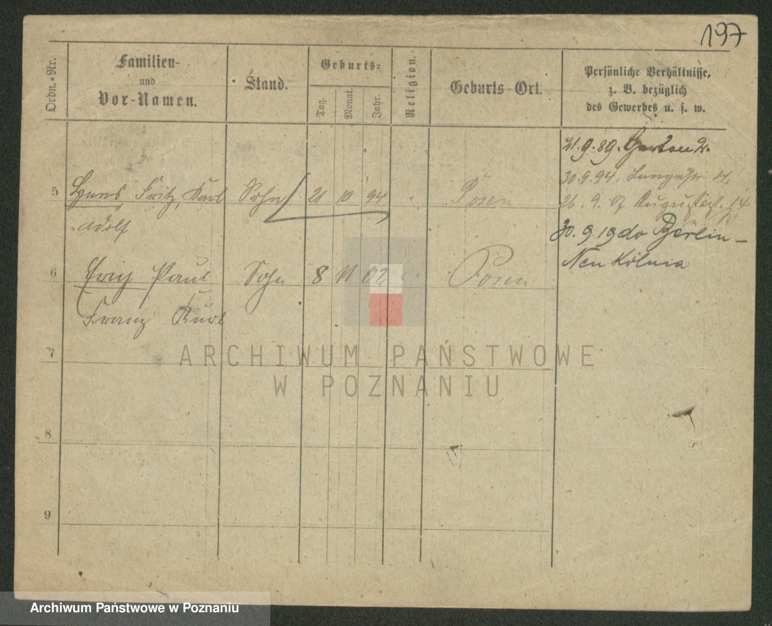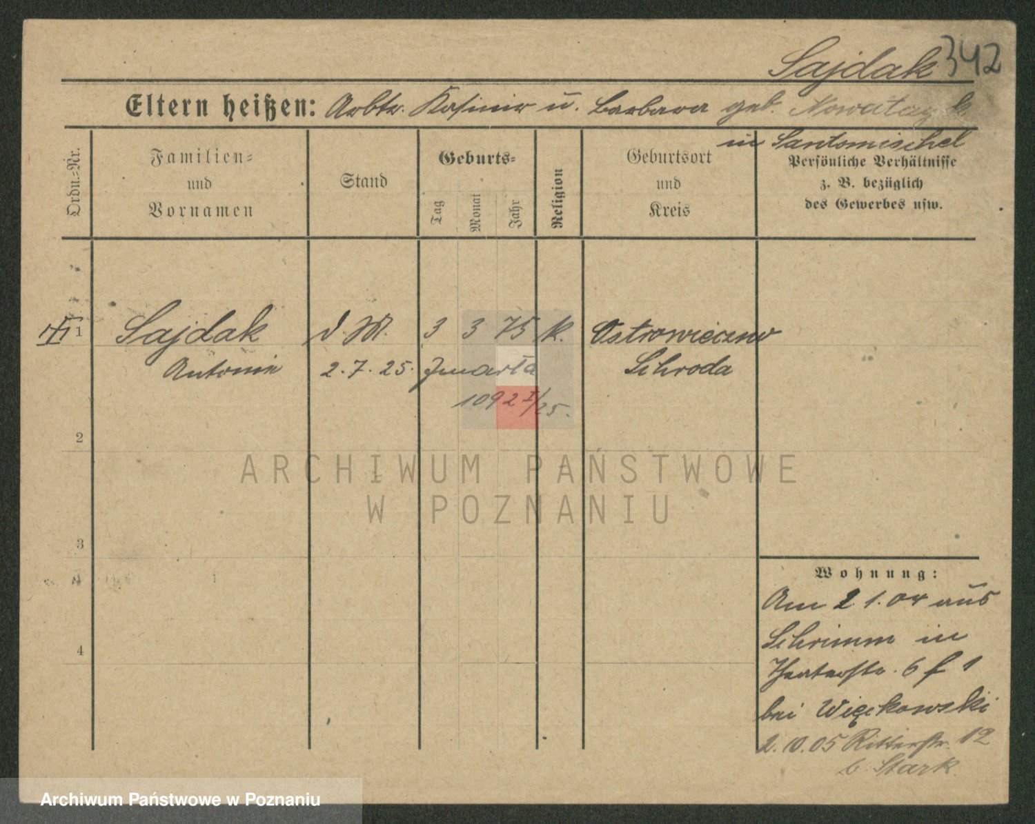 Podgląd karty osobowej dostępny jest po kliknięciu na nazwisko lub ikonkę karty. Można dokonywać powiększenia (ikony na górze) lub przechodzić między kolejnymi skanami (strzałki po bokach).
