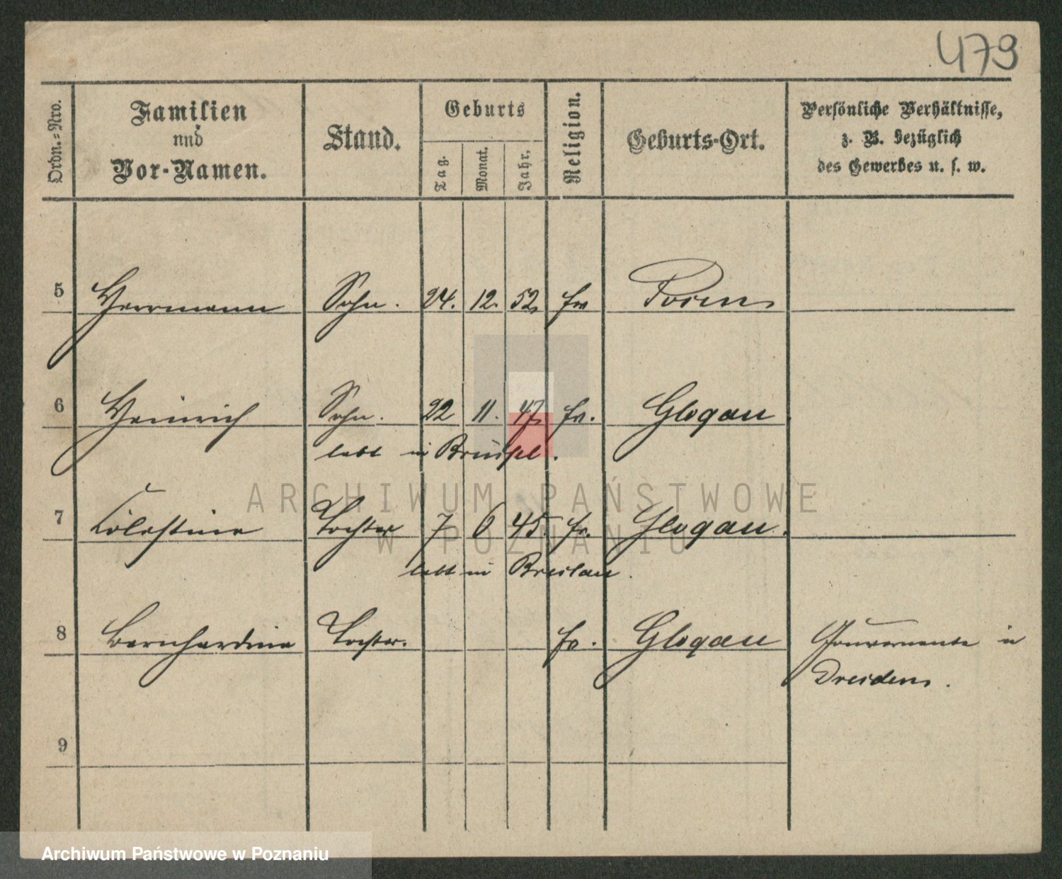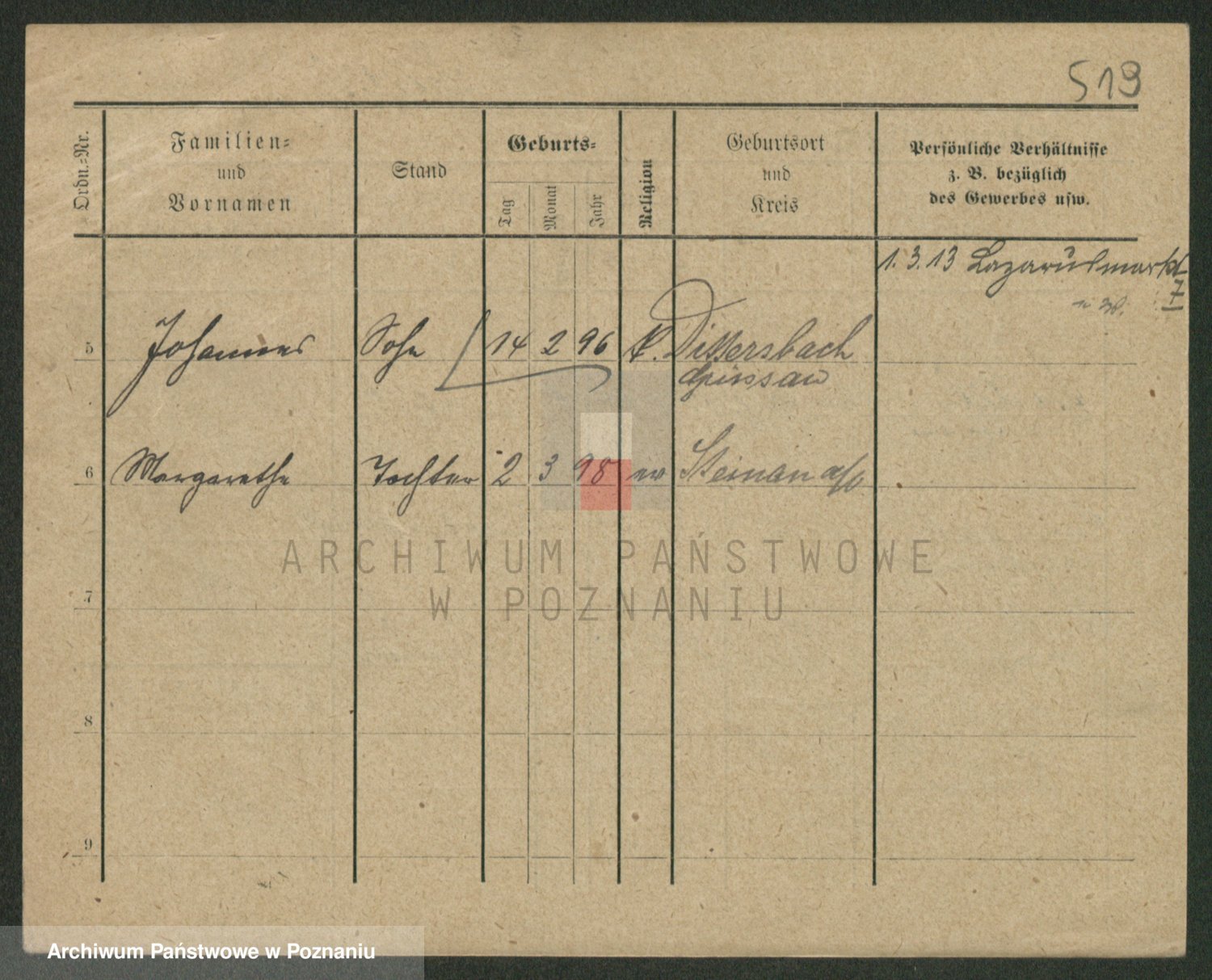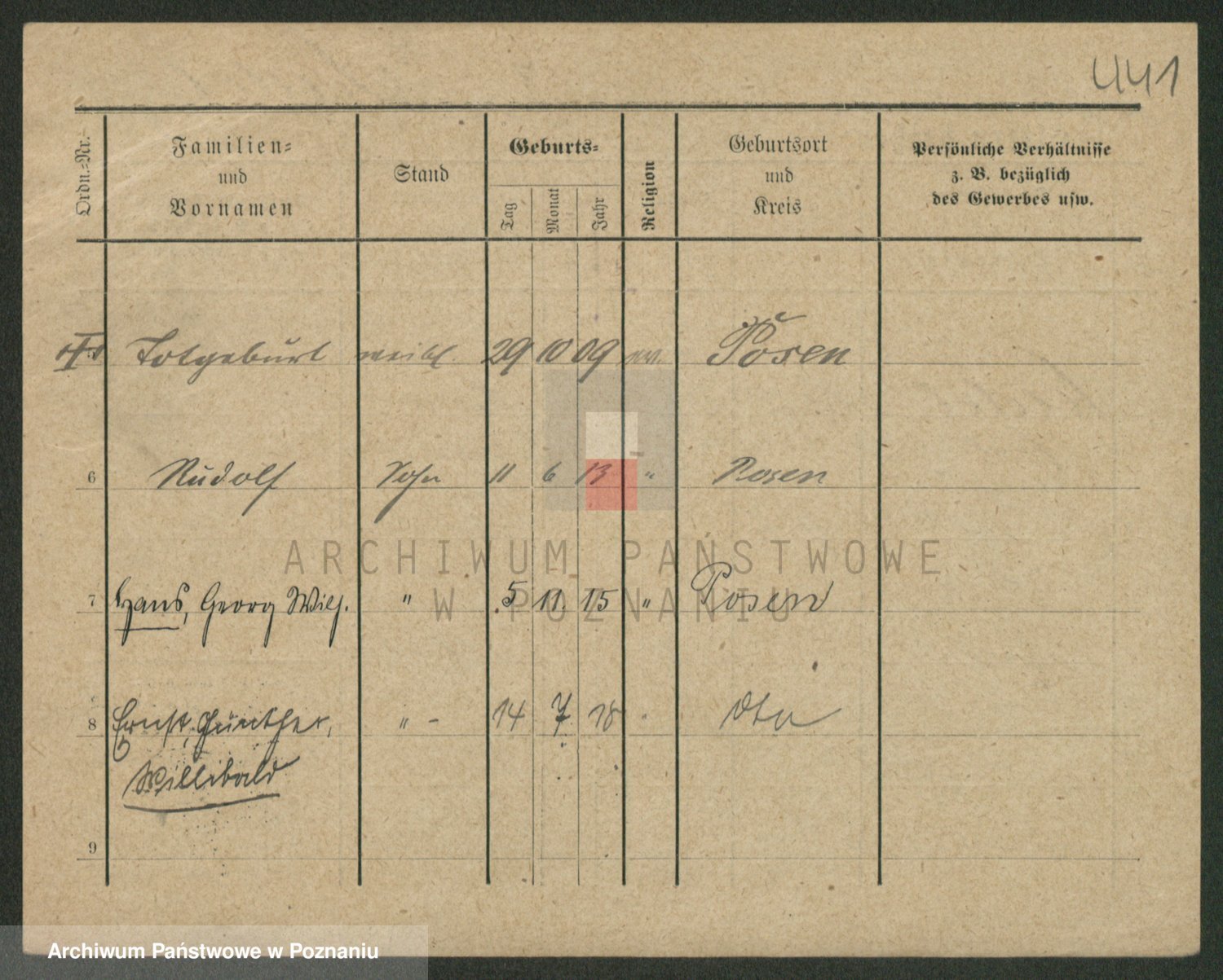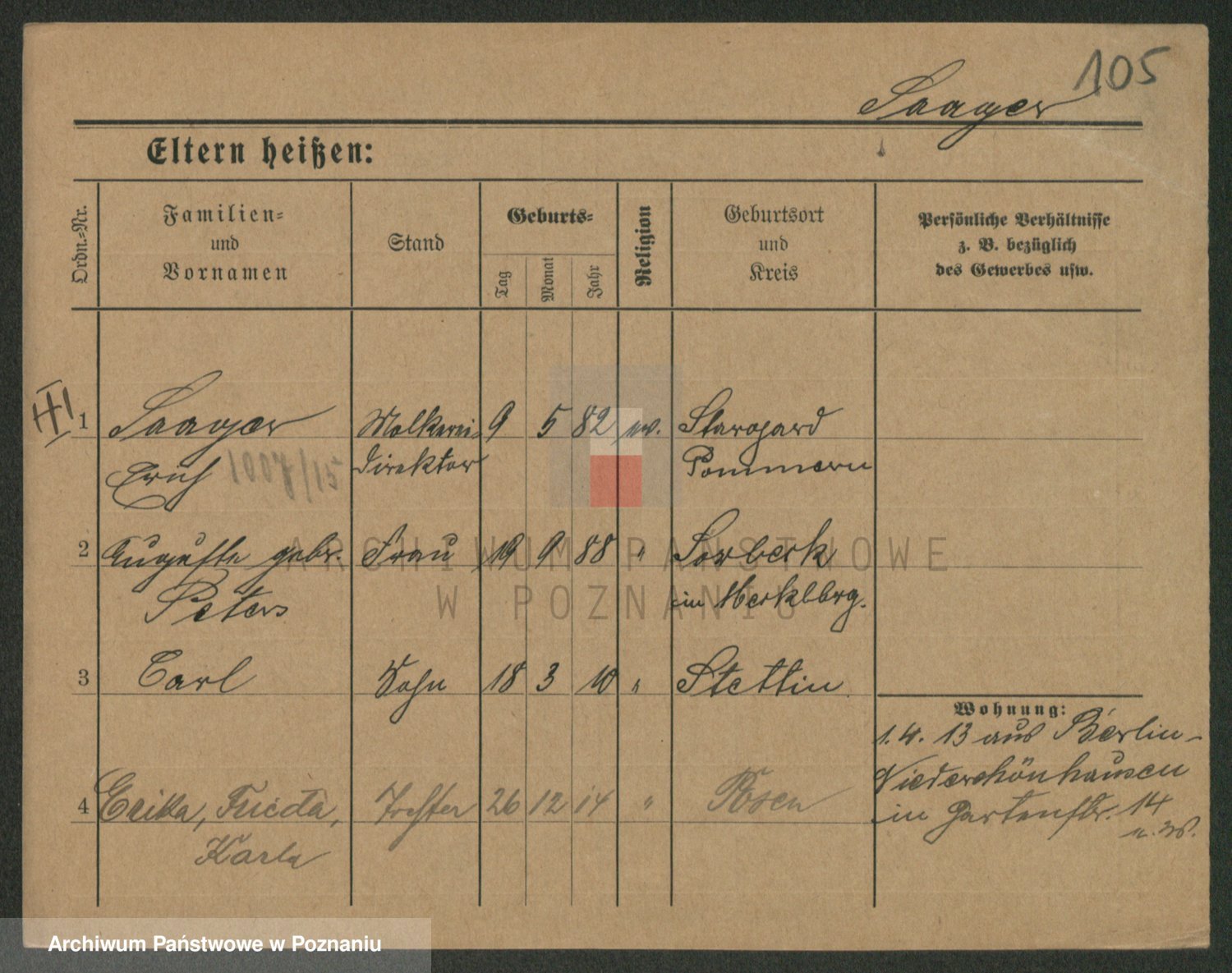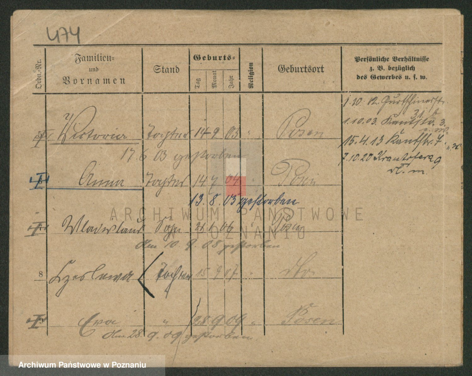 Podgląd karty osobowej dostępny jest po kliknięciu na nazwisko lub ikonkę karty. Można dokonywać powiększenia (ikony na górze) lub przechodzić między kolejnymi skanami (strzałki po bokach).