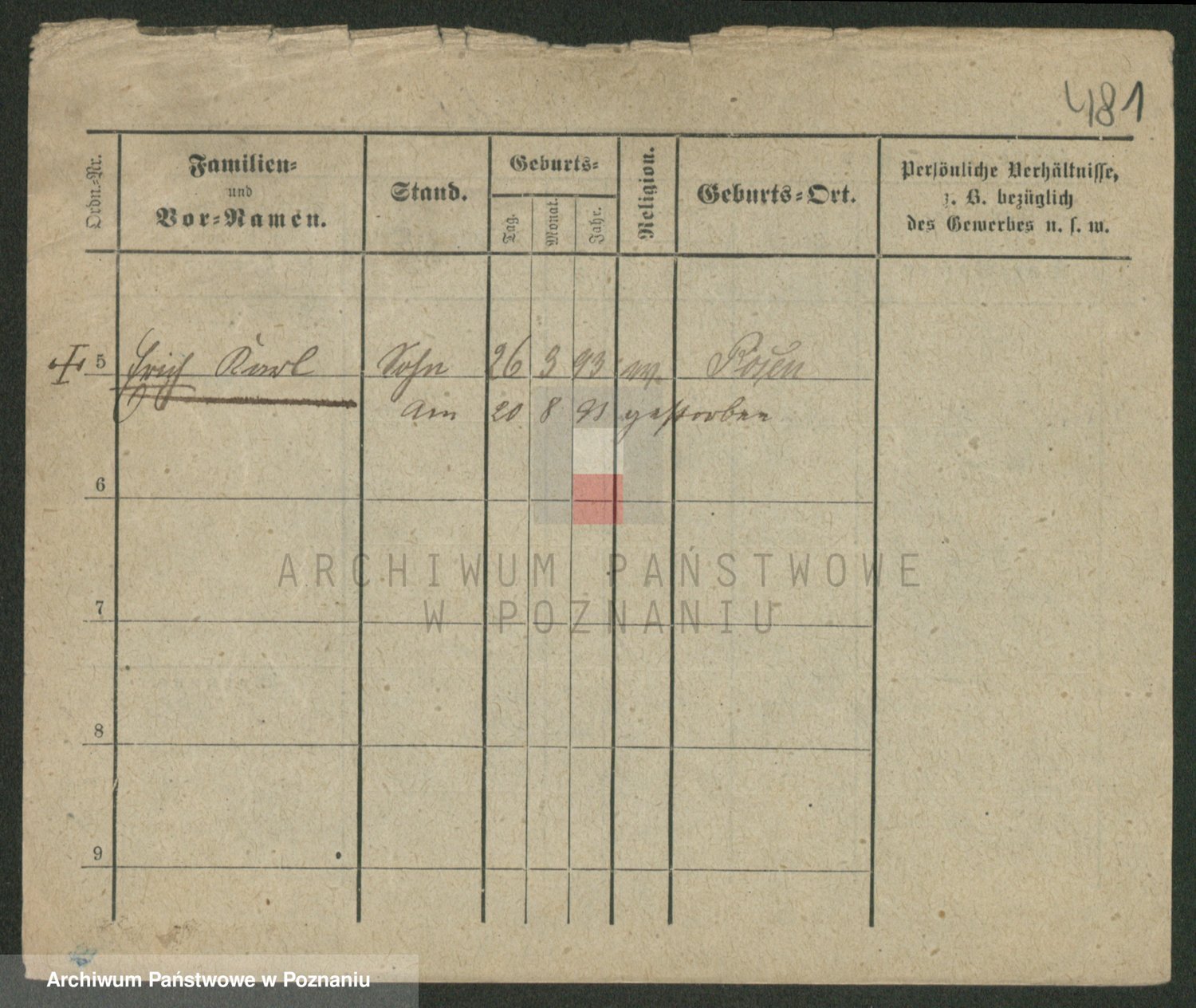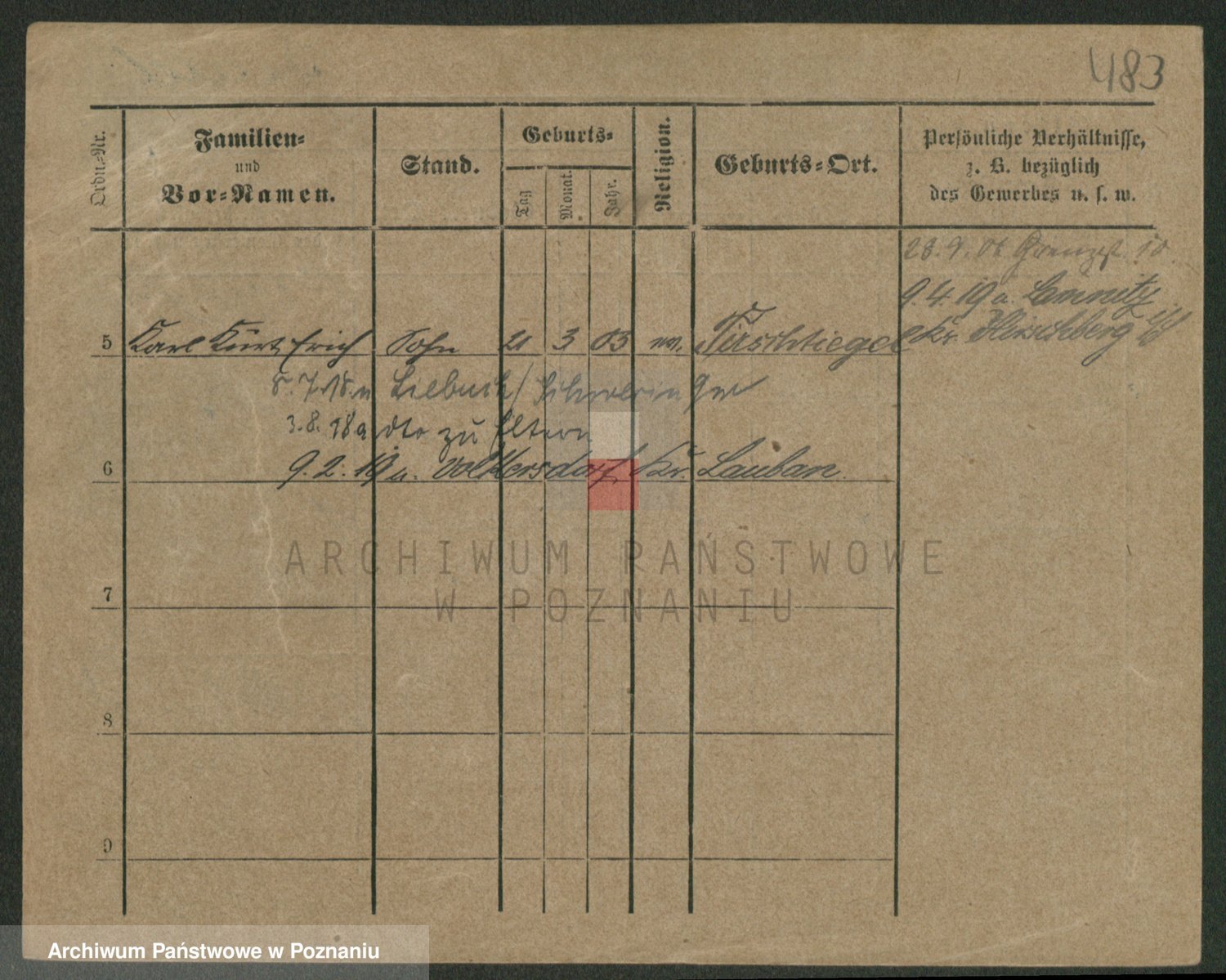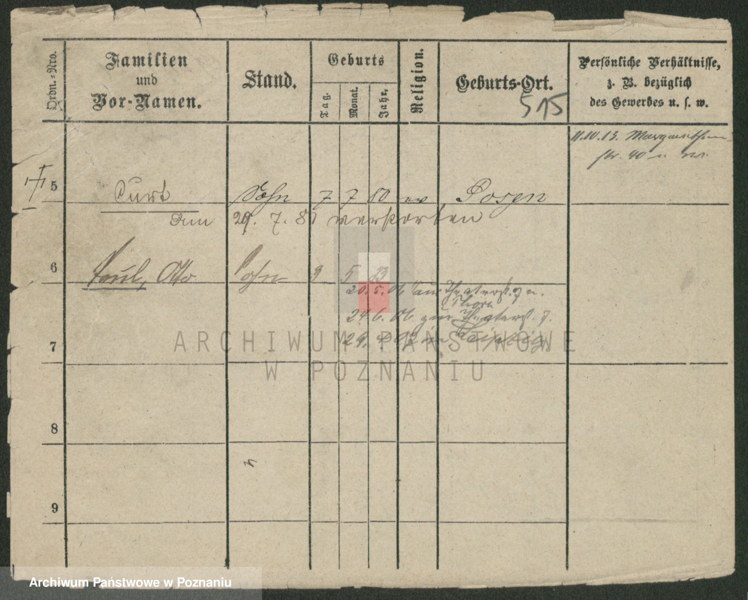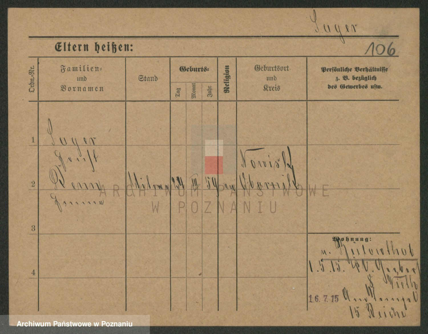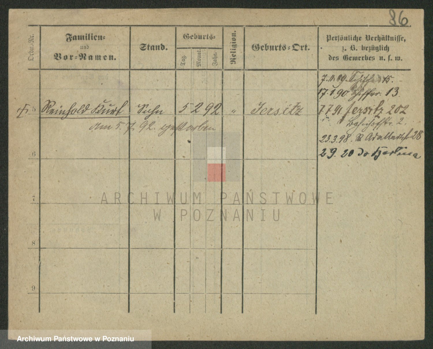 Podgląd karty osobowej dostępny jest po kliknięciu na nazwisko lub ikonkę karty. Można dokonywać powiększenia (ikony na górze) lub przechodzić między kolejnymi skanami (strzałki po bokach).