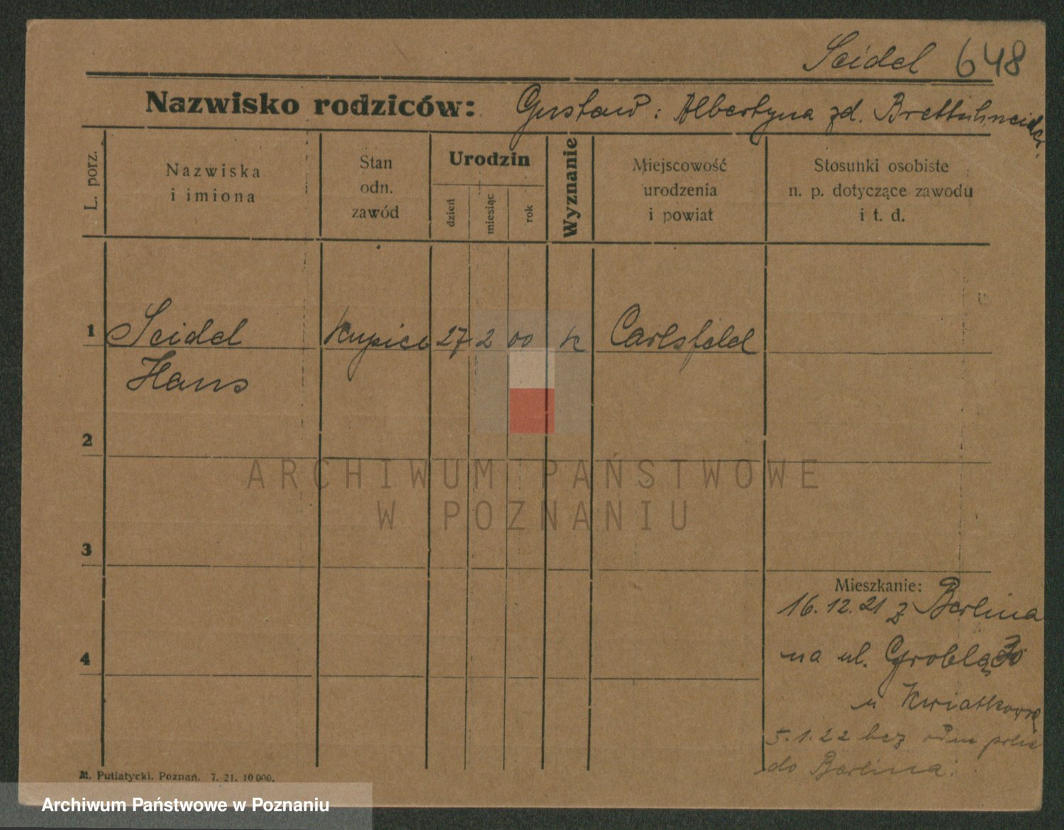 Seideman, Fritz Carl Gus Johannes