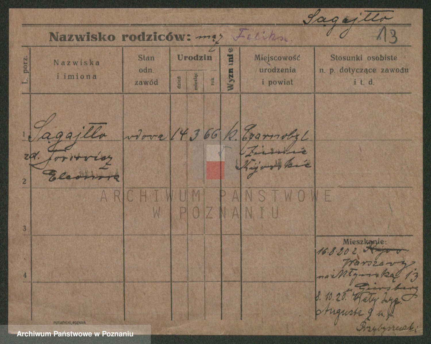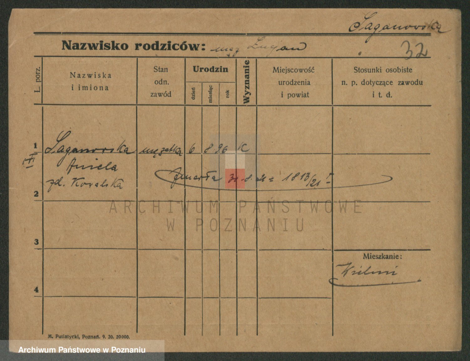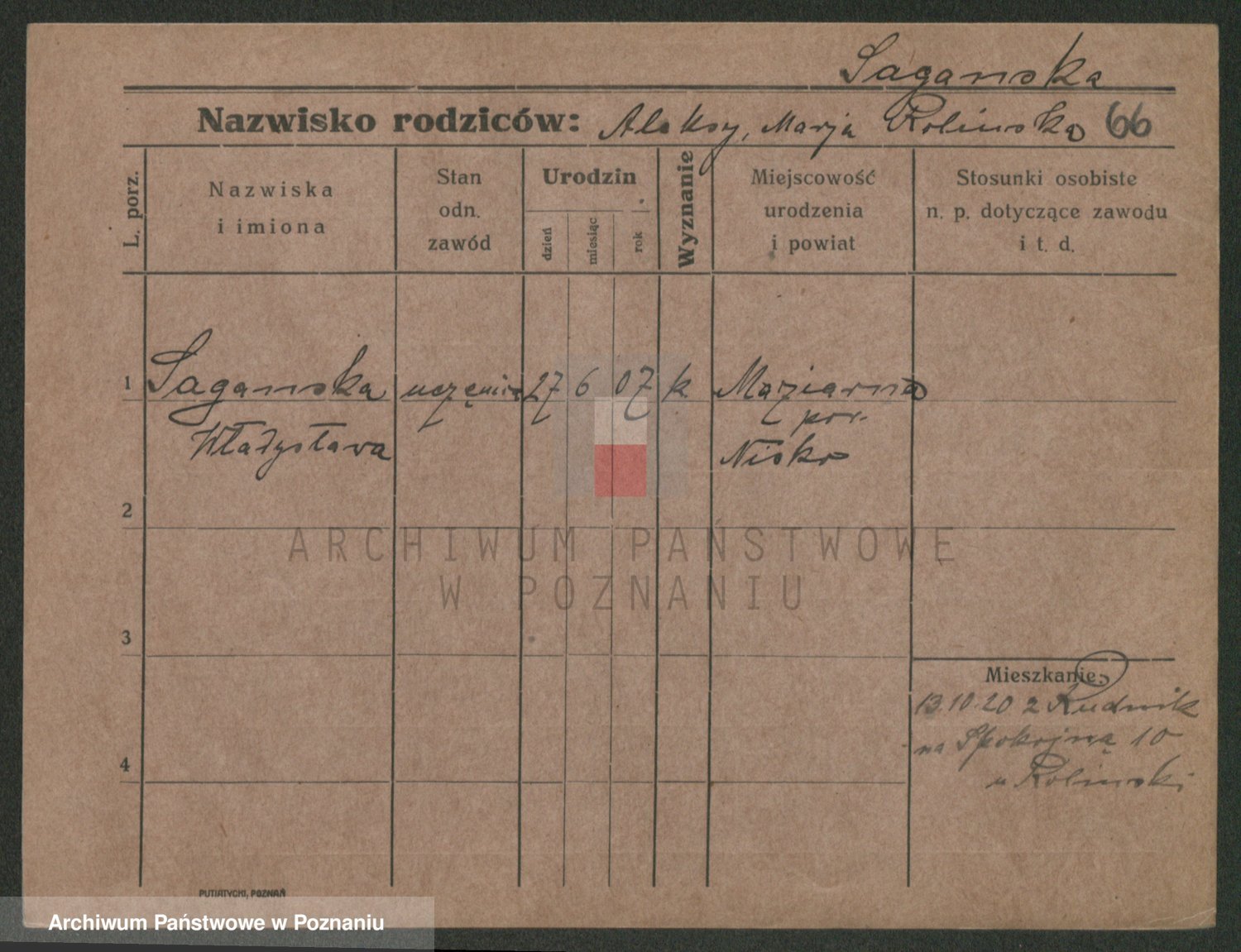 Saganowski z d. Sudzinska, Franziska