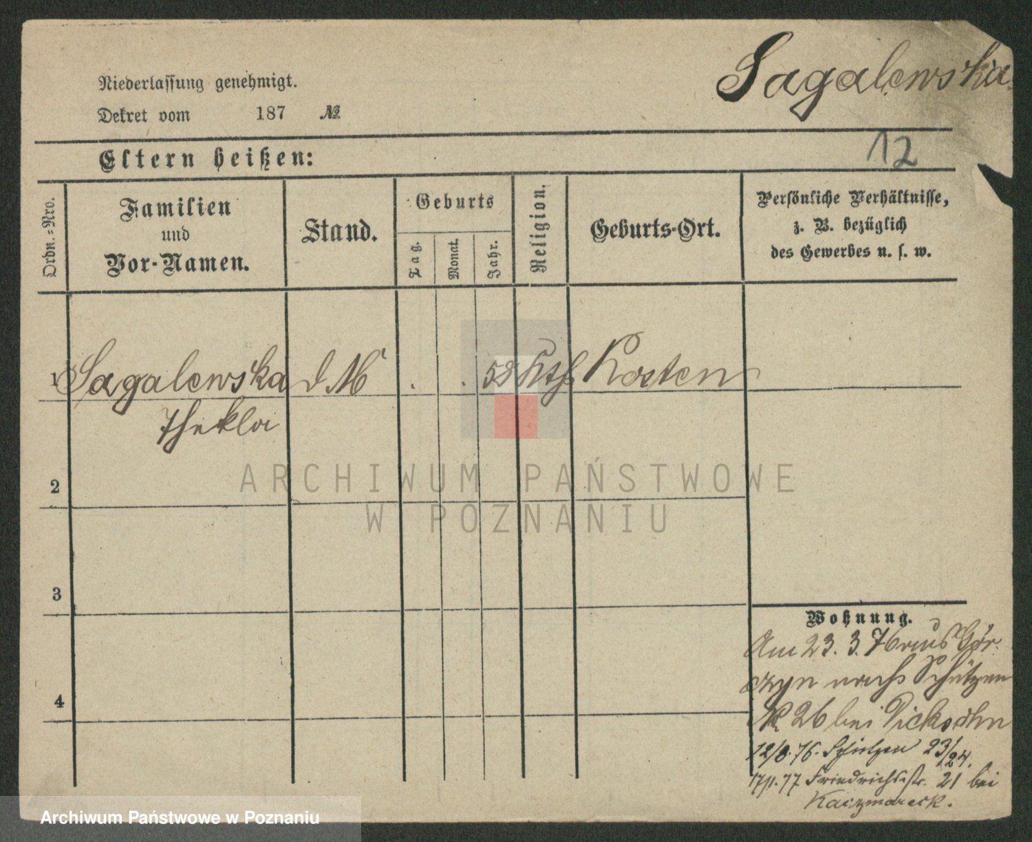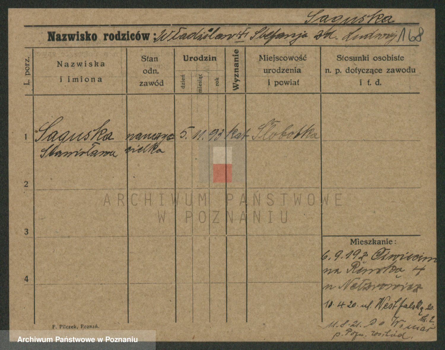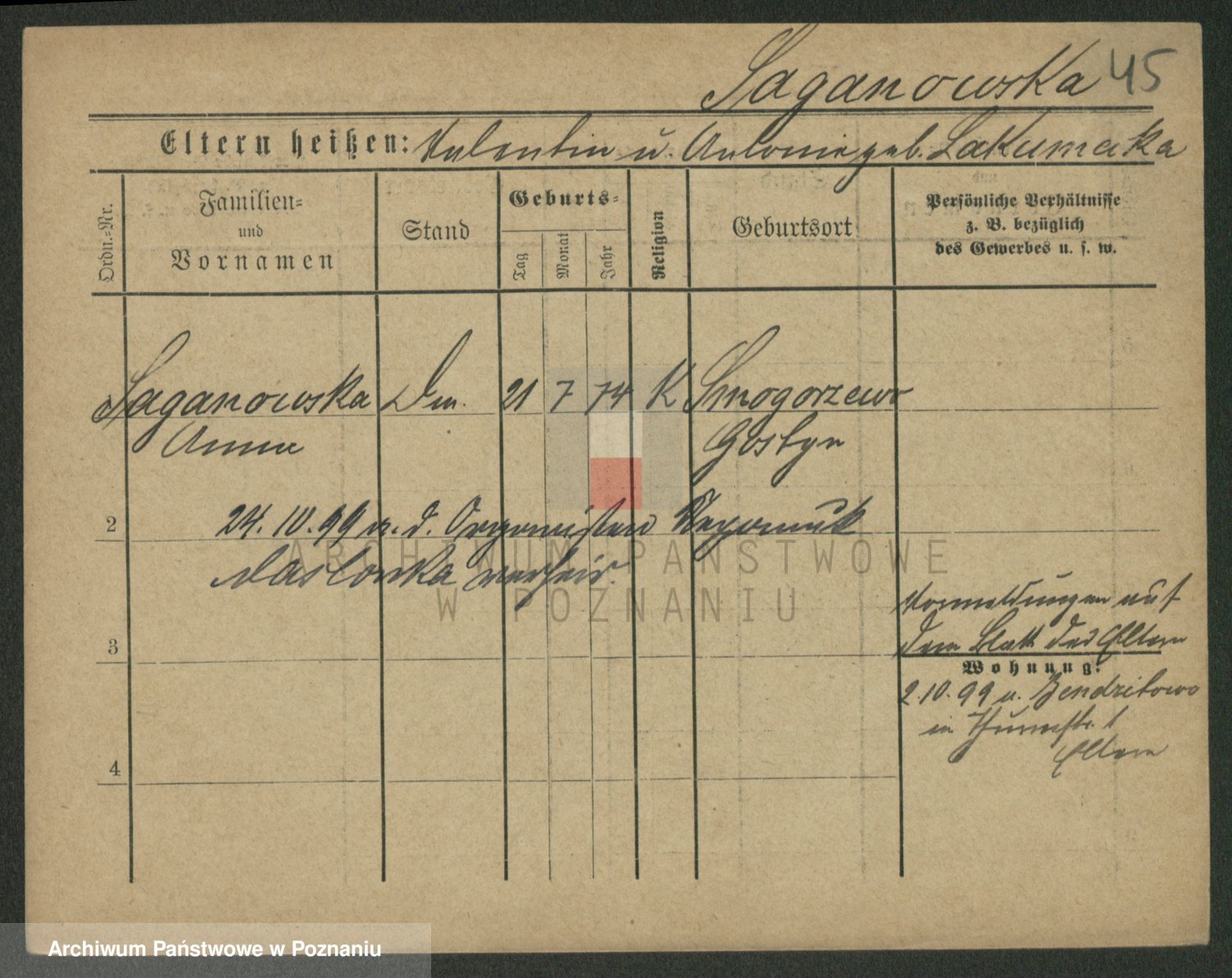 Saganowski z d. Sudzinska, Franziska