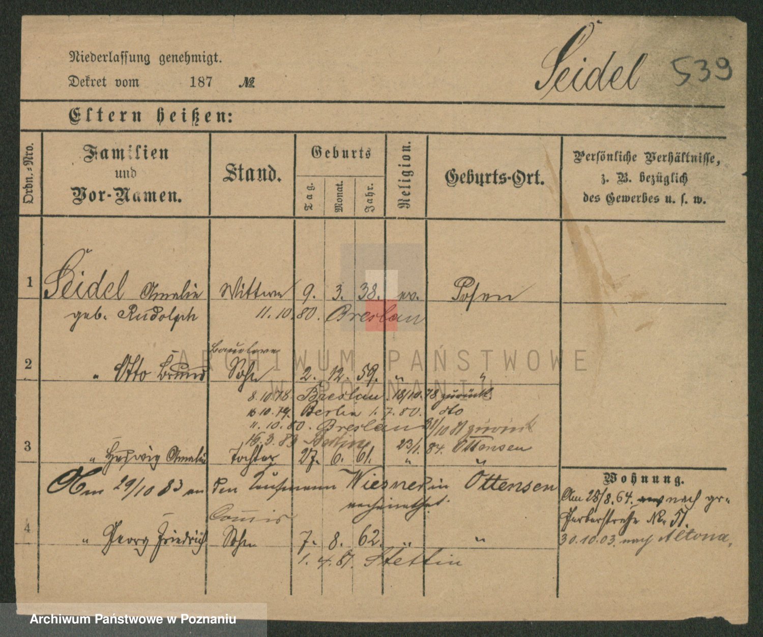 Seidelman z d. Hartwig, Ottilie