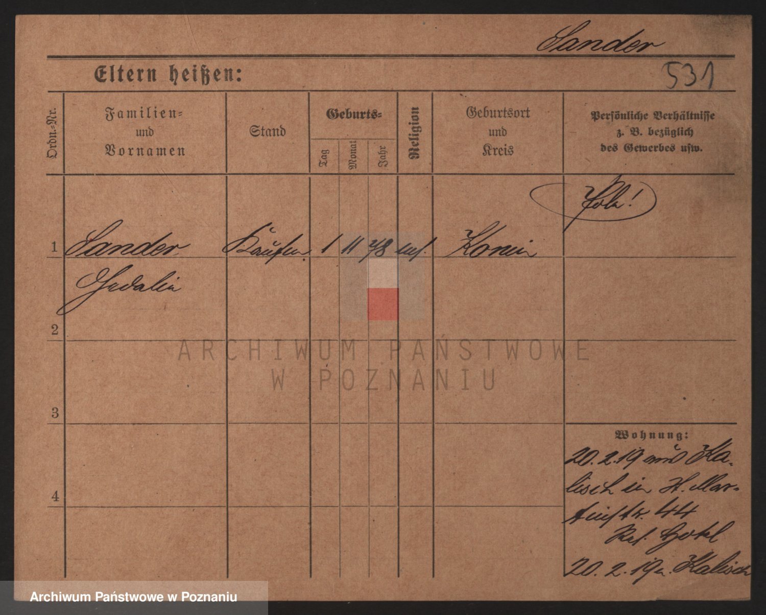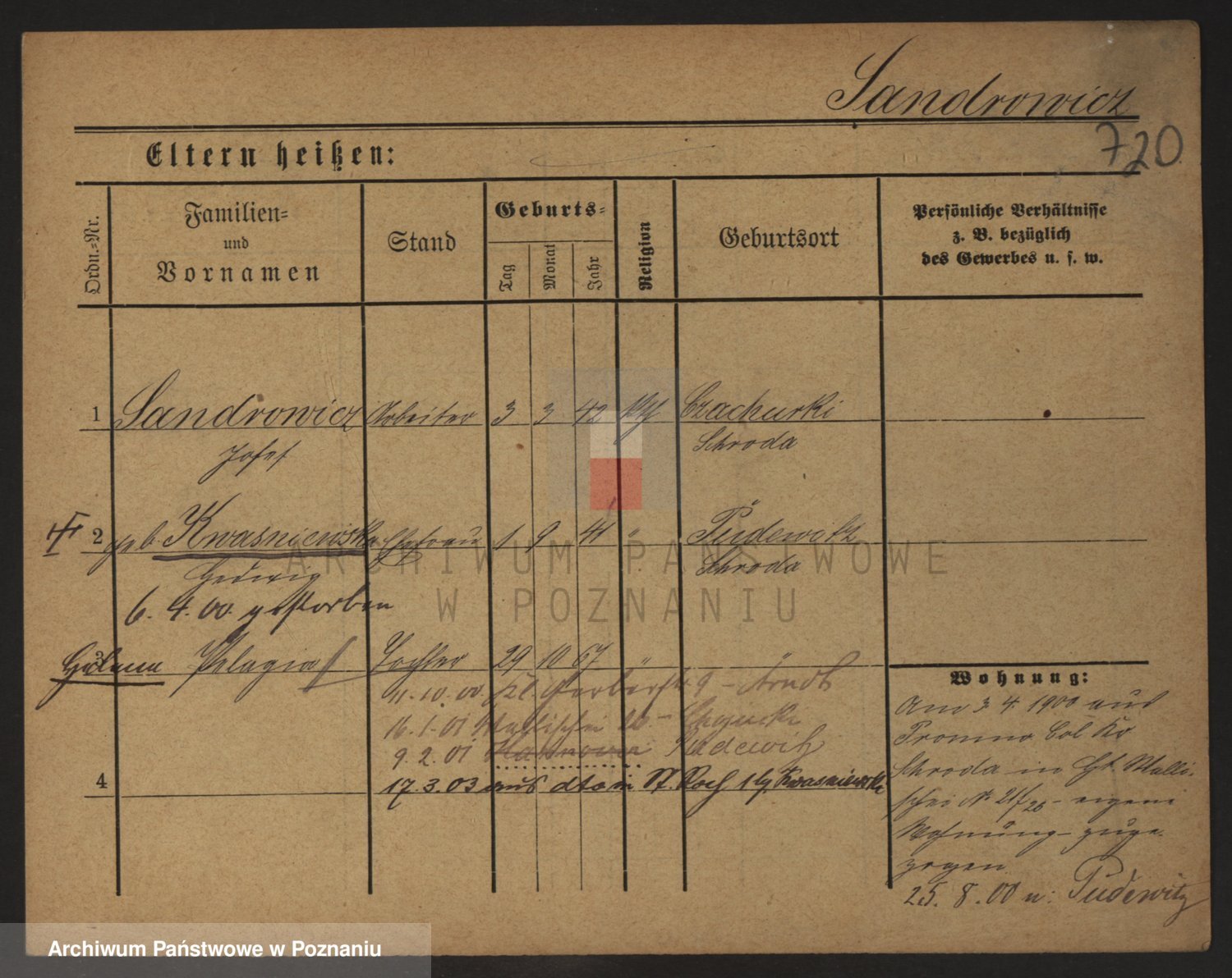 Podgląd karty osobowej dostępny jest po kliknięciu na nazwisko lub ikonkę karty. Można dokonywać powiększenia (ikony na górze) lub przechodzić między kolejnymi skanami (strzałki po bokach).