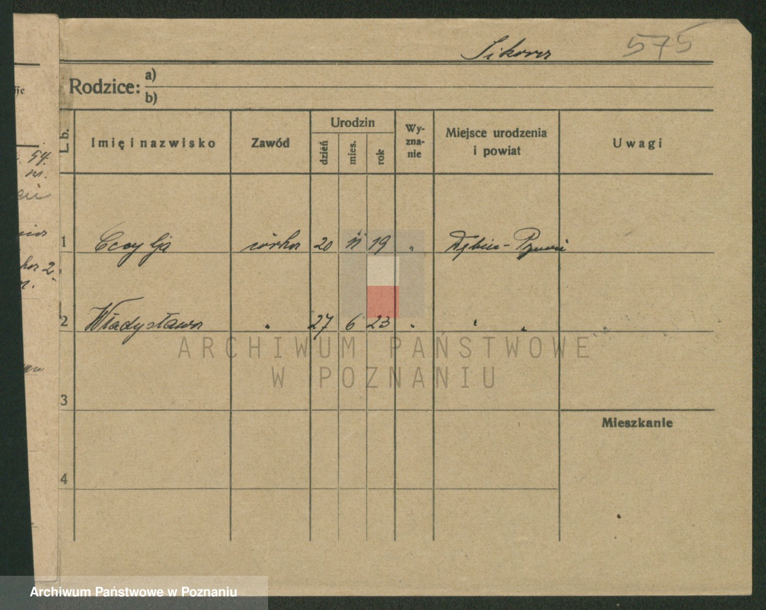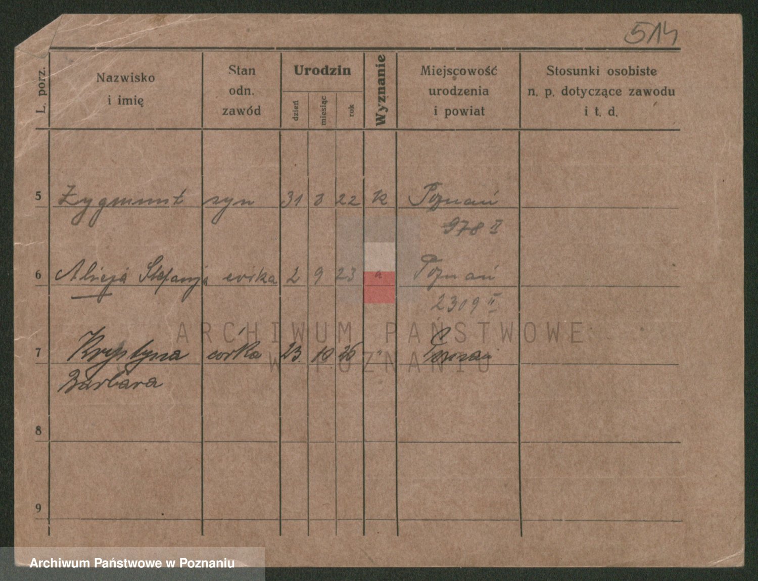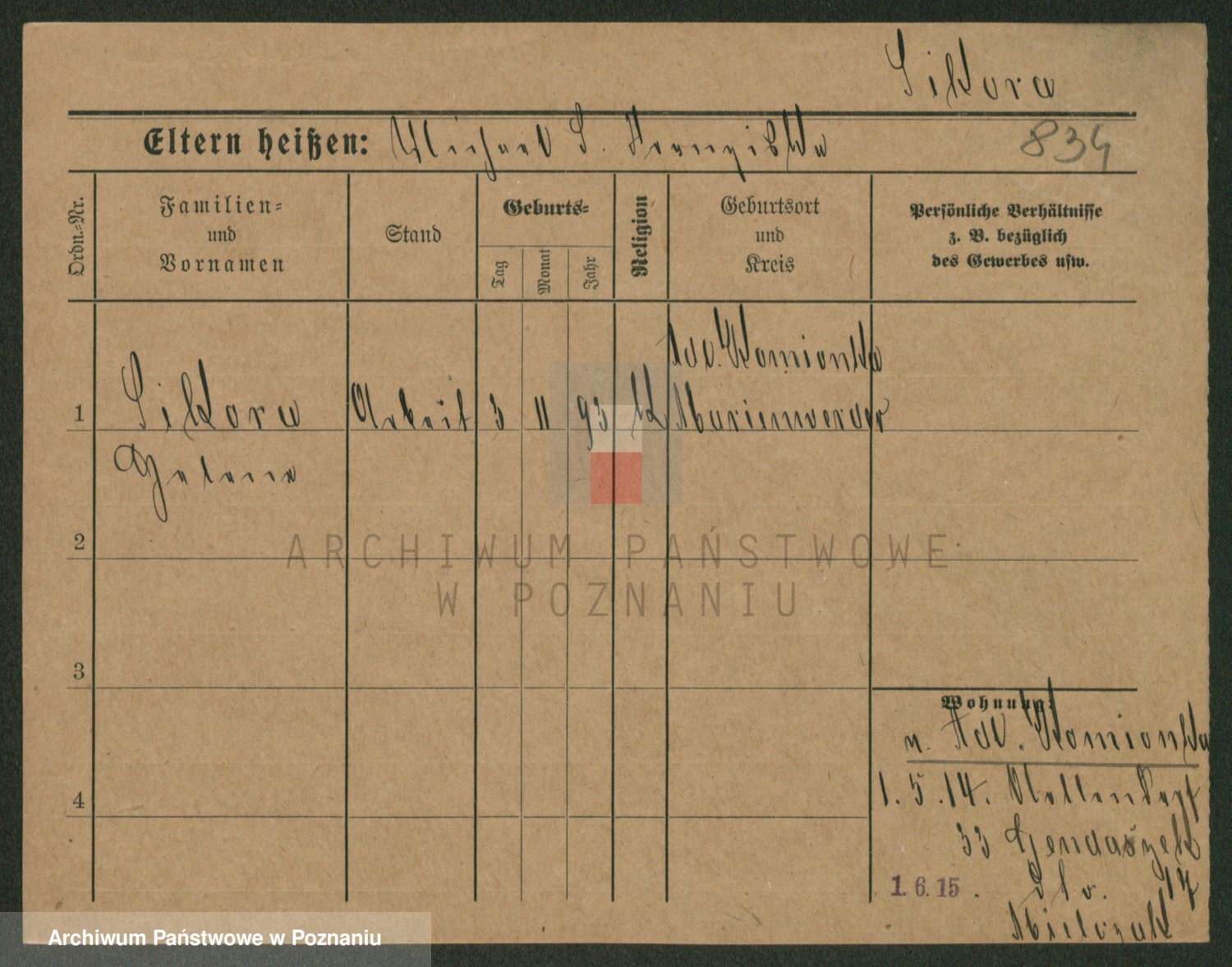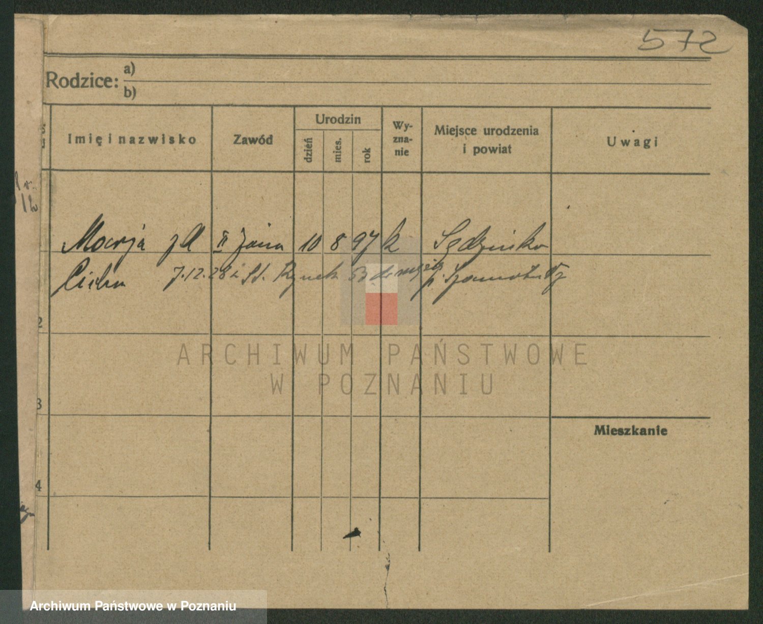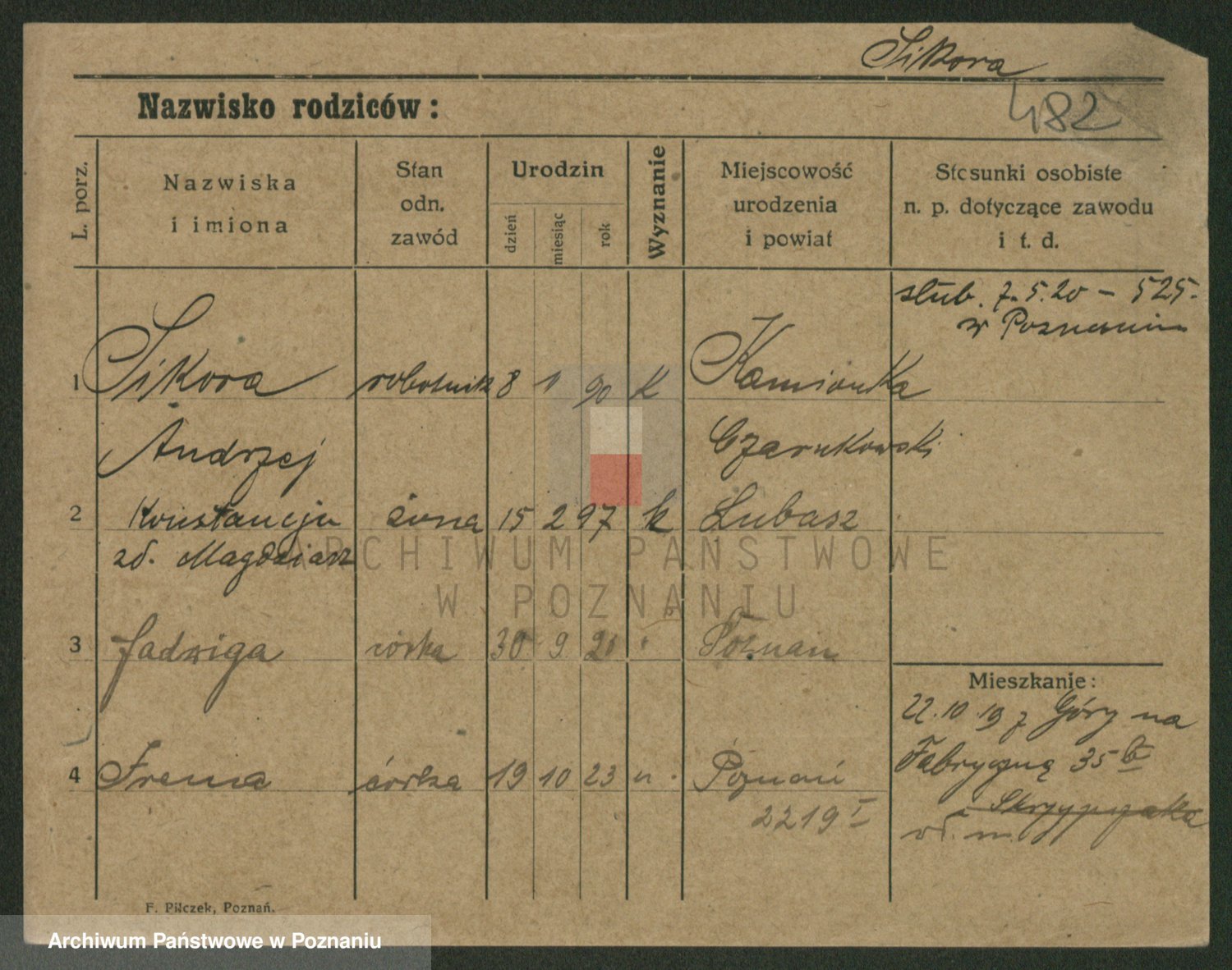Podgląd karty osobowej dostępny jest po kliknięciu na nazwisko lub ikonkę karty. Można dokonywać powiększenia (ikony na górze) lub przechodzić między kolejnymi skanami (strzałki po bokach).