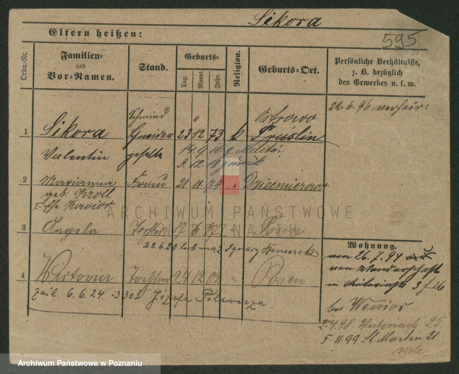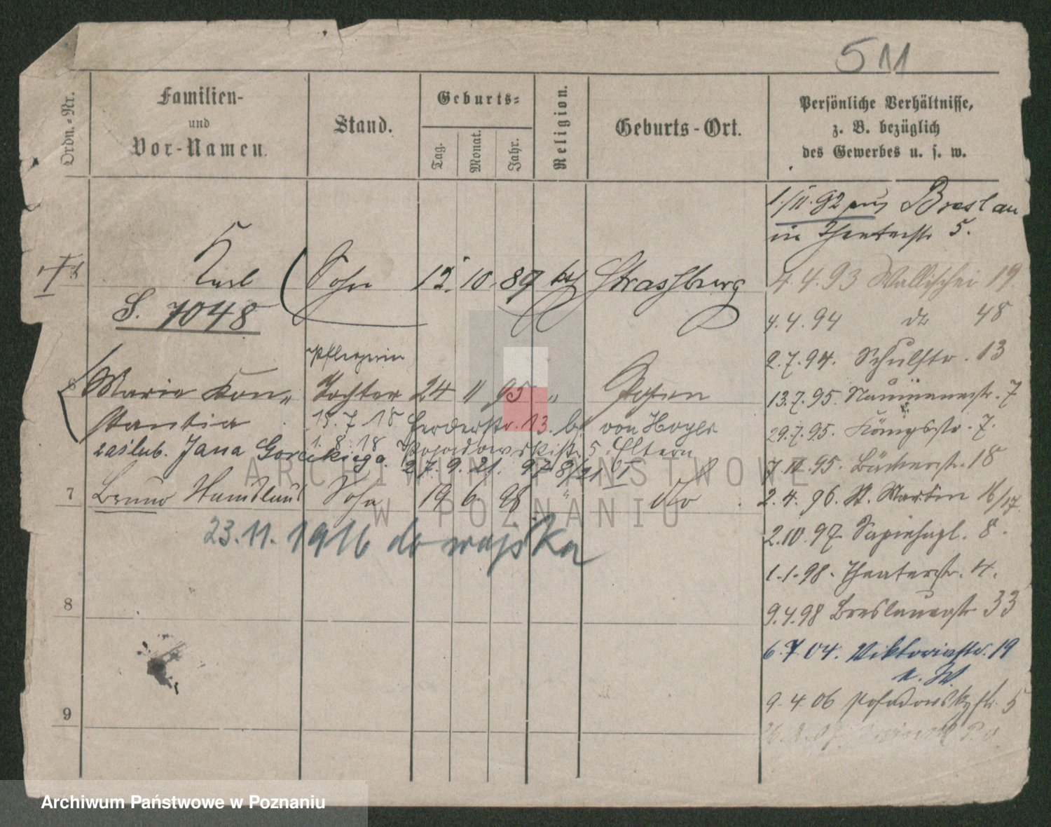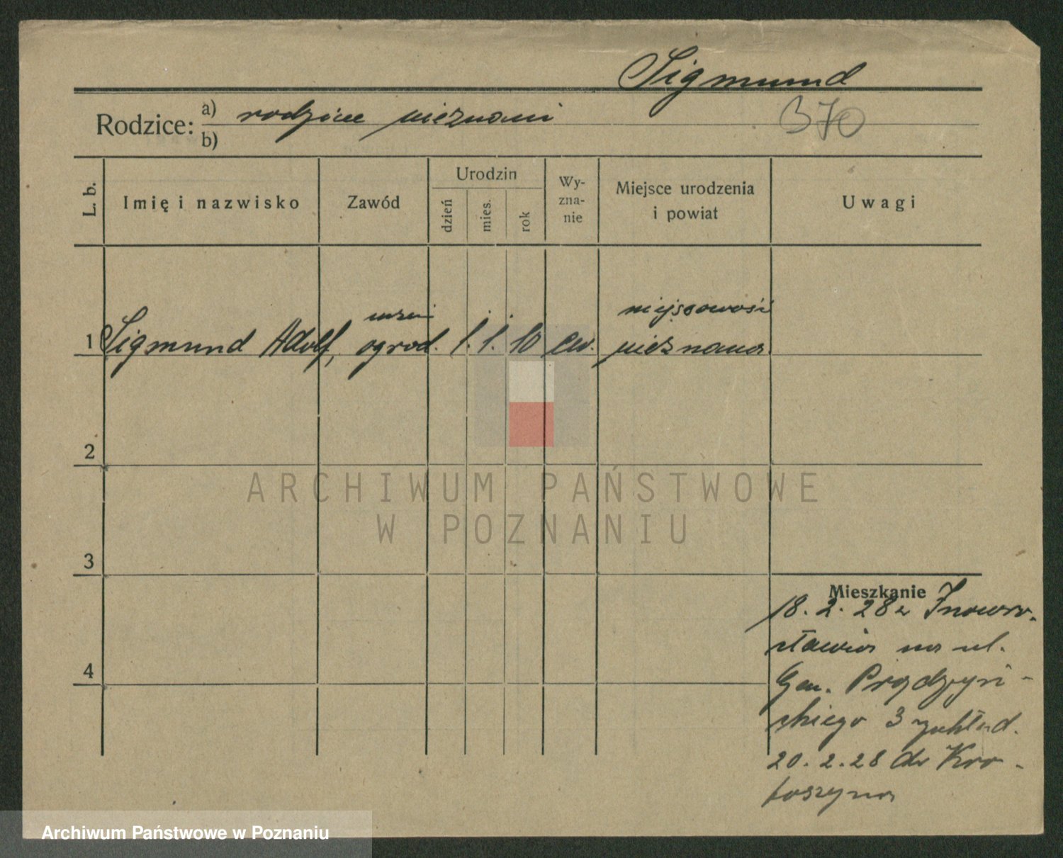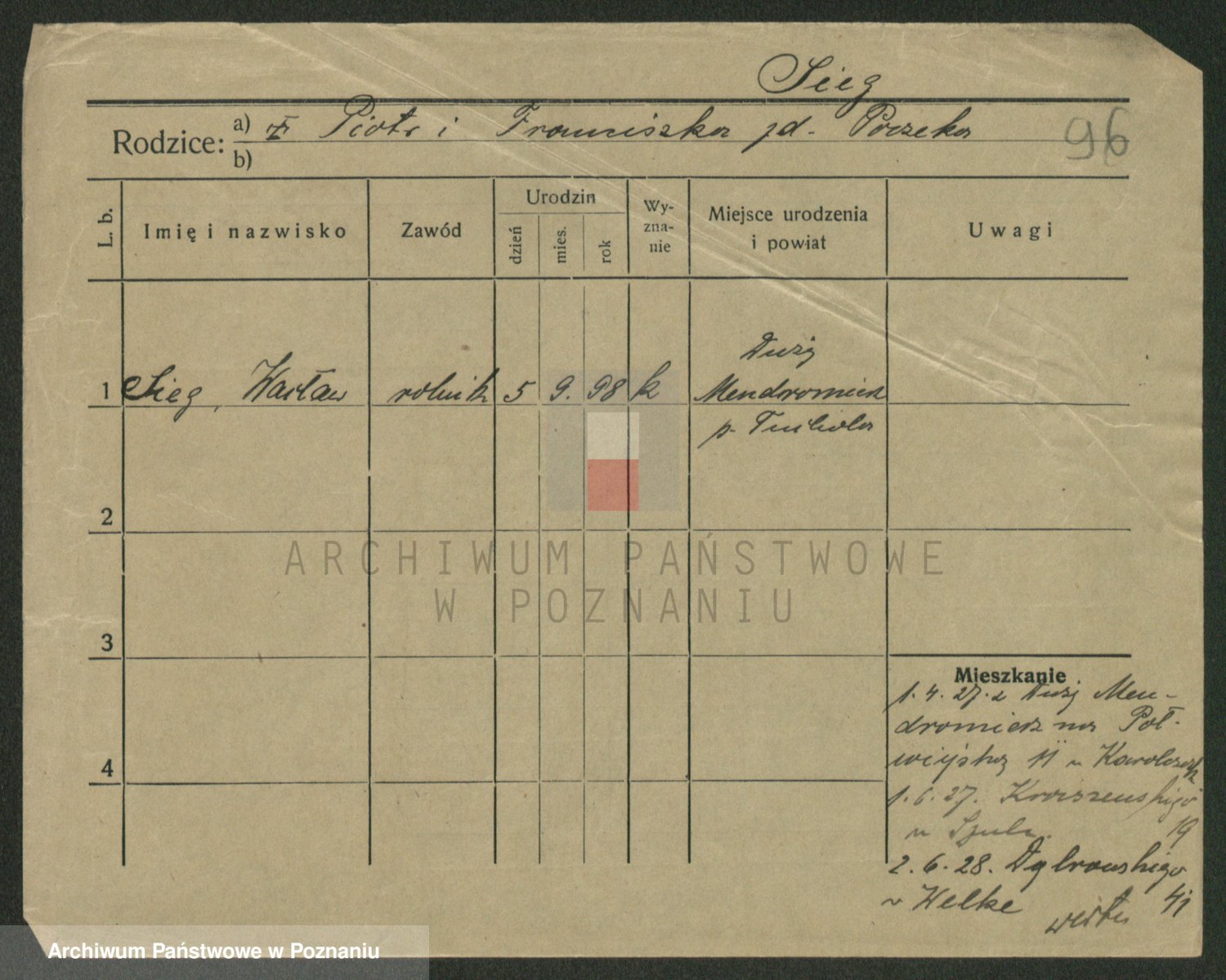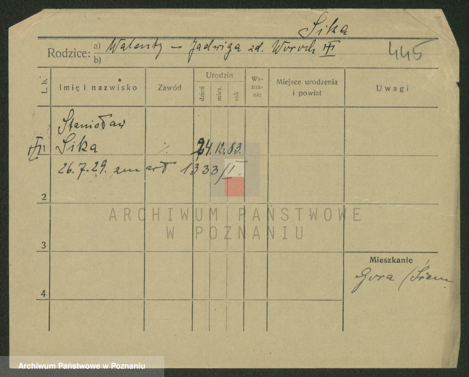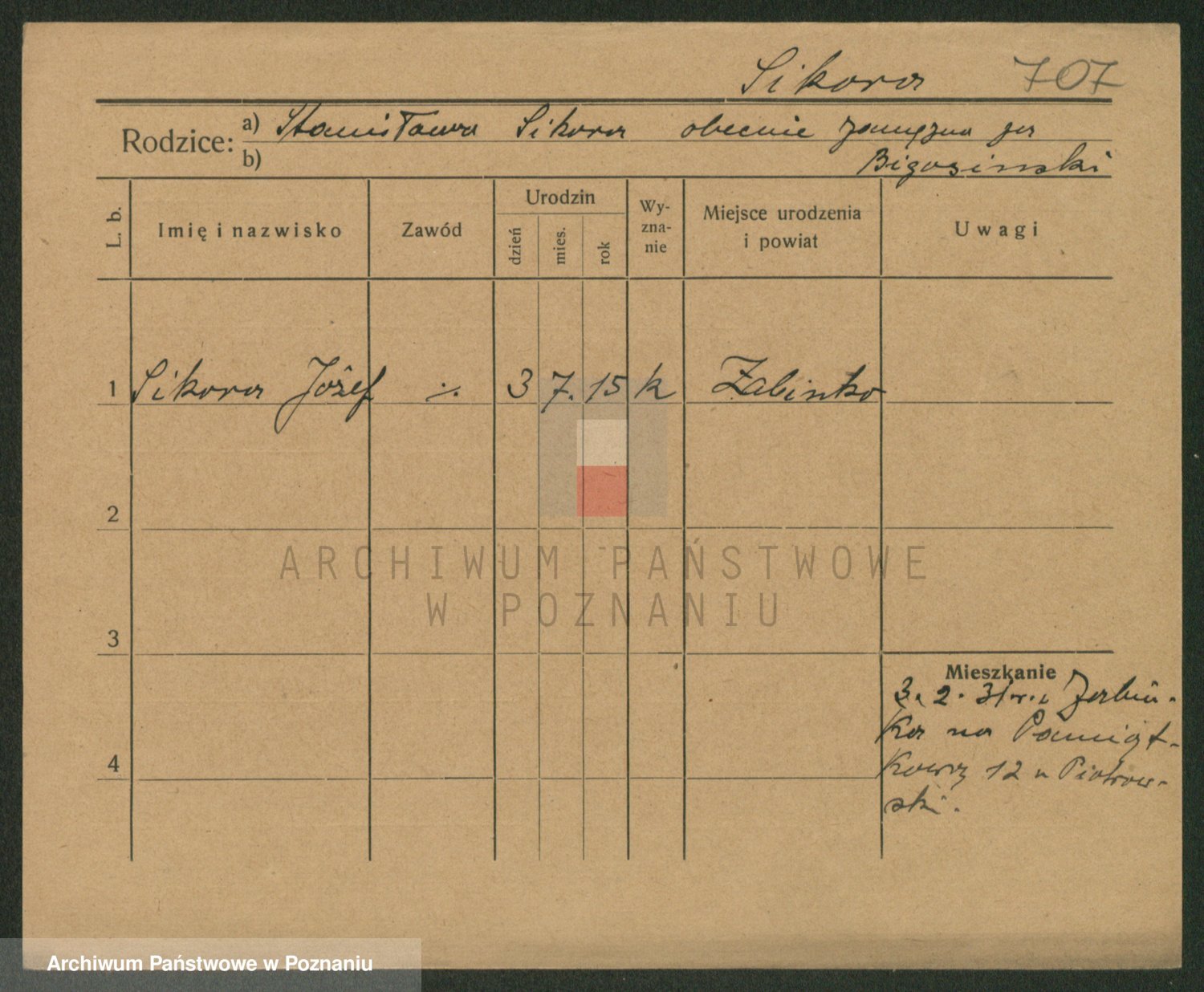 Podgląd karty osobowej dostępny jest po kliknięciu na nazwisko lub ikonkę karty. Można dokonywać powiększenia (ikony na górze) lub przechodzić między kolejnymi skanami (strzałki po bokach).
