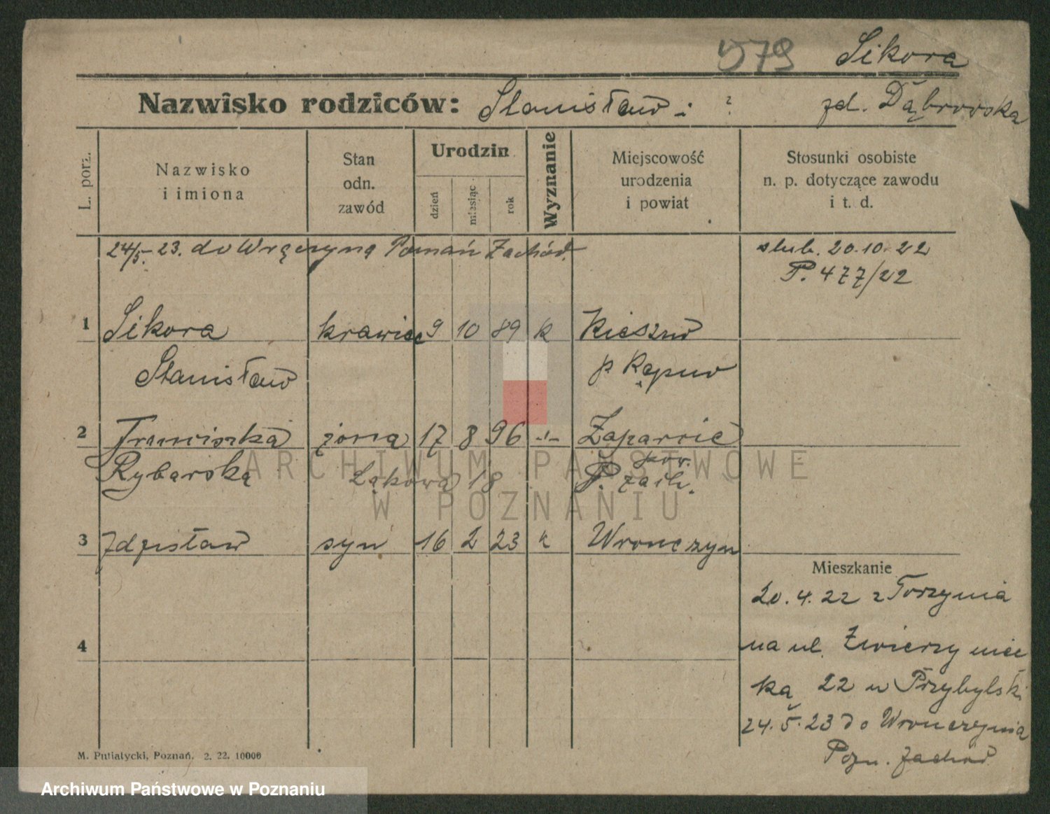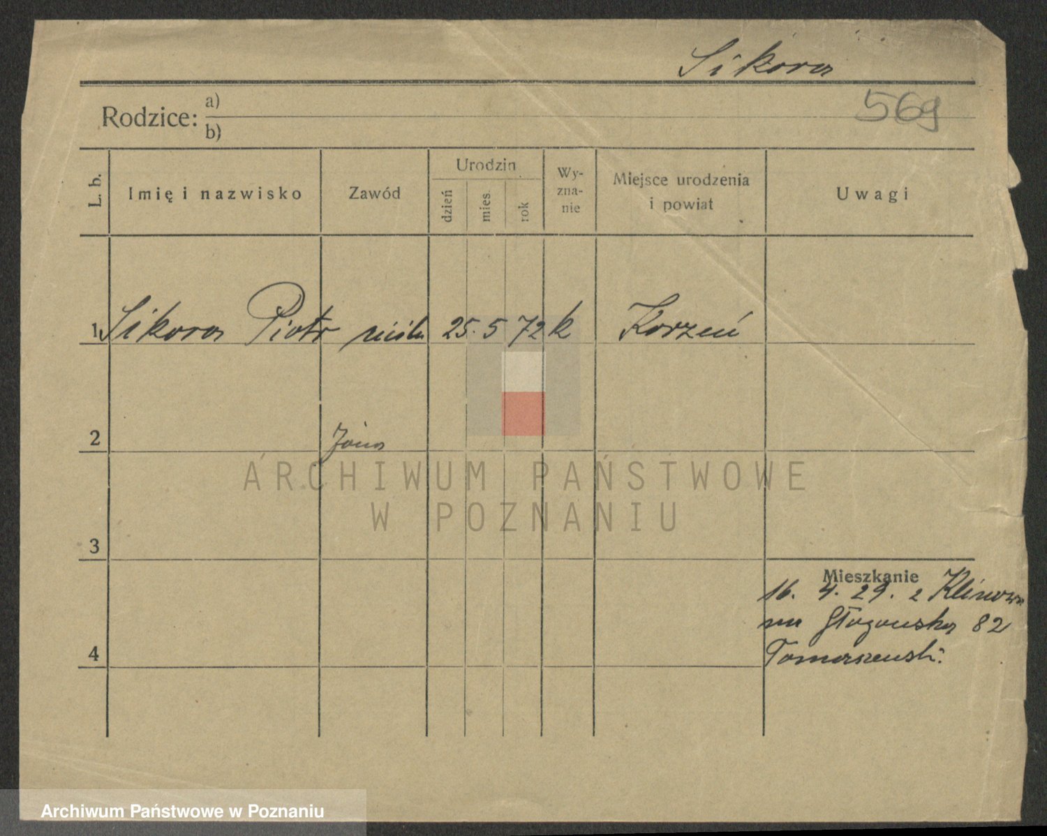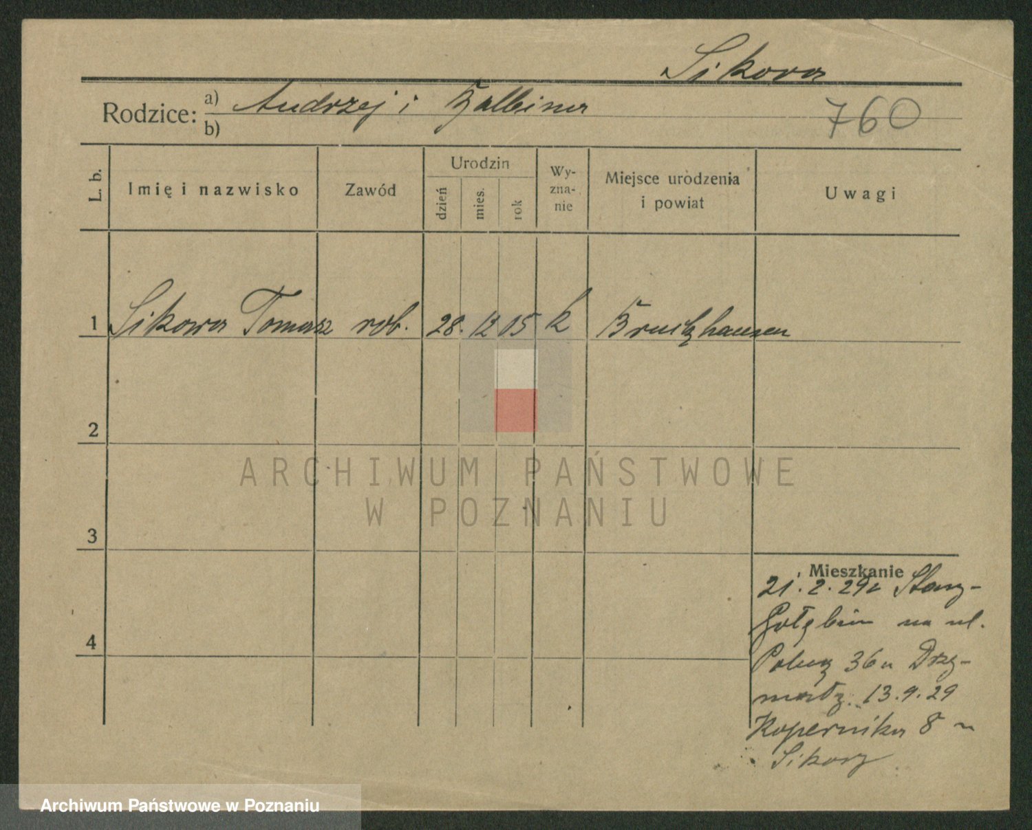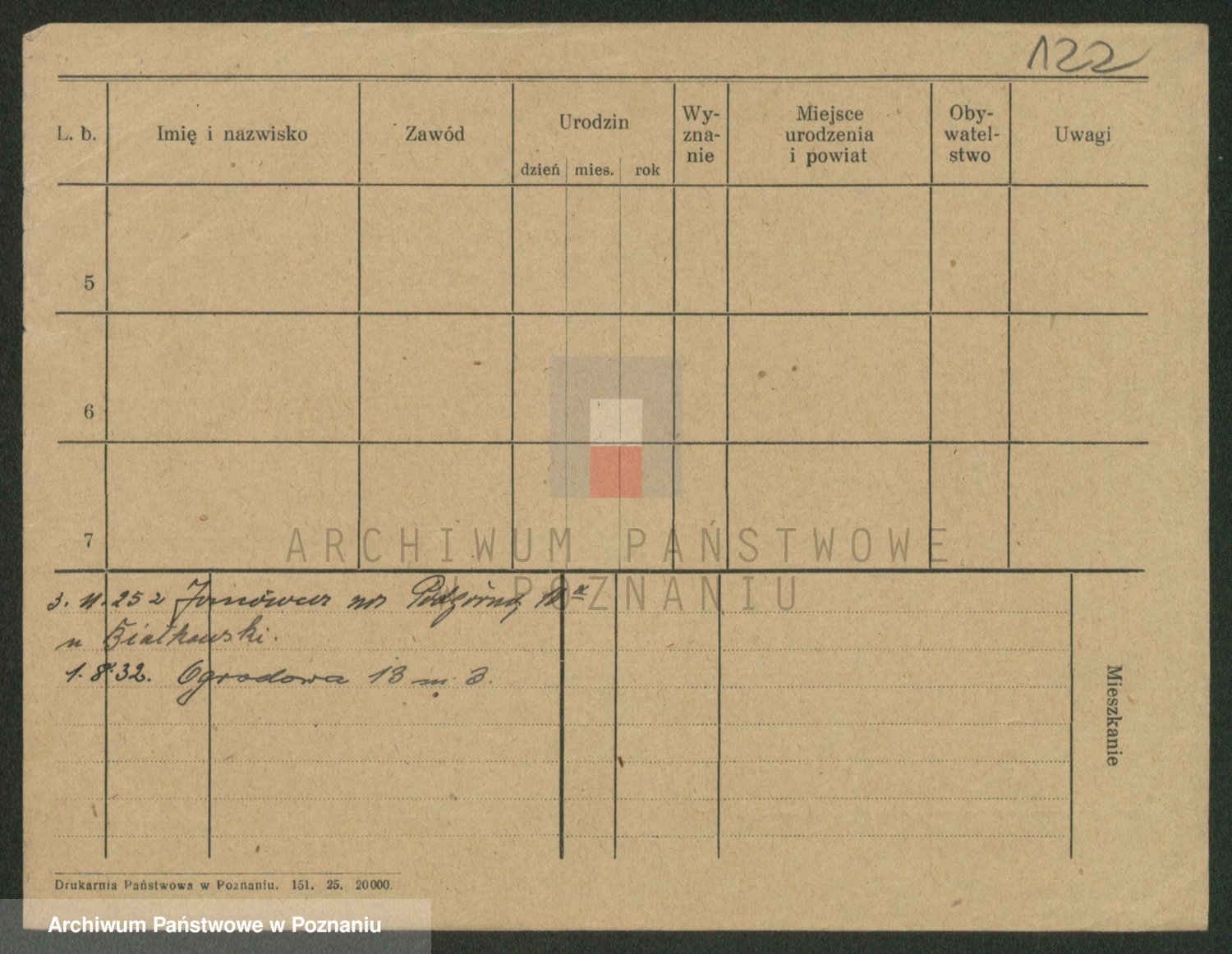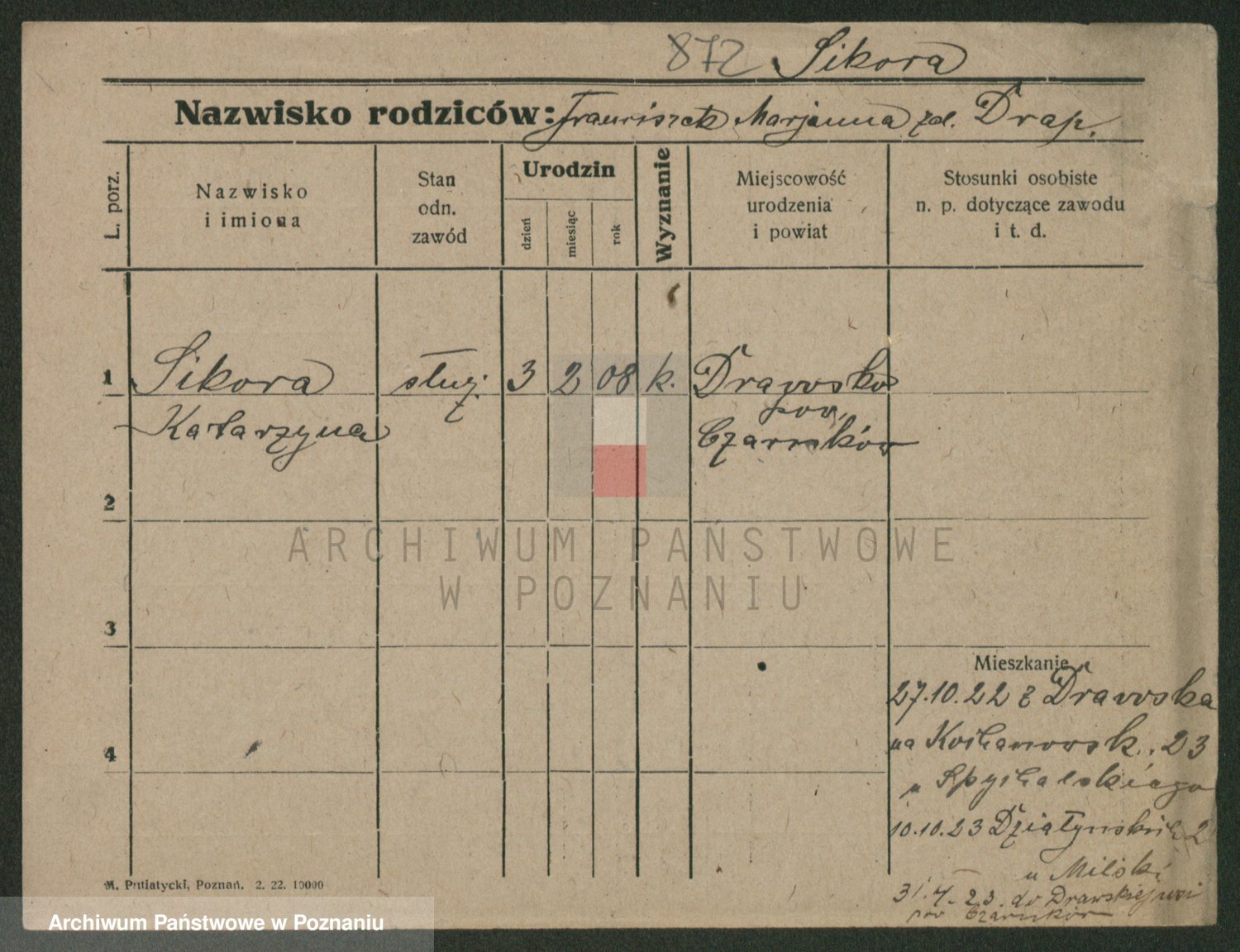Podgląd karty osobowej dostępny jest po kliknięciu na nazwisko lub ikonkę karty. Można dokonywać powiększenia (ikony na górze) lub przechodzić między kolejnymi skanami (strzałki po bokach).