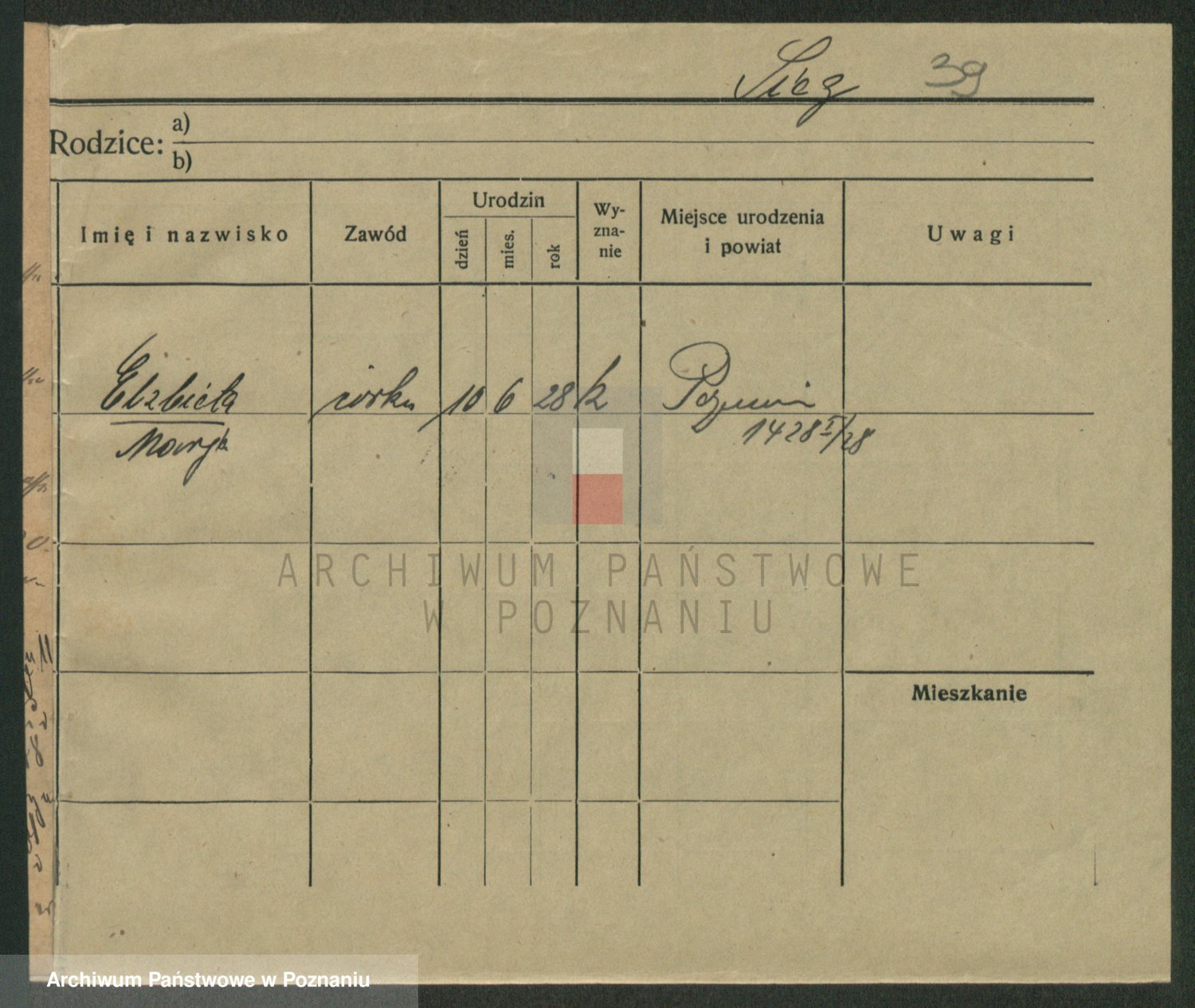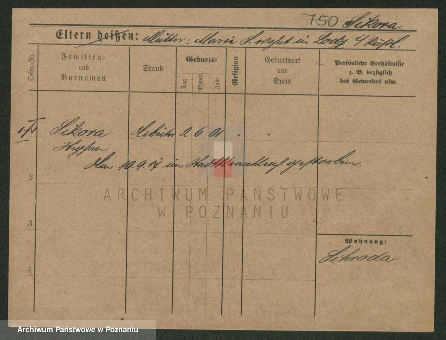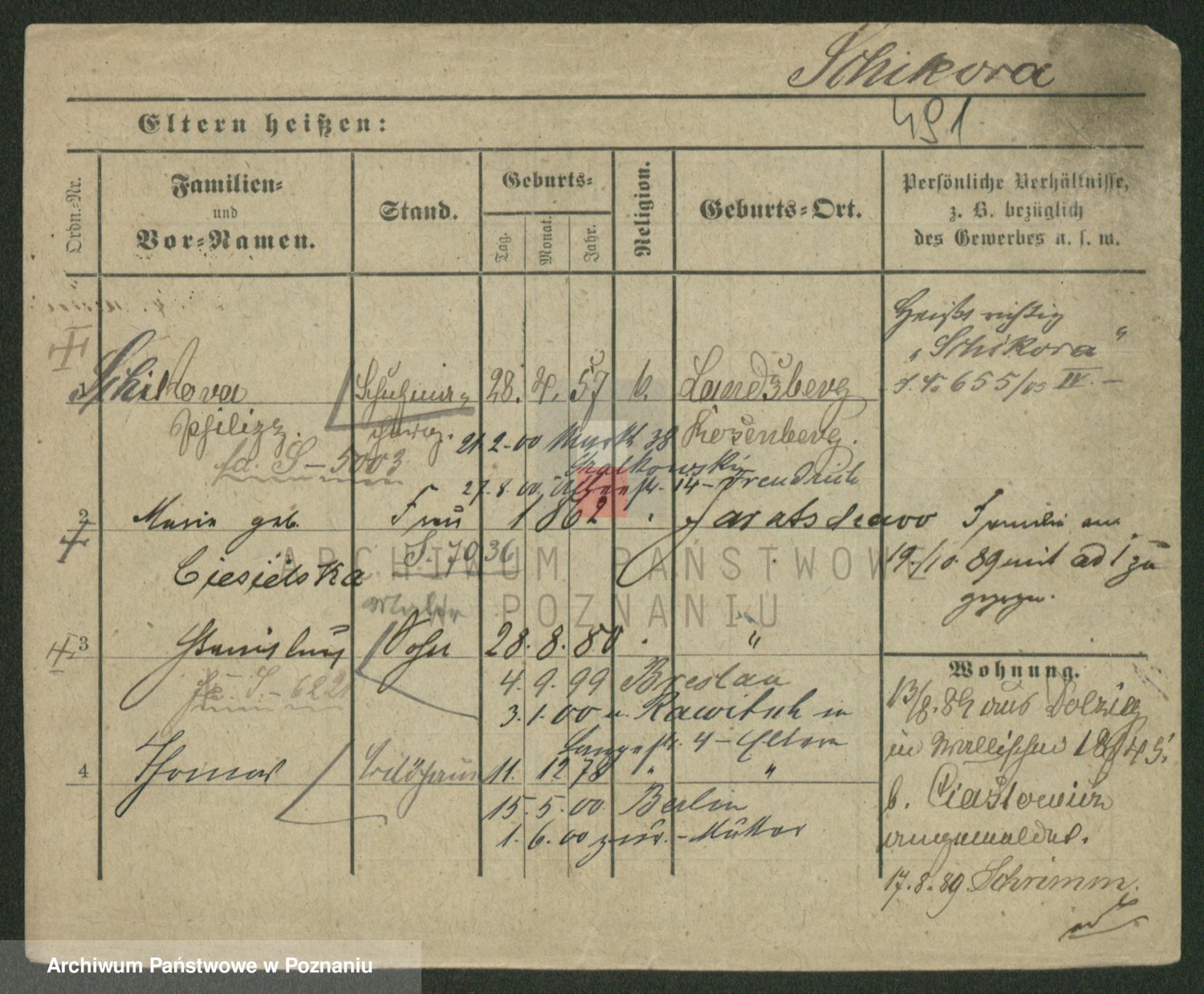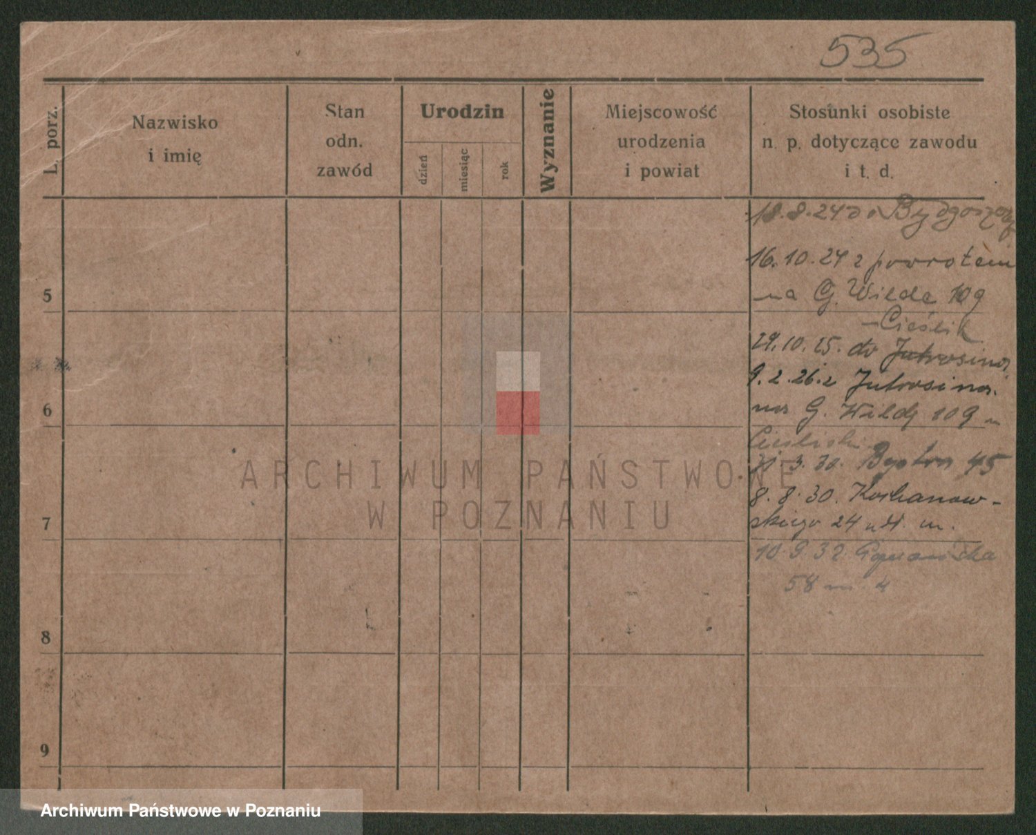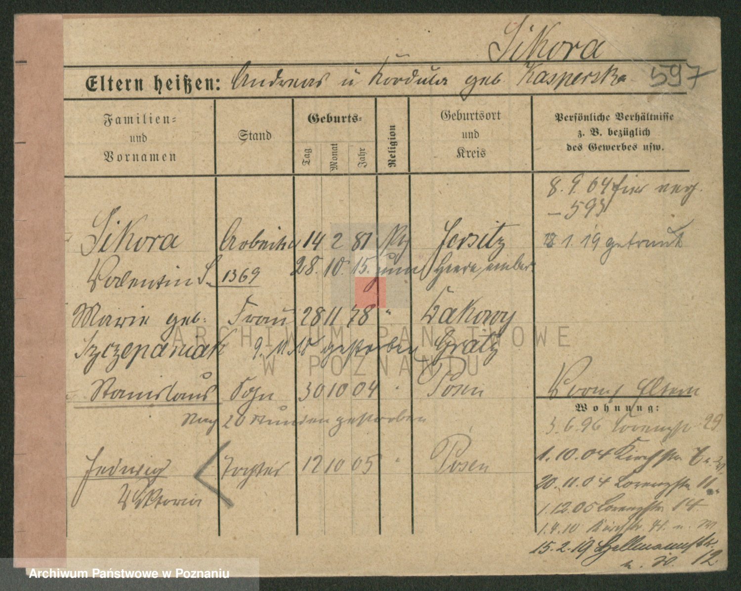 Podgląd karty osobowej dostępny jest po kliknięciu na nazwisko lub ikonkę karty. Można dokonywać powiększenia (ikony na górze) lub przechodzić między kolejnymi skanami (strzałki po bokach).
