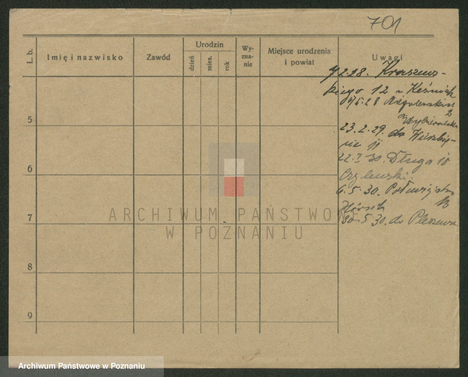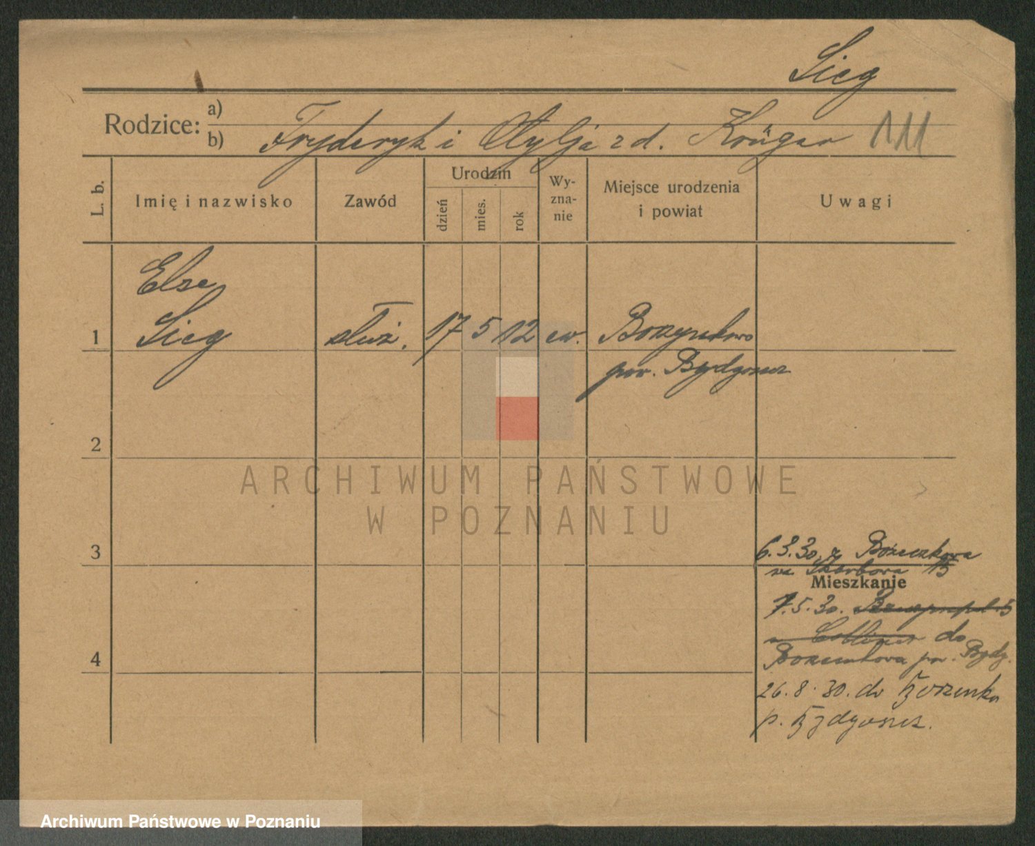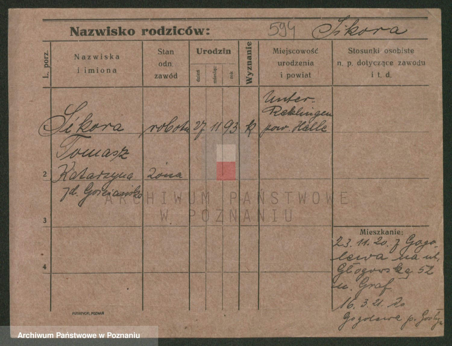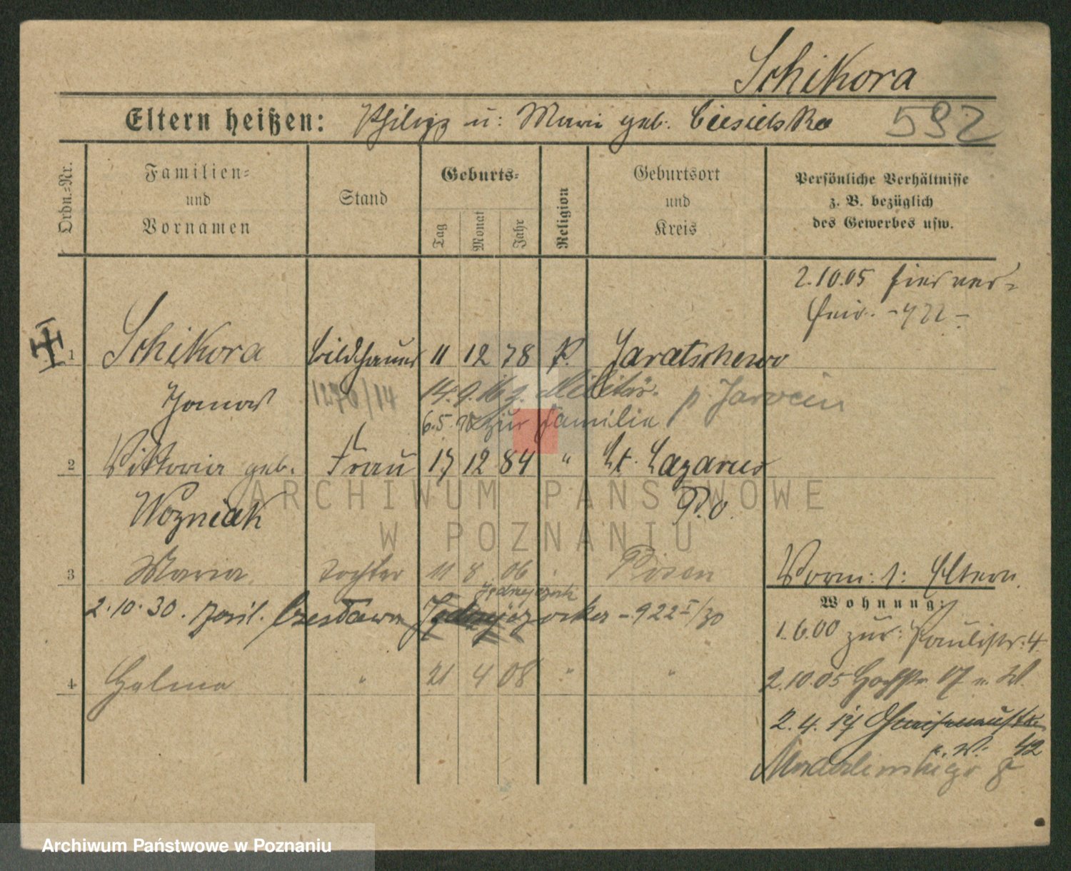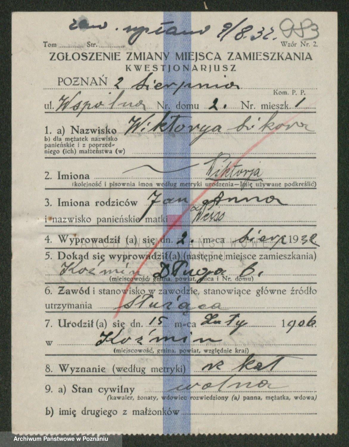 Podgląd karty osobowej dostępny jest po kliknięciu na nazwisko lub ikonkę karty. Można dokonywać powiększenia (ikony na górze) lub przechodzić między kolejnymi skanami (strzałki po bokach).