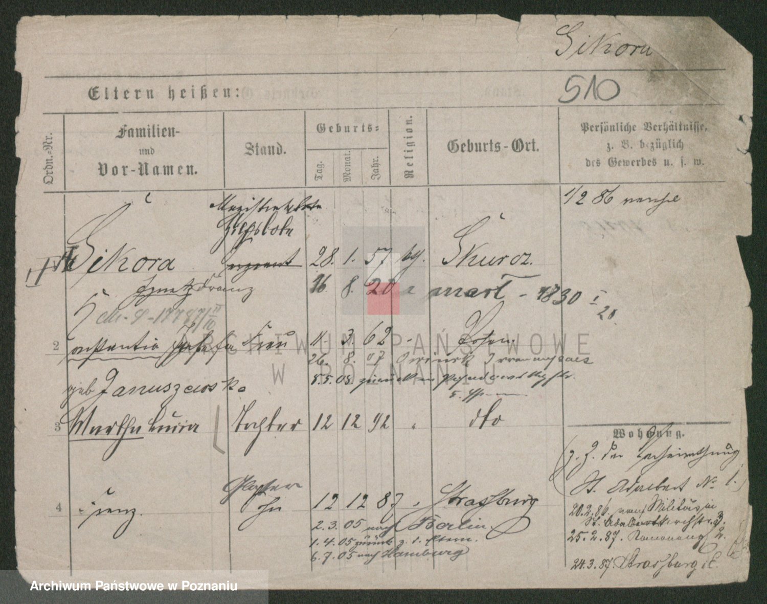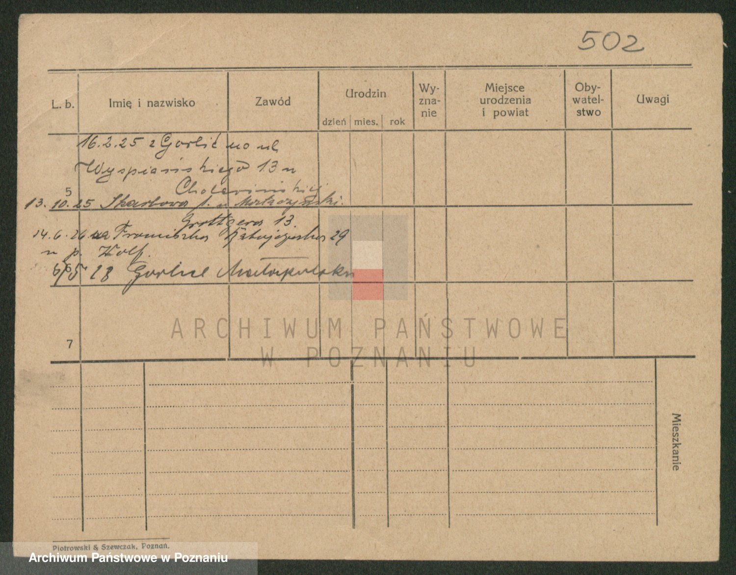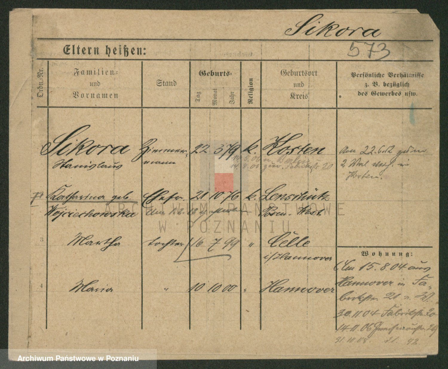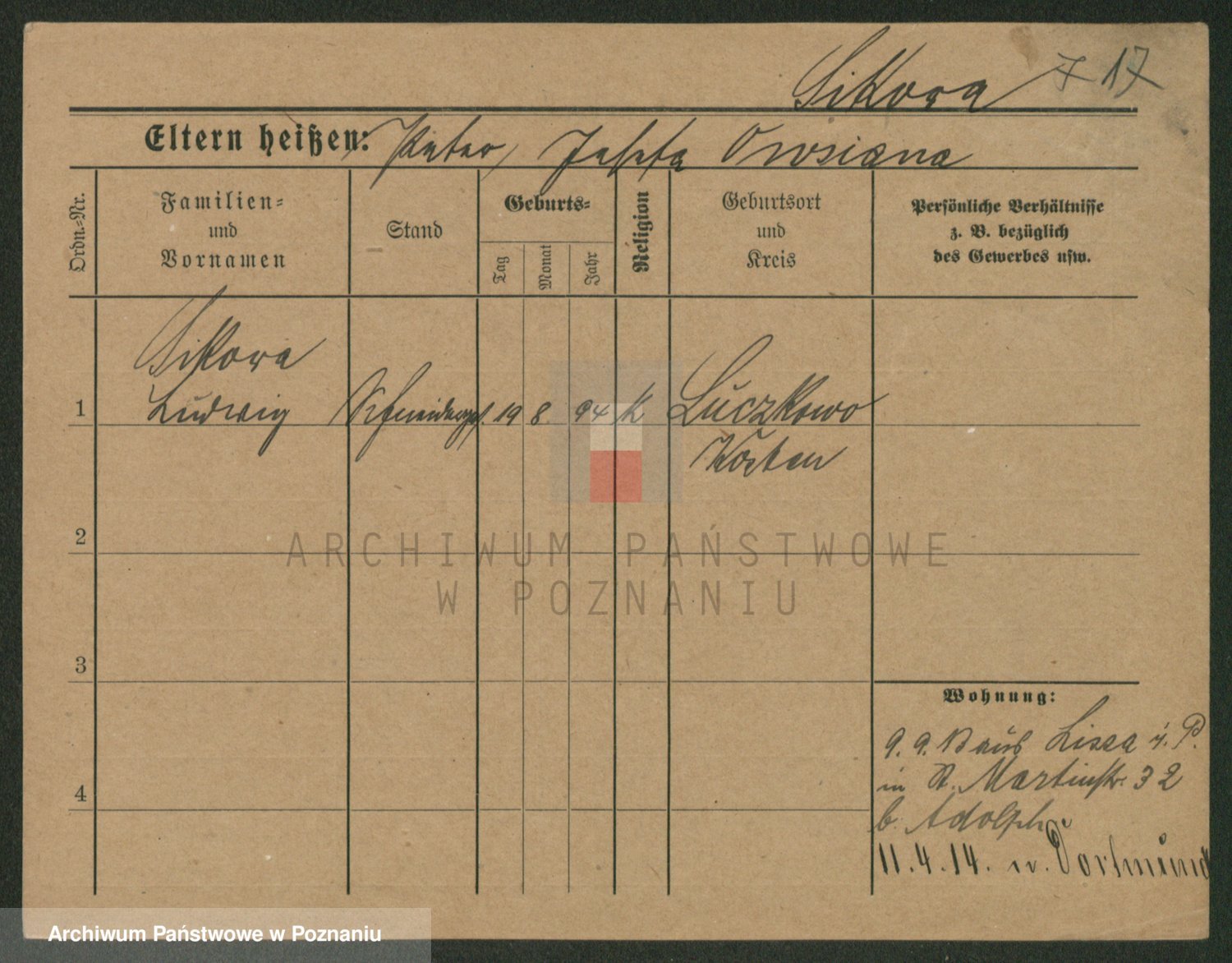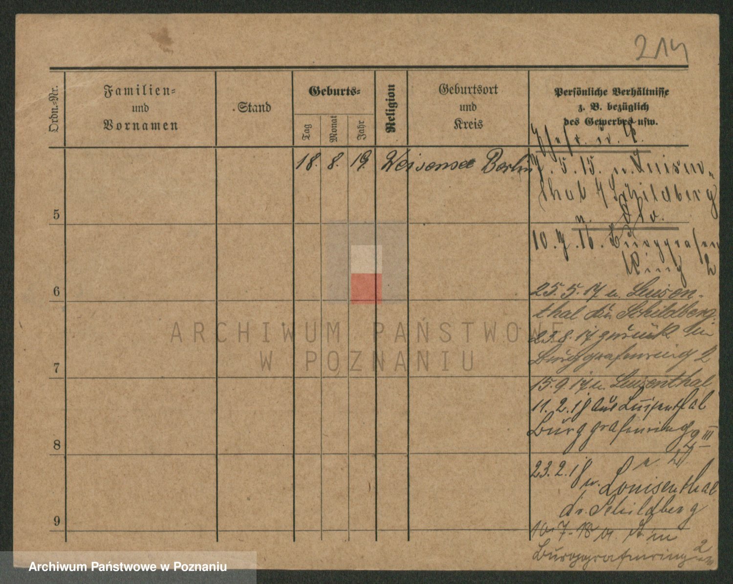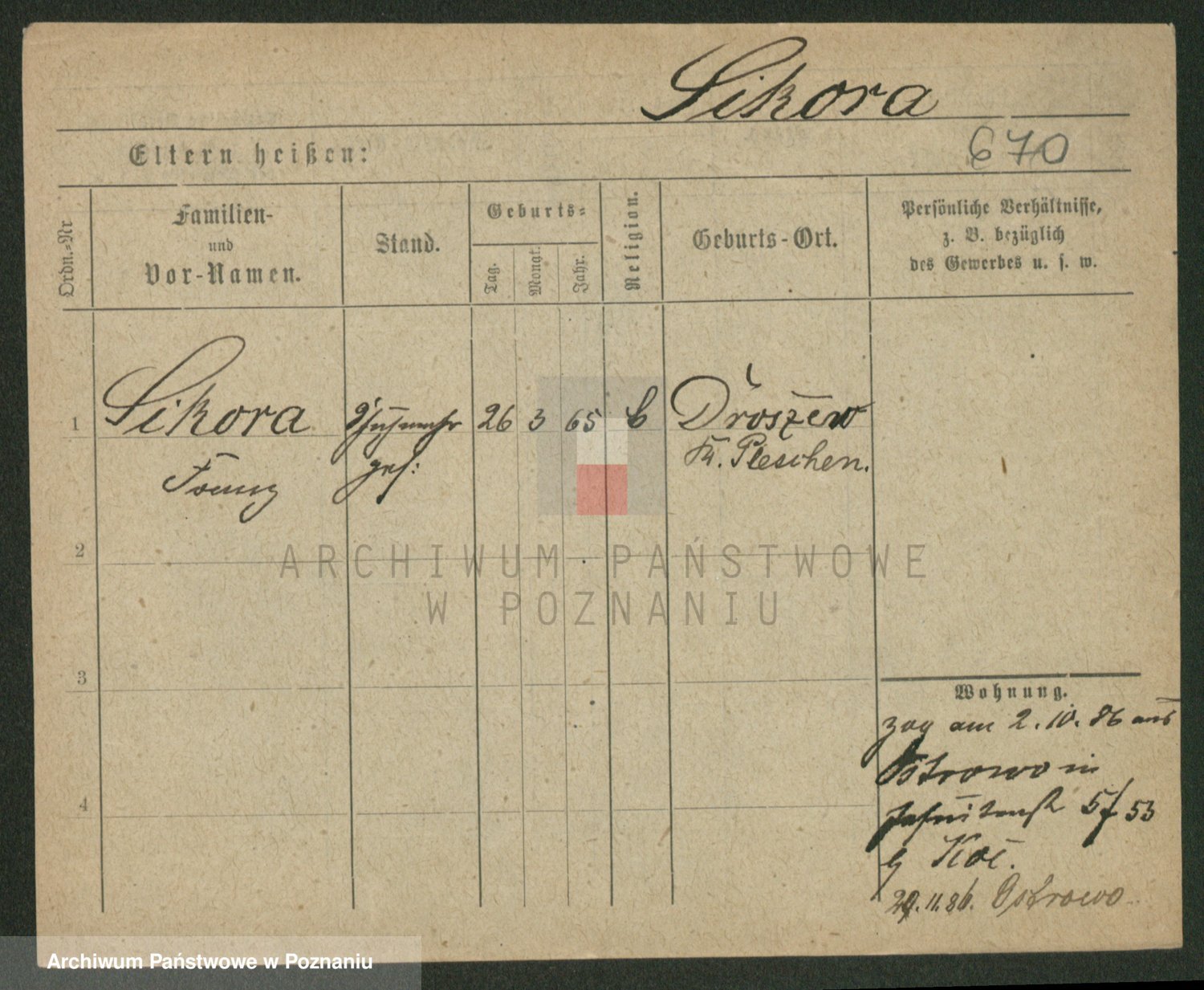 Podgląd karty osobowej dostępny jest po kliknięciu na nazwisko lub ikonkę karty. Można dokonywać powiększenia (ikony na górze) lub przechodzić między kolejnymi skanami (strzałki po bokach).