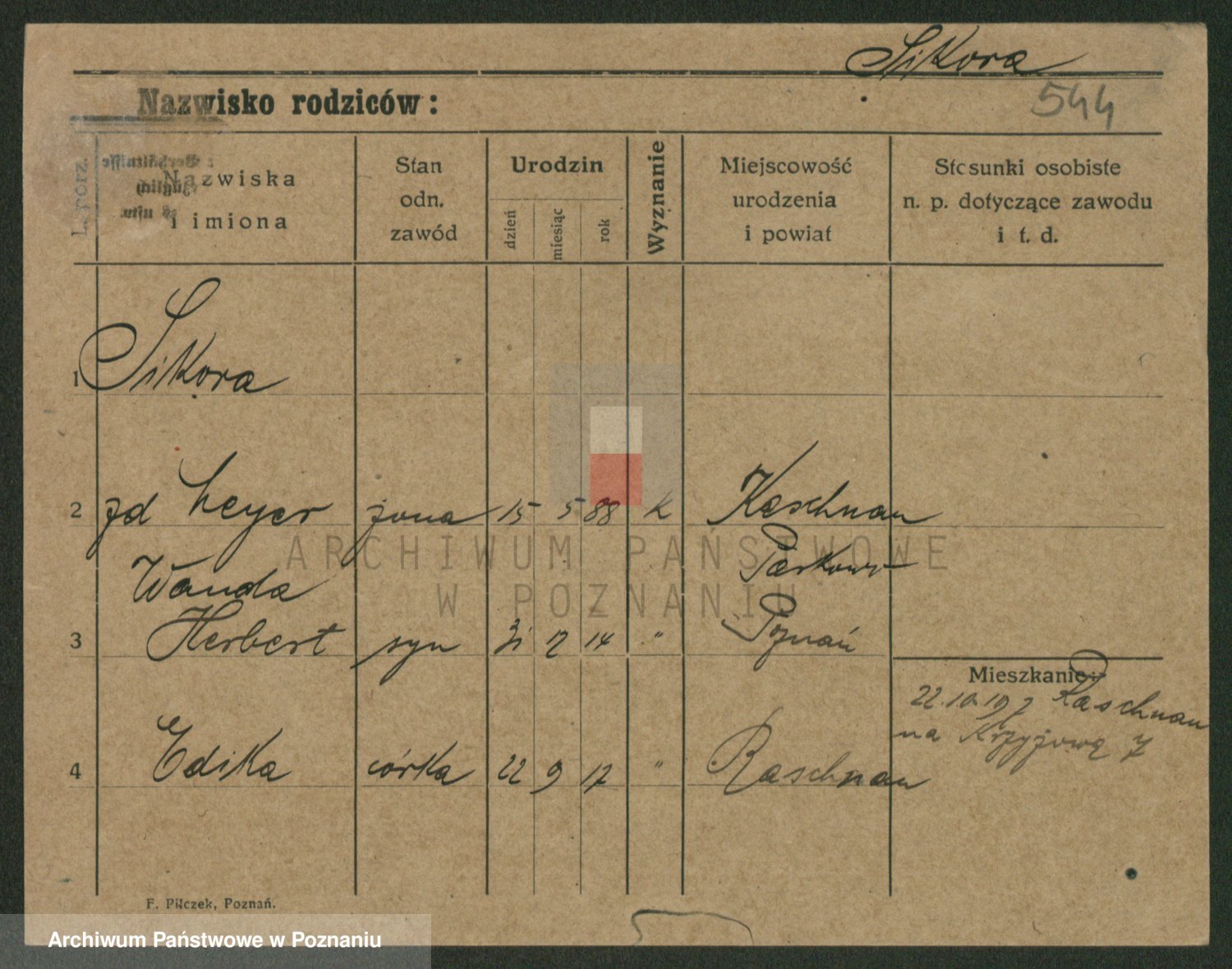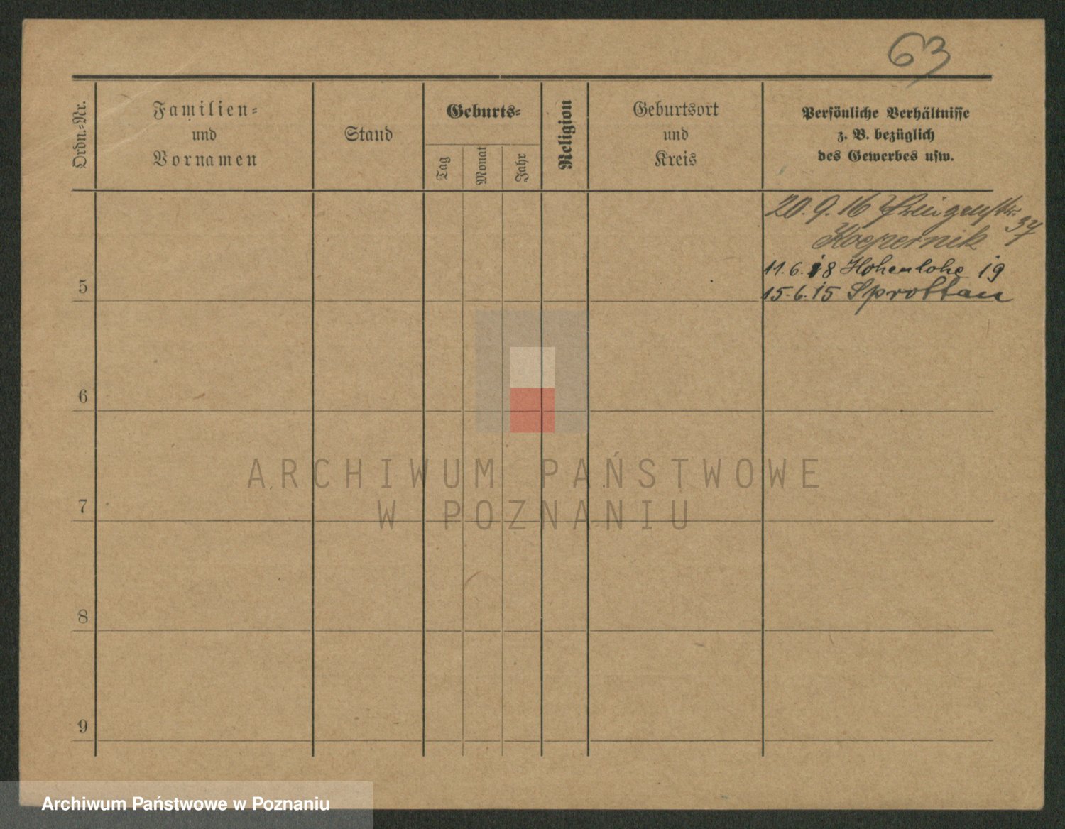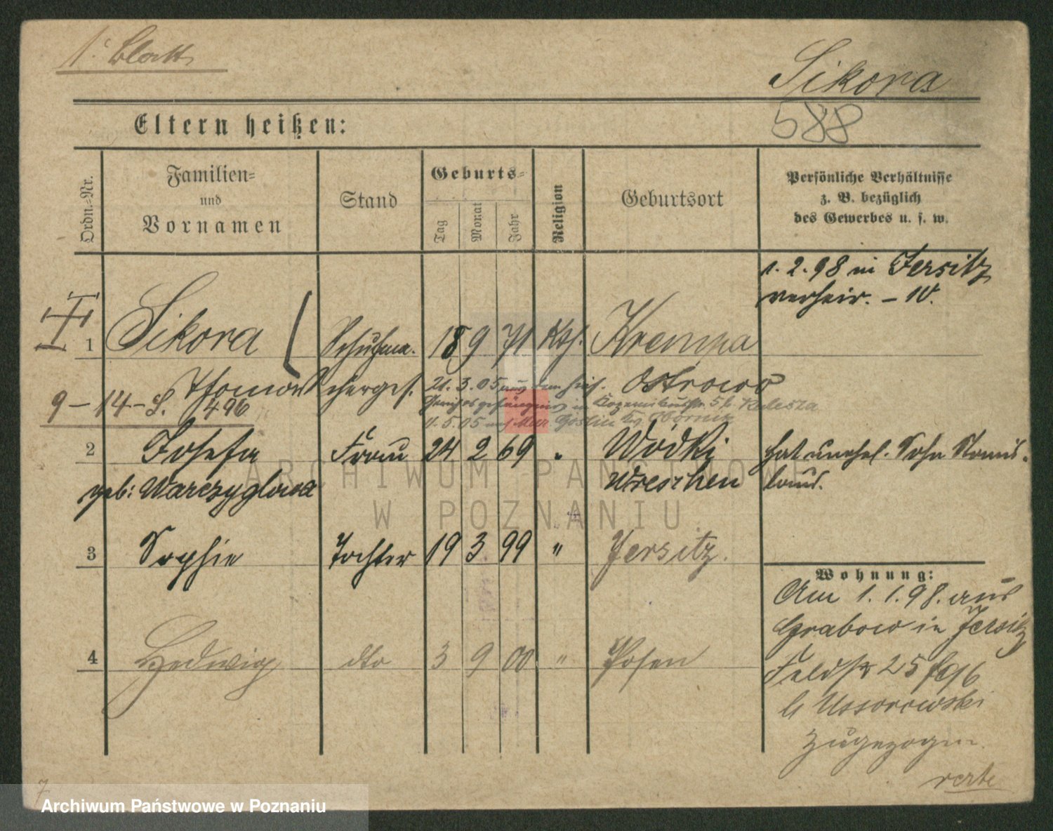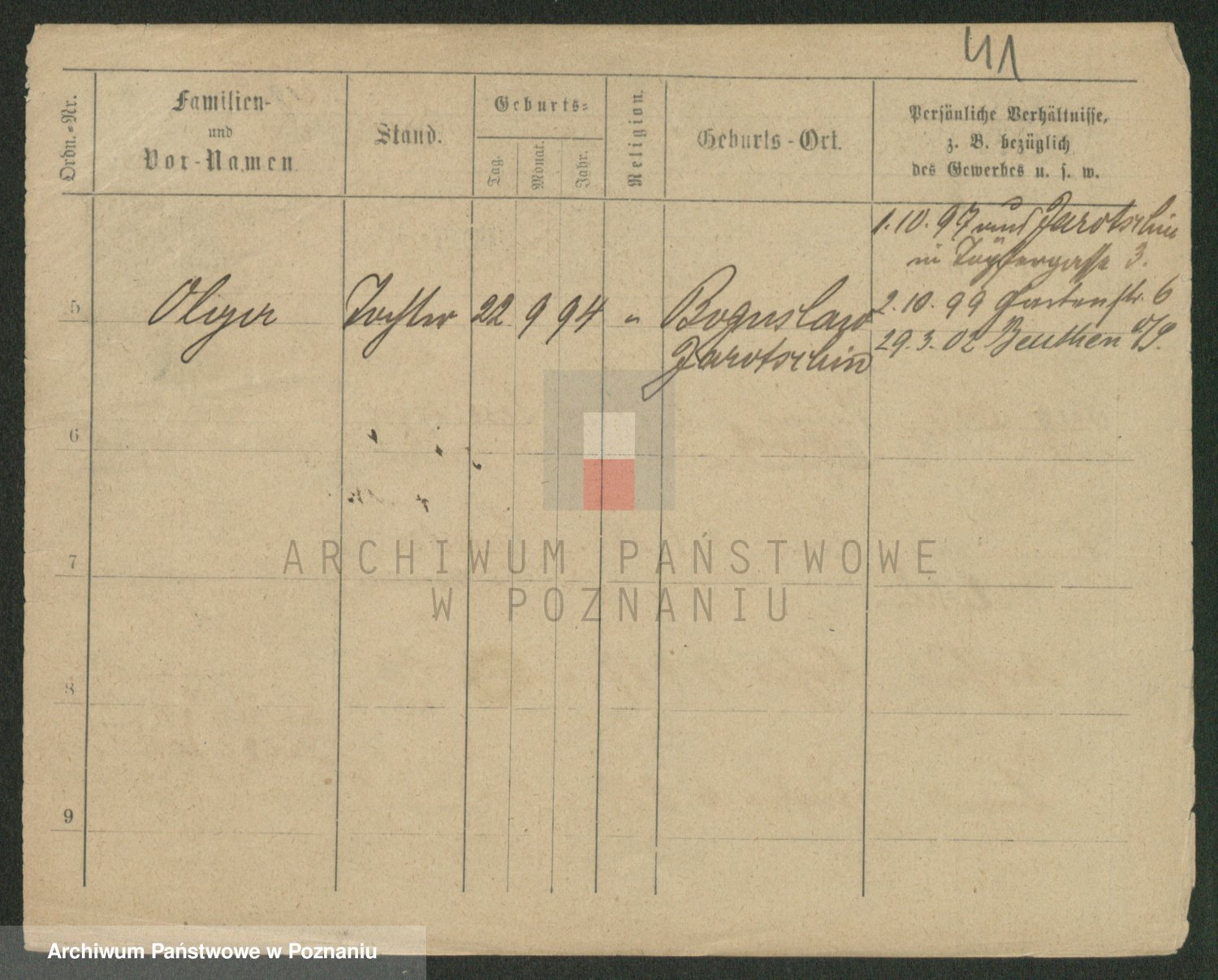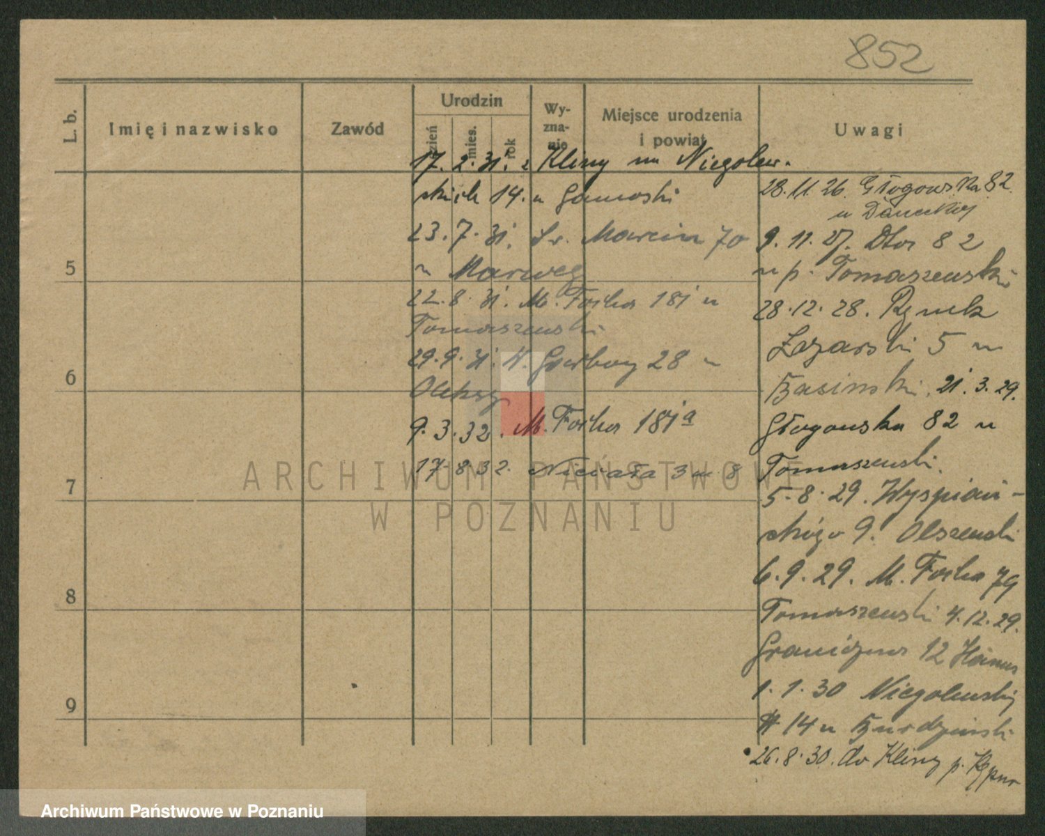 Podgląd karty osobowej dostępny jest po kliknięciu na nazwisko lub ikonkę karty. Można dokonywać powiększenia (ikony na górze) lub przechodzić między kolejnymi skanami (strzałki po bokach).