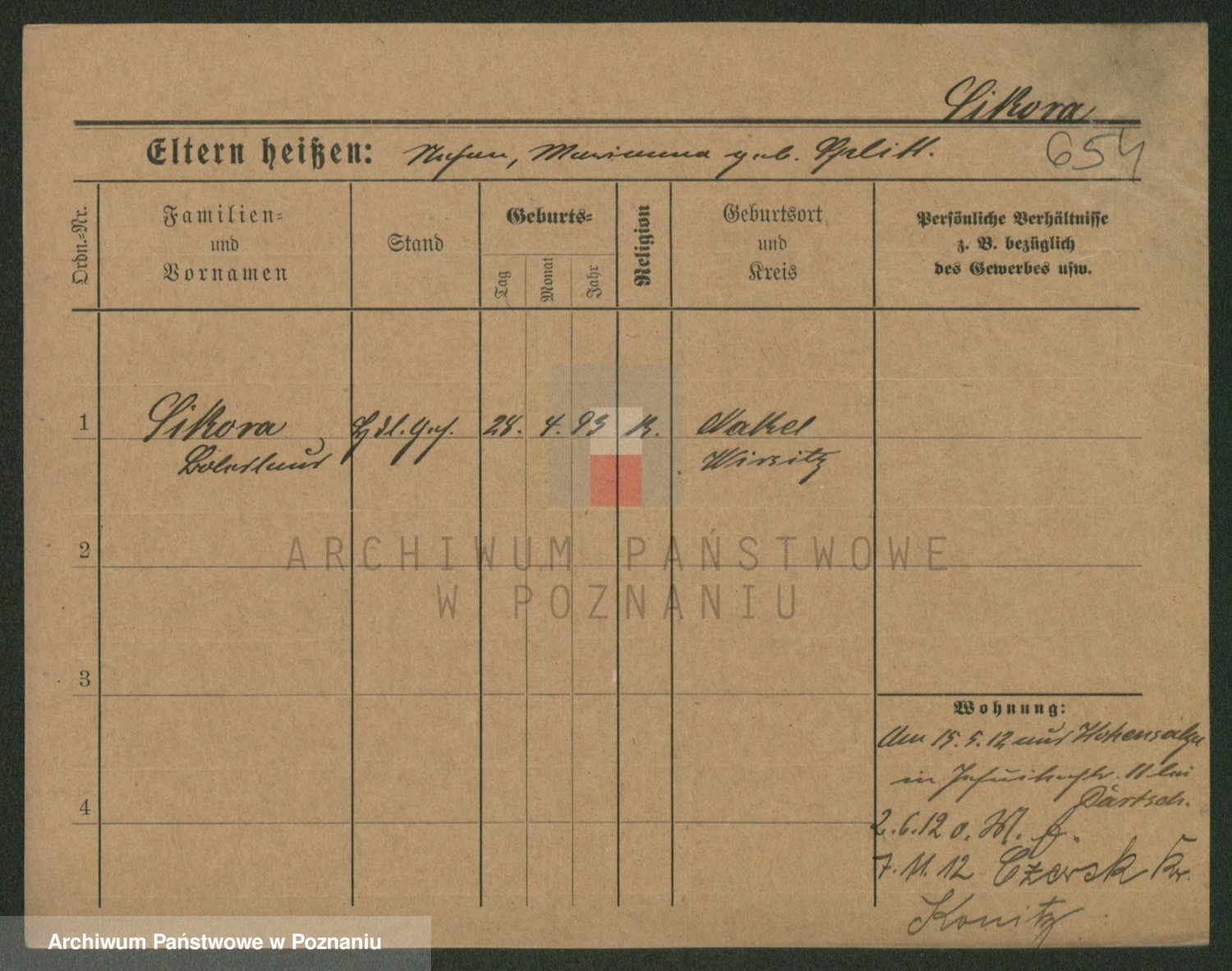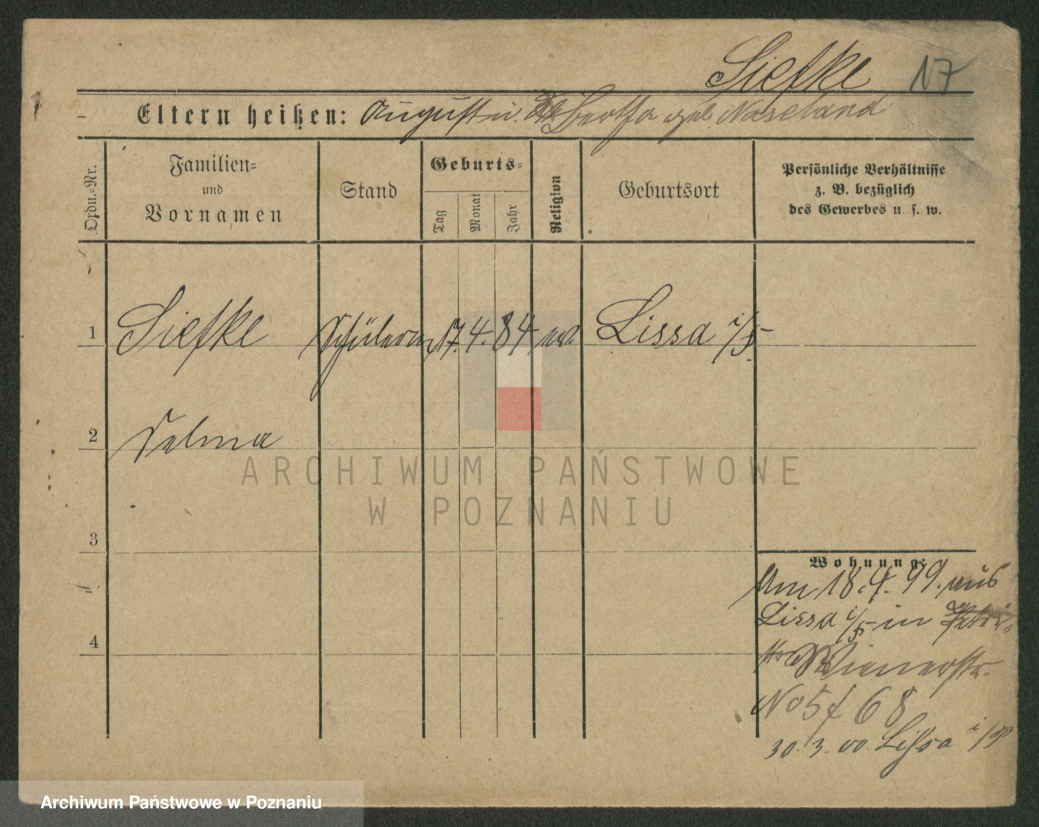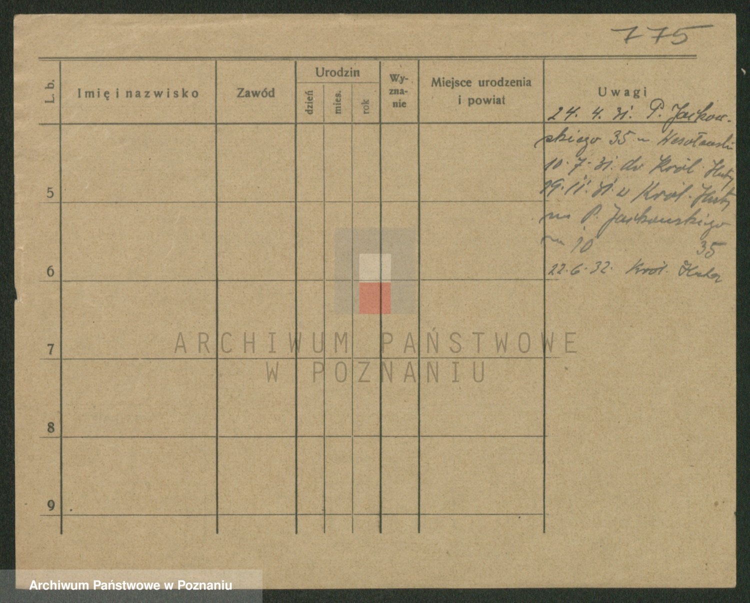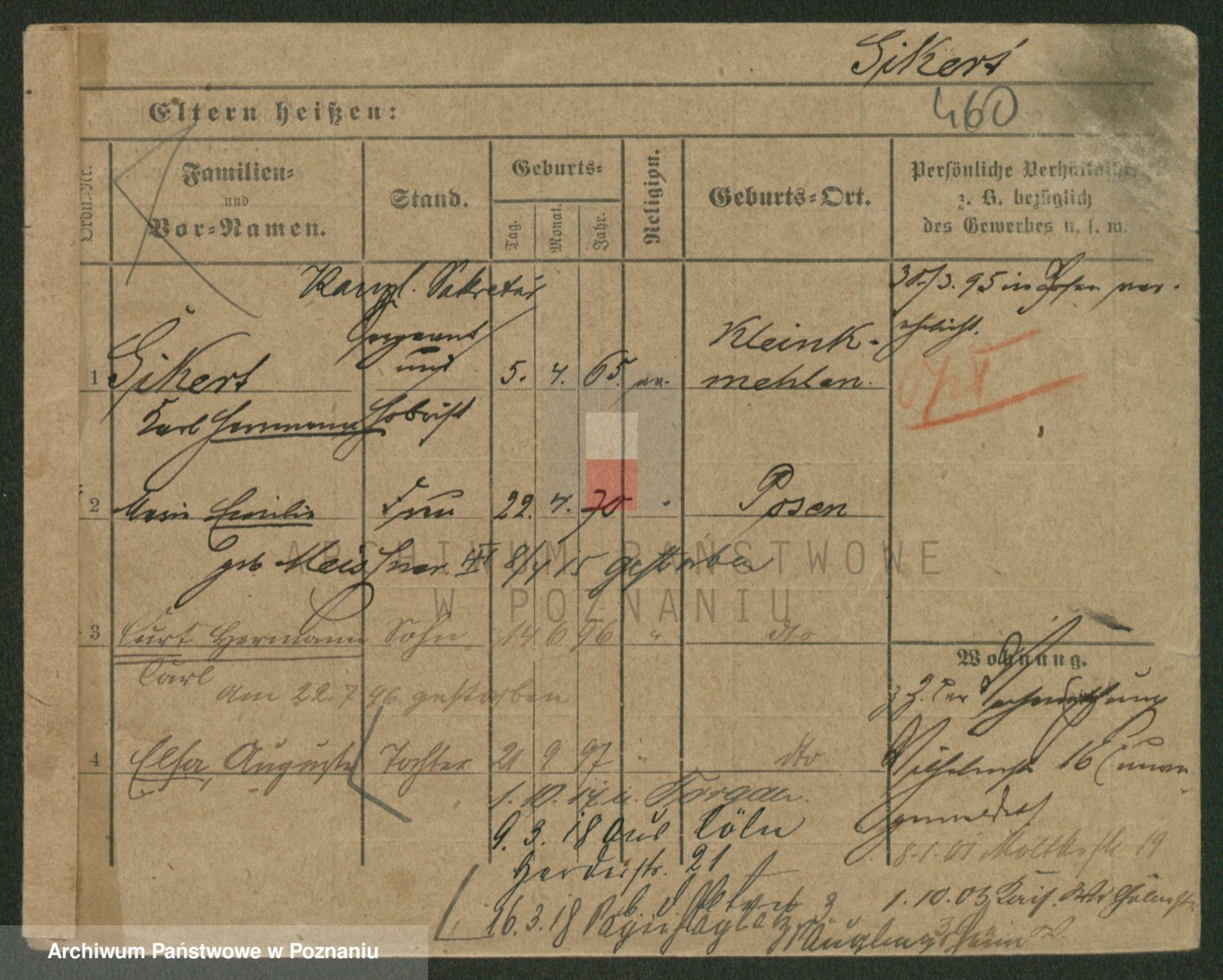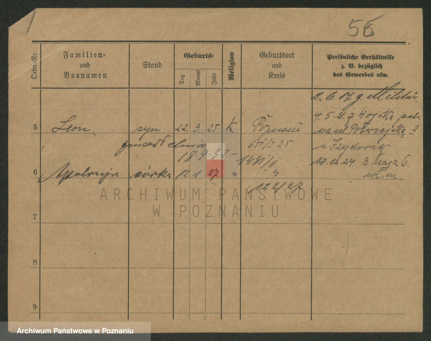 Podgląd karty osobowej dostępny jest po kliknięciu na nazwisko lub ikonkę karty. Można dokonywać powiększenia (ikony na górze) lub przechodzić między kolejnymi skanami (strzałki po bokach).