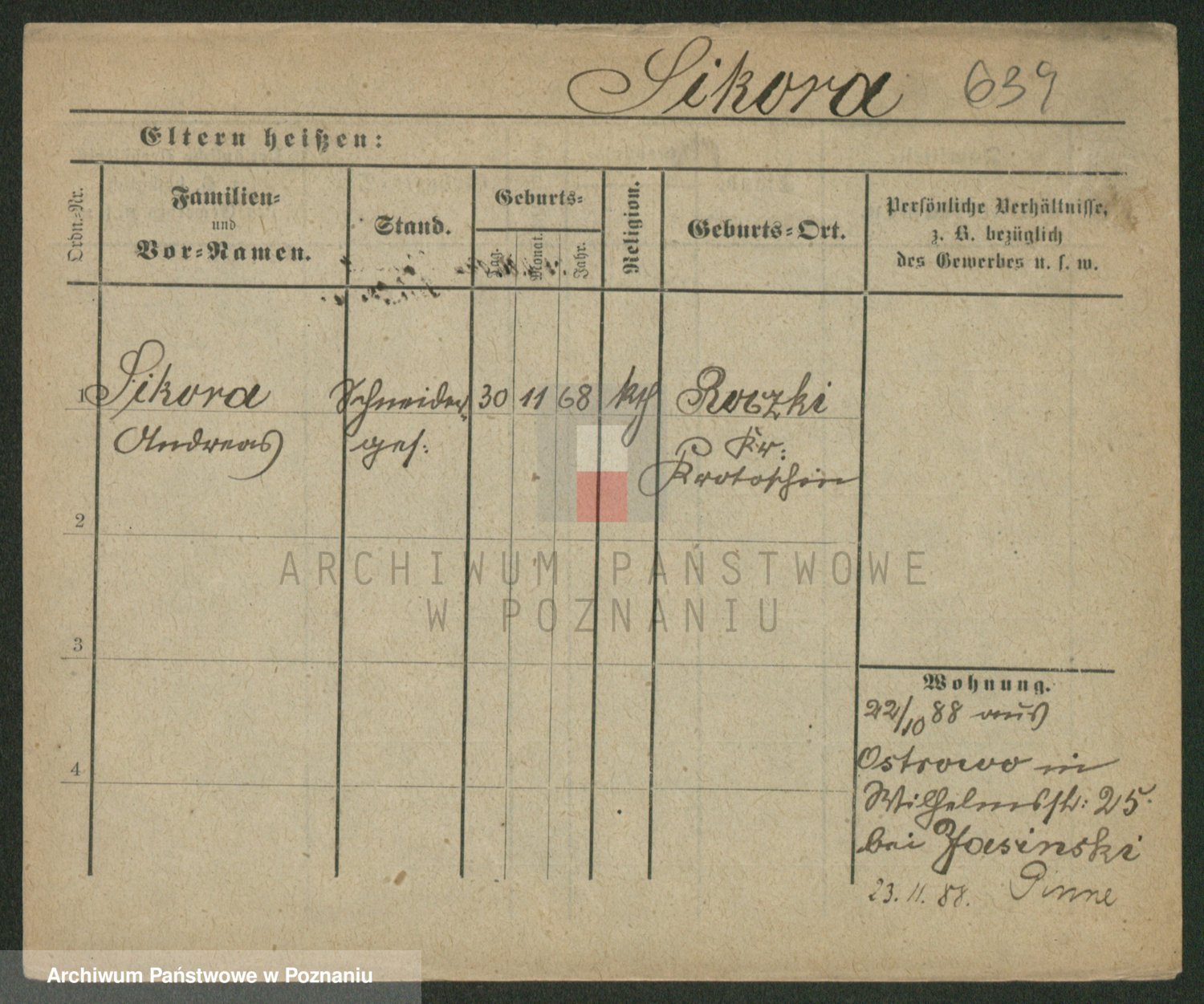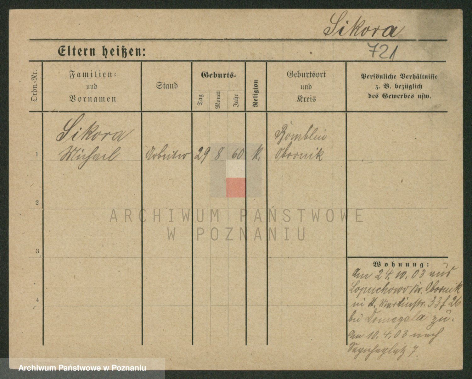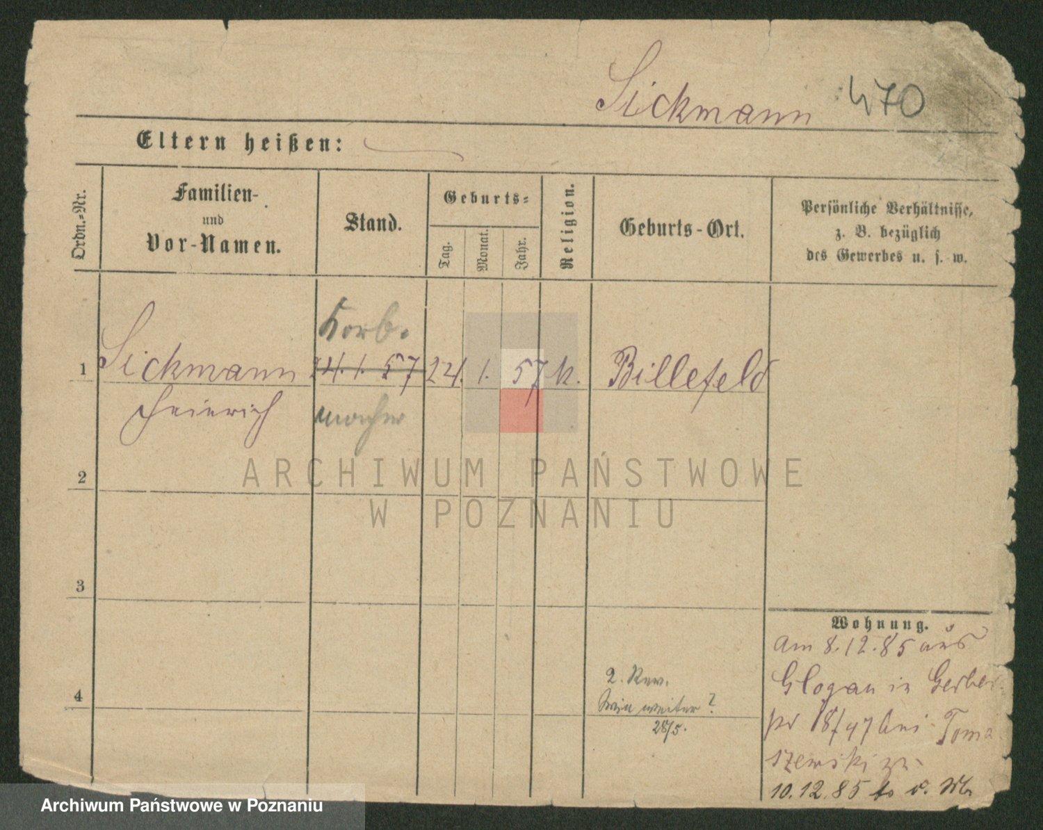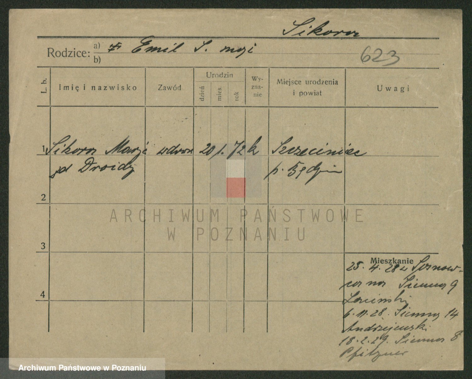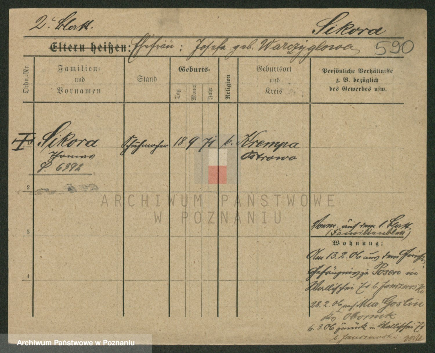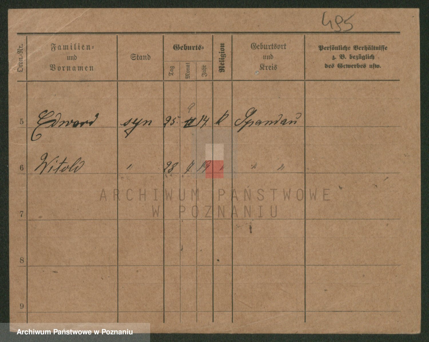 Podgląd karty osobowej dostępny jest po kliknięciu na nazwisko lub ikonkę karty. Można dokonywać powiększenia (ikony na górze) lub przechodzić między kolejnymi skanami (strzałki po bokach).