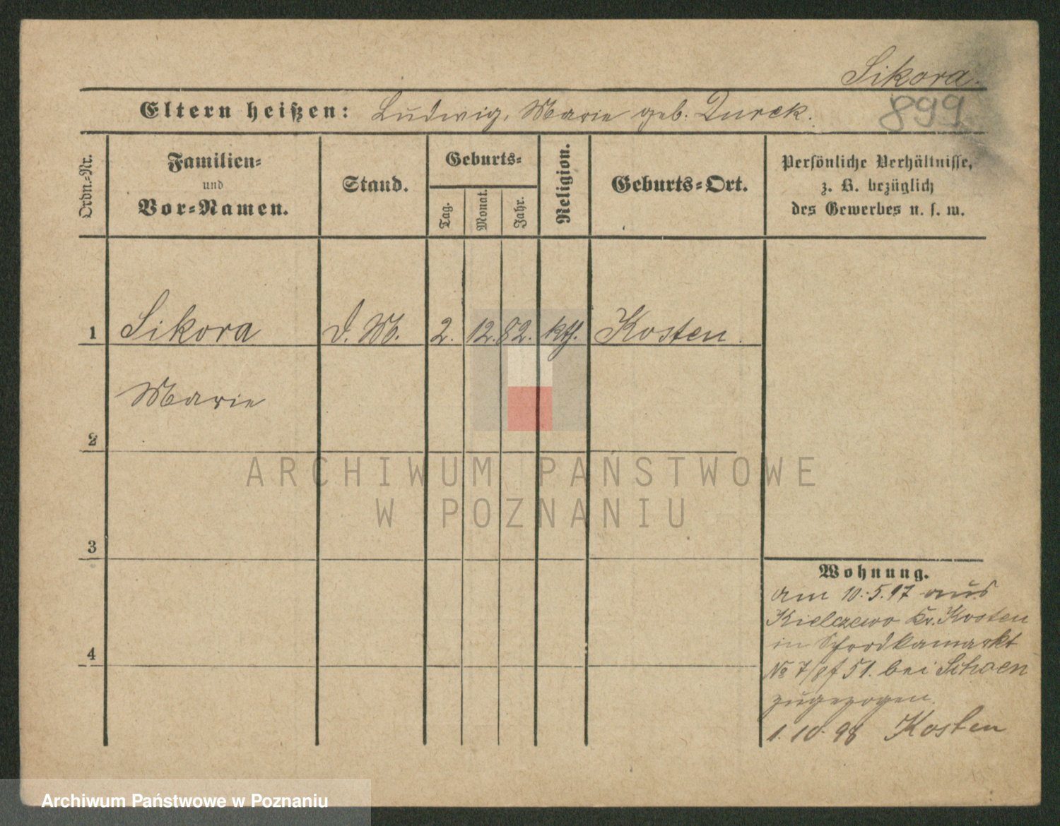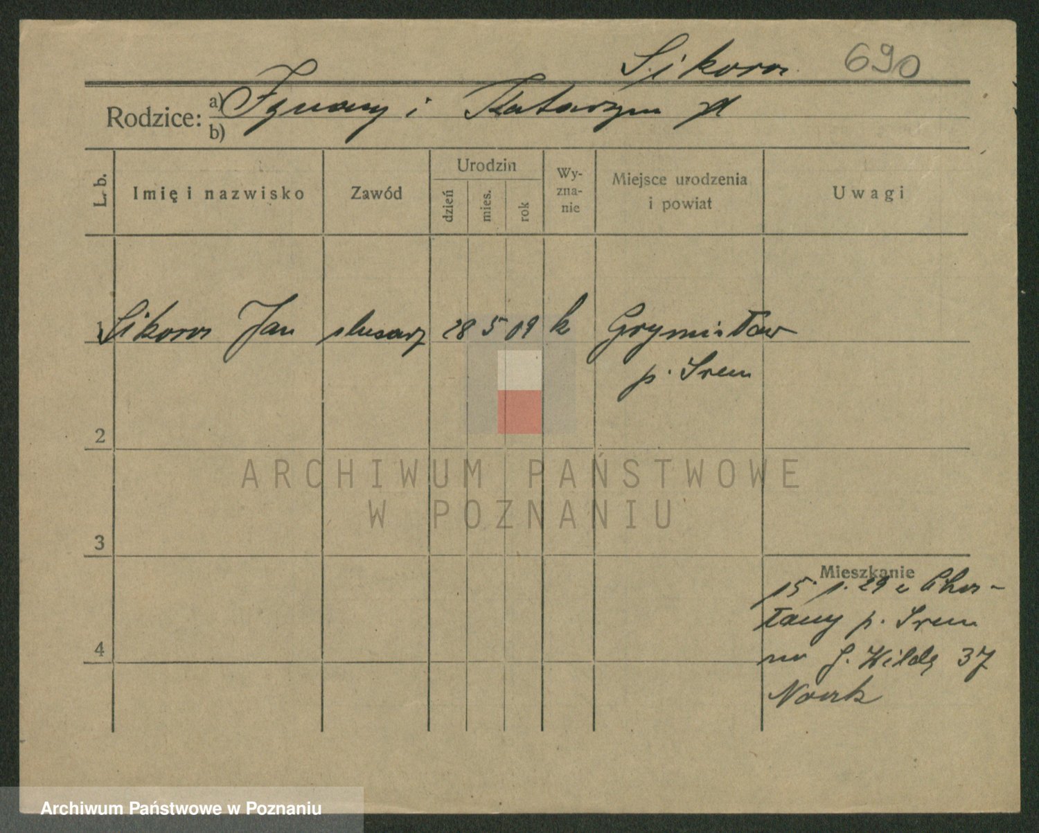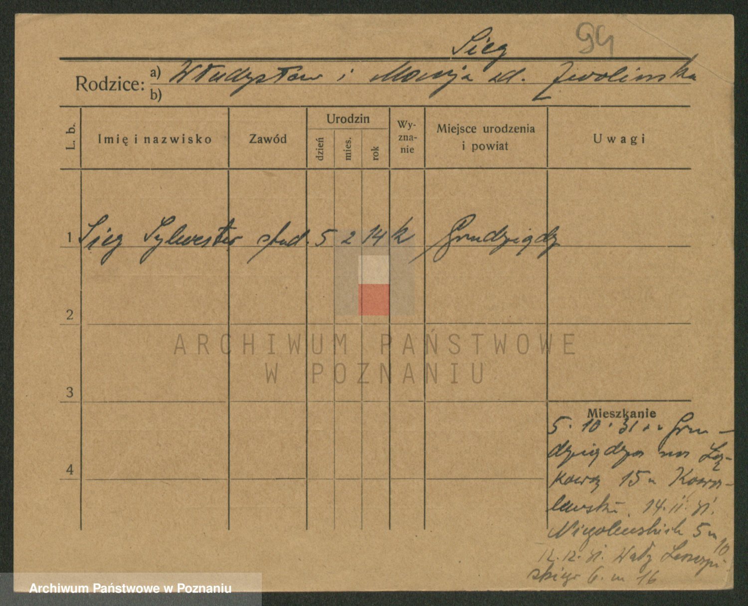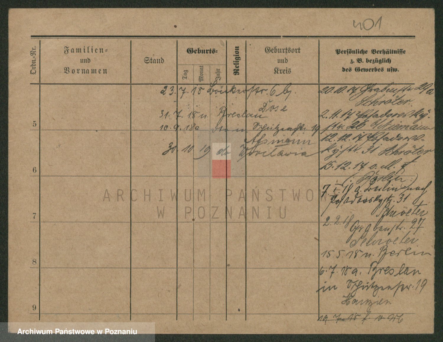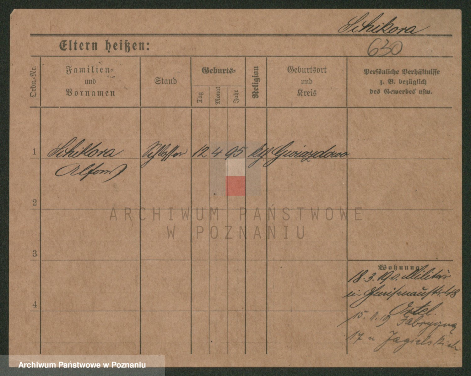 Podgląd karty osobowej dostępny jest po kliknięciu na nazwisko lub ikonkę karty. Można dokonywać powiększenia (ikony na górze) lub przechodzić między kolejnymi skanami (strzałki po bokach).