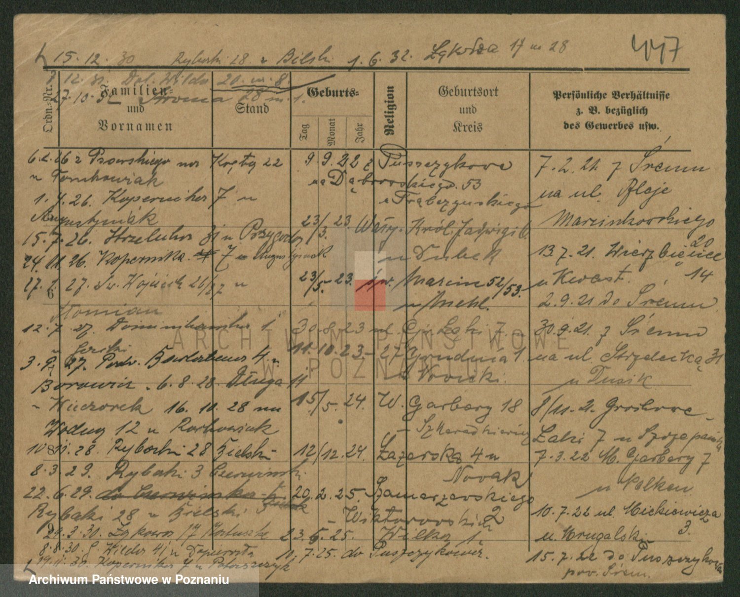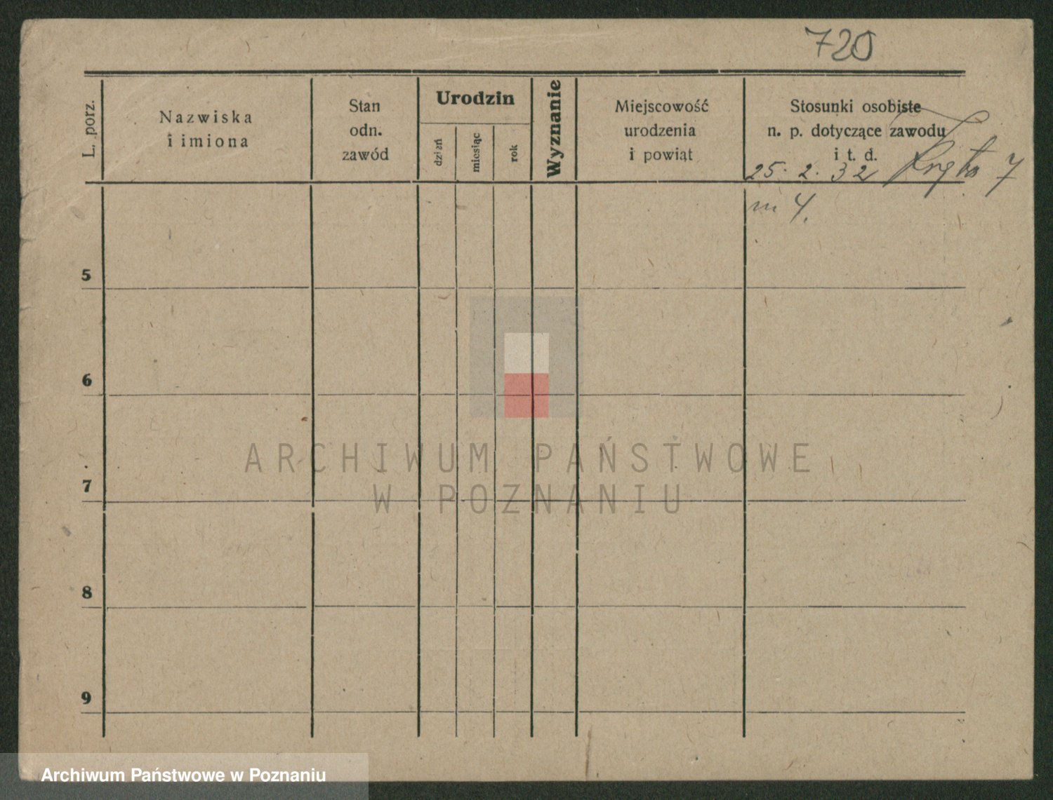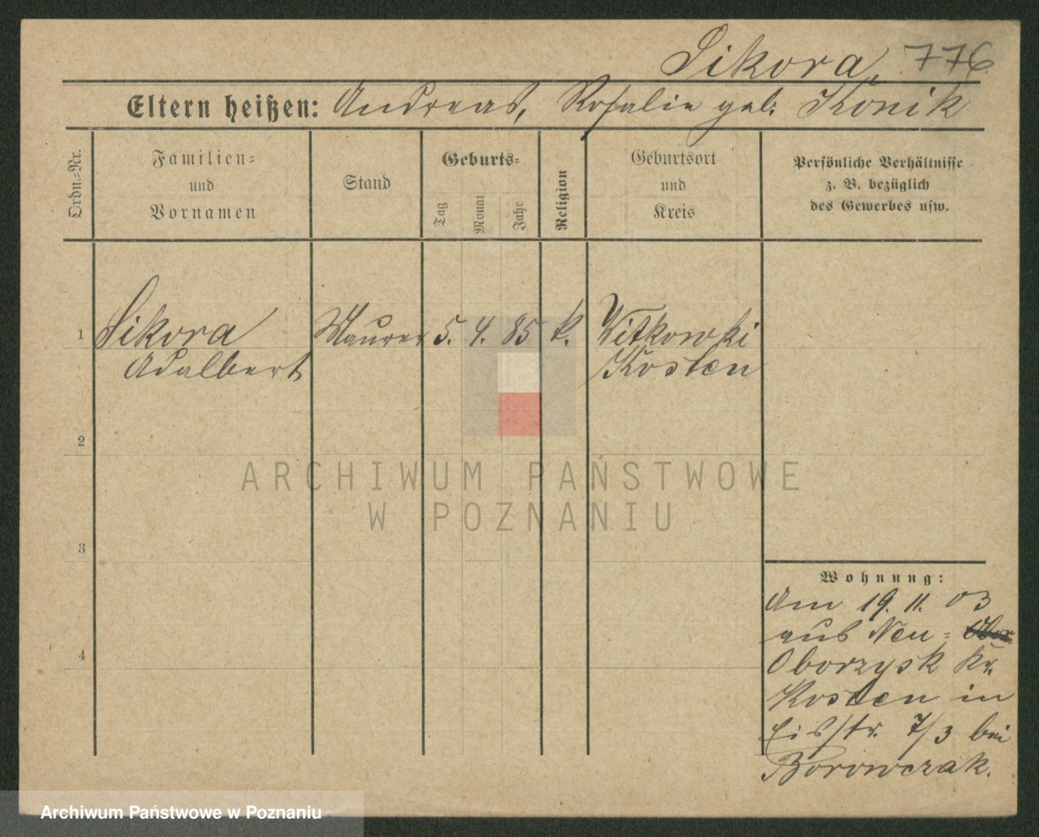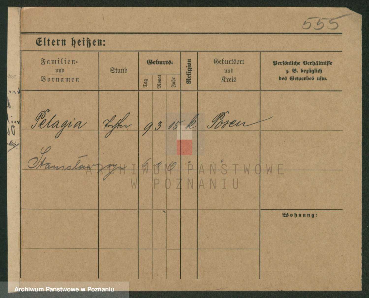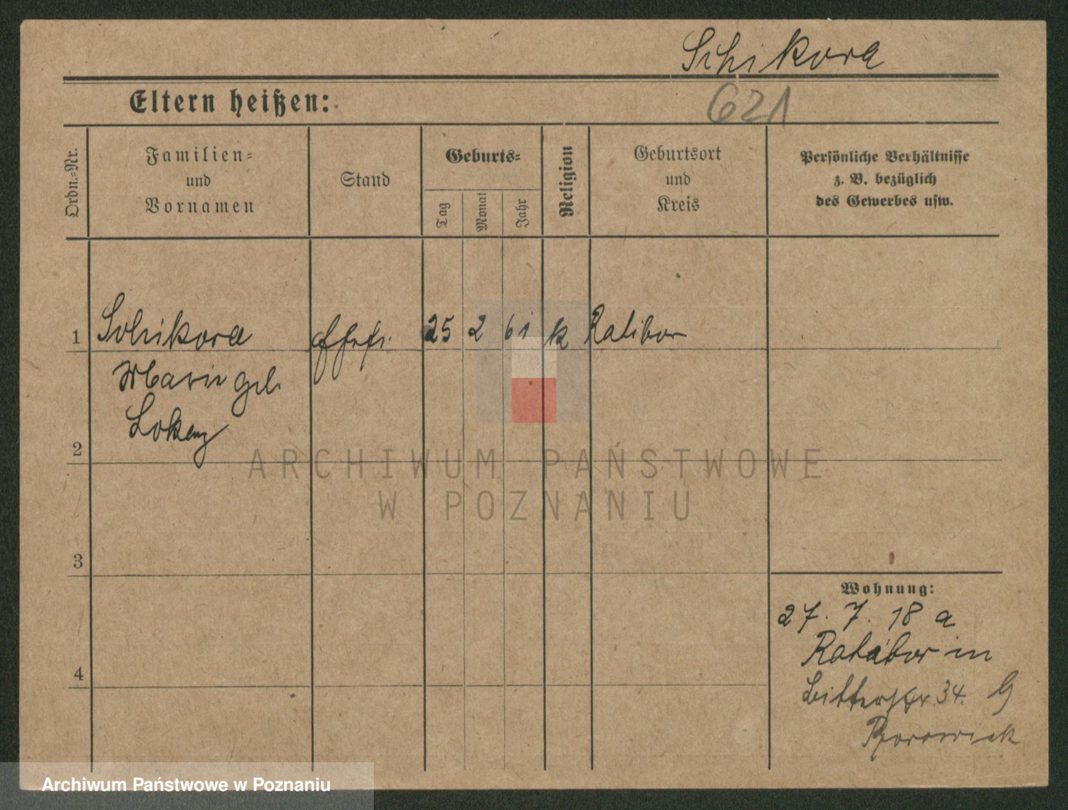 Podgląd karty osobowej dostępny jest po kliknięciu na nazwisko lub ikonkę karty. Można dokonywać powiększenia (ikony na górze) lub przechodzić między kolejnymi skanami (strzałki po bokach).