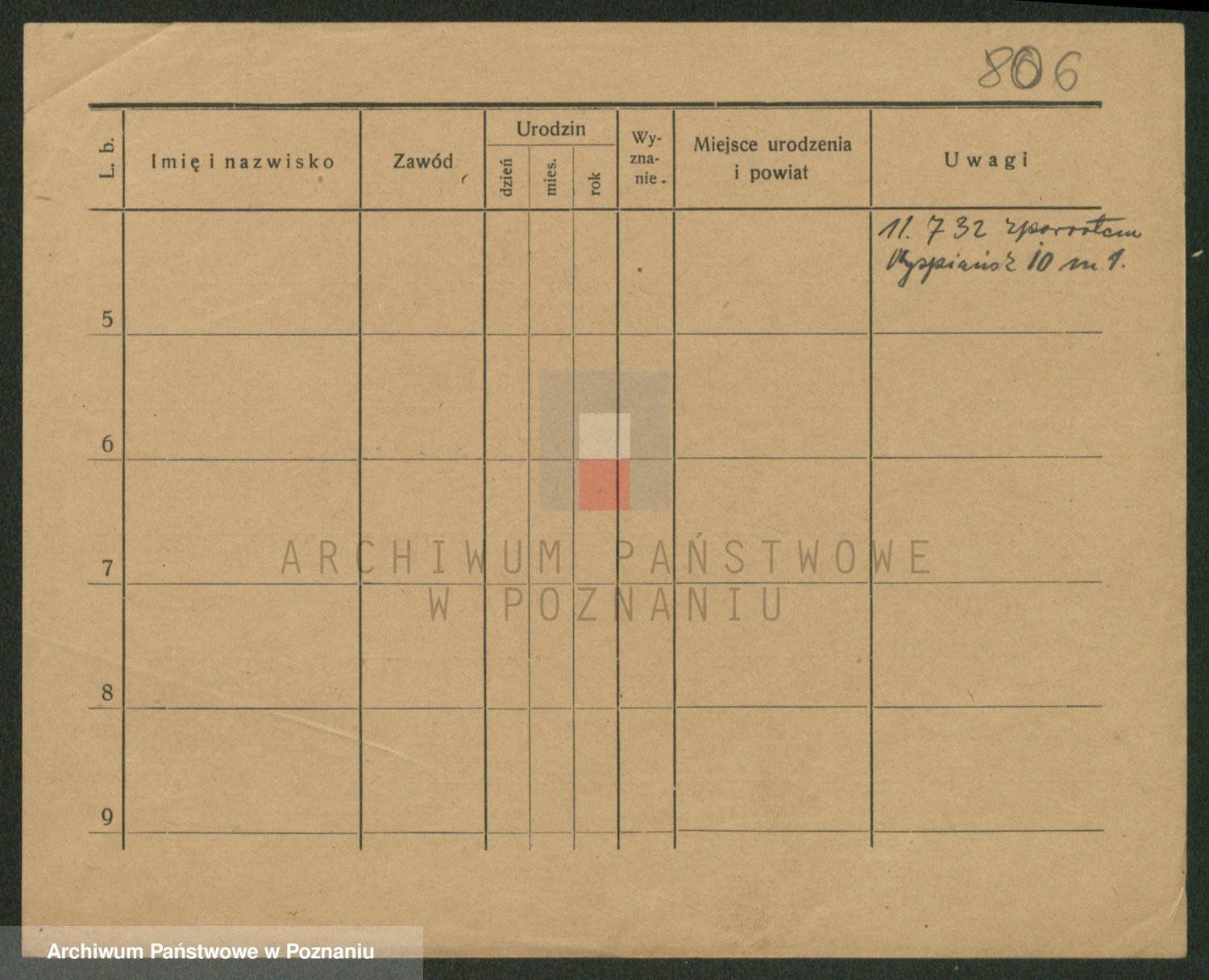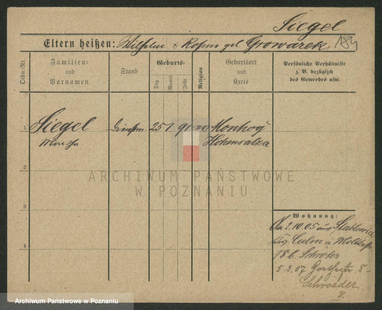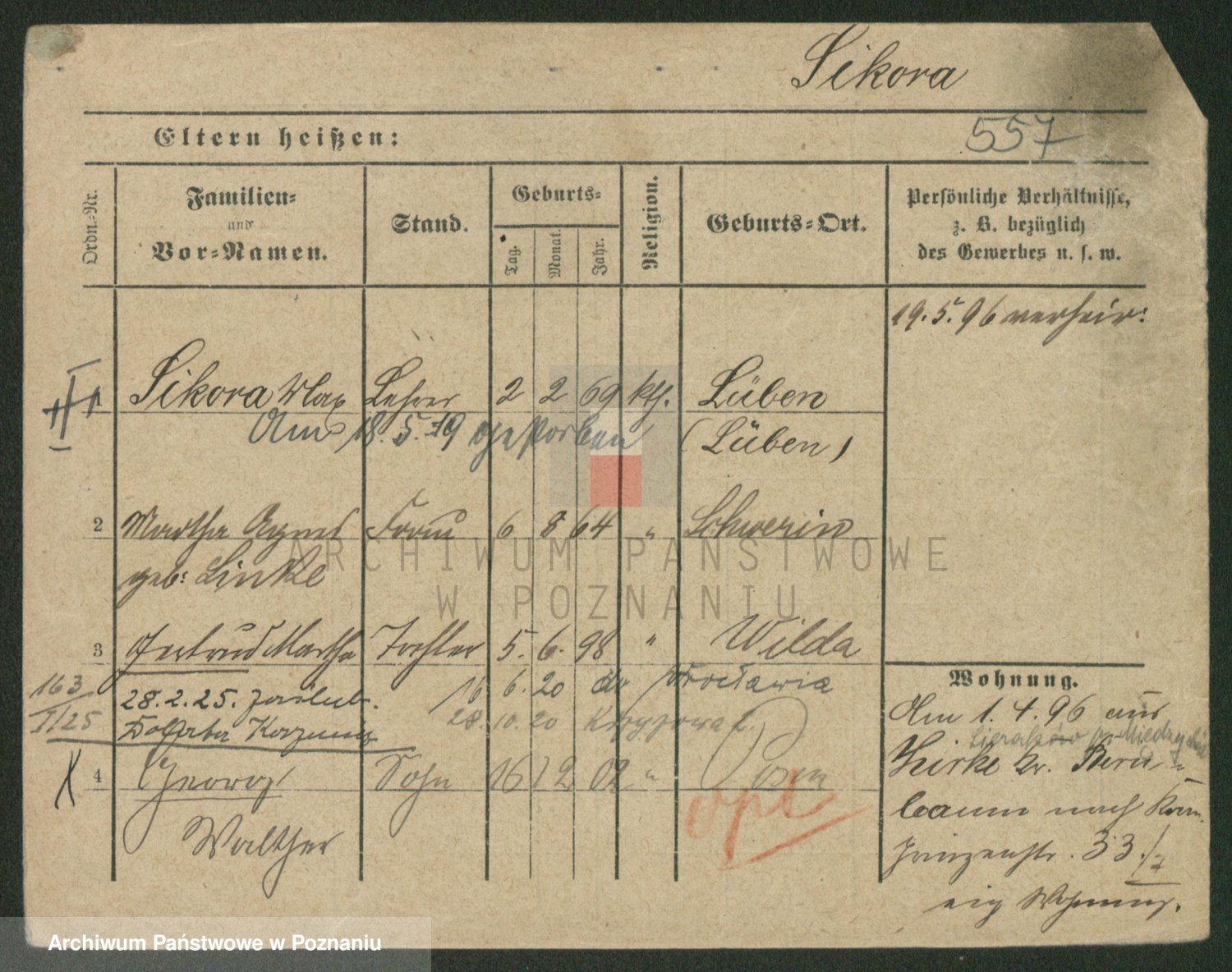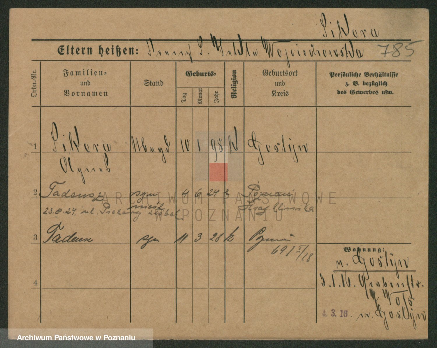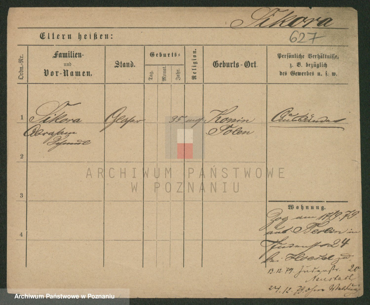 Podgląd karty osobowej dostępny jest po kliknięciu na nazwisko lub ikonkę karty. Można dokonywać powiększenia (ikony na górze) lub przechodzić między kolejnymi skanami (strzałki po bokach).