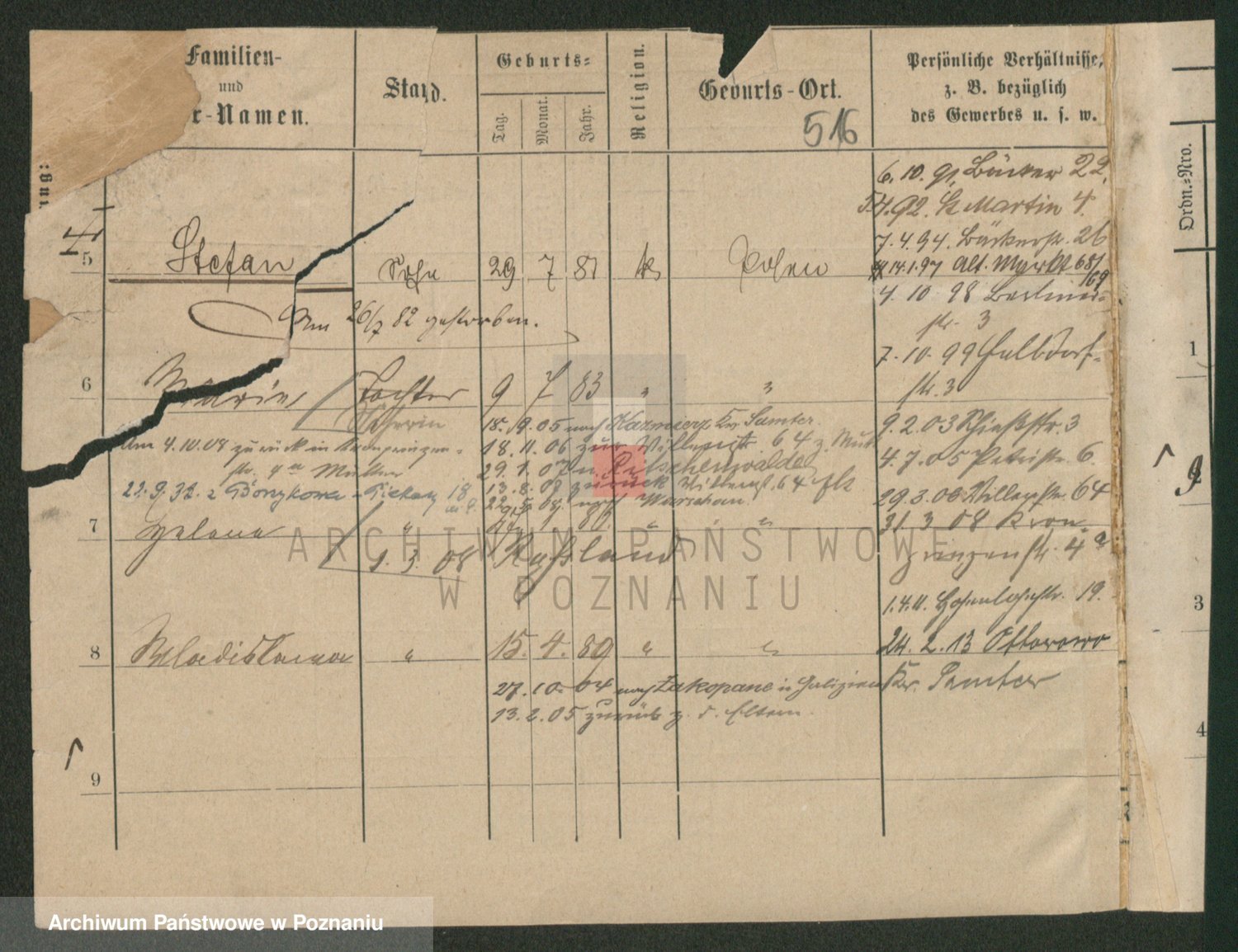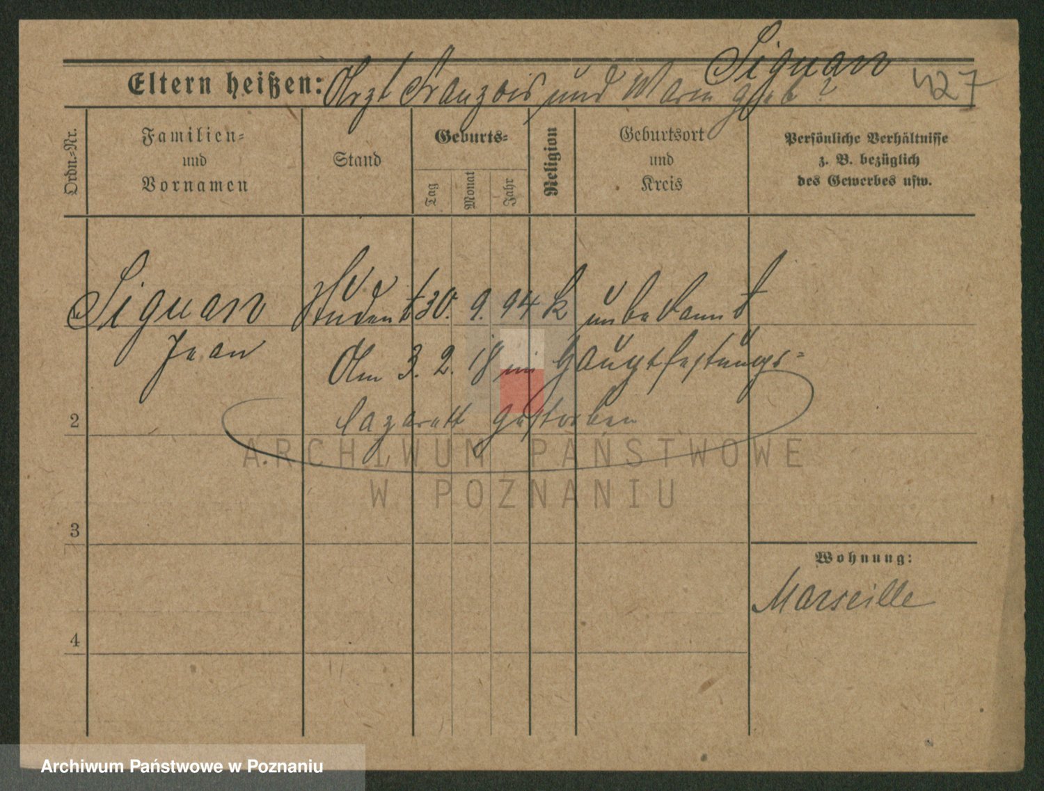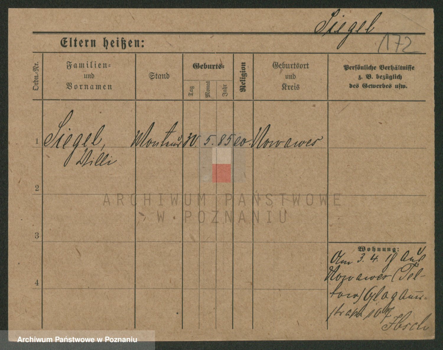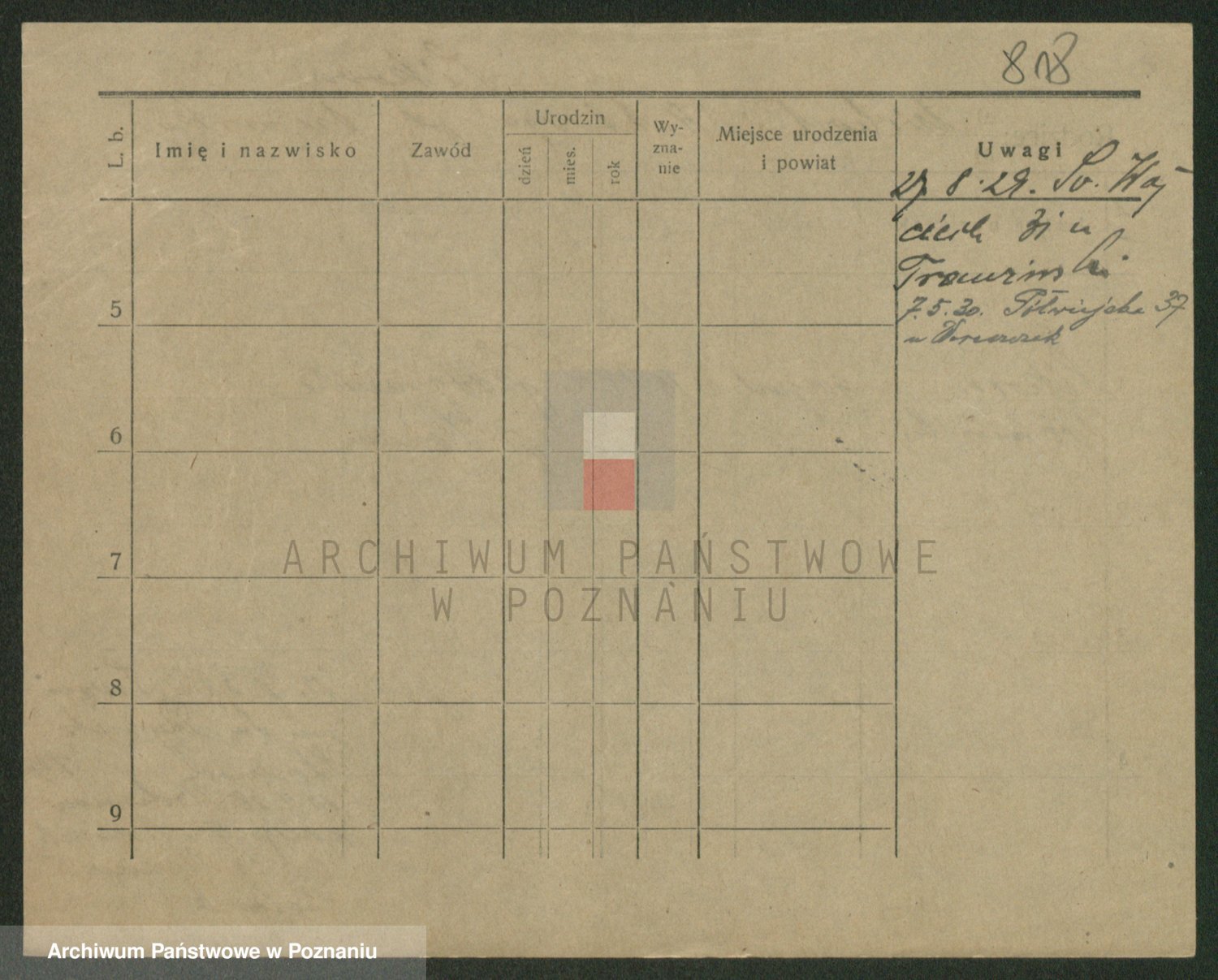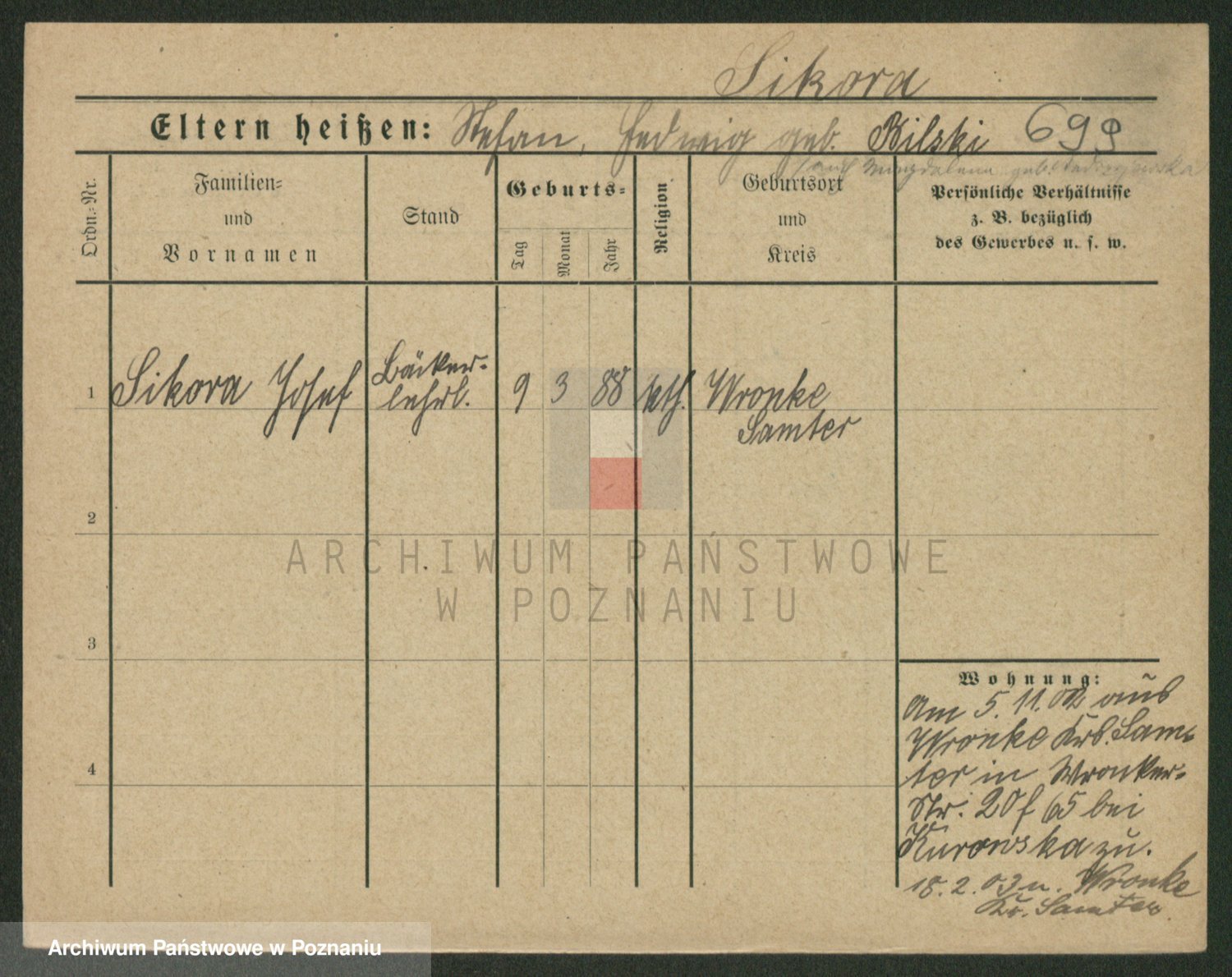 Podgląd karty osobowej dostępny jest po kliknięciu na nazwisko lub ikonkę karty. Można dokonywać powiększenia (ikony na górze) lub przechodzić między kolejnymi skanami (strzałki po bokach).