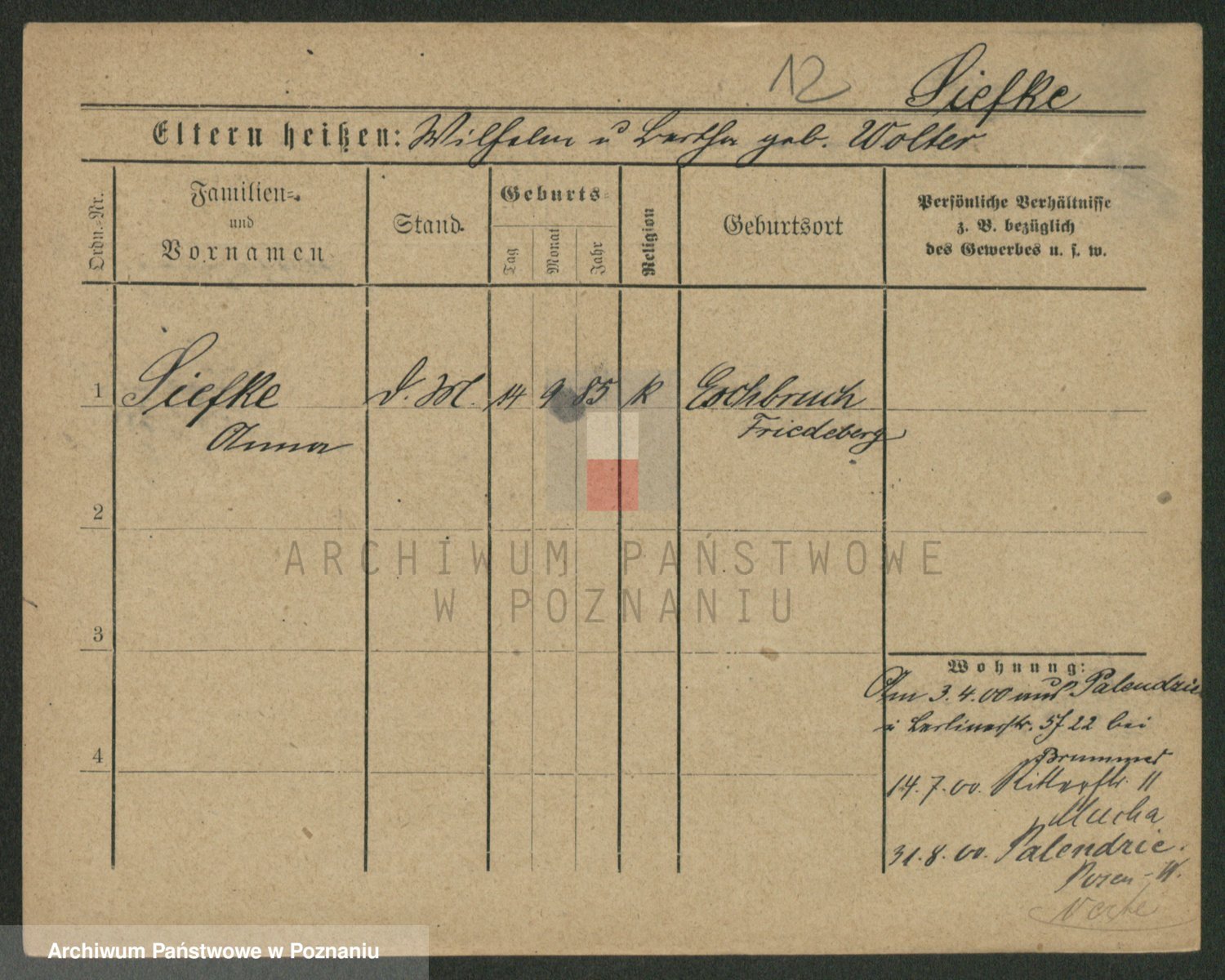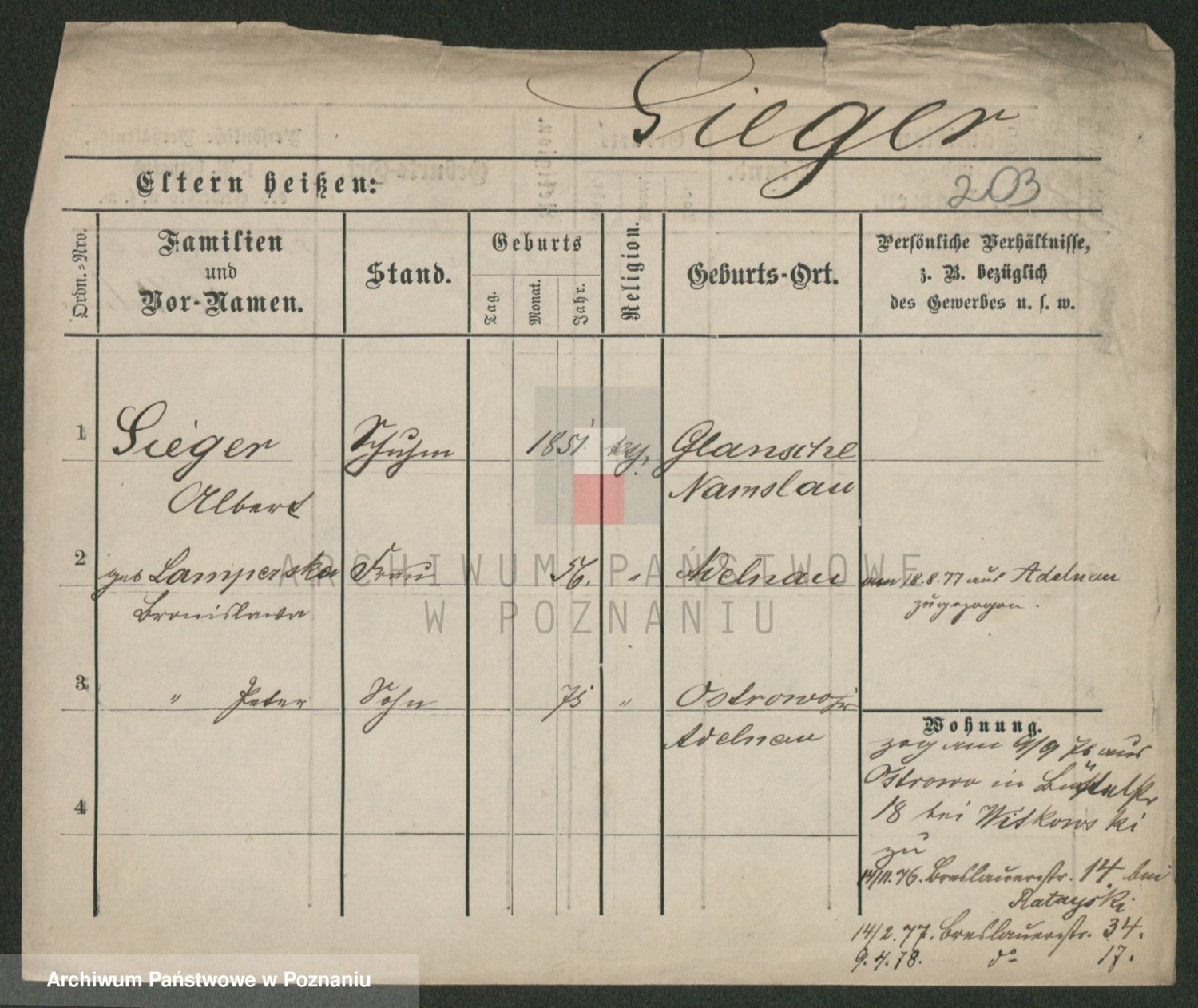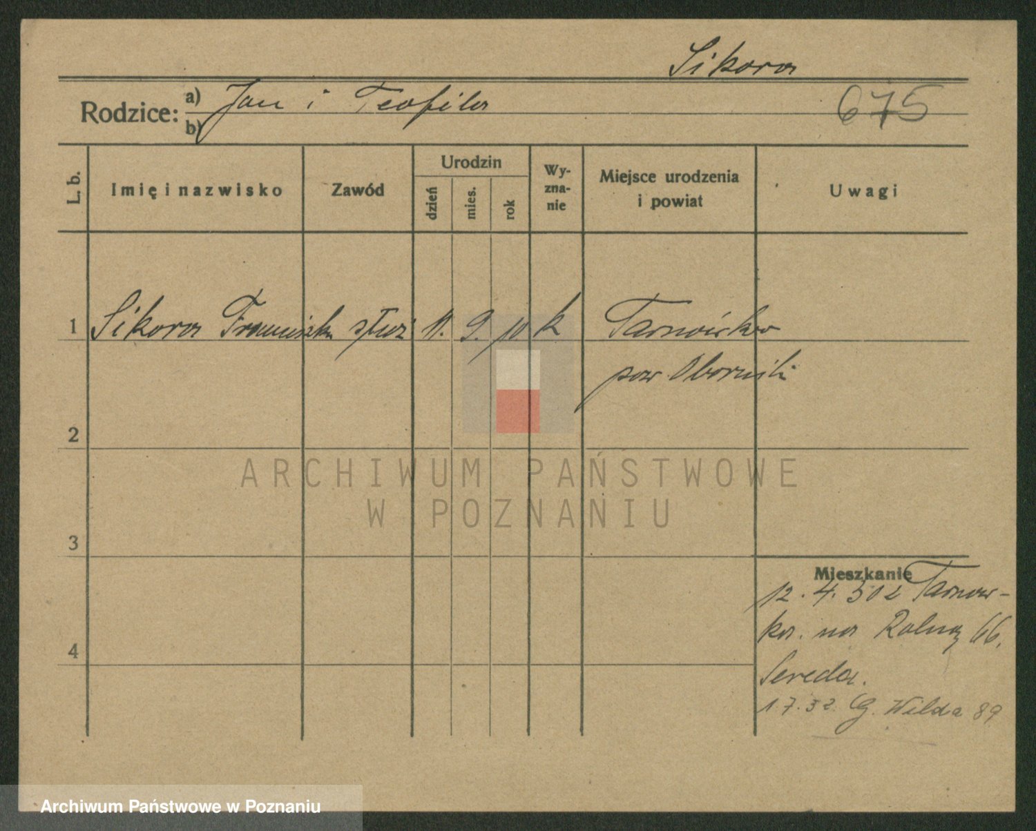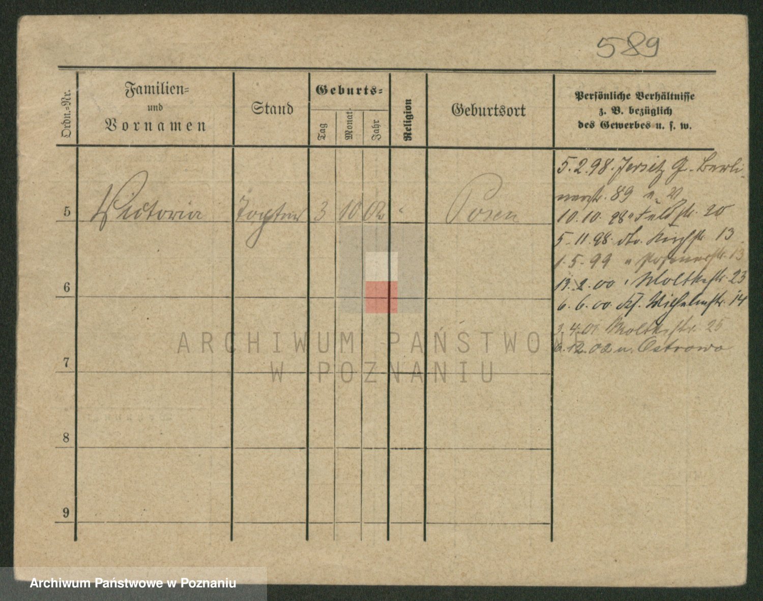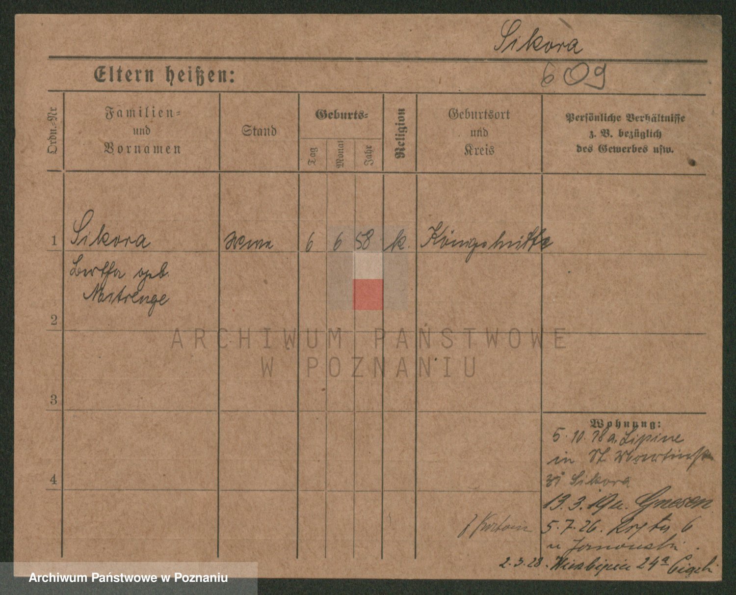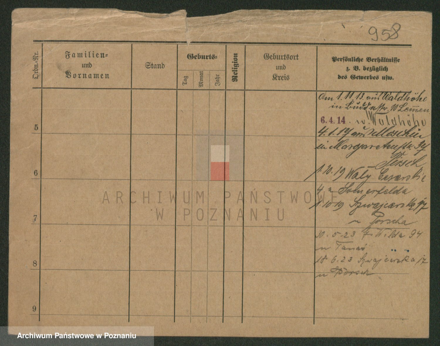 Podgląd karty osobowej dostępny jest po kliknięciu na nazwisko lub ikonkę karty. Można dokonywać powiększenia (ikony na górze) lub przechodzić między kolejnymi skanami (strzałki po bokach).
