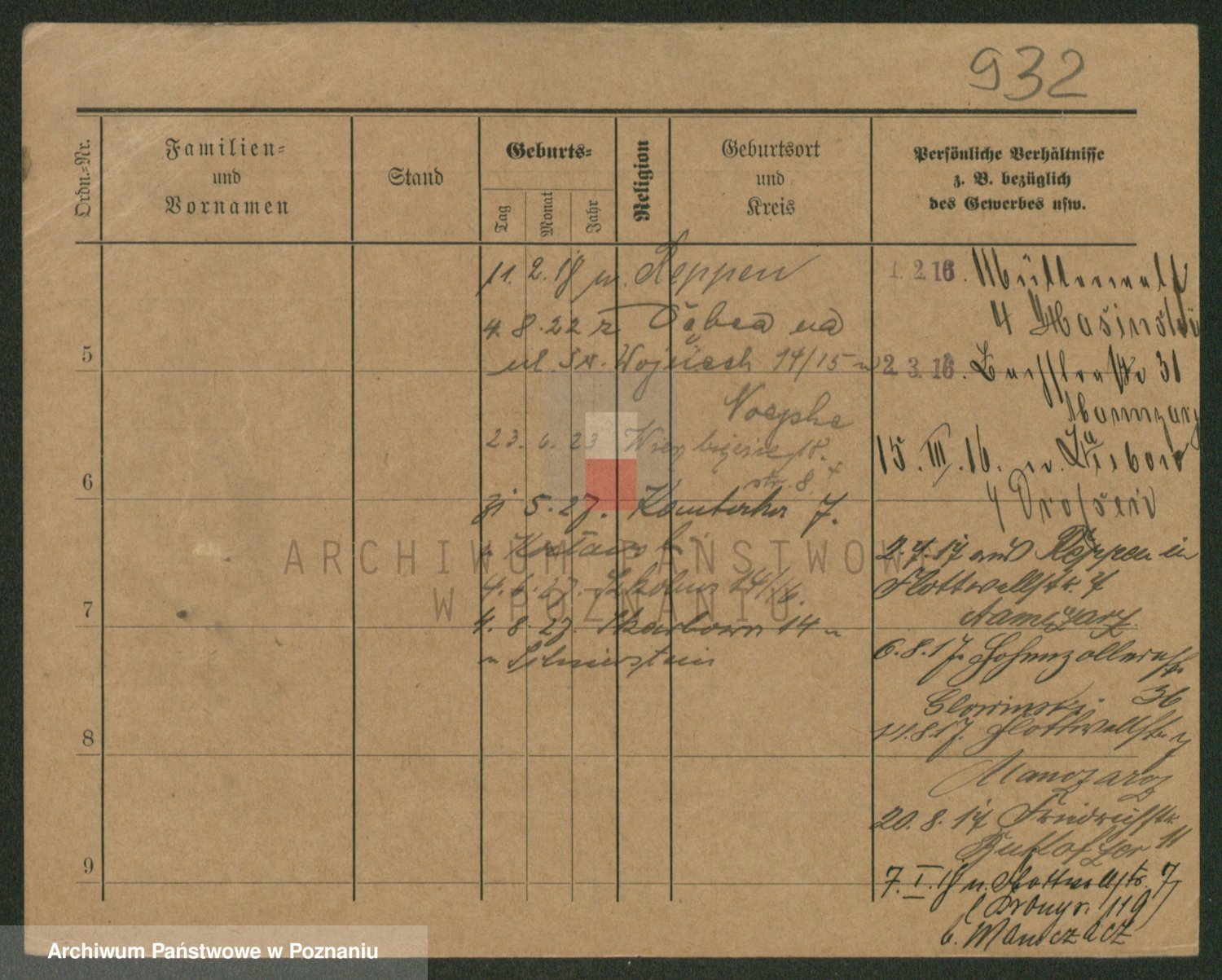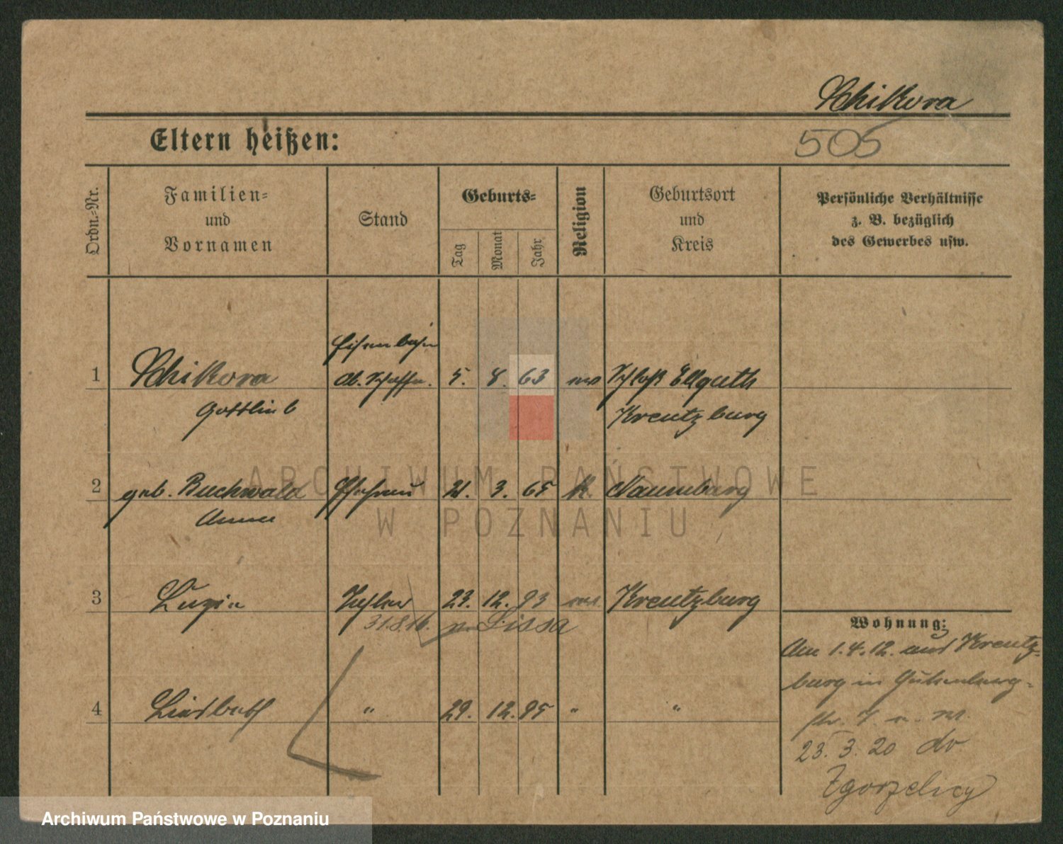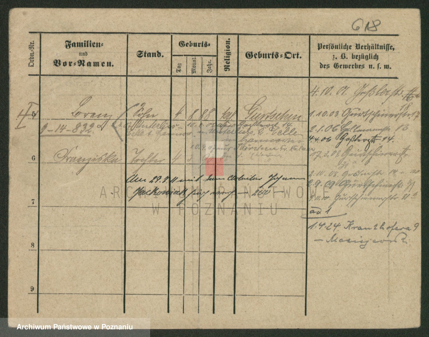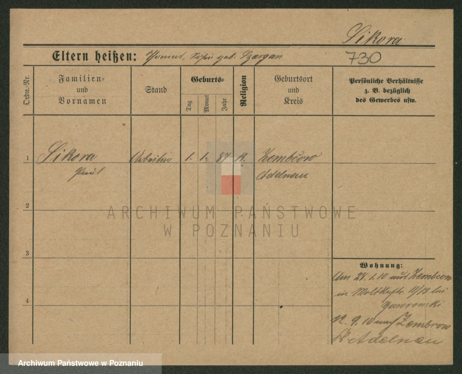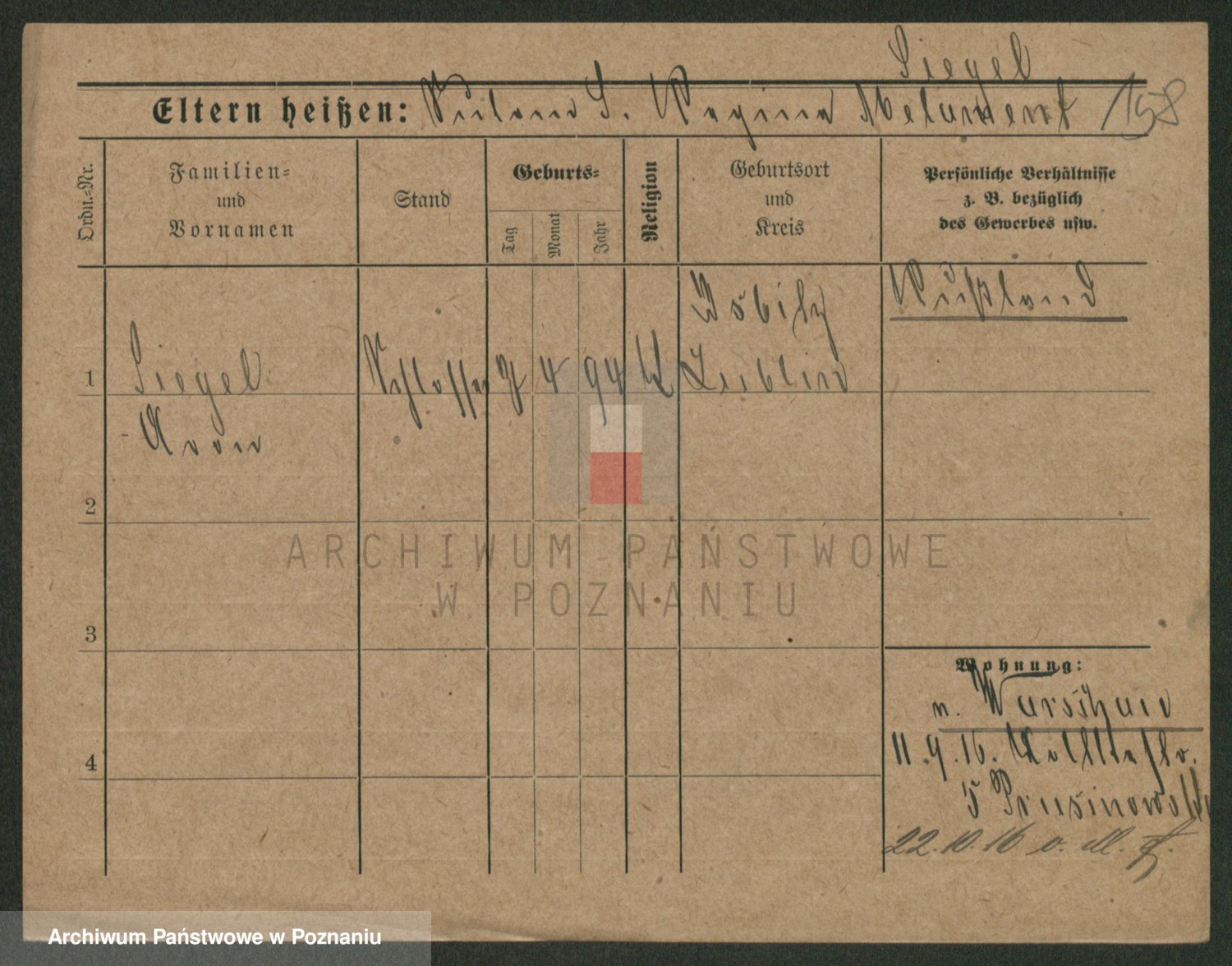 Podgląd karty osobowej dostępny jest po kliknięciu na nazwisko lub ikonkę karty. Można dokonywać powiększenia (ikony na górze) lub przechodzić między kolejnymi skanami (strzałki po bokach).