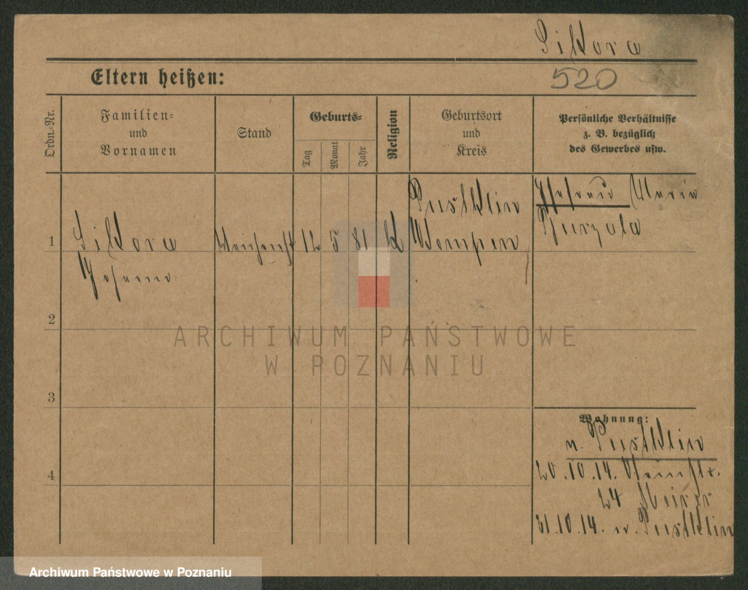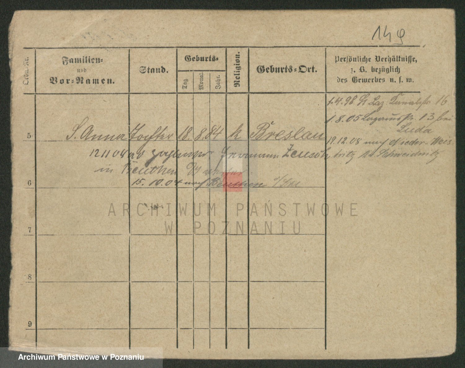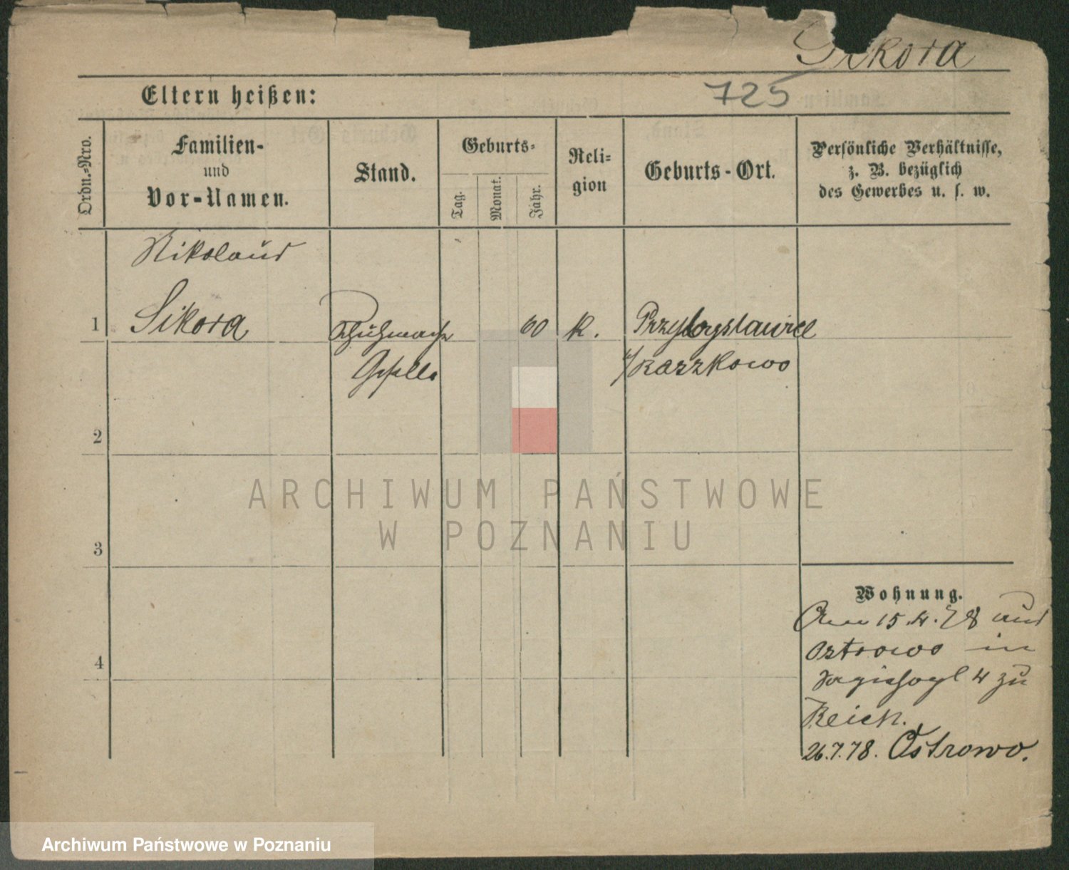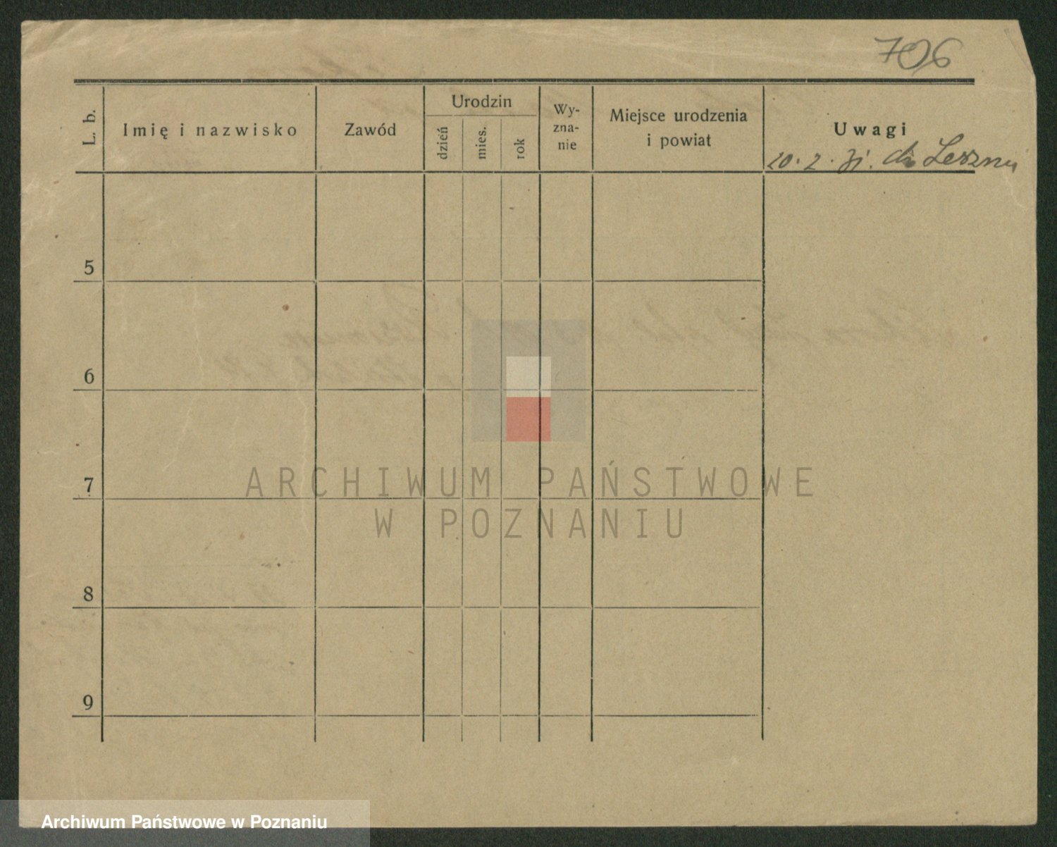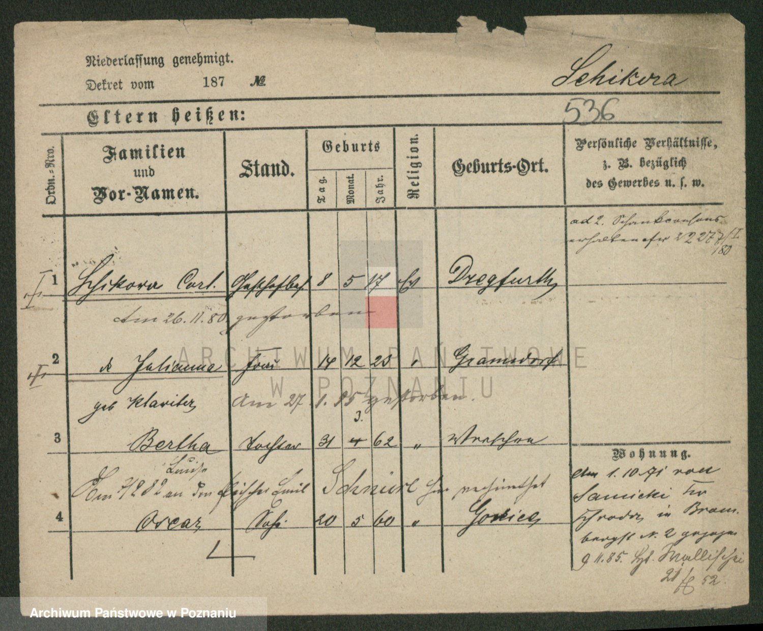 Podgląd karty osobowej dostępny jest po kliknięciu na nazwisko lub ikonkę karty. Można dokonywać powiększenia (ikony na górze) lub przechodzić między kolejnymi skanami (strzałki po bokach).