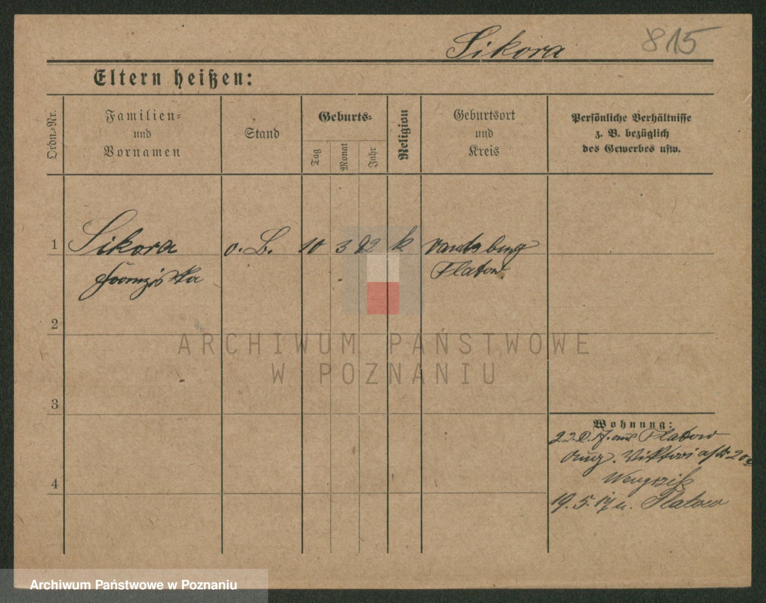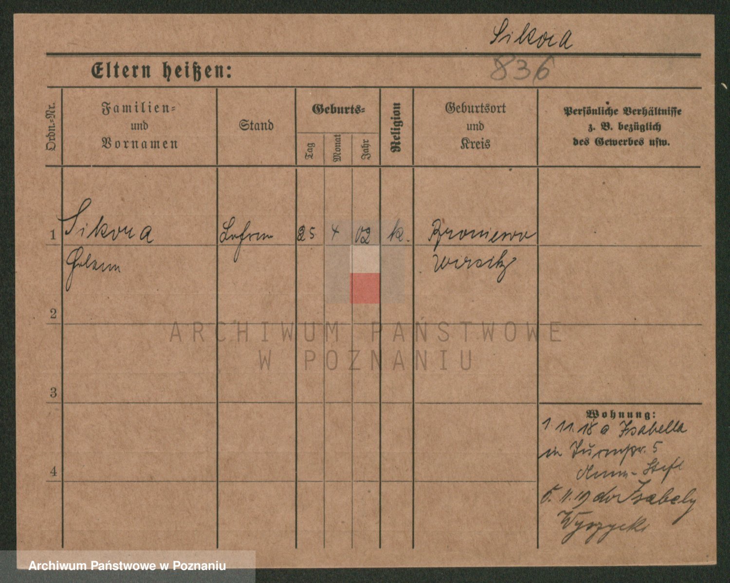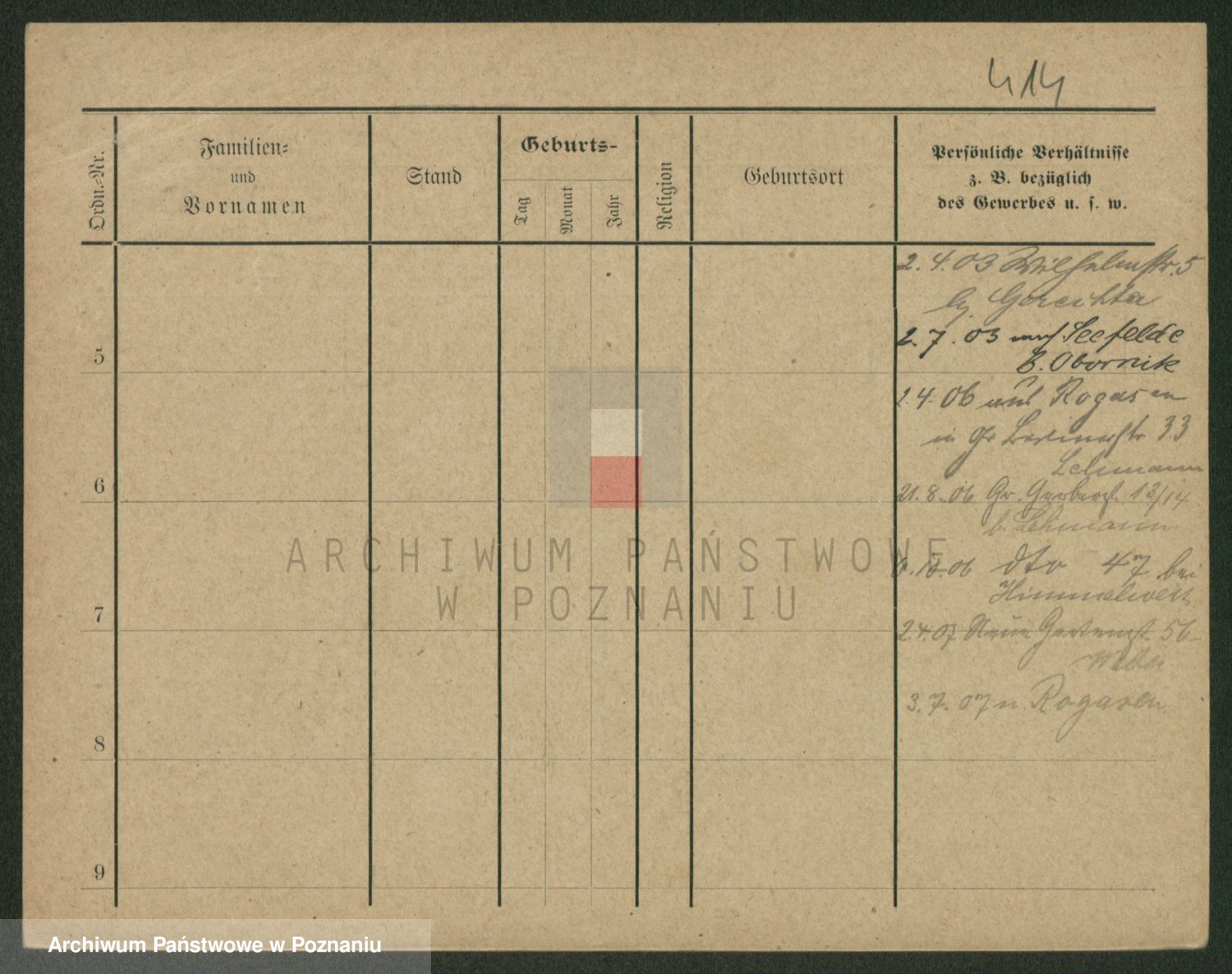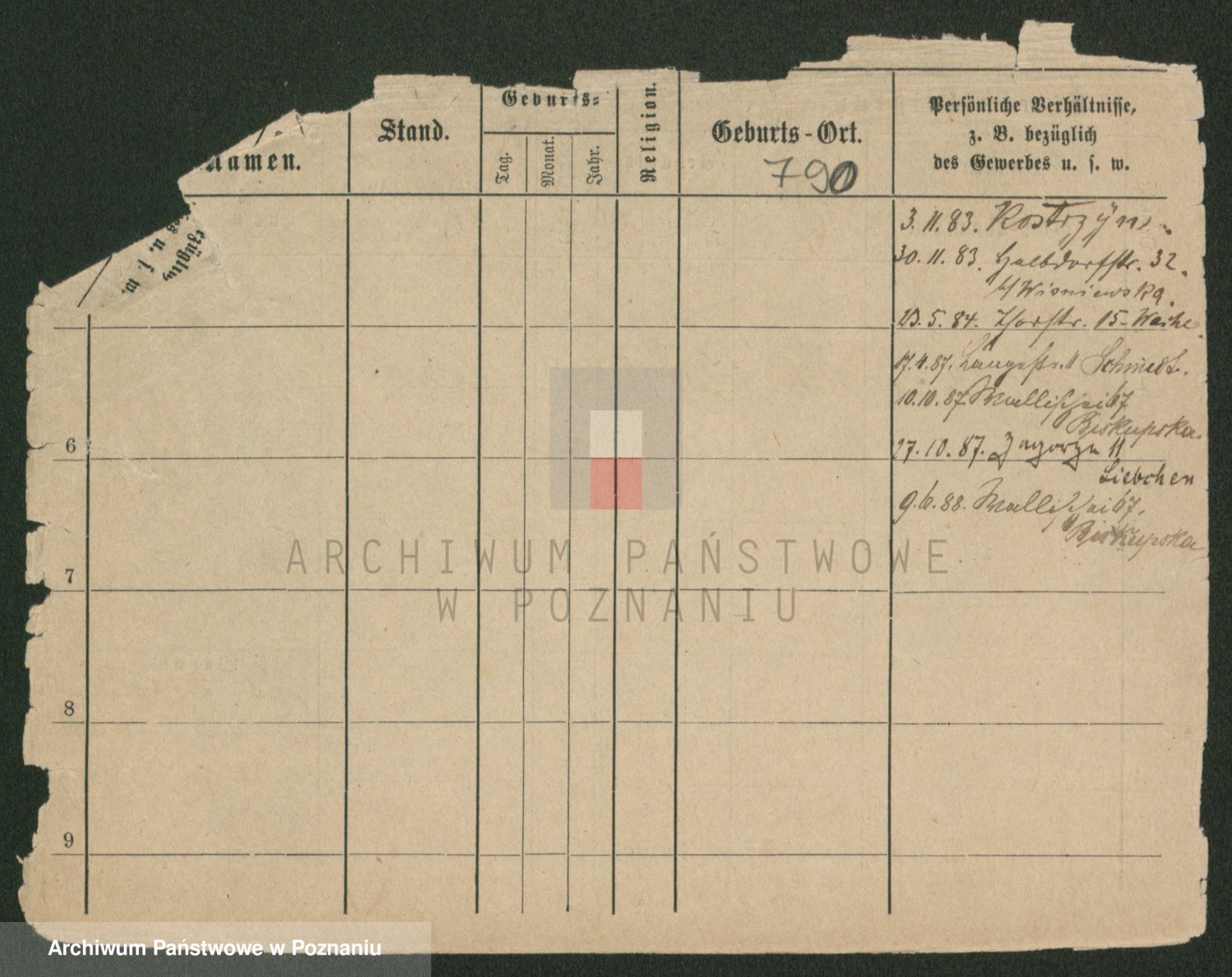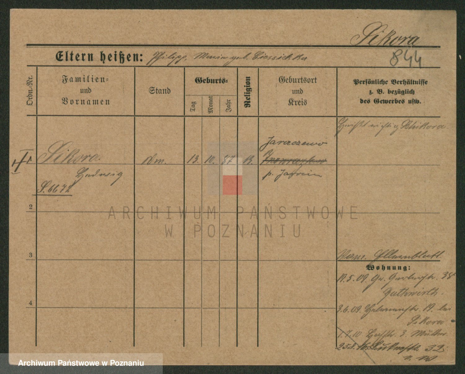 Podgląd karty osobowej dostępny jest po kliknięciu na nazwisko lub ikonkę karty. Można dokonywać powiększenia (ikony na górze) lub przechodzić między kolejnymi skanami (strzałki po bokach).