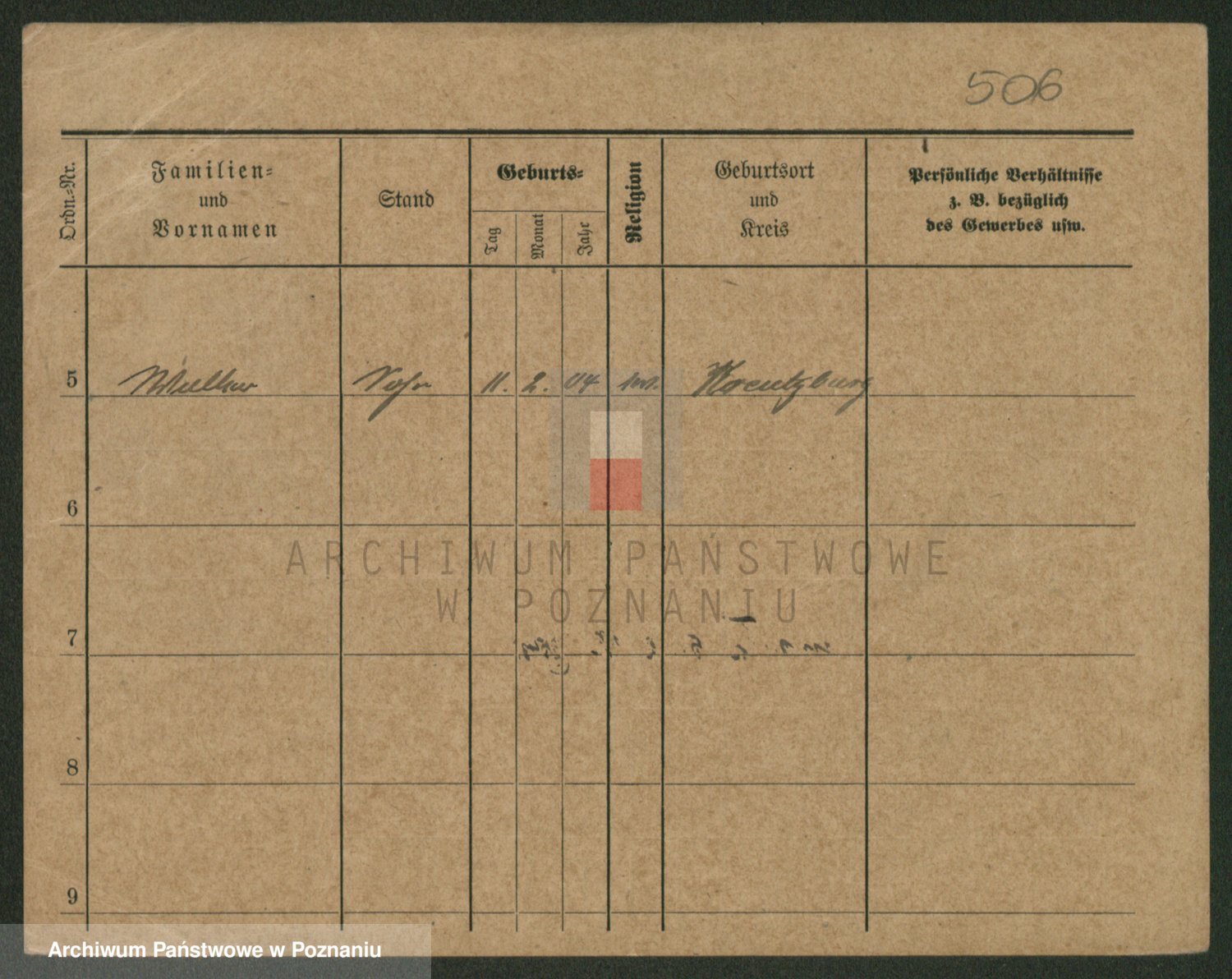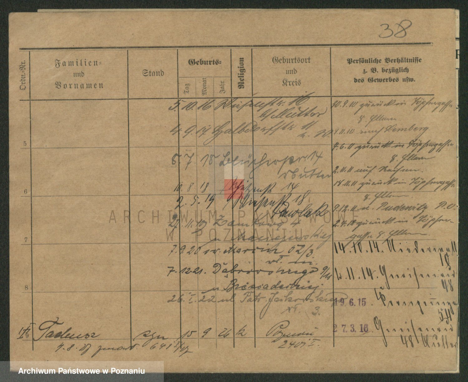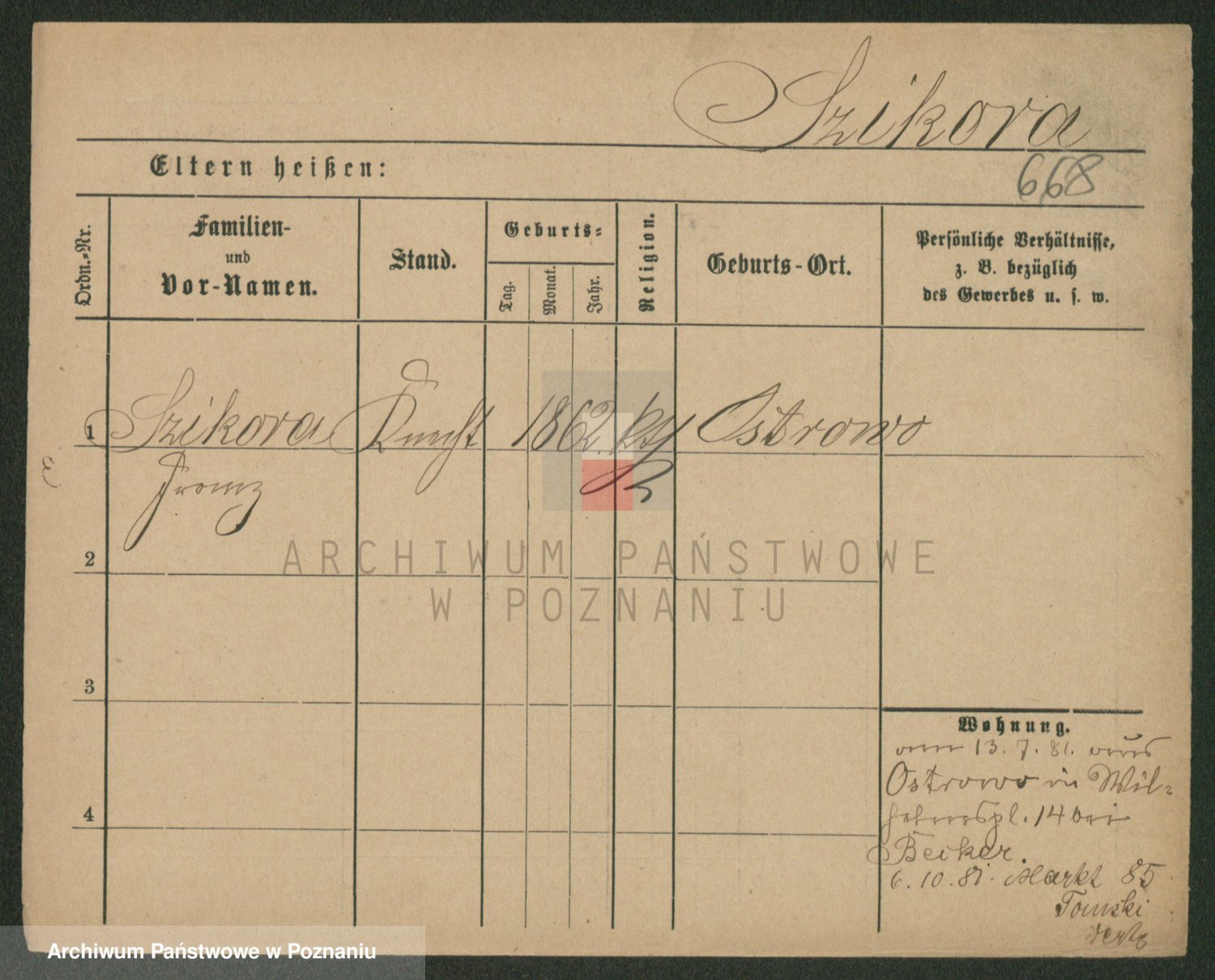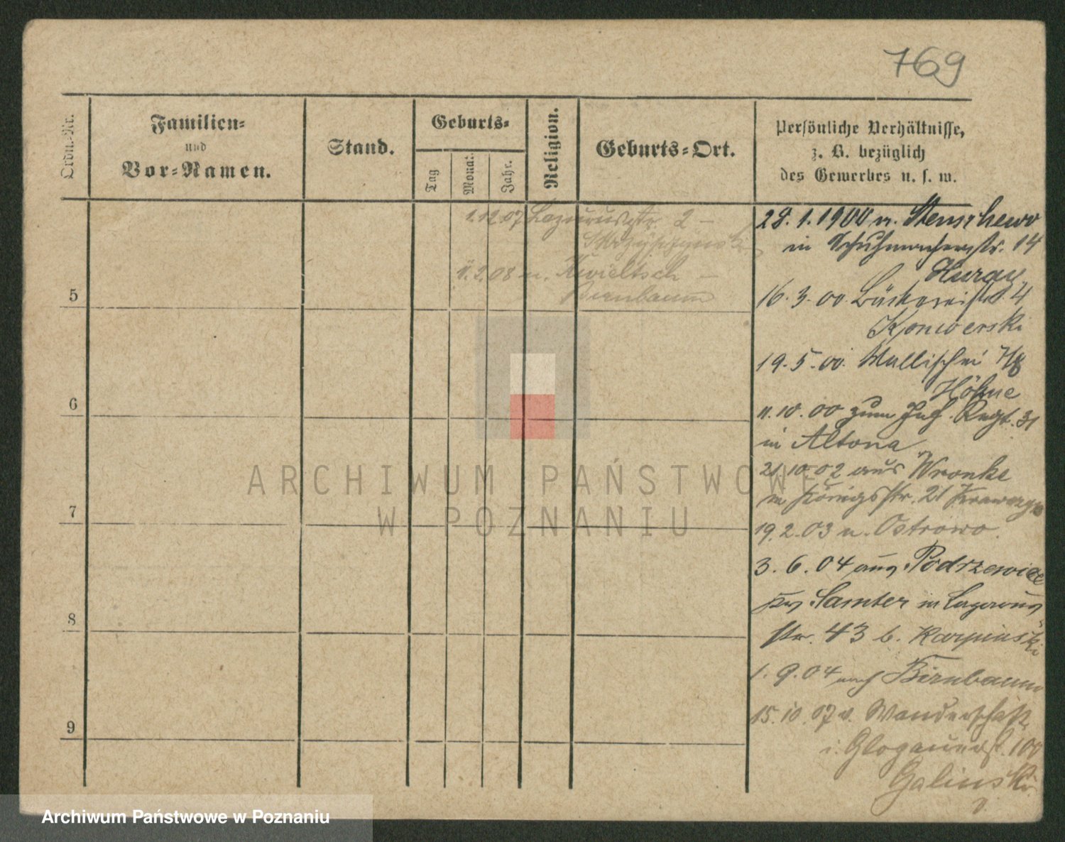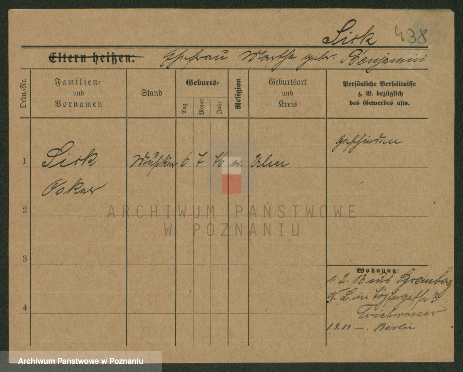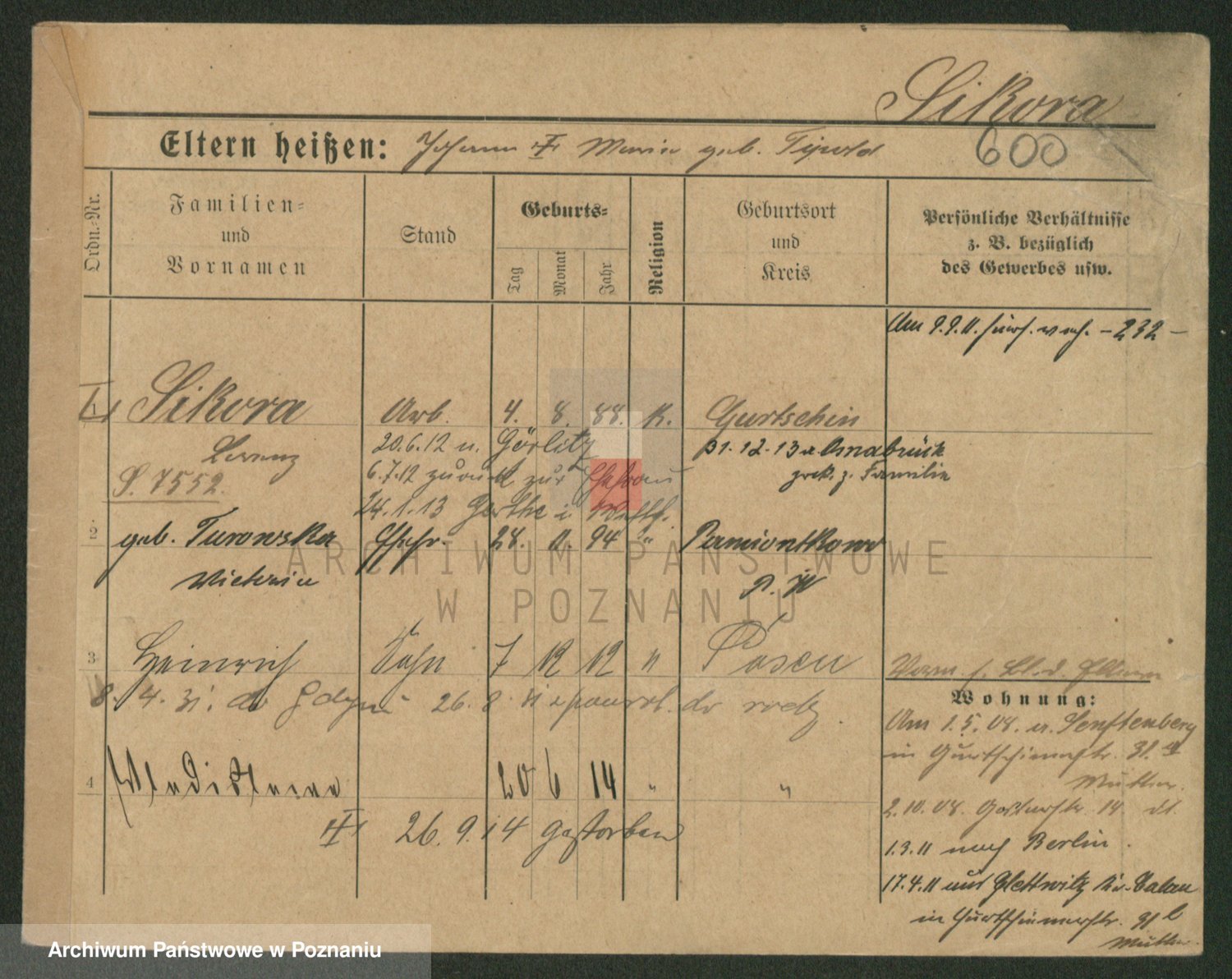 Podgląd karty osobowej dostępny jest po kliknięciu na nazwisko lub ikonkę karty. Można dokonywać powiększenia (ikony na górze) lub przechodzić między kolejnymi skanami (strzałki po bokach).