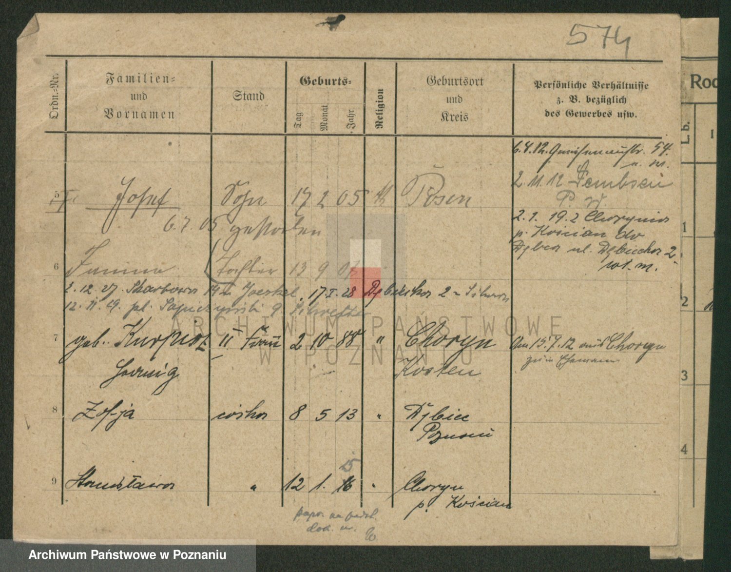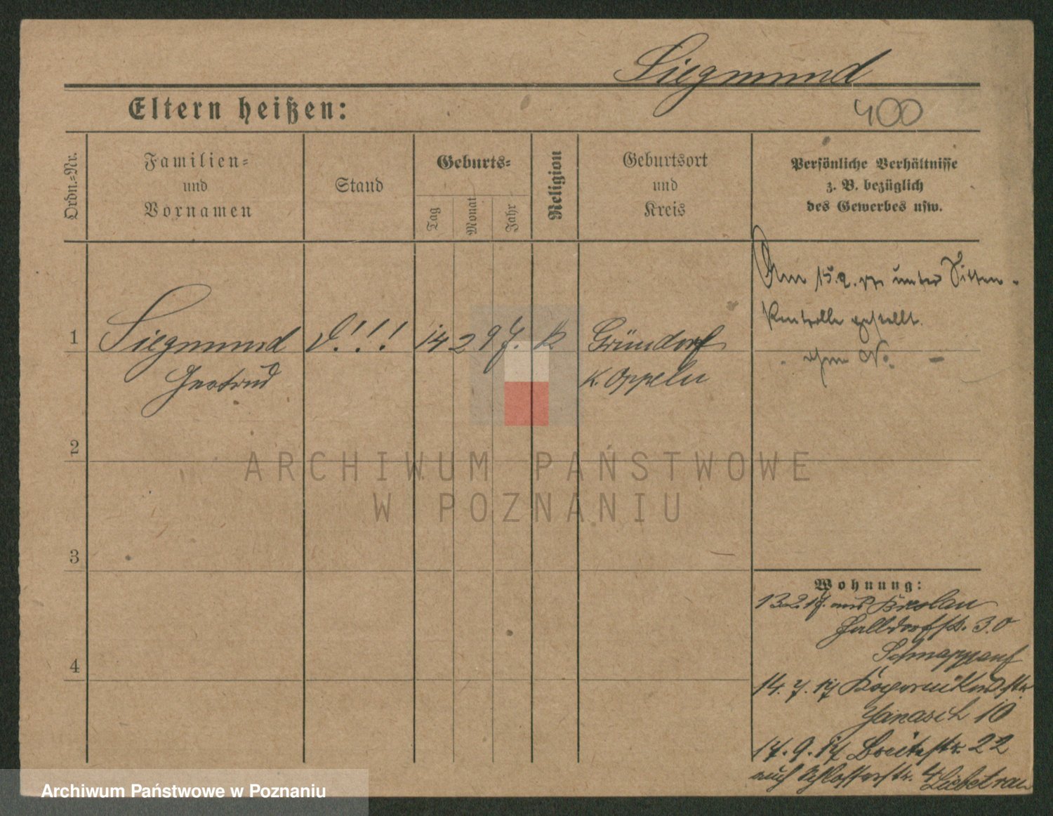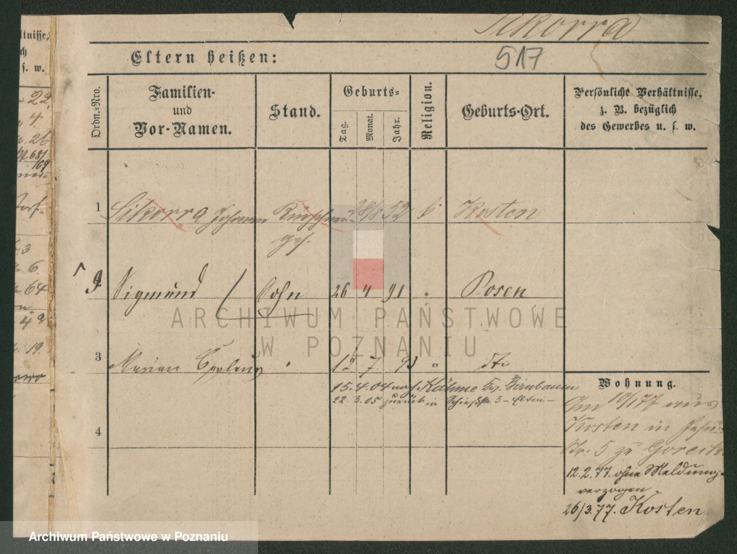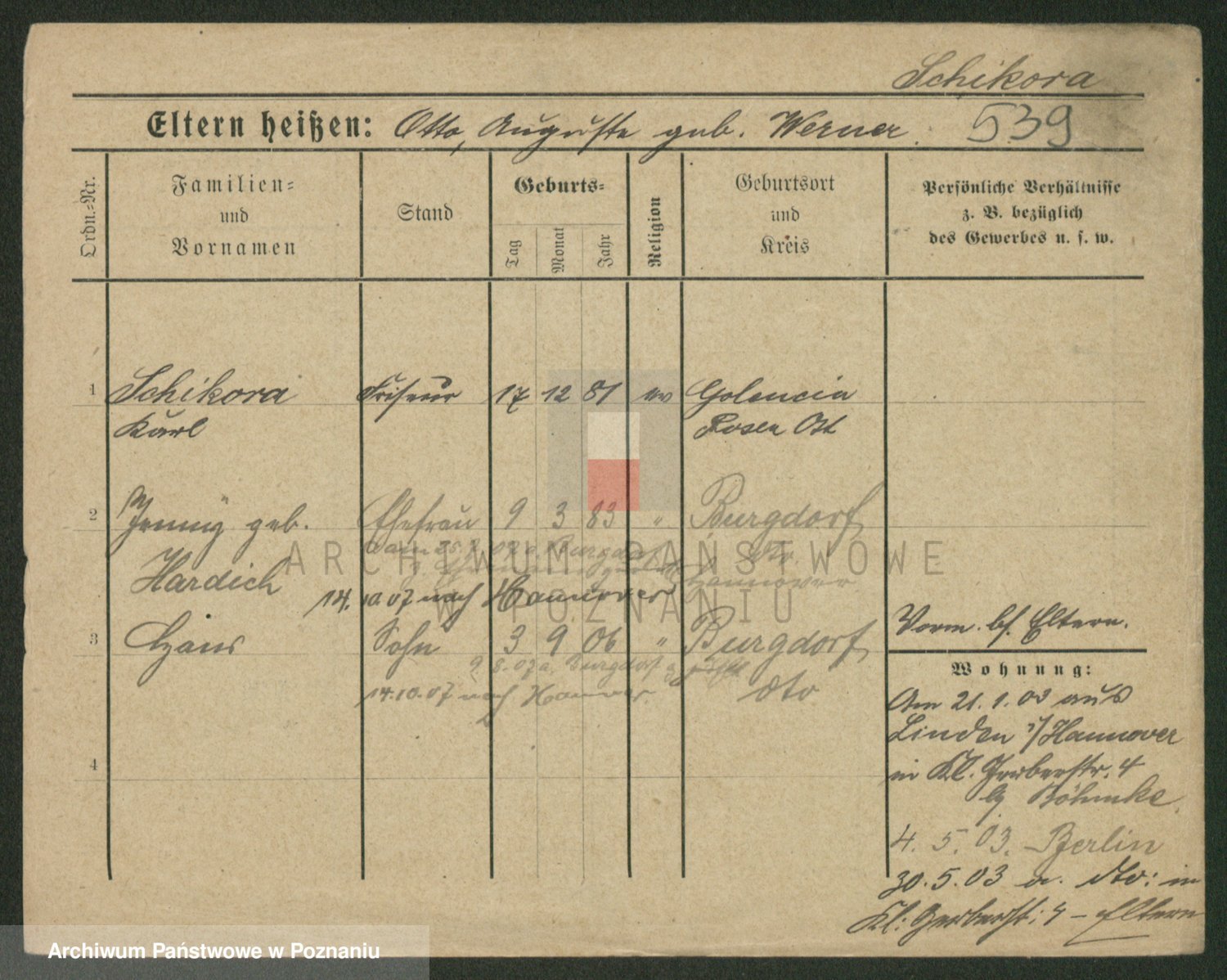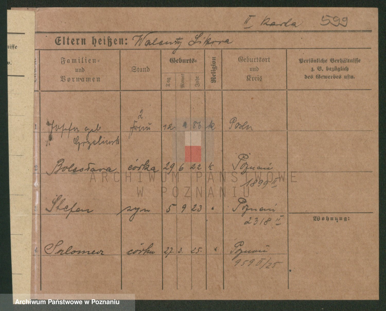 Podgląd karty osobowej dostępny jest po kliknięciu na nazwisko lub ikonkę karty. Można dokonywać powiększenia (ikony na górze) lub przechodzić między kolejnymi skanami (strzałki po bokach).