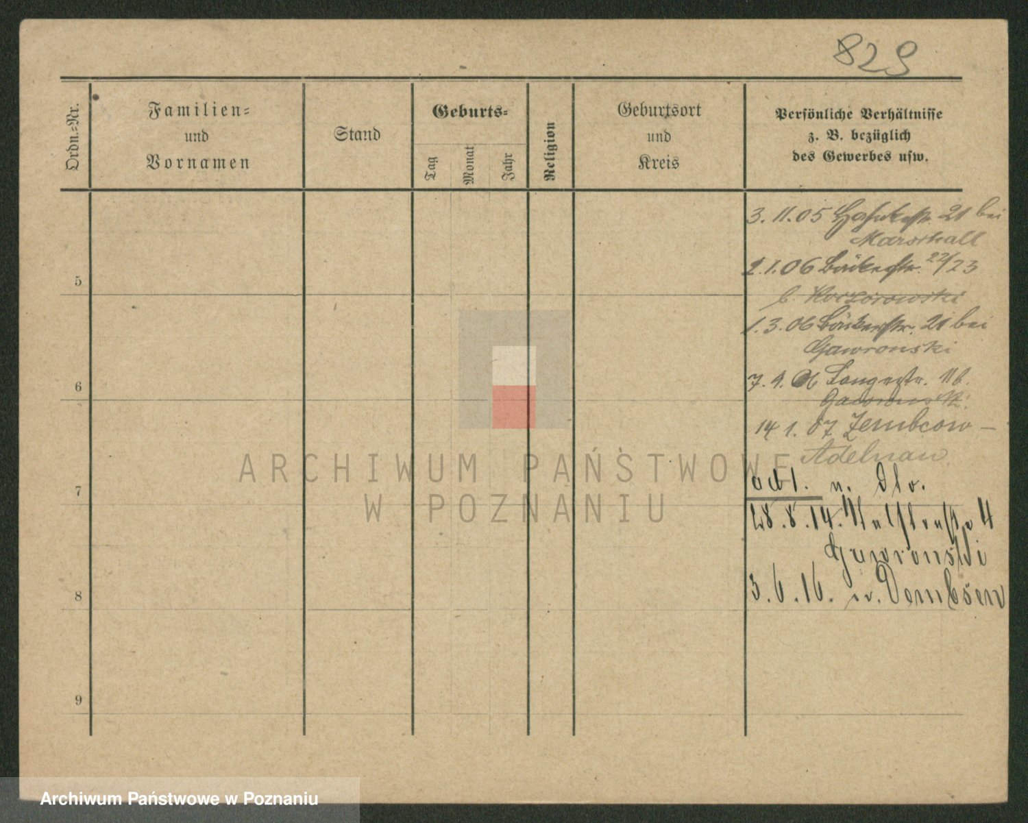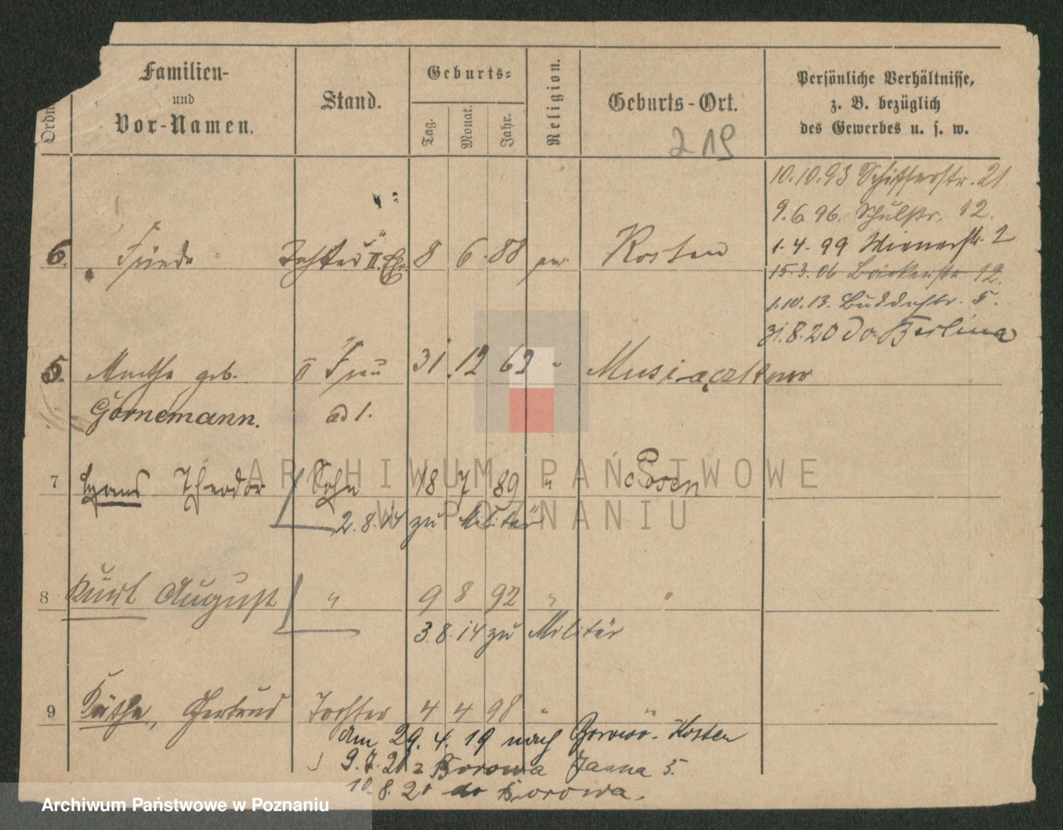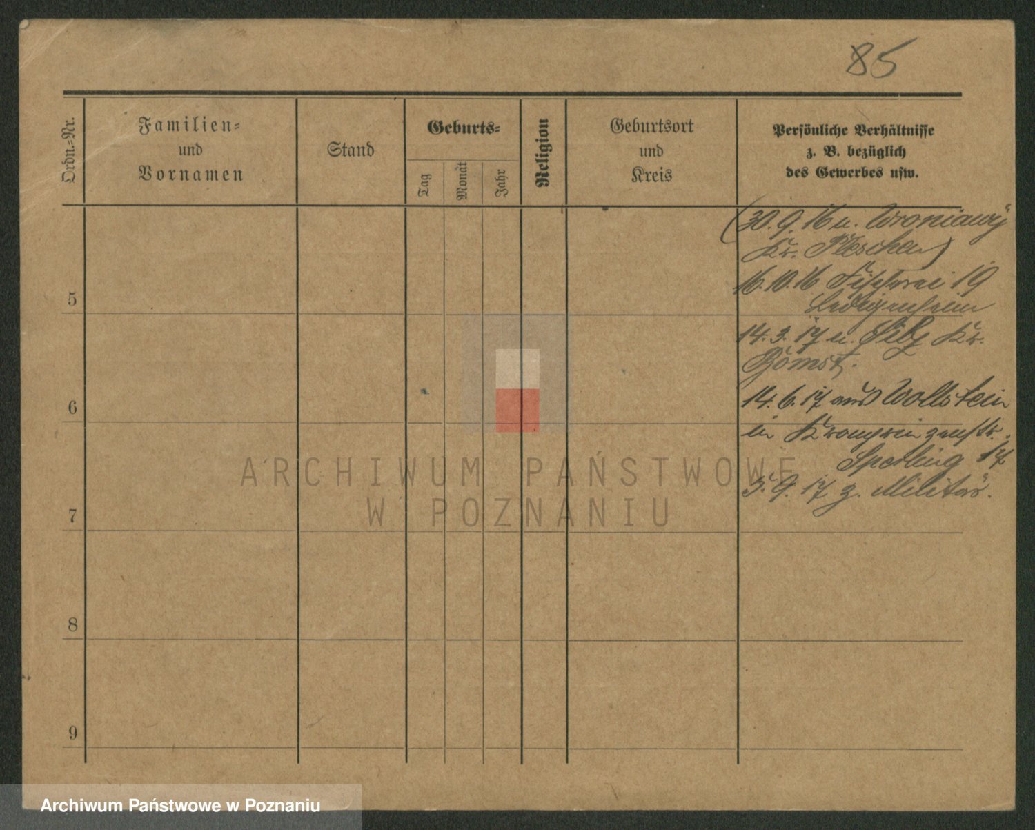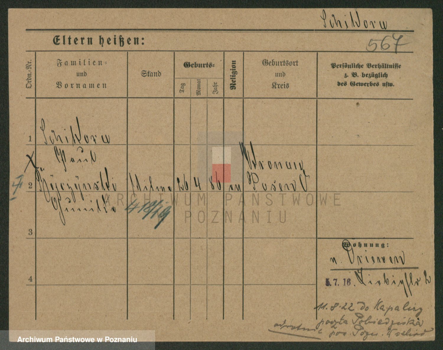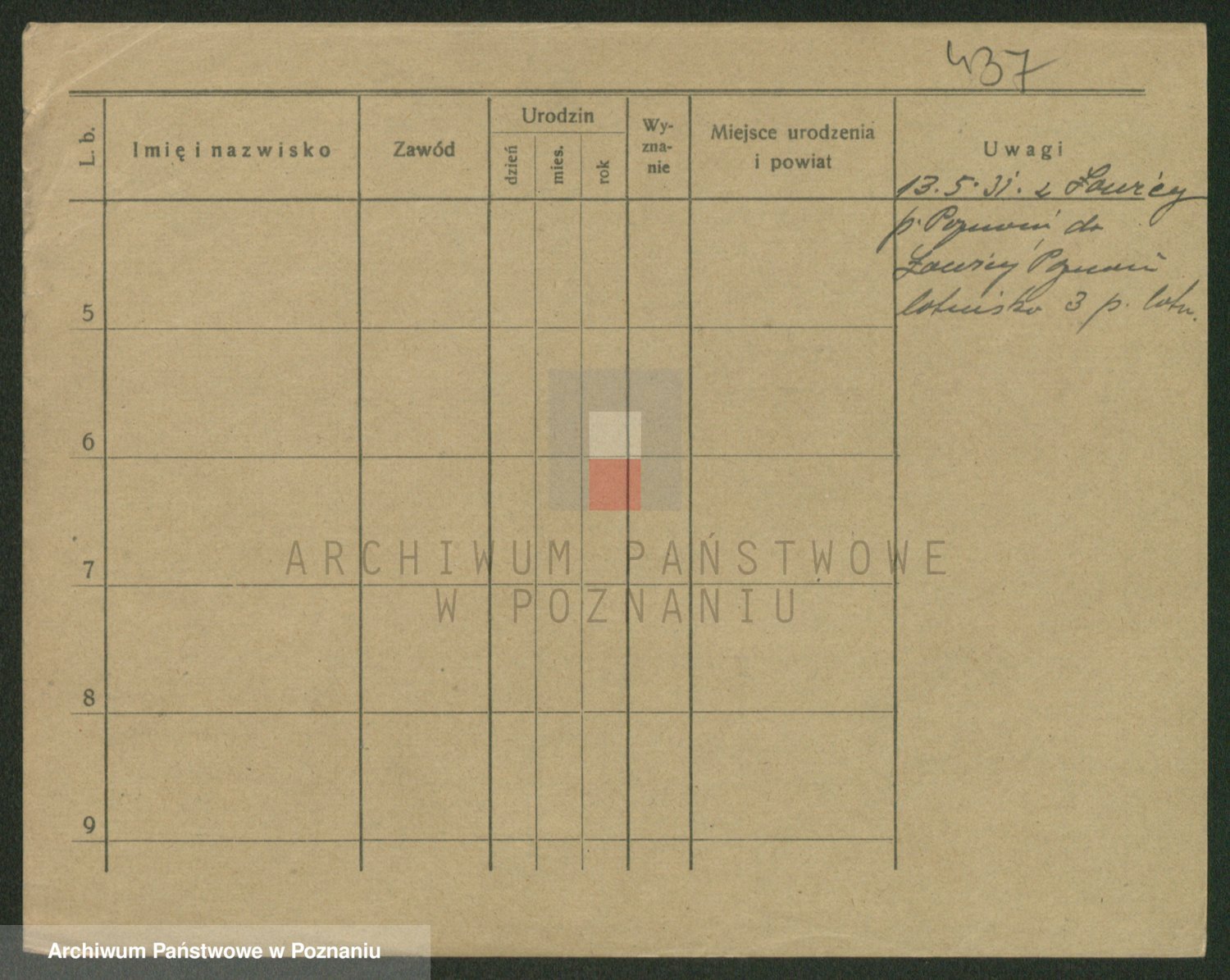 Podgląd karty osobowej dostępny jest po kliknięciu na nazwisko lub ikonkę karty. Można dokonywać powiększenia (ikony na górze) lub przechodzić między kolejnymi skanami (strzałki po bokach).