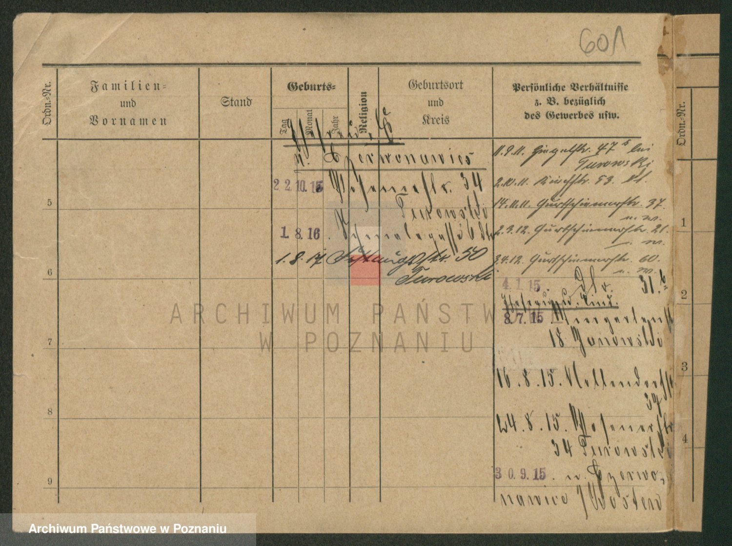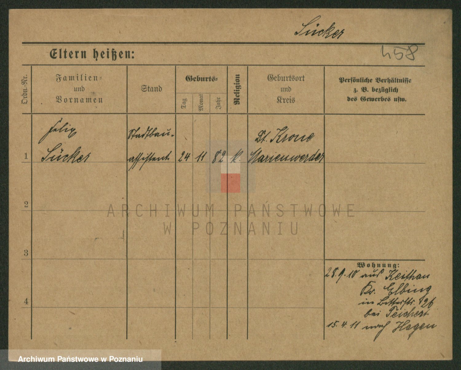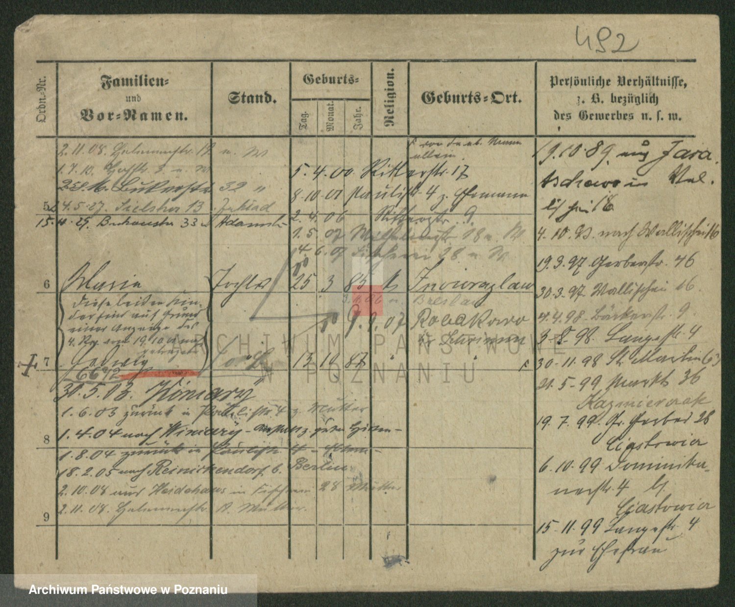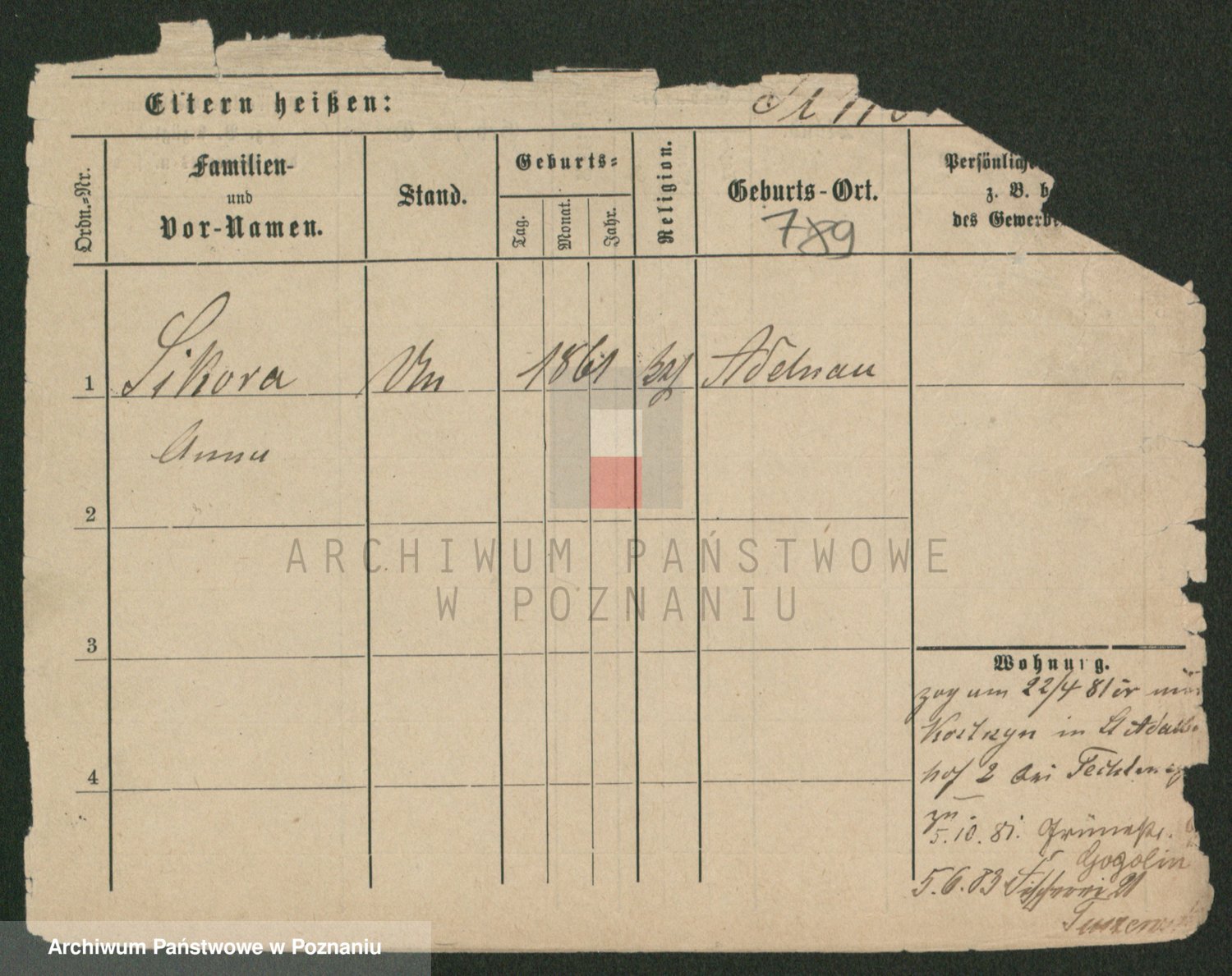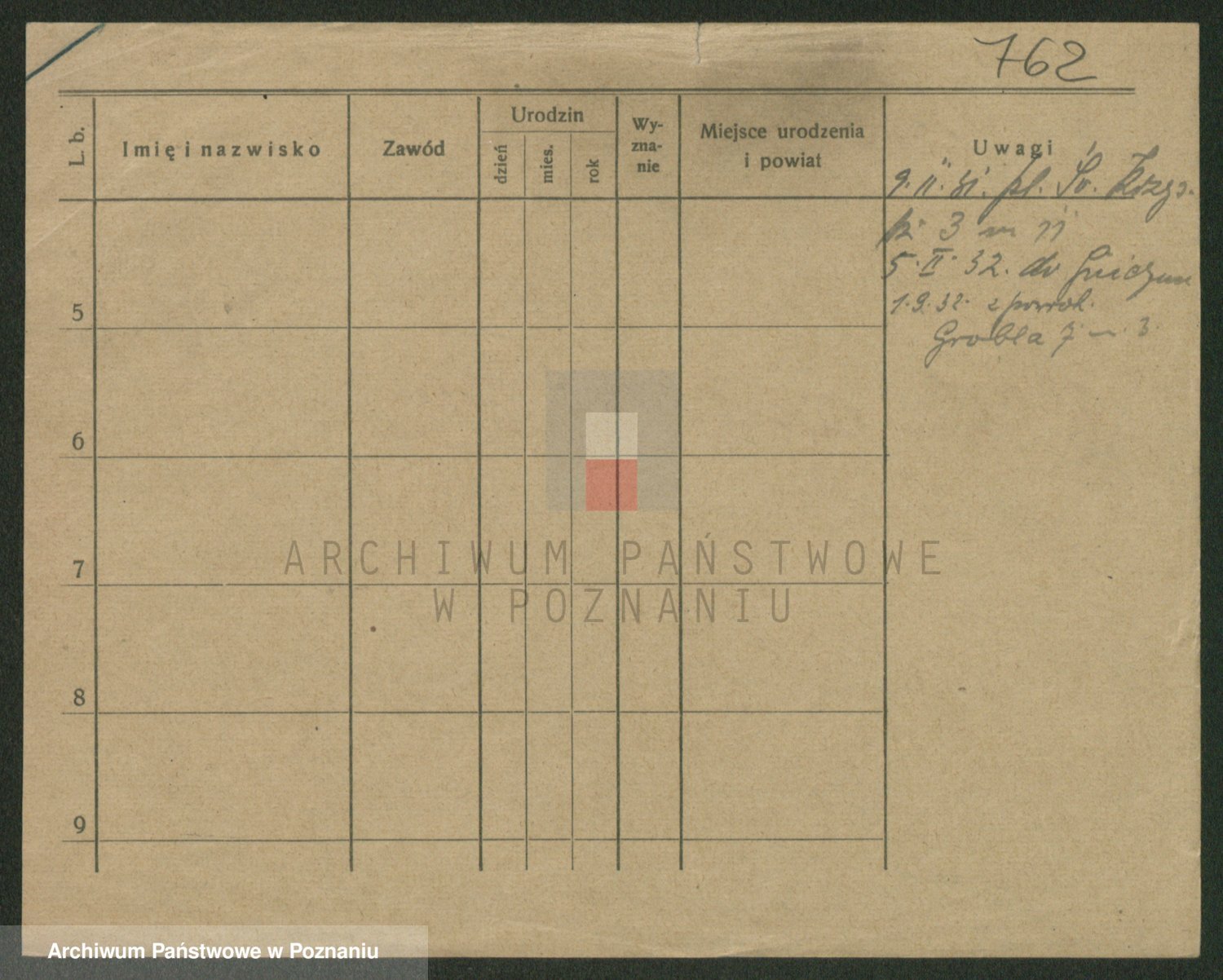 Podgląd karty osobowej dostępny jest po kliknięciu na nazwisko lub ikonkę karty. Można dokonywać powiększenia (ikony na górze) lub przechodzić między kolejnymi skanami (strzałki po bokach).