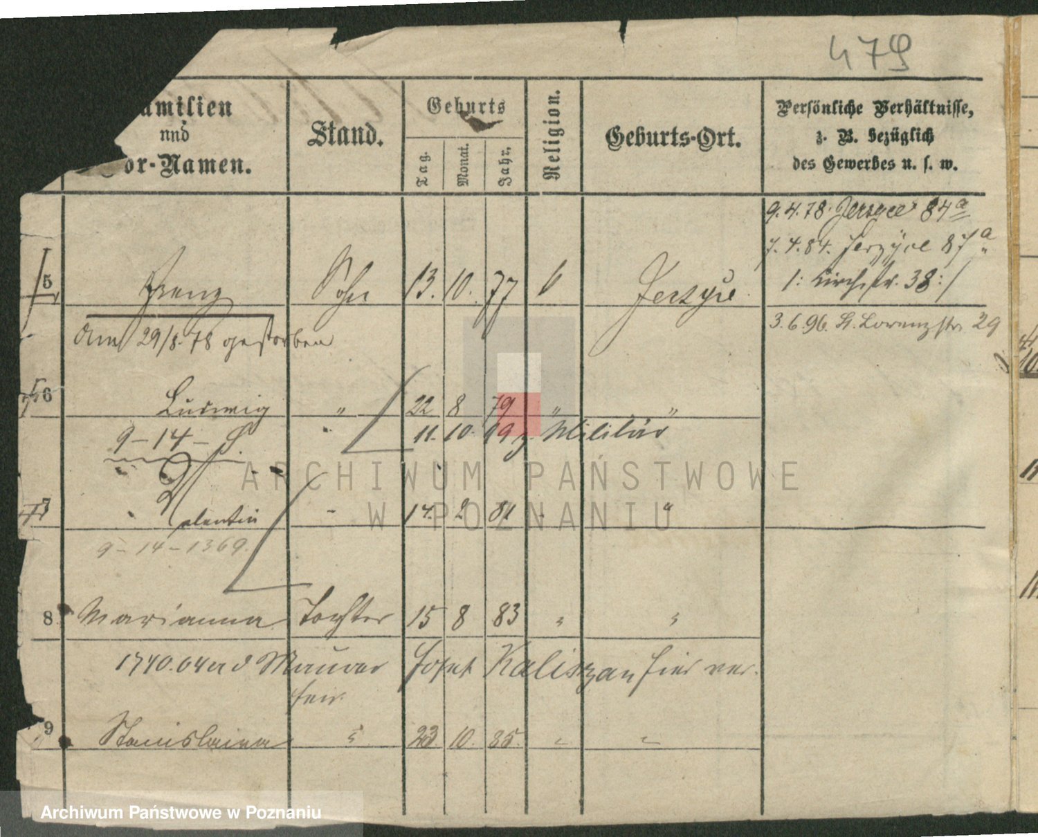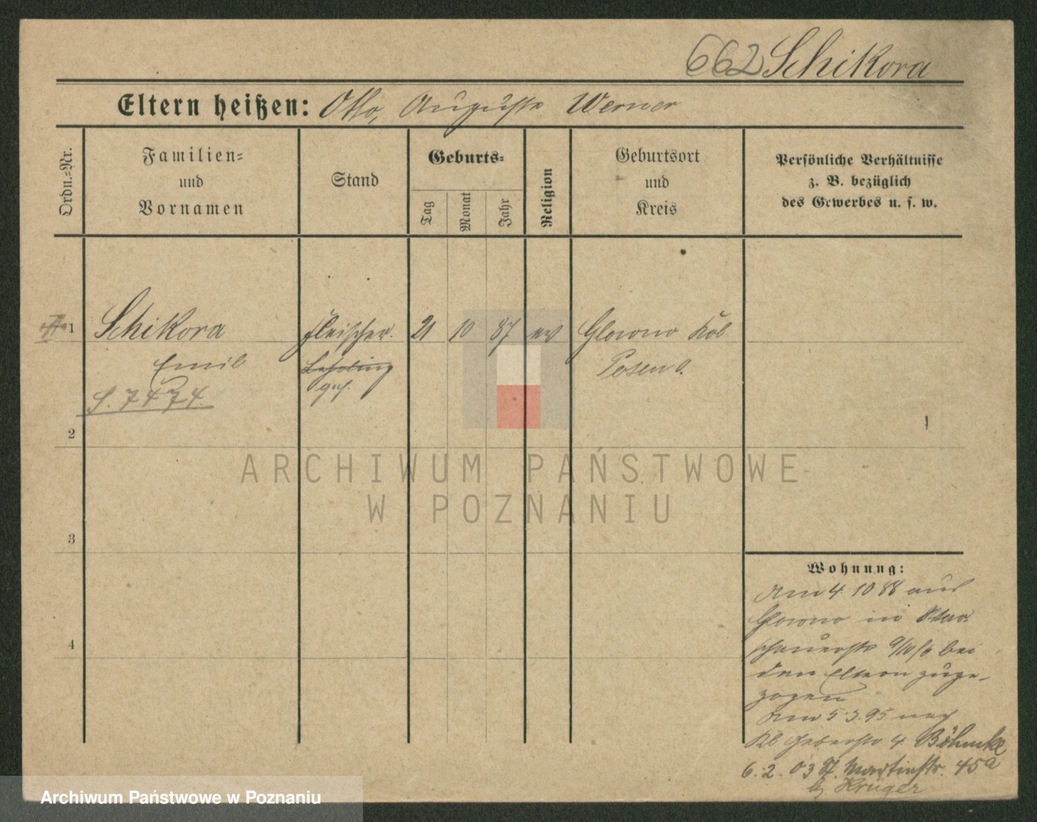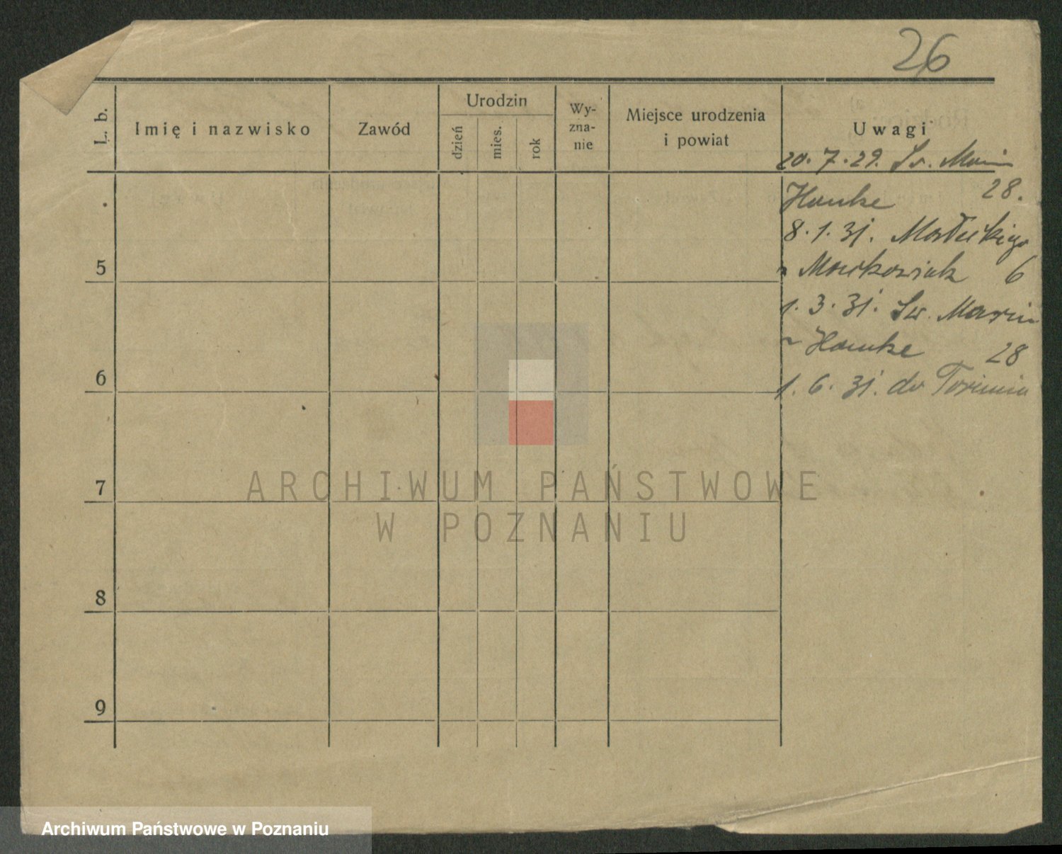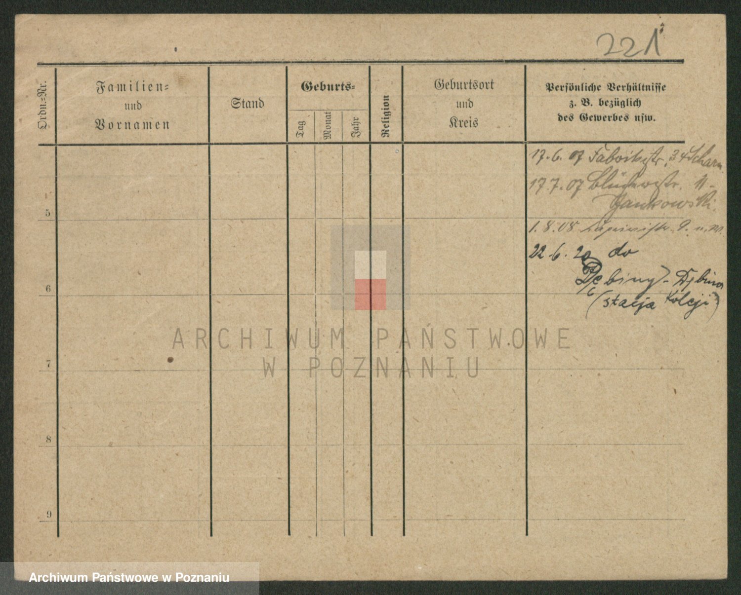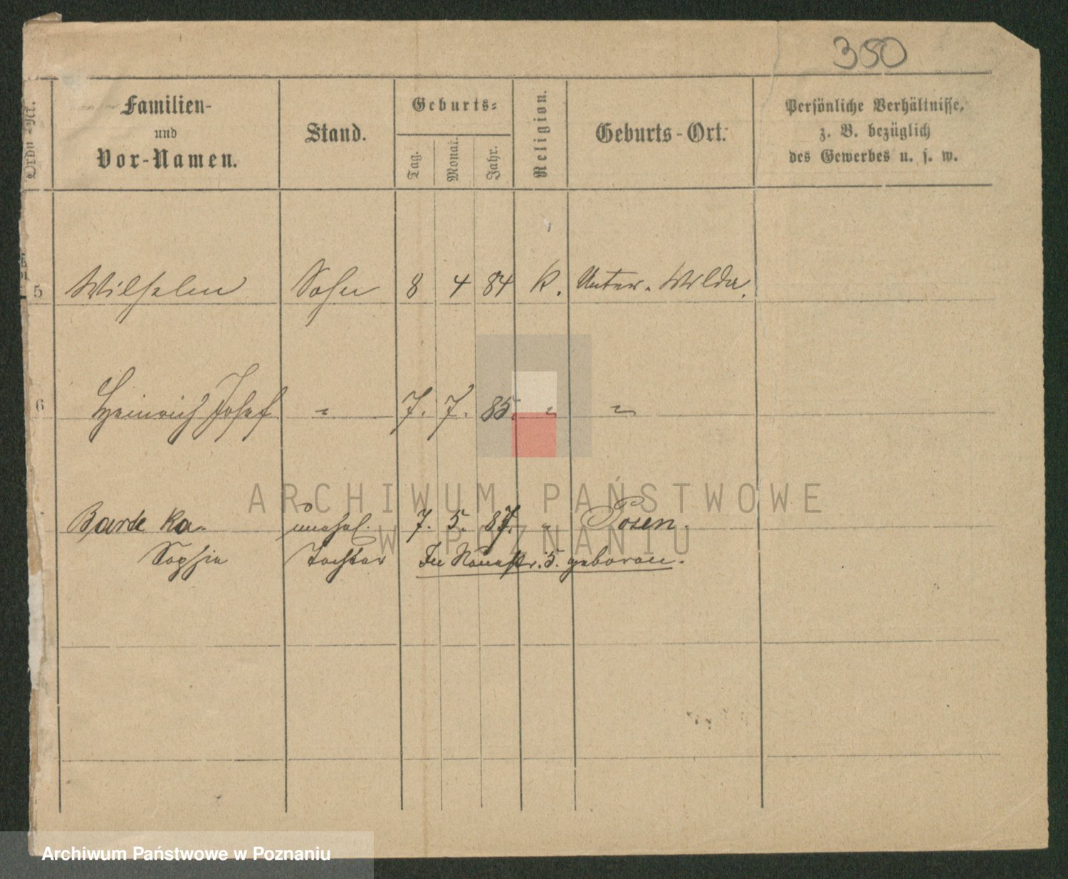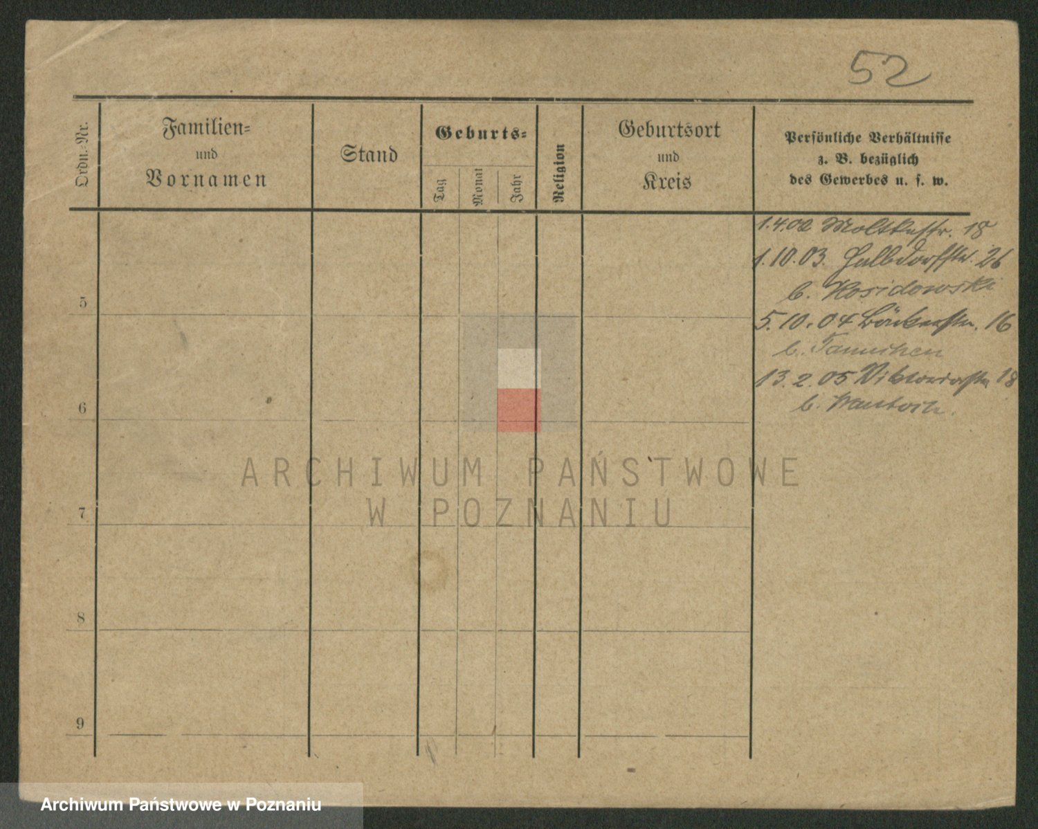Podgląd karty osobowej dostępny jest po kliknięciu na nazwisko lub ikonkę karty. Można dokonywać powiększenia (ikony na górze) lub przechodzić między kolejnymi skanami (strzałki po bokach).