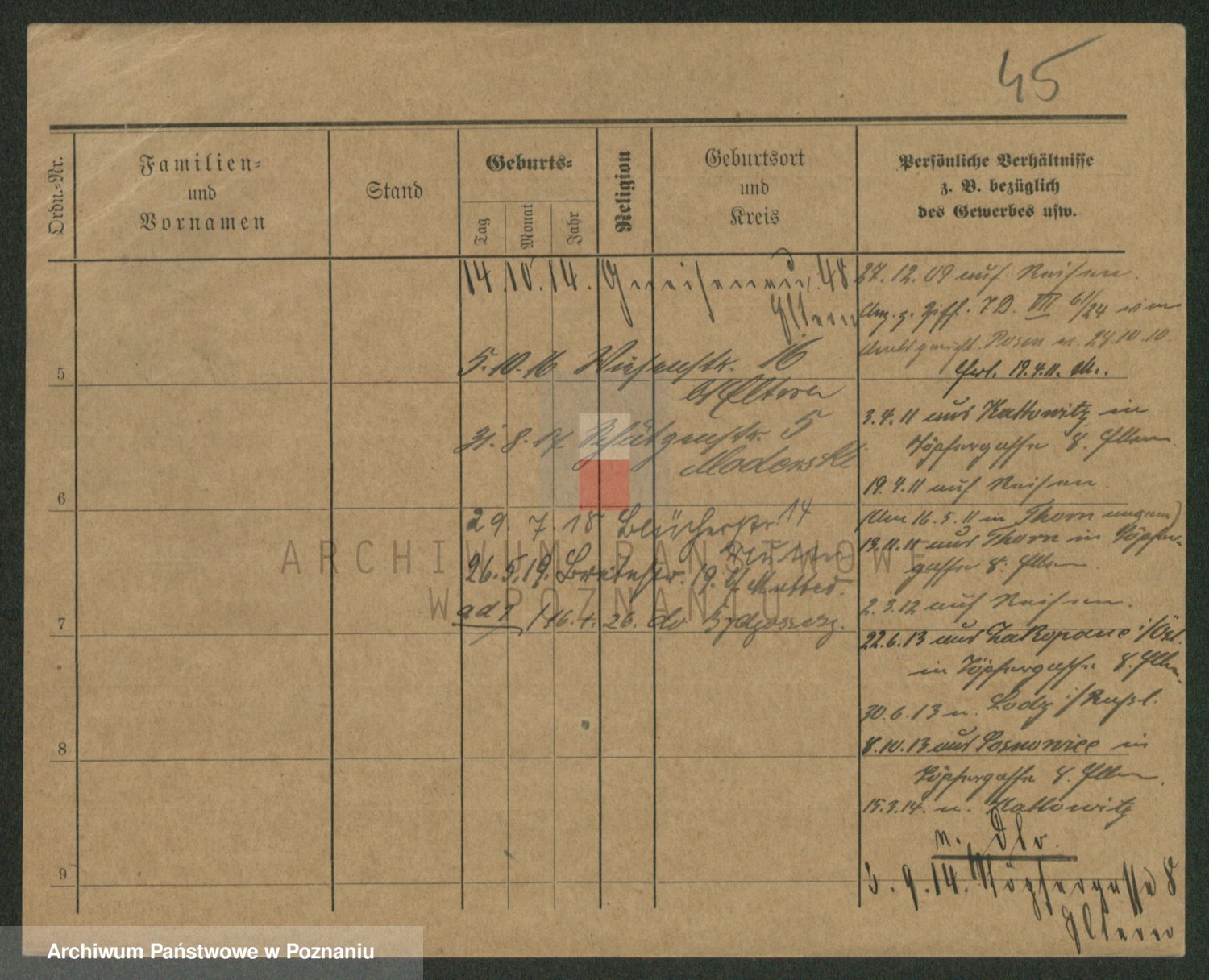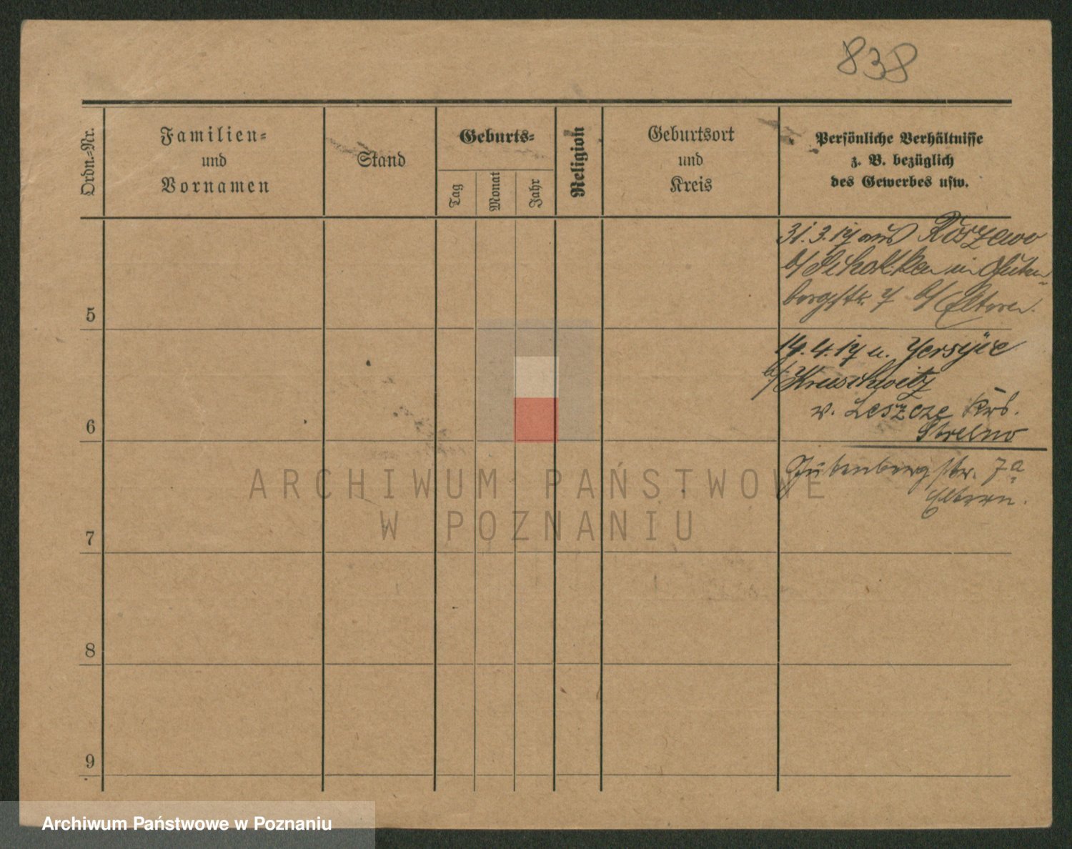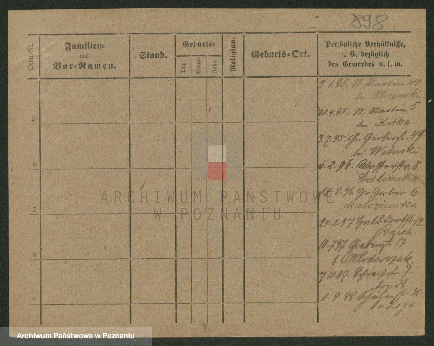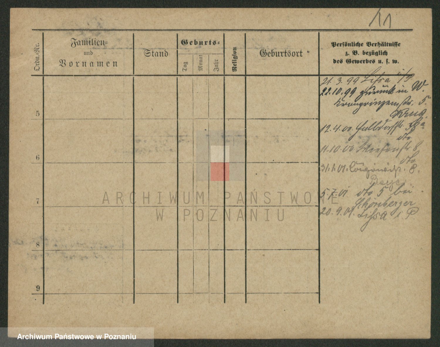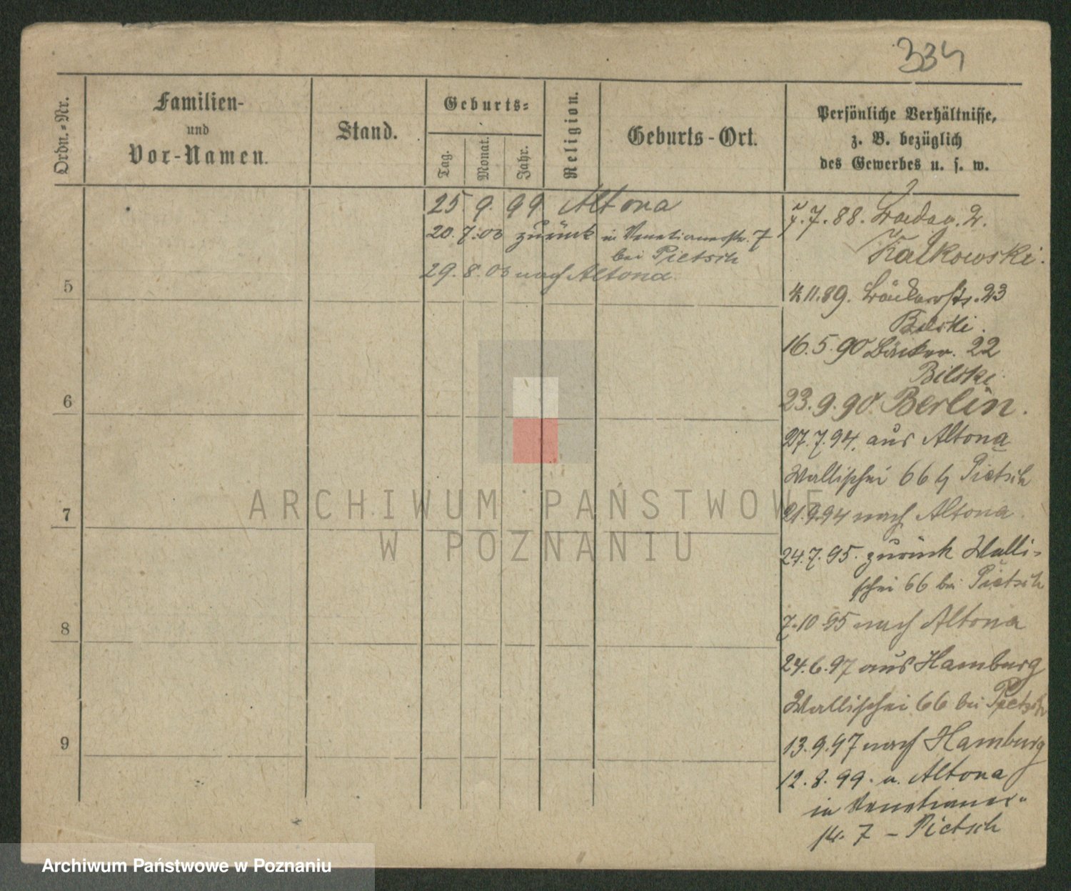 Podgląd karty osobowej dostępny jest po kliknięciu na nazwisko lub ikonkę karty. Można dokonywać powiększenia (ikony na górze) lub przechodzić między kolejnymi skanami (strzałki po bokach).