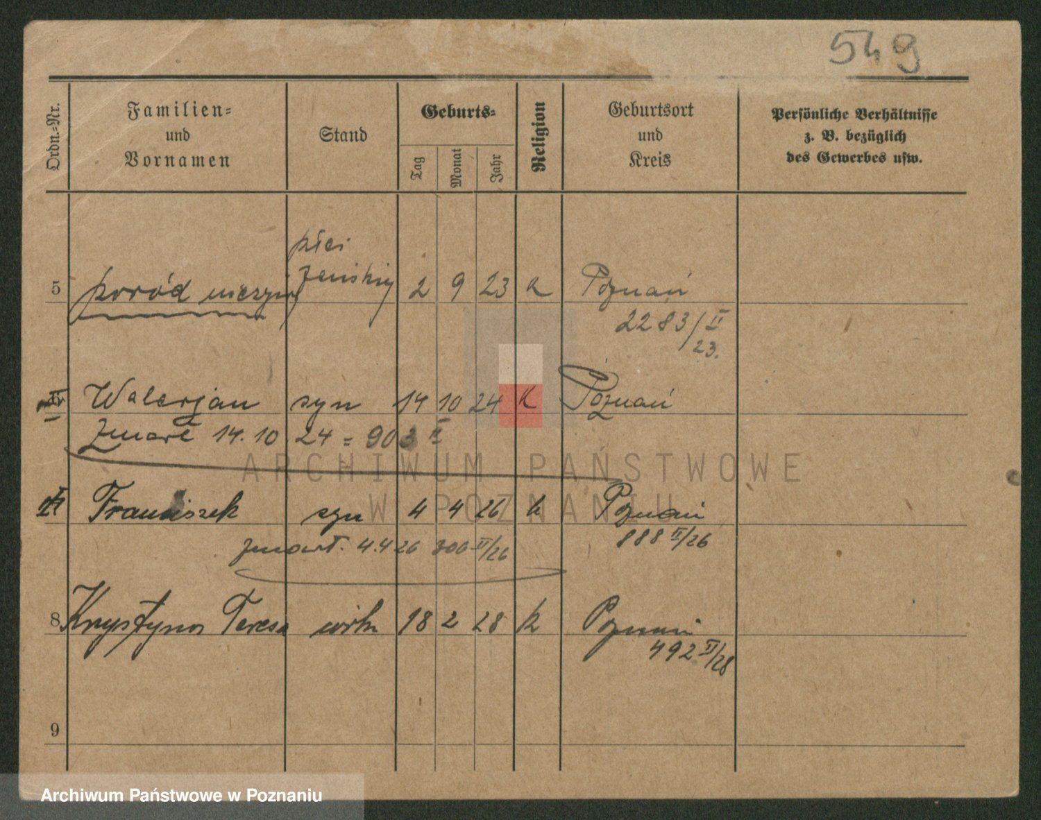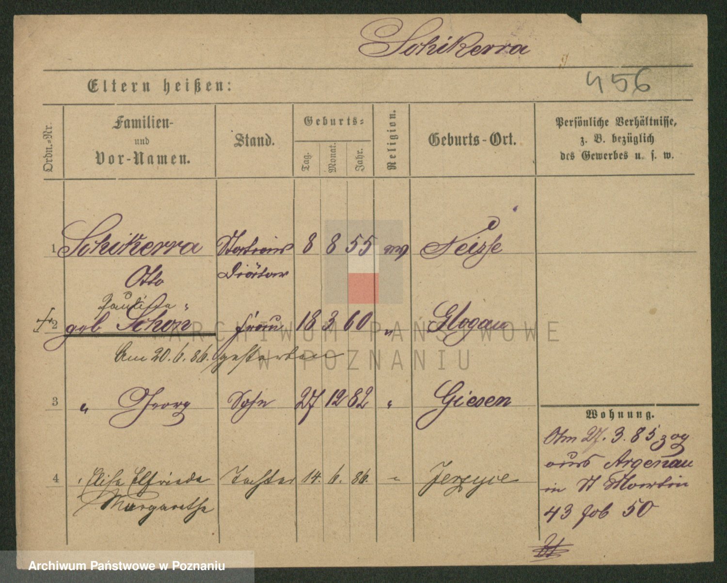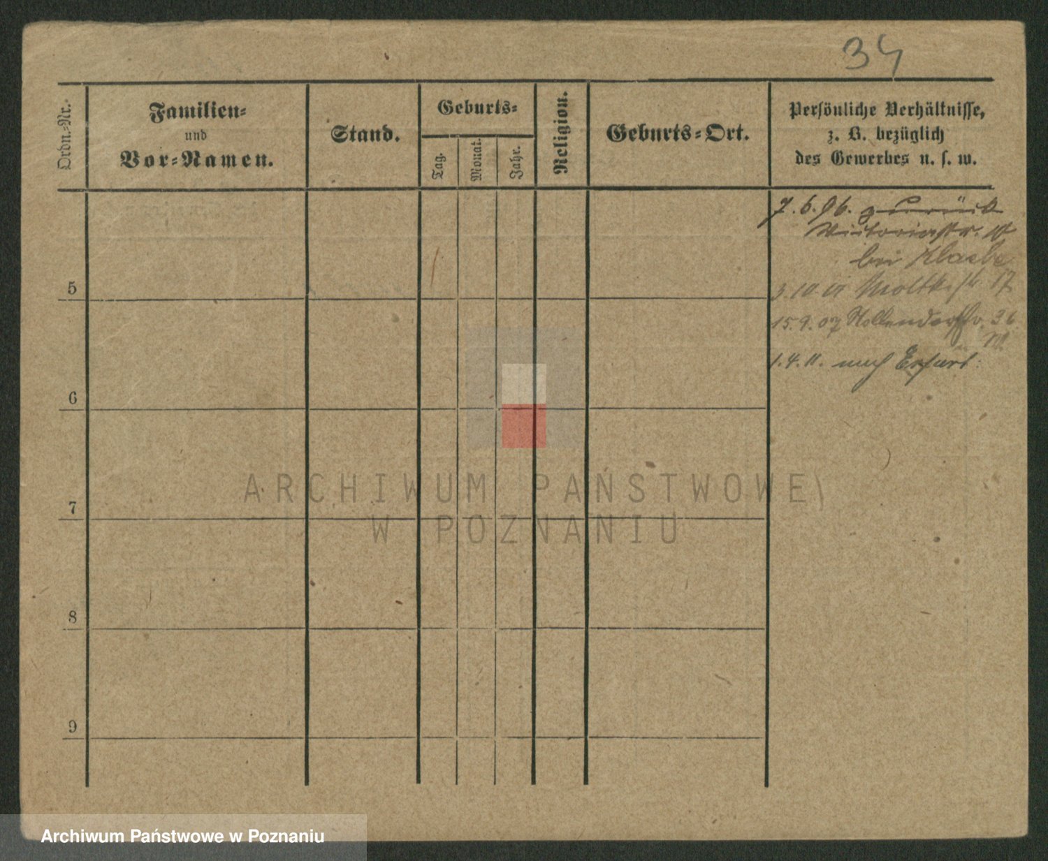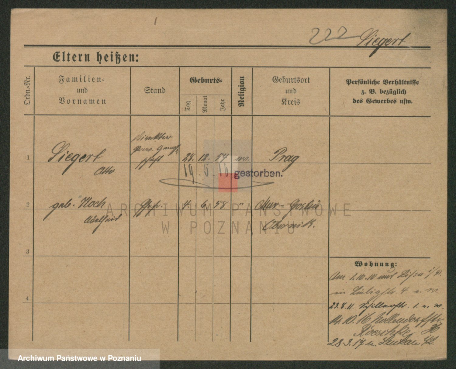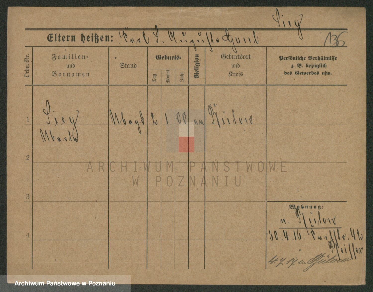 Podgląd karty osobowej dostępny jest po kliknięciu na nazwisko lub ikonkę karty. Można dokonywać powiększenia (ikony na górze) lub przechodzić między kolejnymi skanami (strzałki po bokach).
