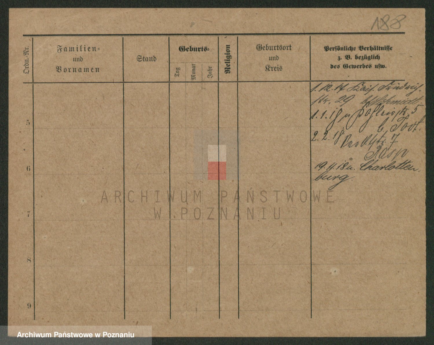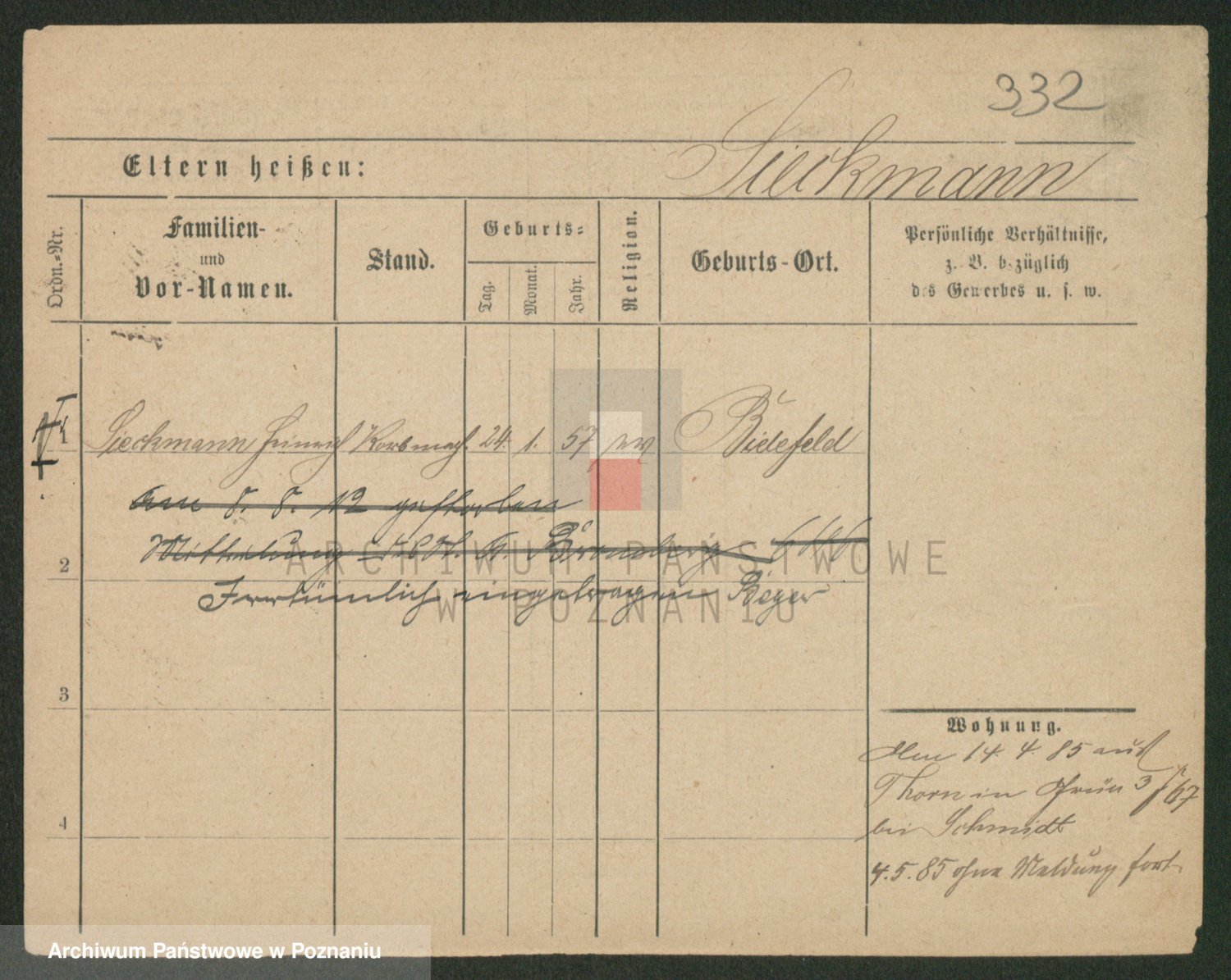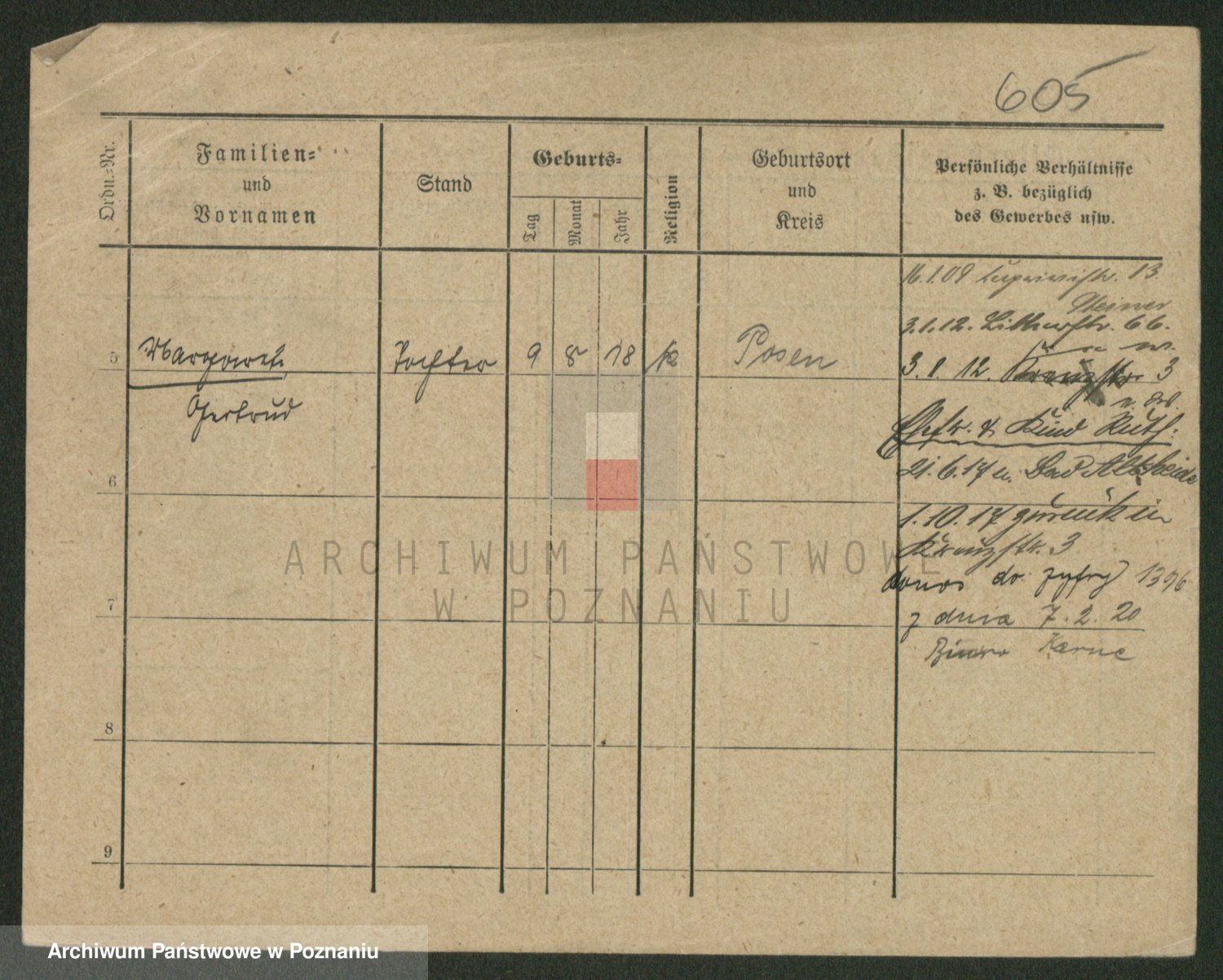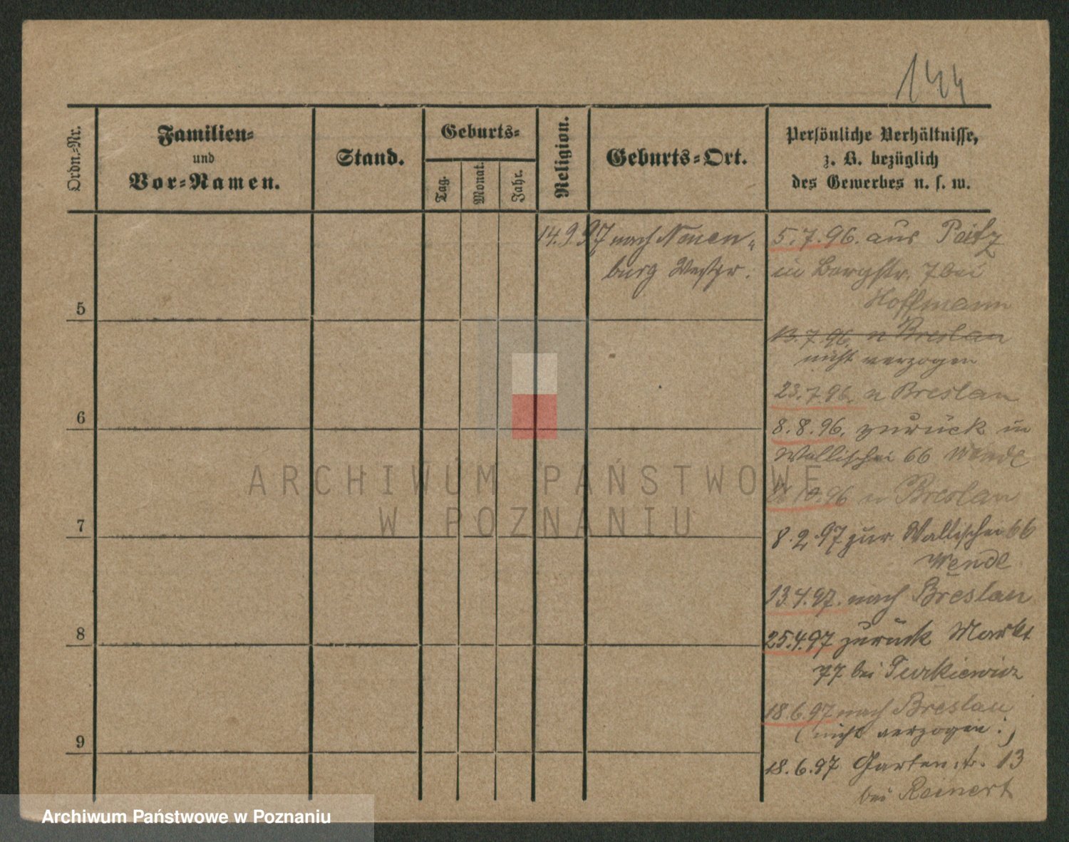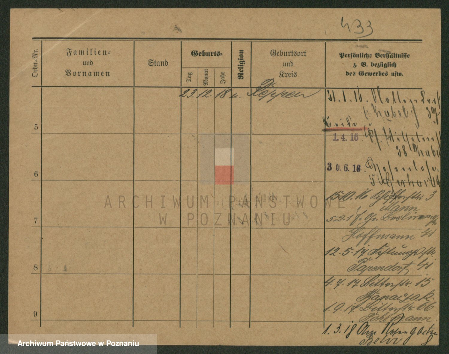 Podgląd karty osobowej dostępny jest po kliknięciu na nazwisko lub ikonkę karty. Można dokonywać powiększenia (ikony na górze) lub przechodzić między kolejnymi skanami (strzałki po bokach).