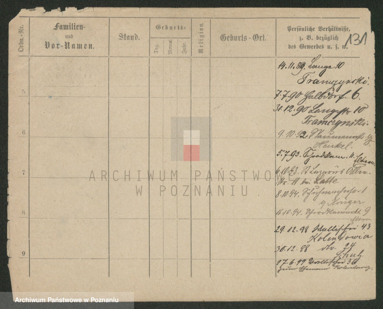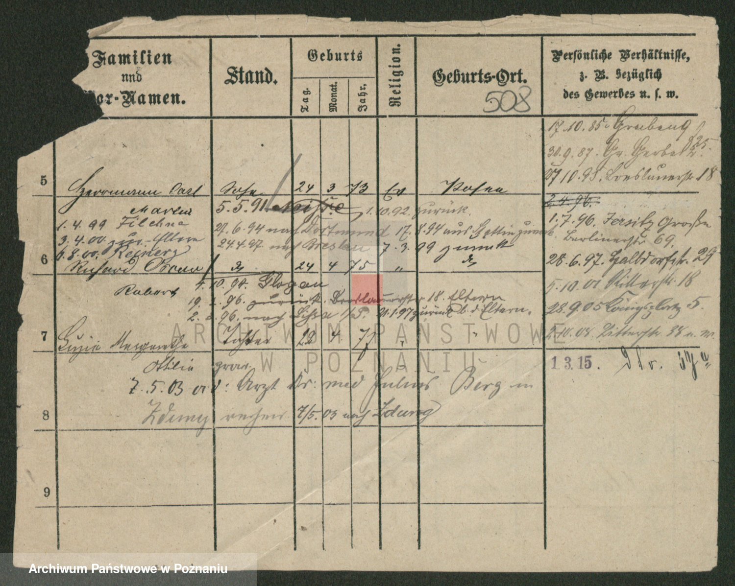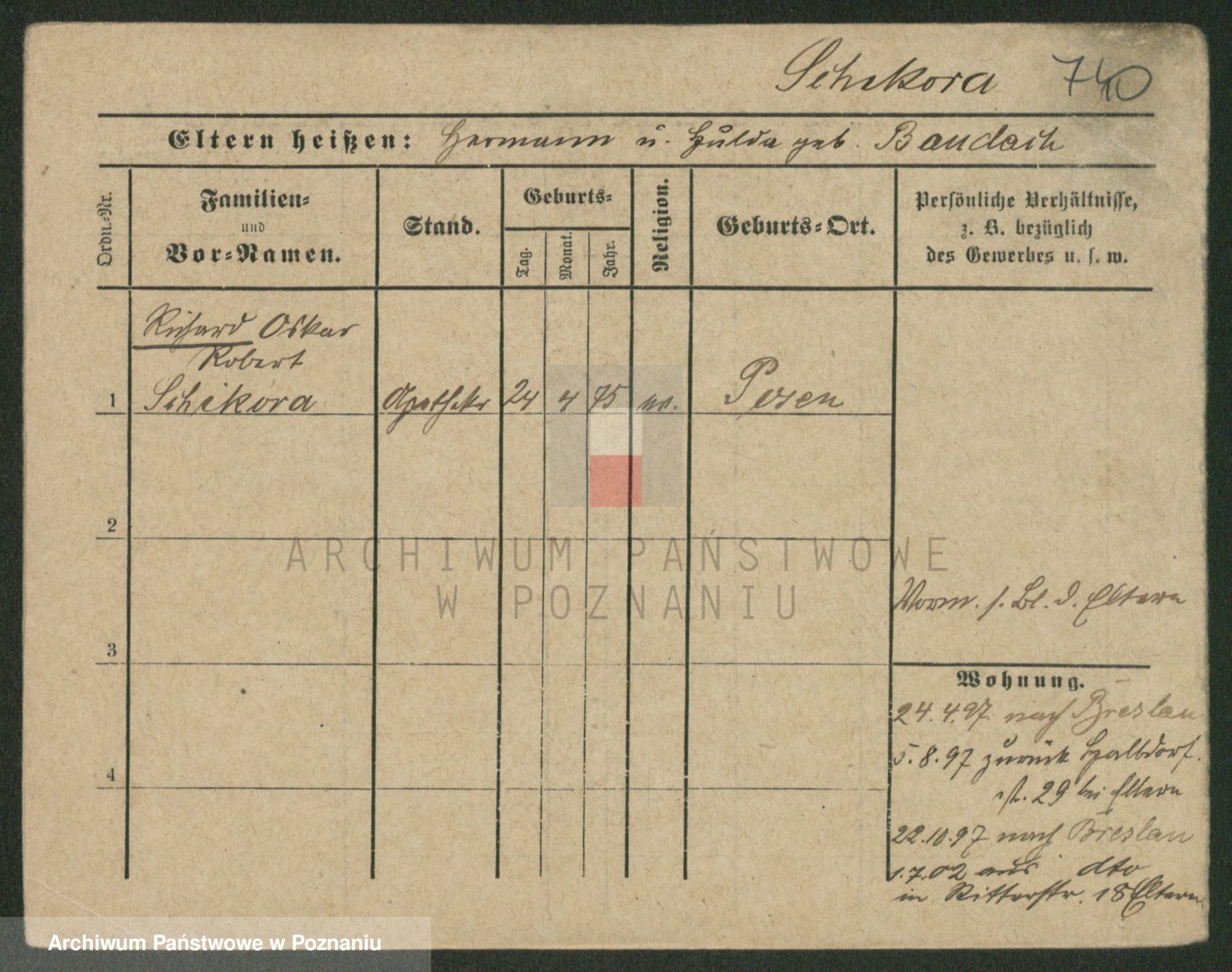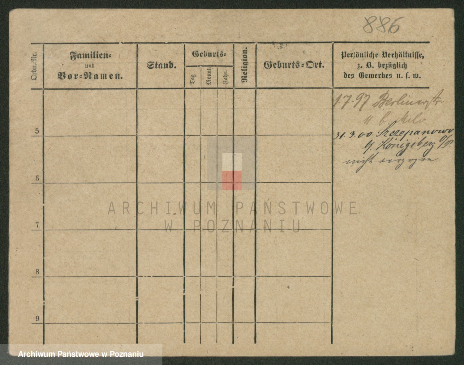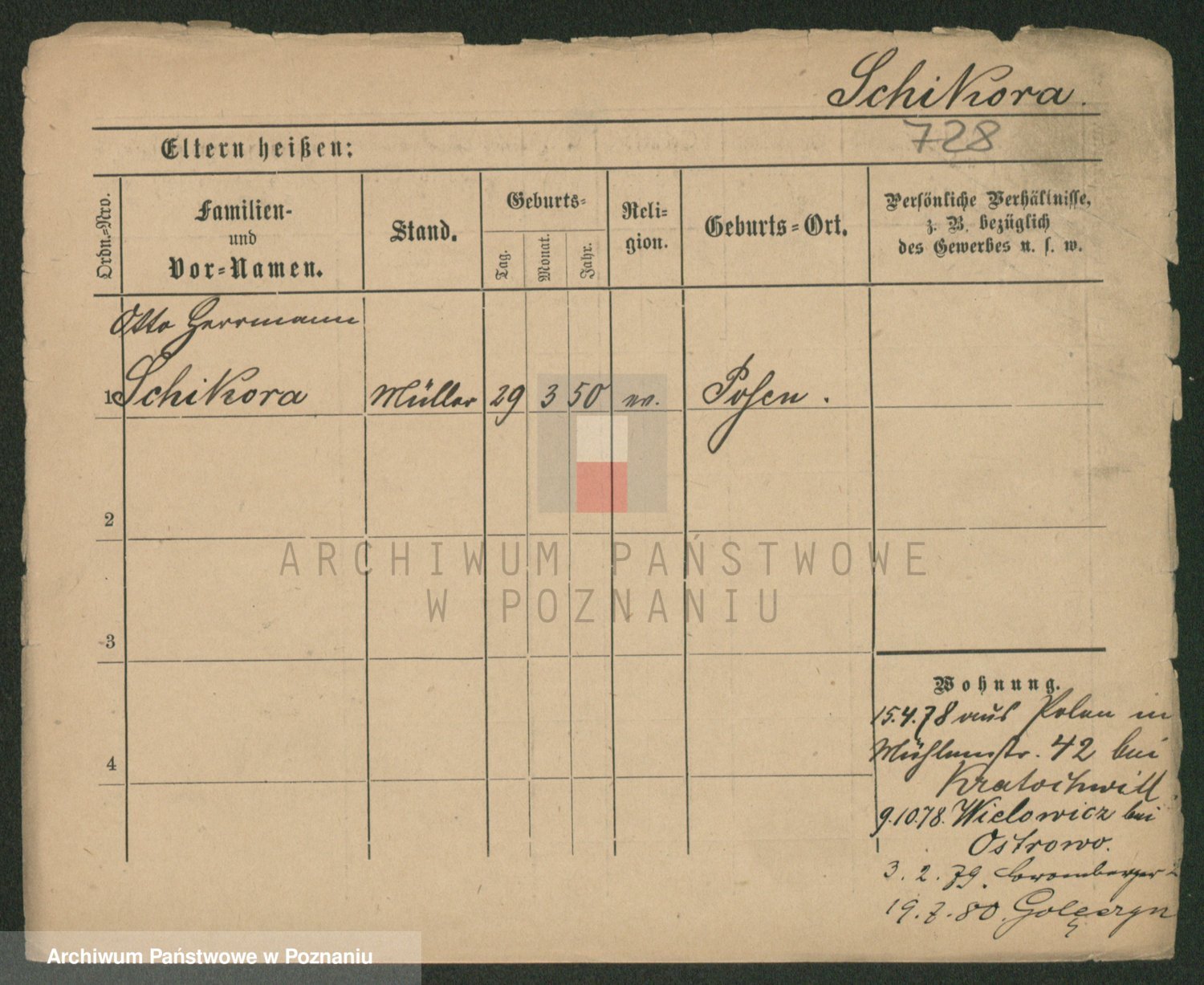 Podgląd karty osobowej dostępny jest po kliknięciu na nazwisko lub ikonkę karty. Można dokonywać powiększenia (ikony na górze) lub przechodzić między kolejnymi skanami (strzałki po bokach).
