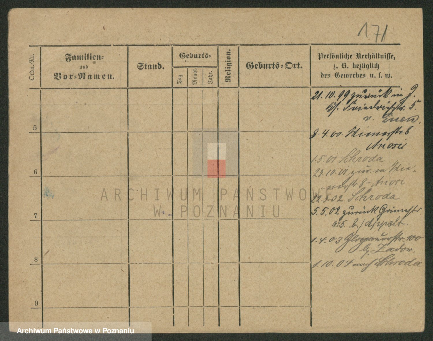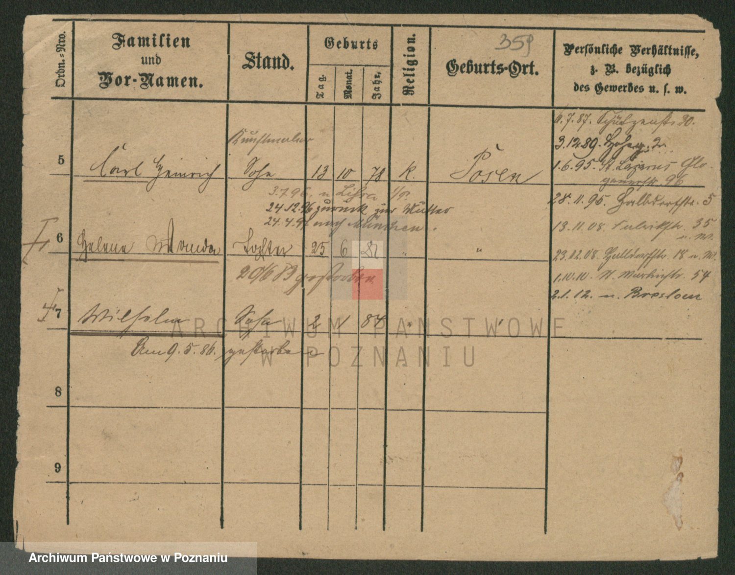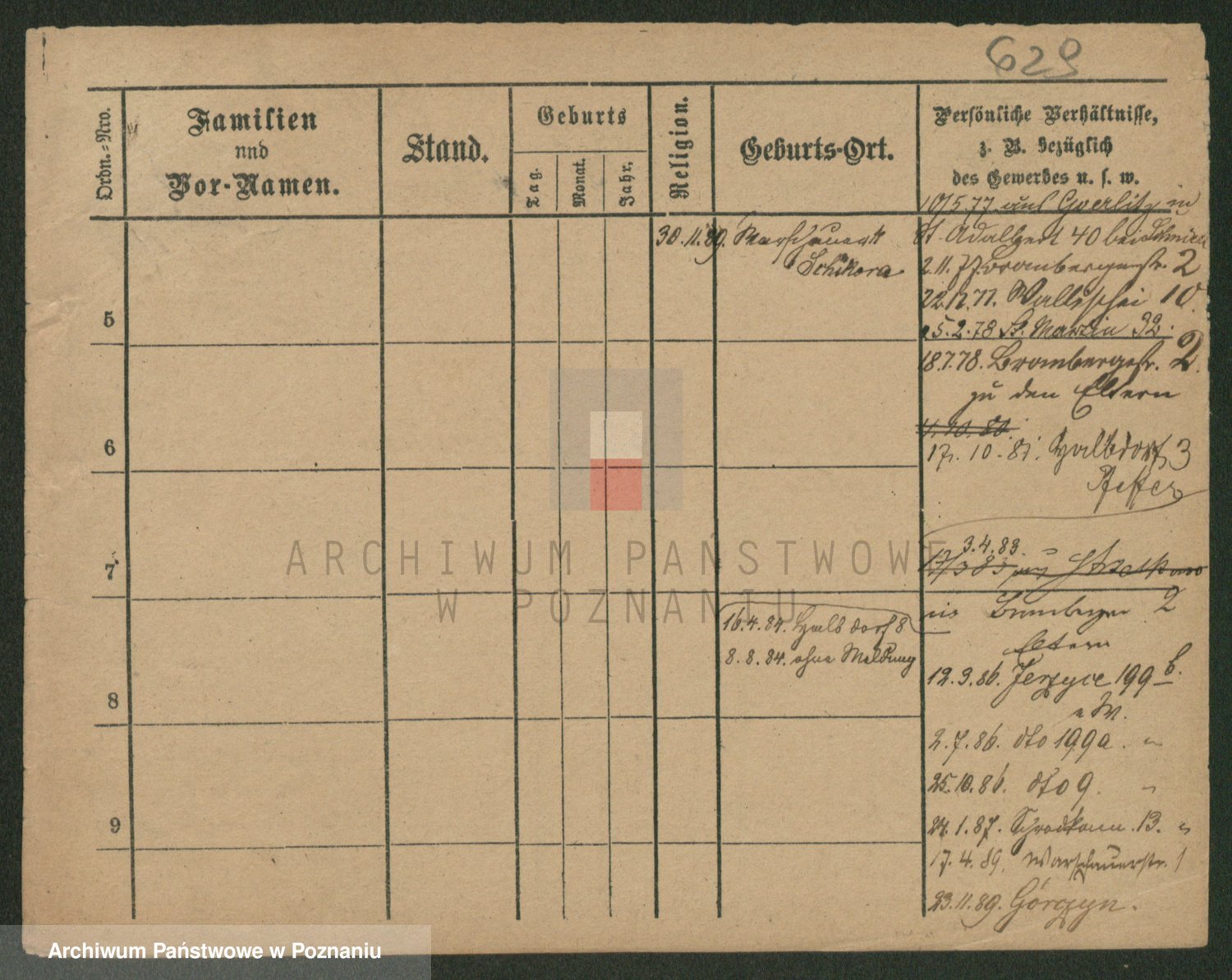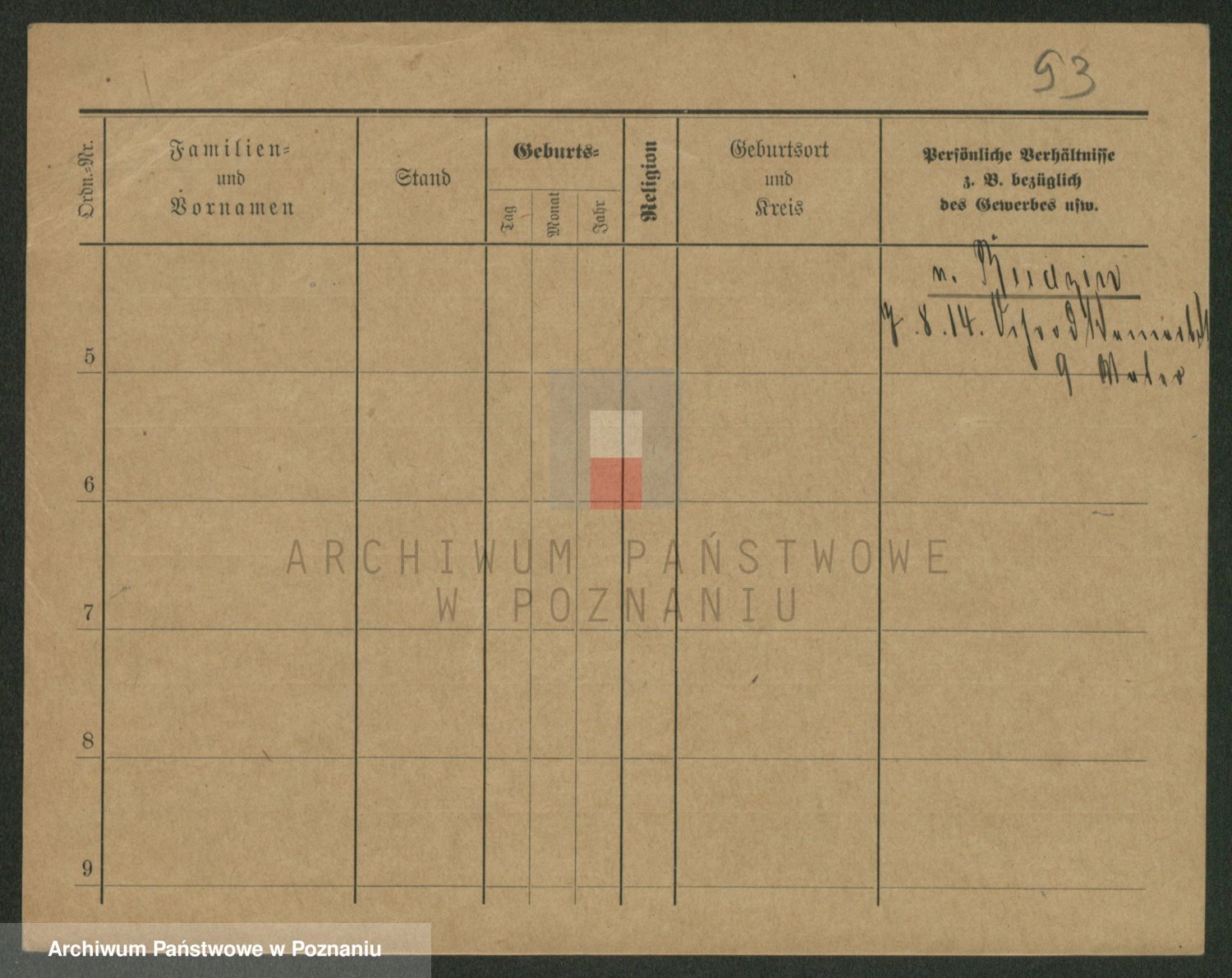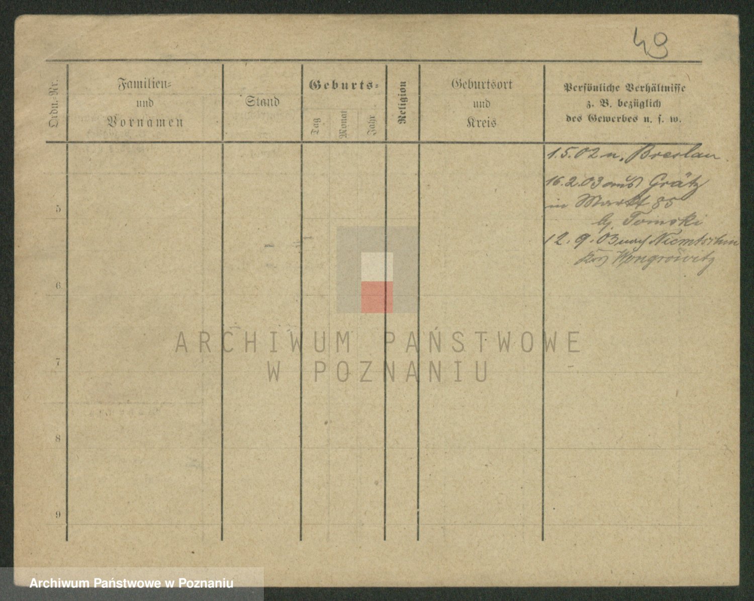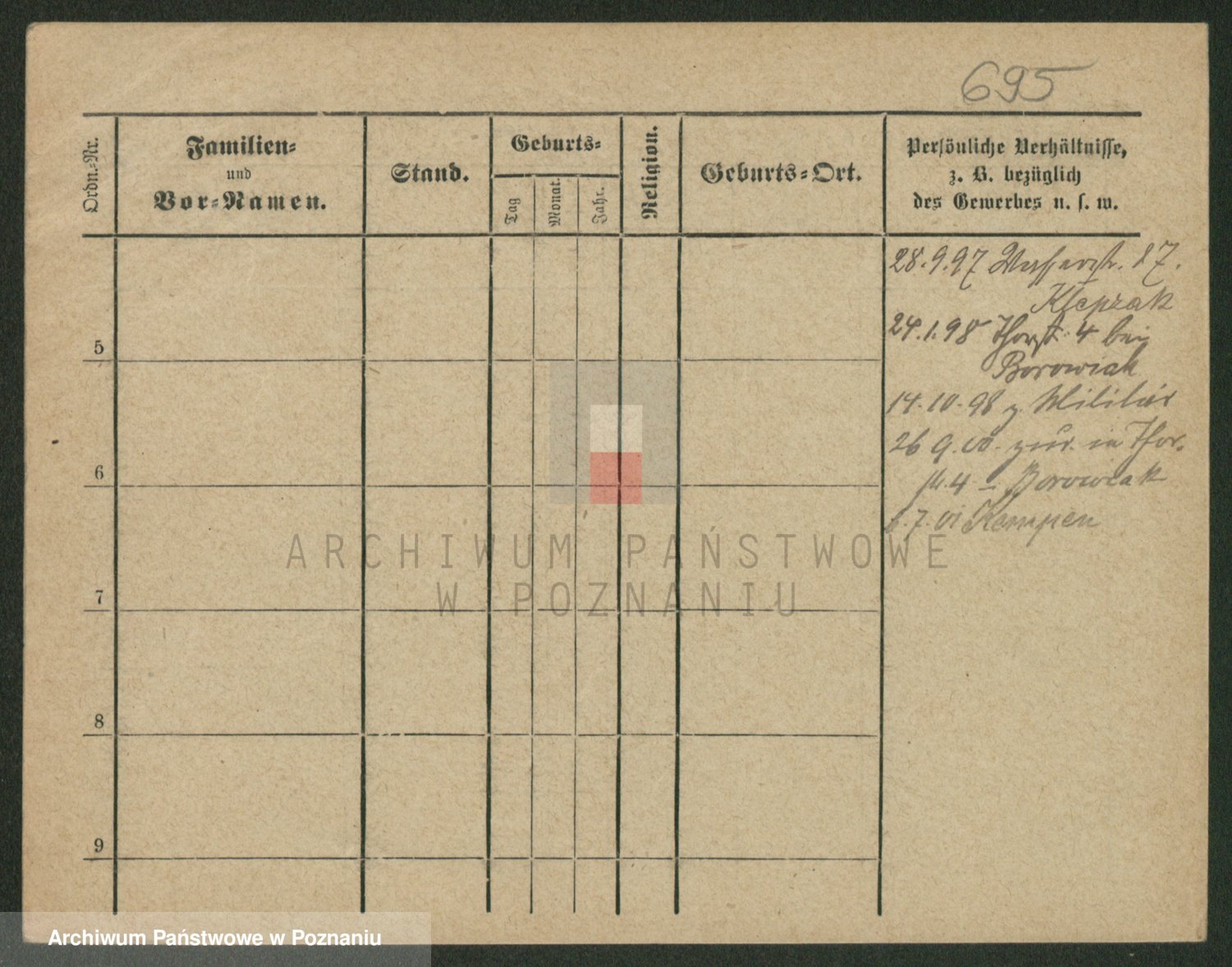 Podgląd karty osobowej dostępny jest po kliknięciu na nazwisko lub ikonkę karty. Można dokonywać powiększenia (ikony na górze) lub przechodzić między kolejnymi skanami (strzałki po bokach).