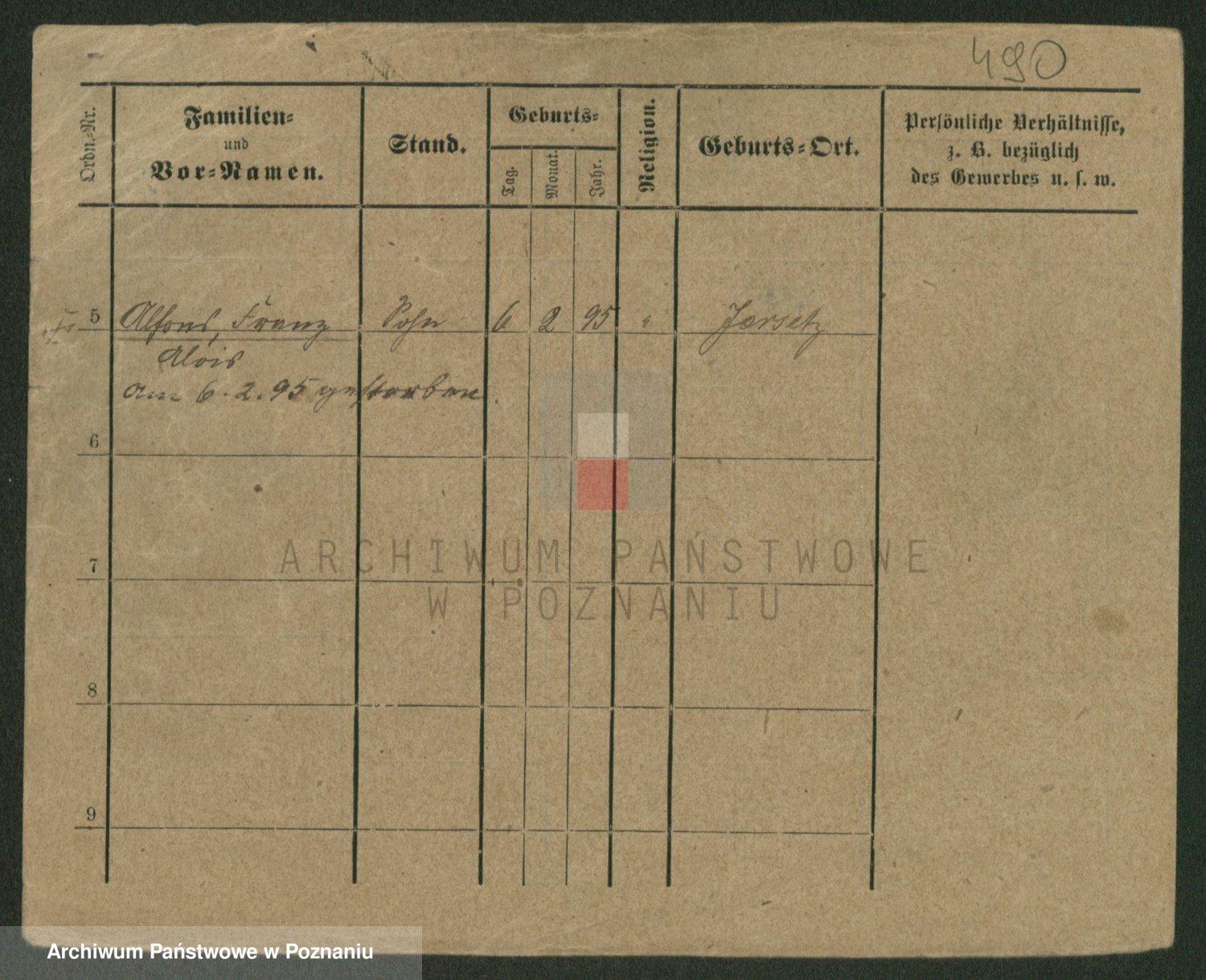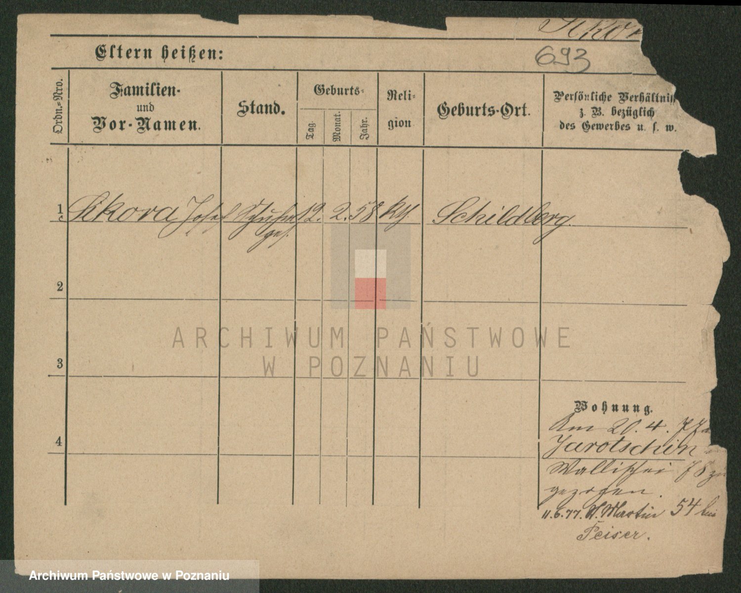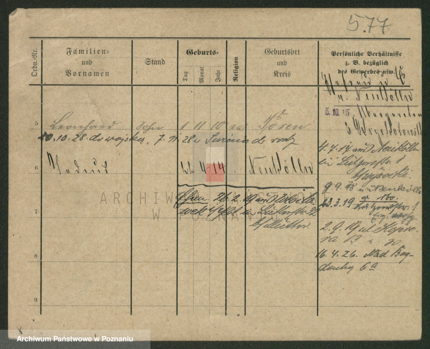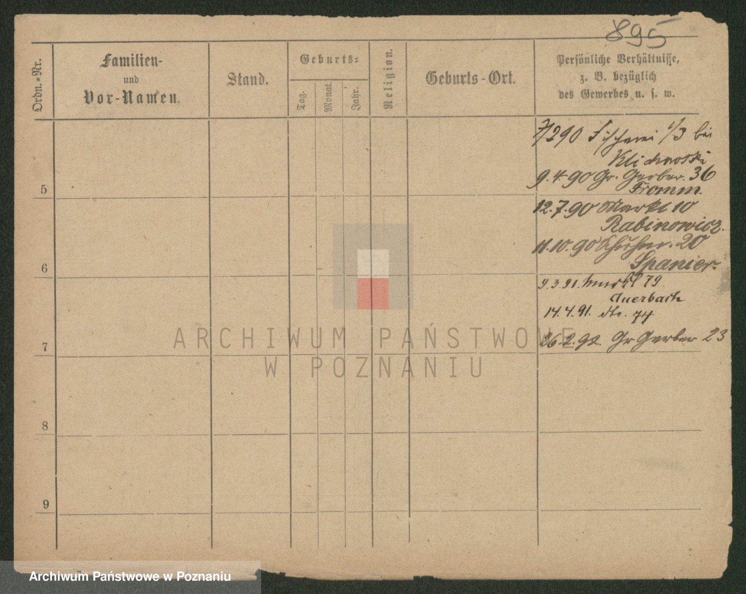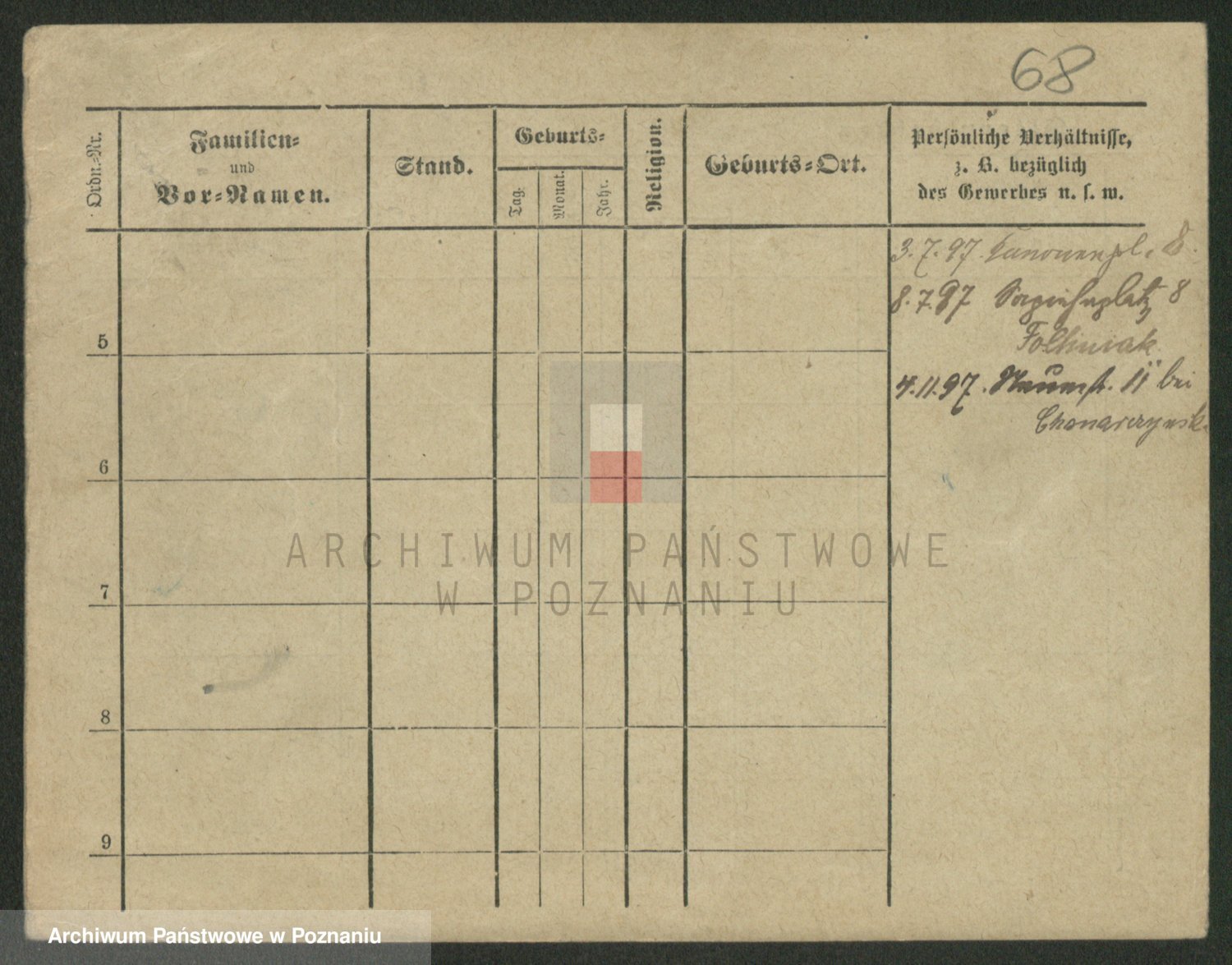 Podgląd karty osobowej dostępny jest po kliknięciu na nazwisko lub ikonkę karty. Można dokonywać powiększenia (ikony na górze) lub przechodzić między kolejnymi skanami (strzałki po bokach).