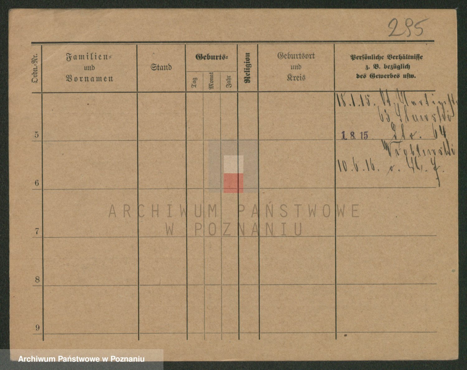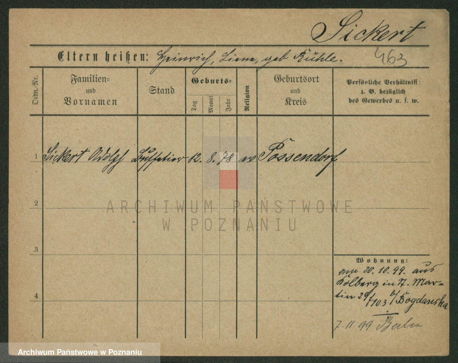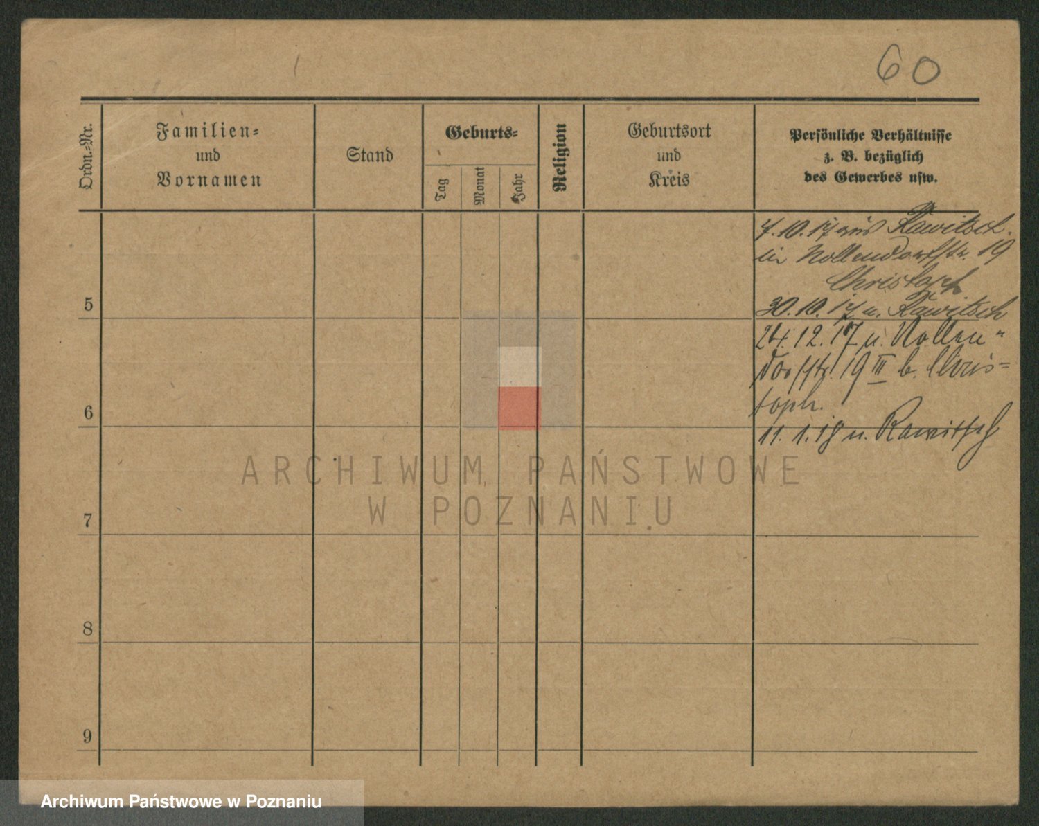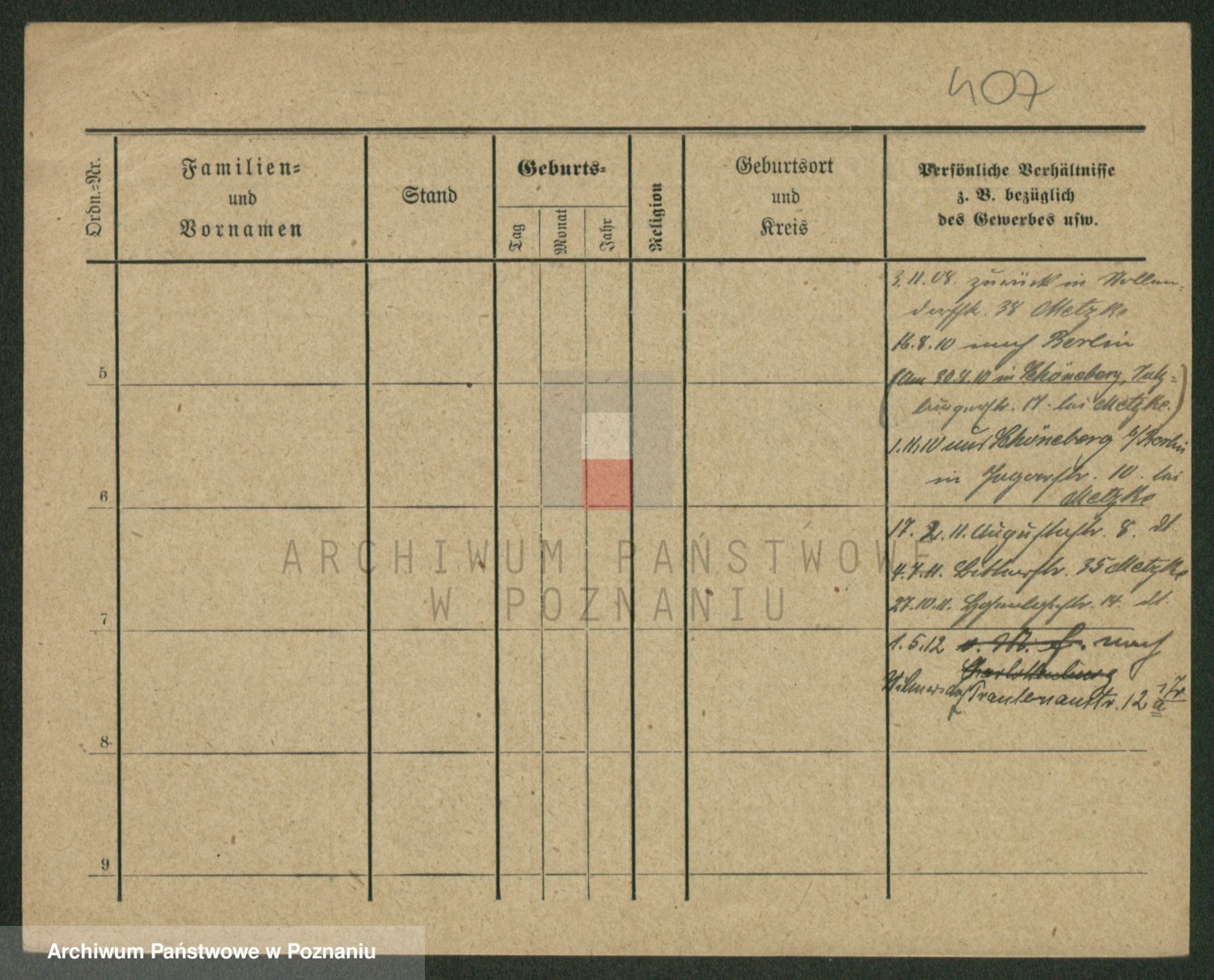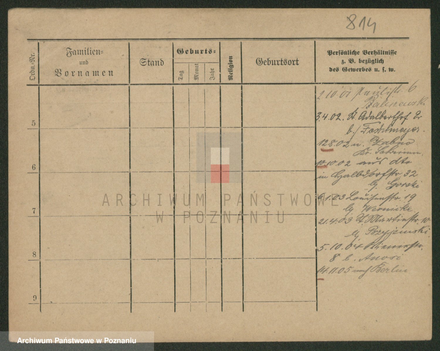 Podgląd karty osobowej dostępny jest po kliknięciu na nazwisko lub ikonkę karty. Można dokonywać powiększenia (ikony na górze) lub przechodzić między kolejnymi skanami (strzałki po bokach).