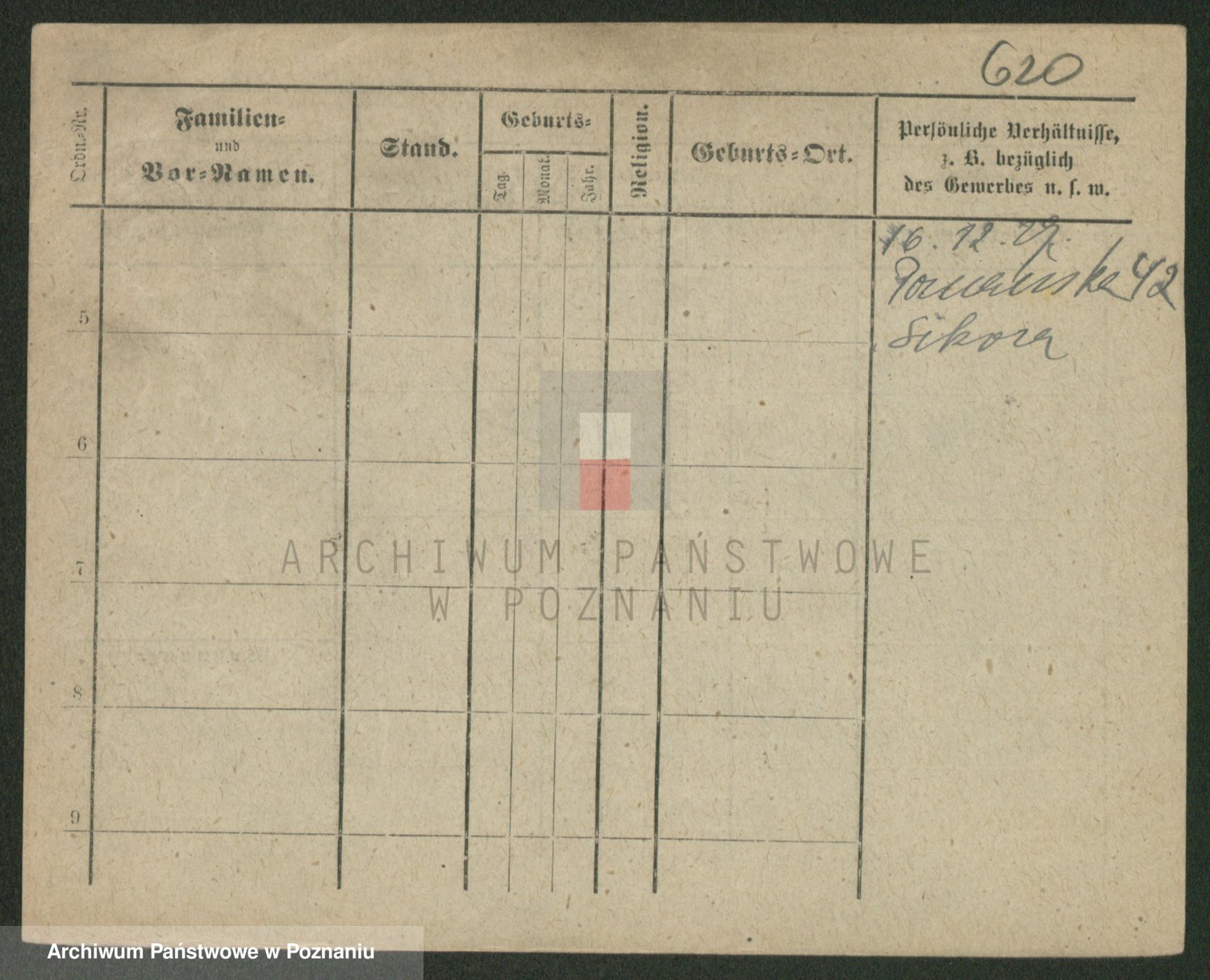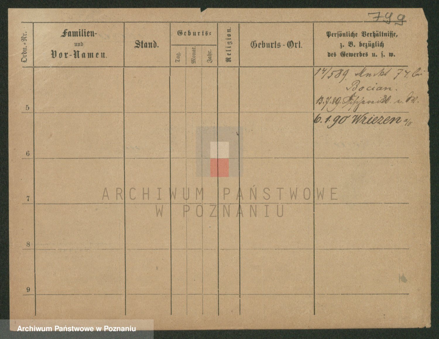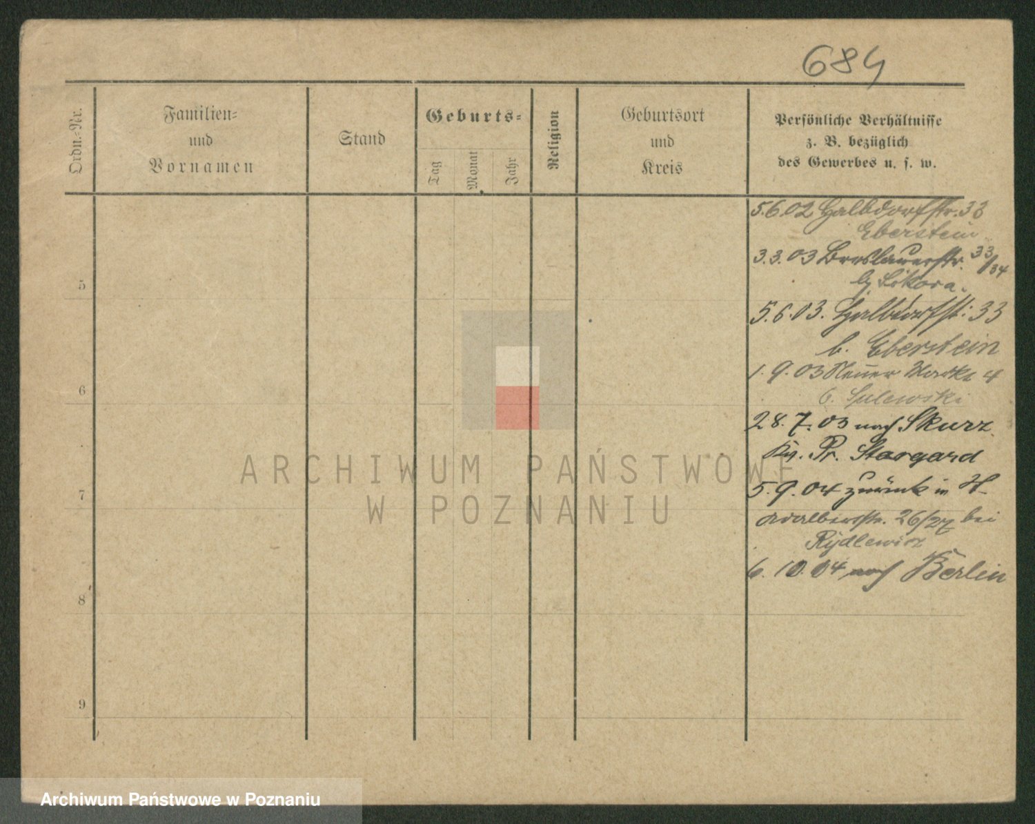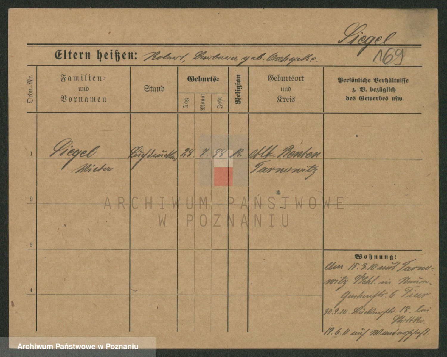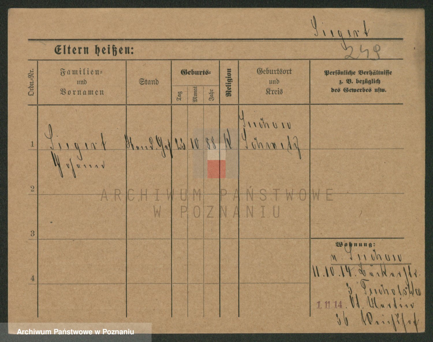 Podgląd karty osobowej dostępny jest po kliknięciu na nazwisko lub ikonkę karty. Można dokonywać powiększenia (ikony na górze) lub przechodzić między kolejnymi skanami (strzałki po bokach).