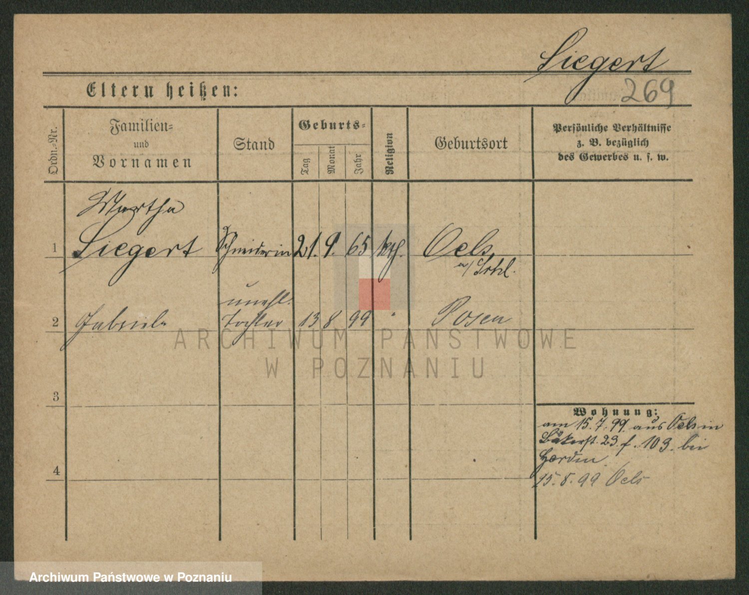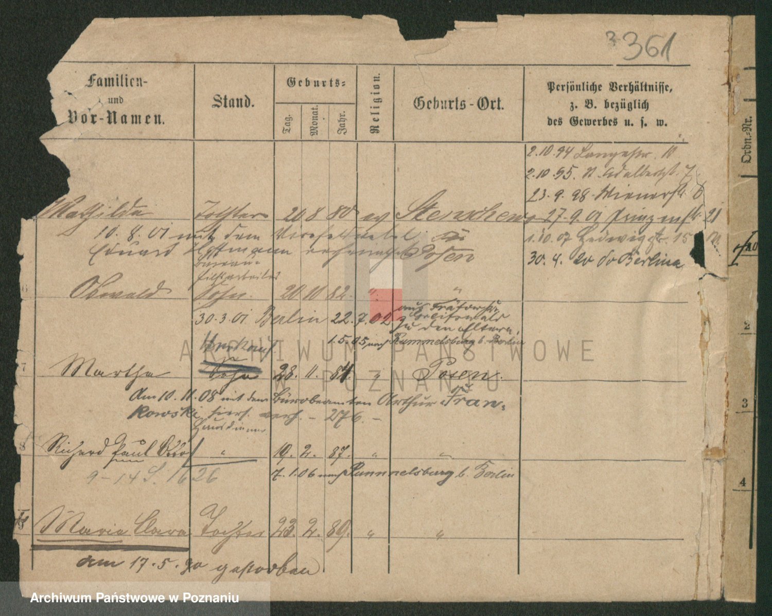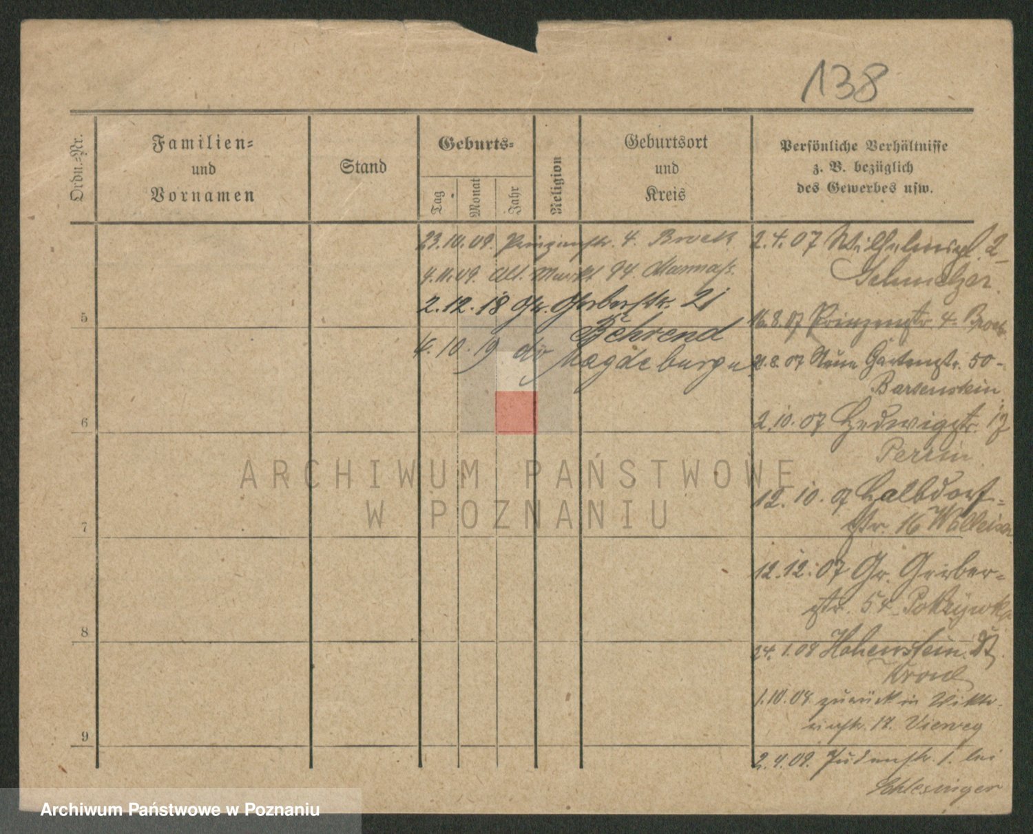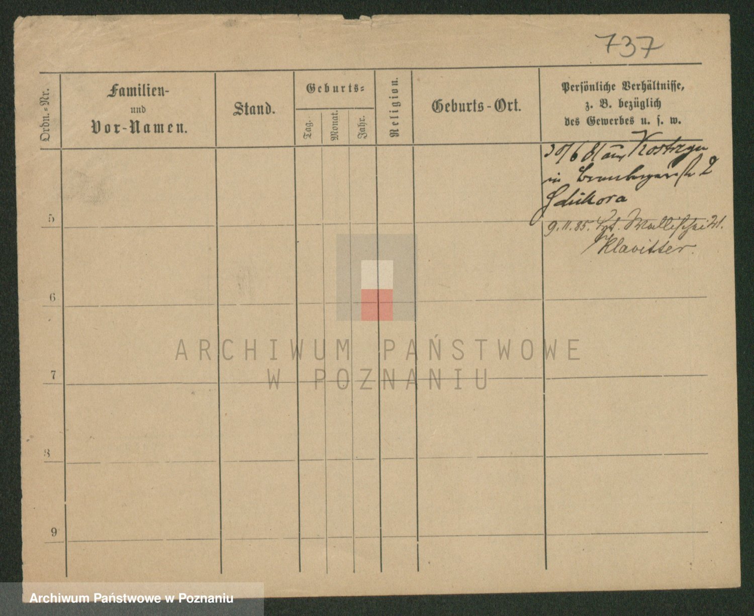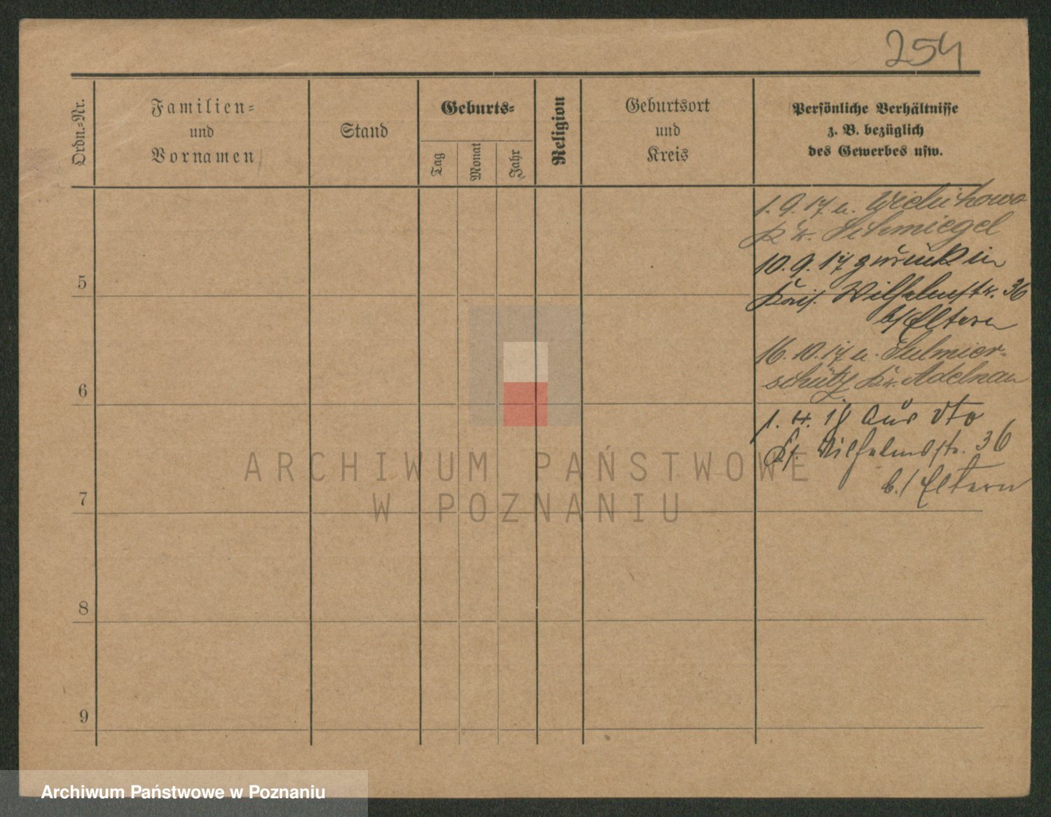 Podgląd karty osobowej dostępny jest po kliknięciu na nazwisko lub ikonkę karty. Można dokonywać powiększenia (ikony na górze) lub przechodzić między kolejnymi skanami (strzałki po bokach).