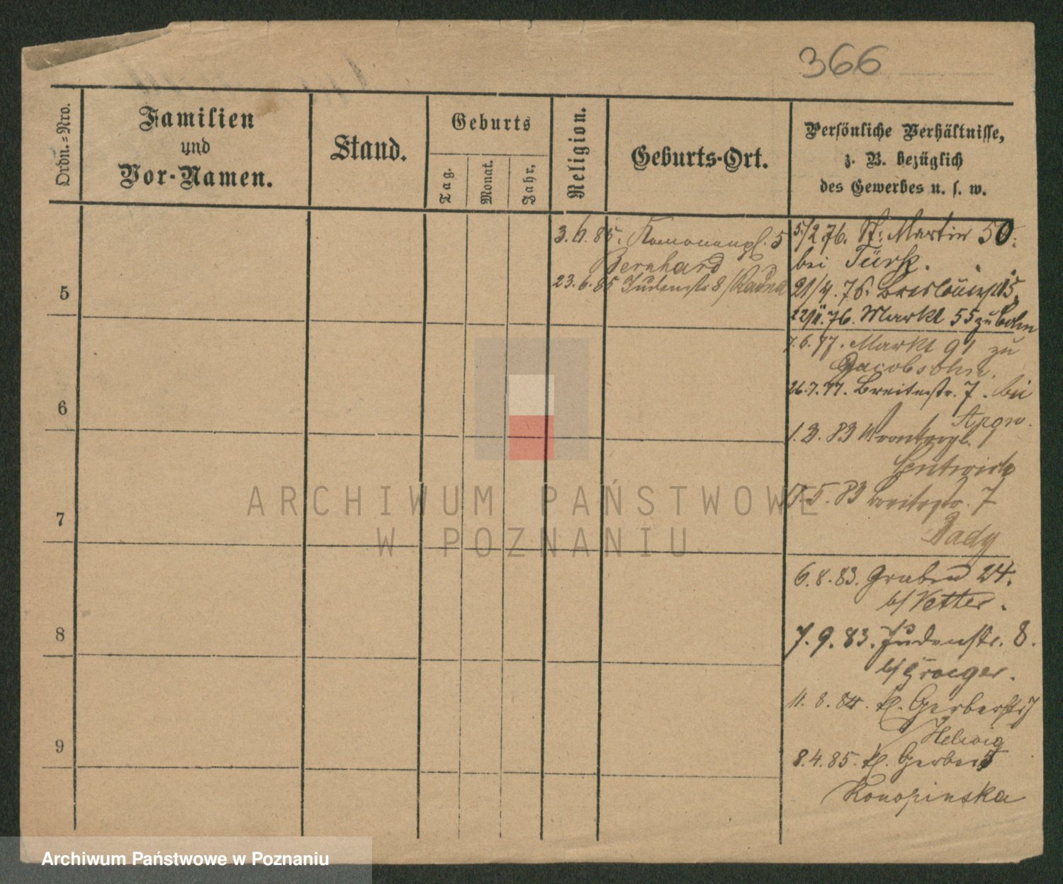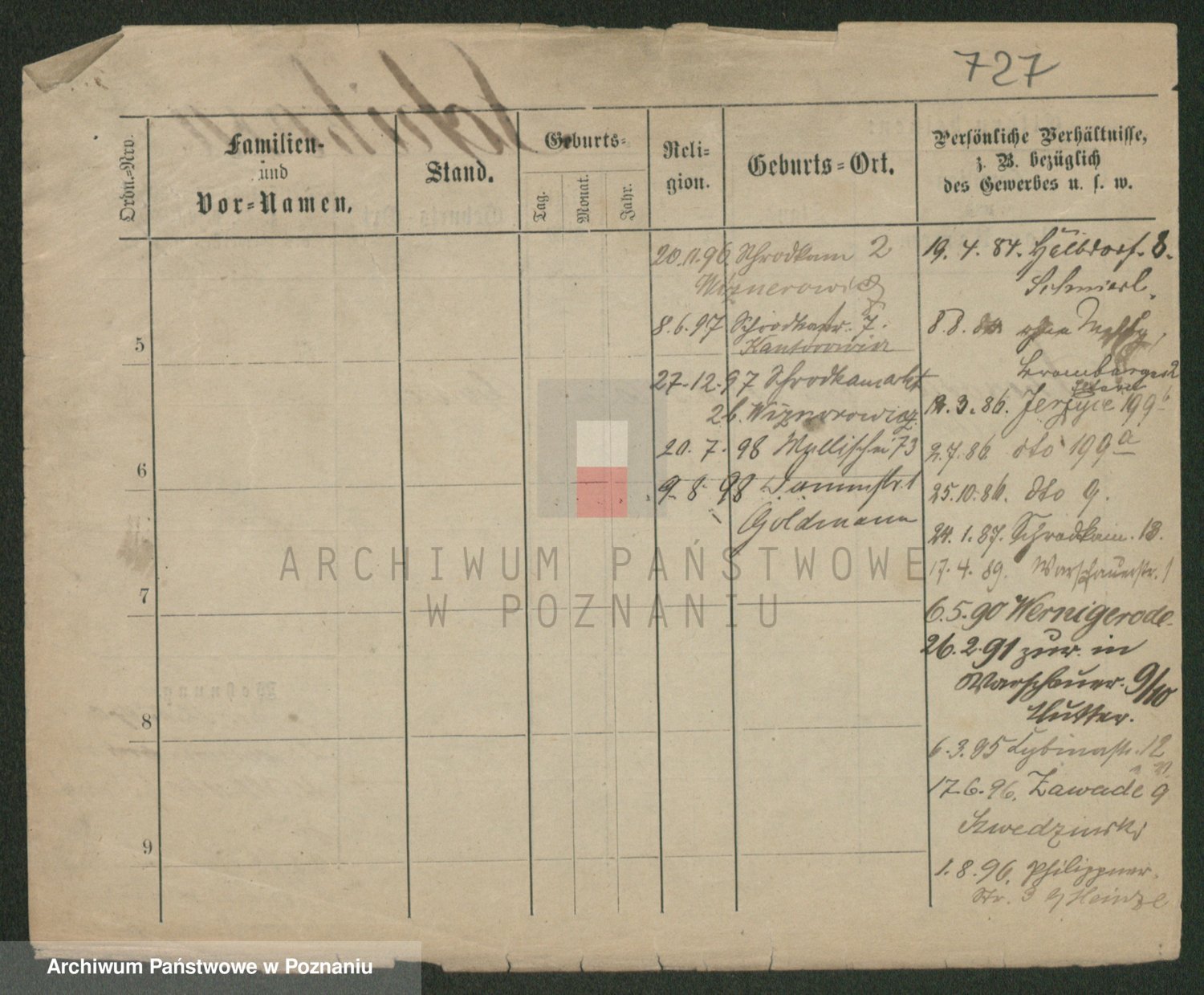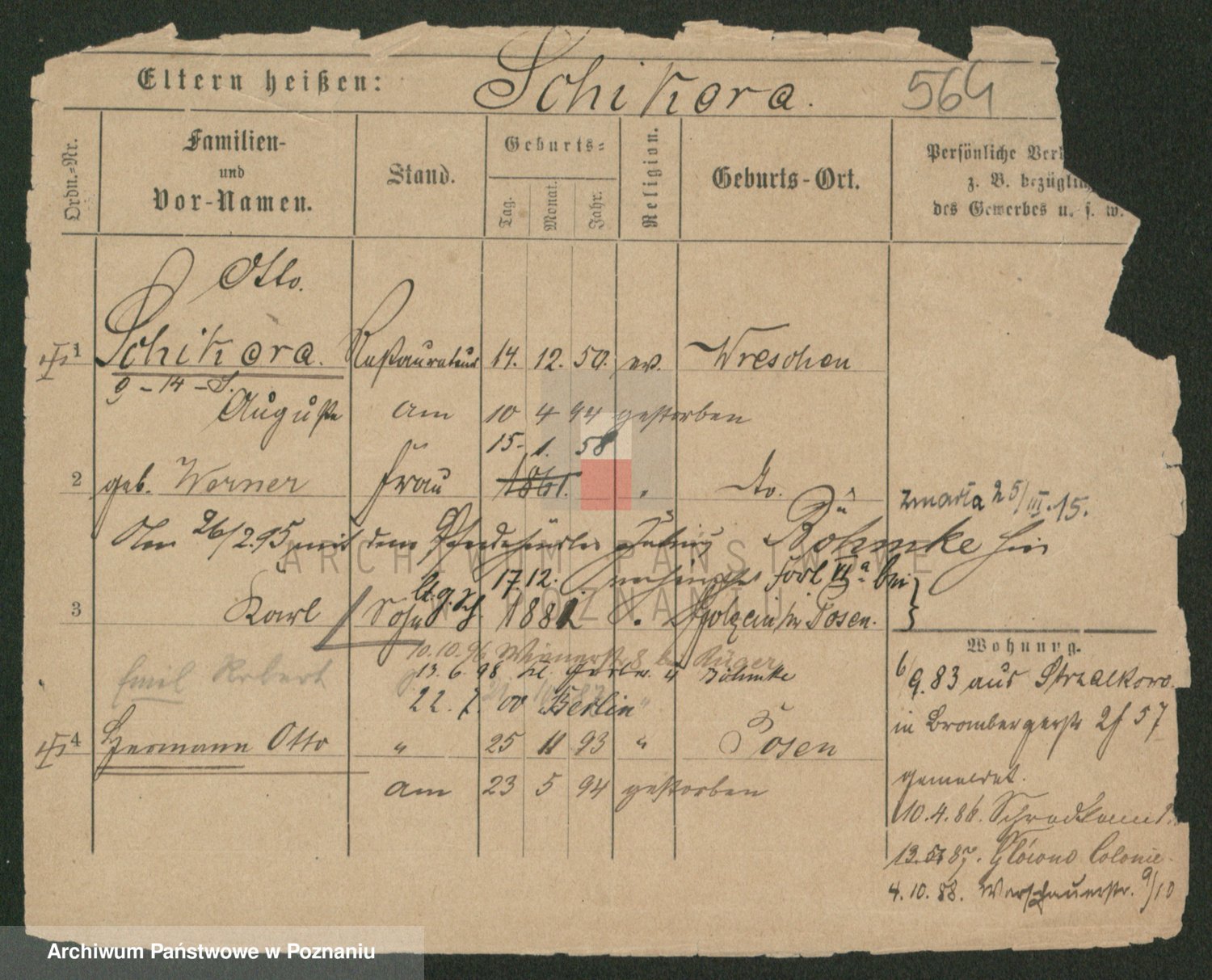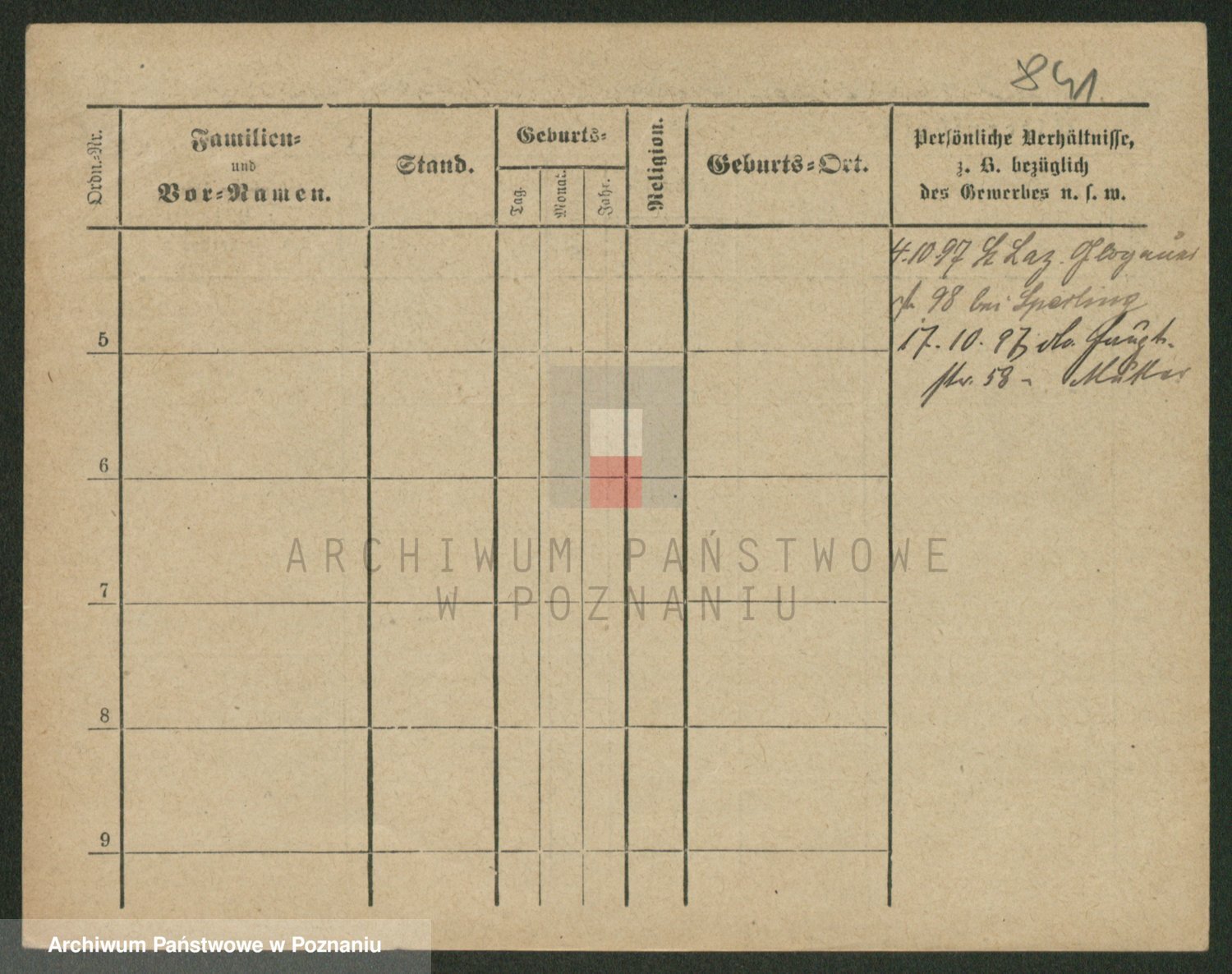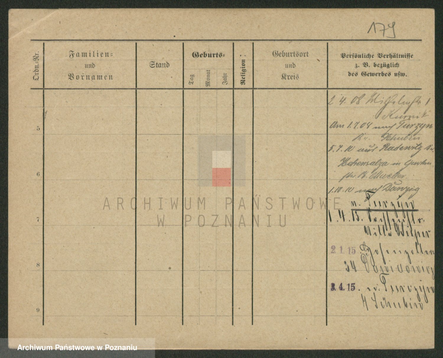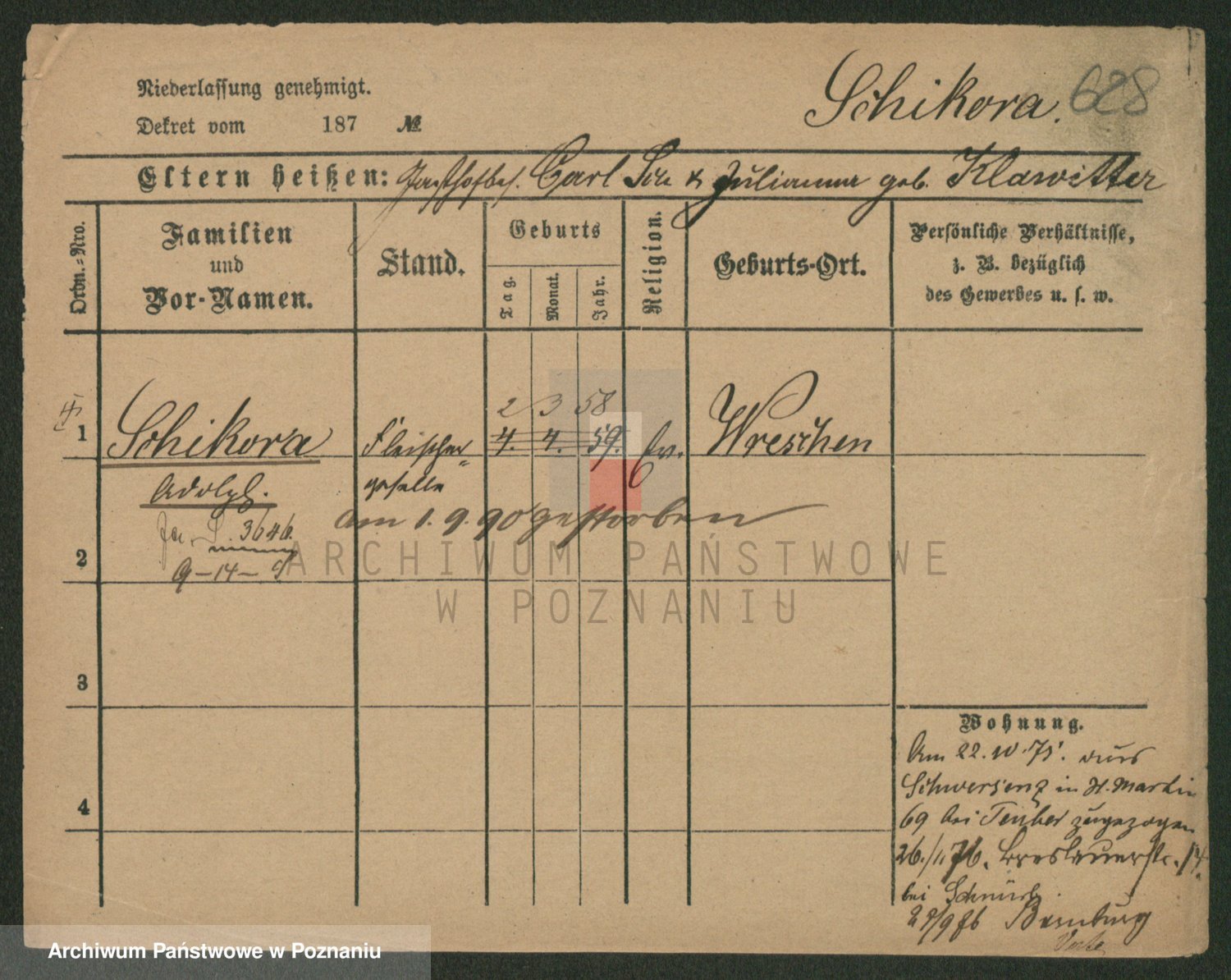 Podgląd karty osobowej dostępny jest po kliknięciu na nazwisko lub ikonkę karty. Można dokonywać powiększenia (ikony na górze) lub przechodzić między kolejnymi skanami (strzałki po bokach).