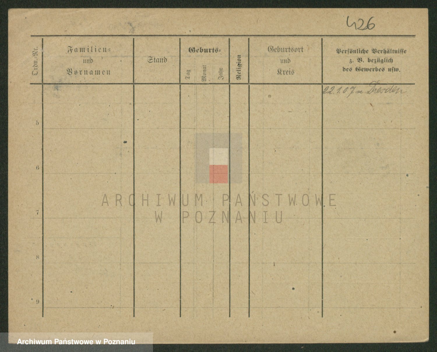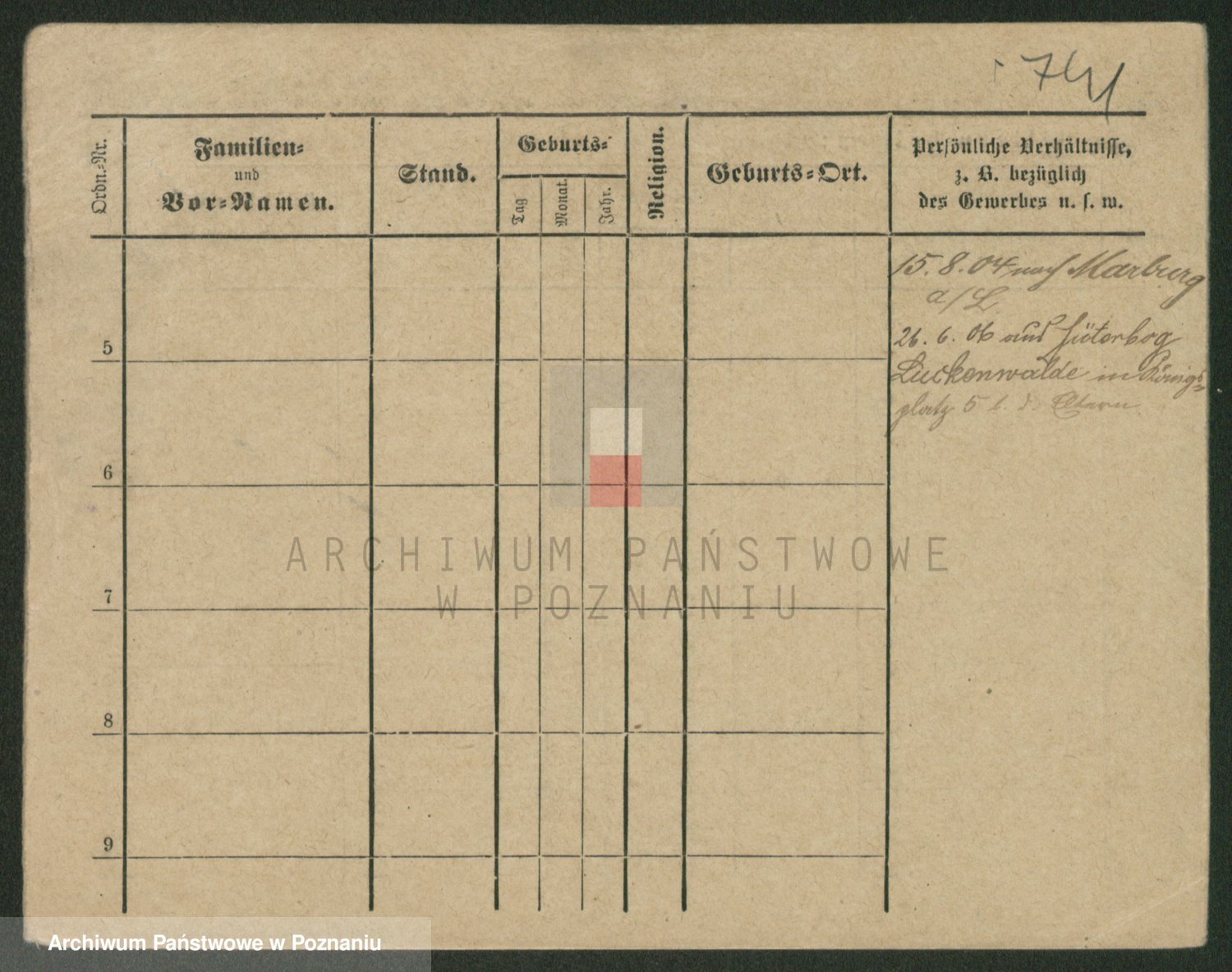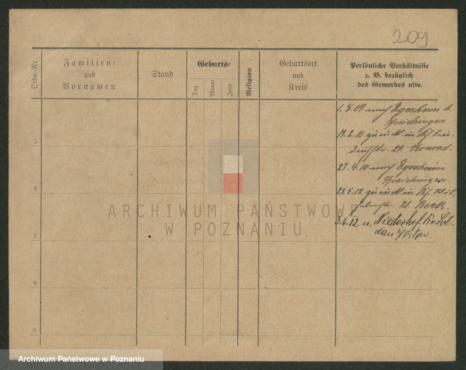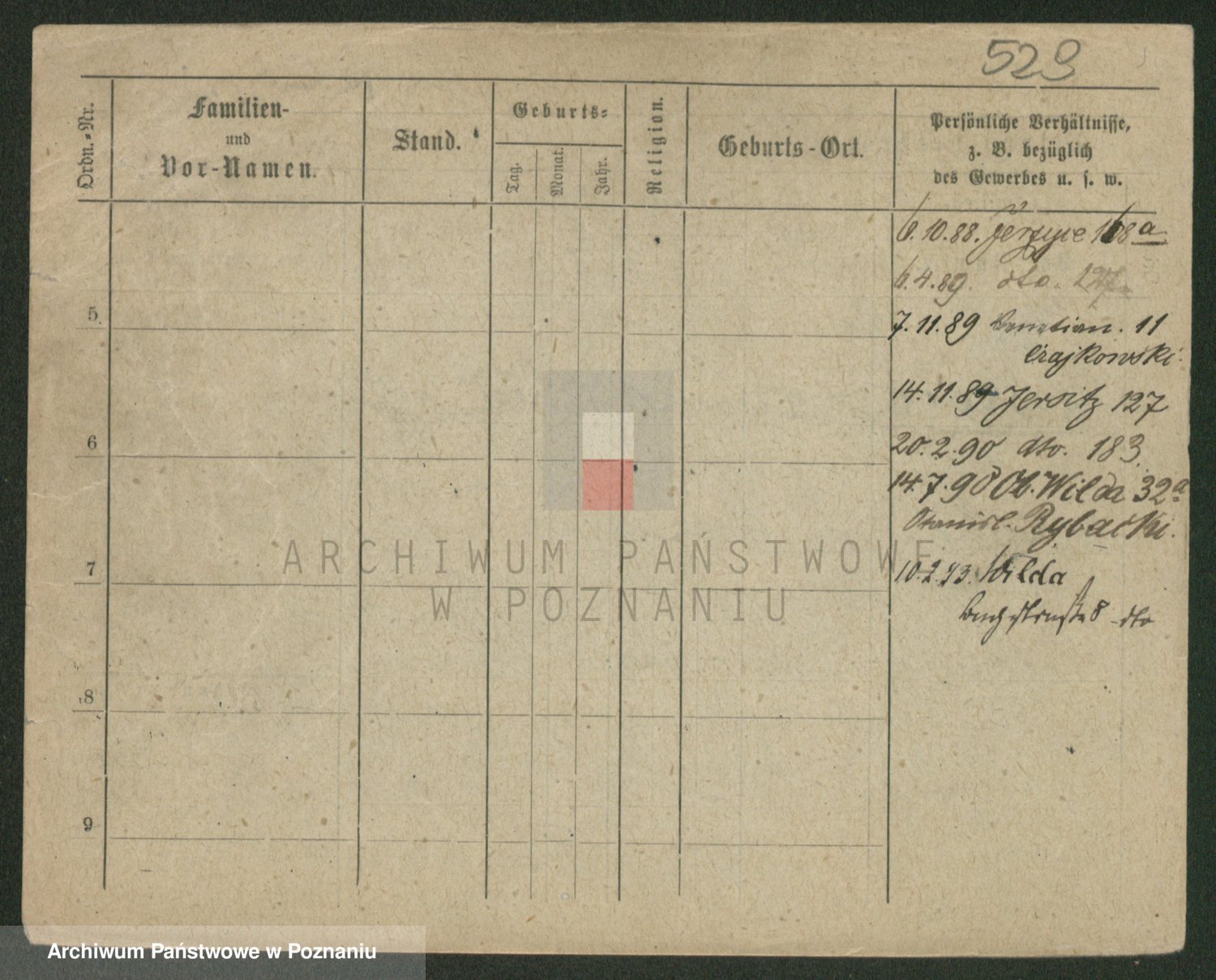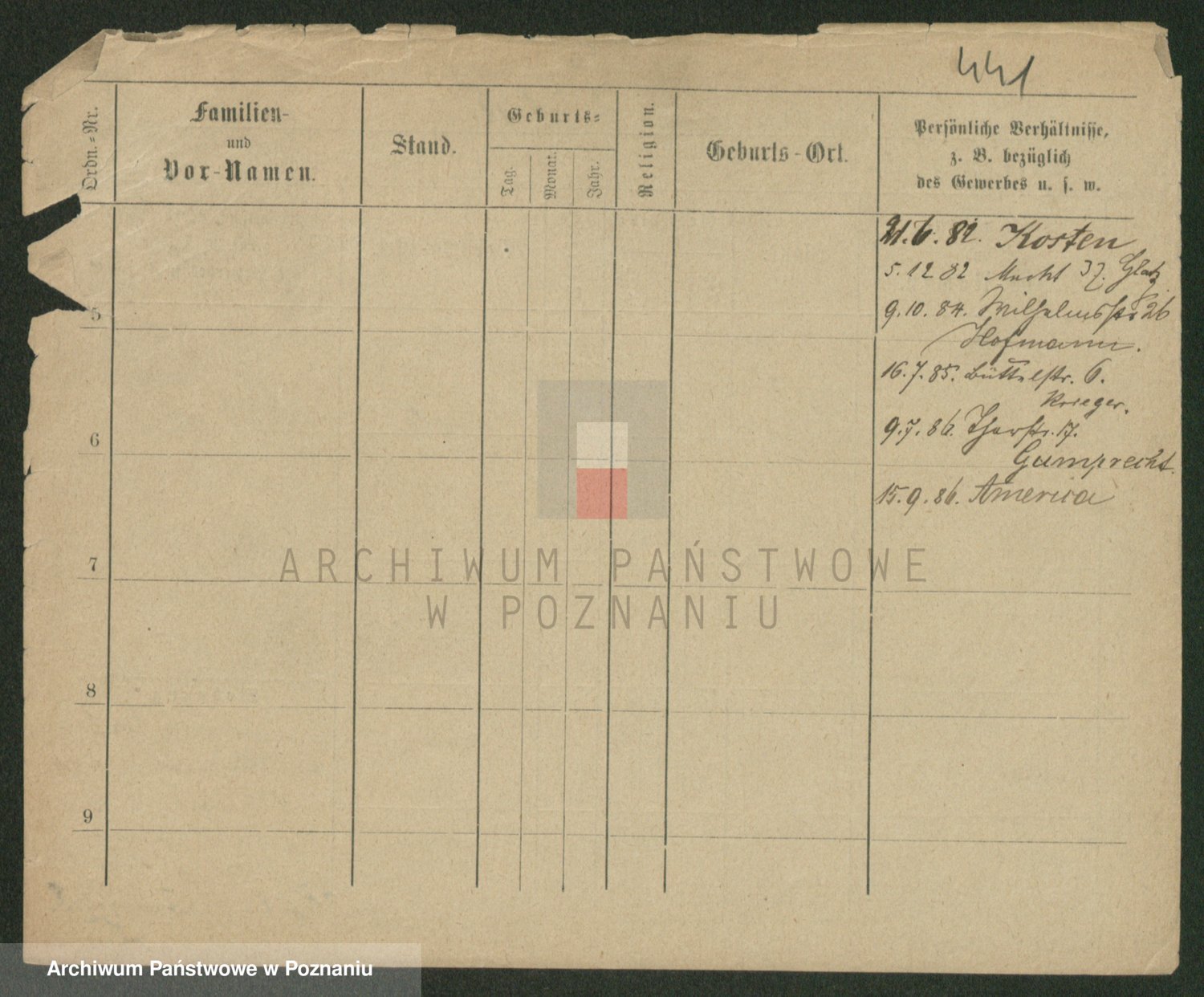 Podgląd karty osobowej dostępny jest po kliknięciu na nazwisko lub ikonkę karty. Można dokonywać powiększenia (ikony na górze) lub przechodzić między kolejnymi skanami (strzałki po bokach).